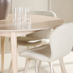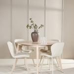 Jídelní stůl Strada vytváří ideální rovnováhu mezi funkčností a elegancí. Stůl, vyrobený z nabíleného dýhového dřeva, předvádí přirozenou texturu dřeva a dodává vaší jídelně lehký a vzdušný pocit. S průměrem 120 cm poskytuje Strada dostatek prostoru pro každodenní jídla a lze ji snadno rozšířit až na 170 cm, aby v případě potřeby pojal více hostů. Jeho stabilní konstrukce a nadčasový design dělají ze Strady spolehlivý a krásný středobod vašeho domova.