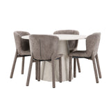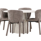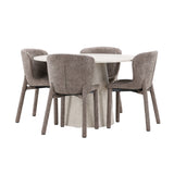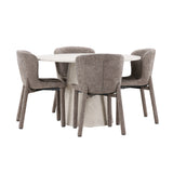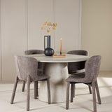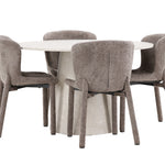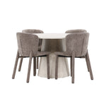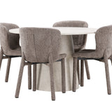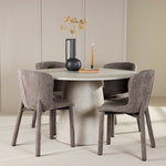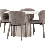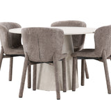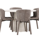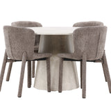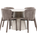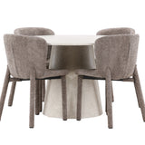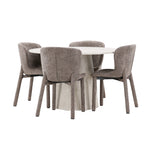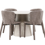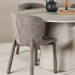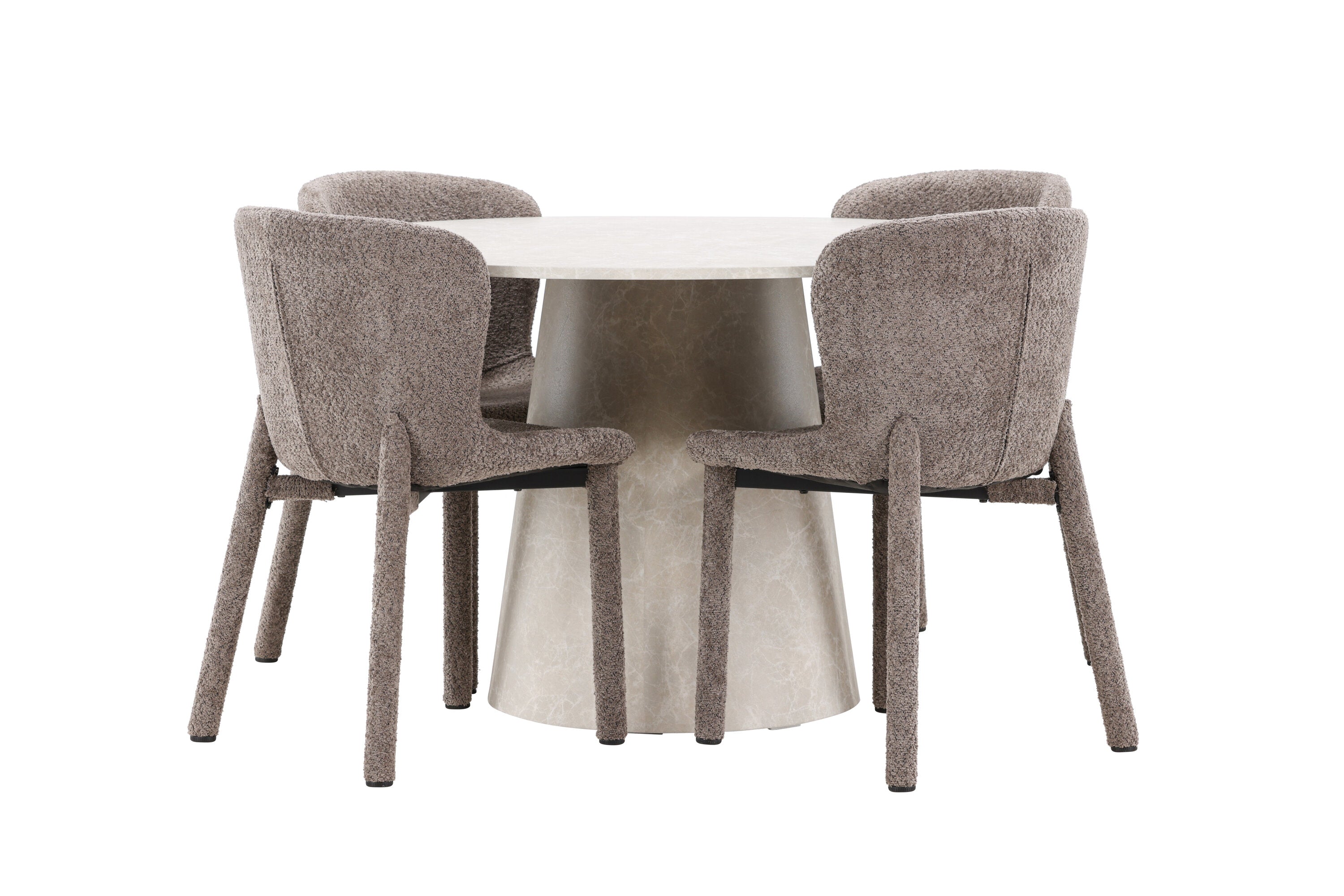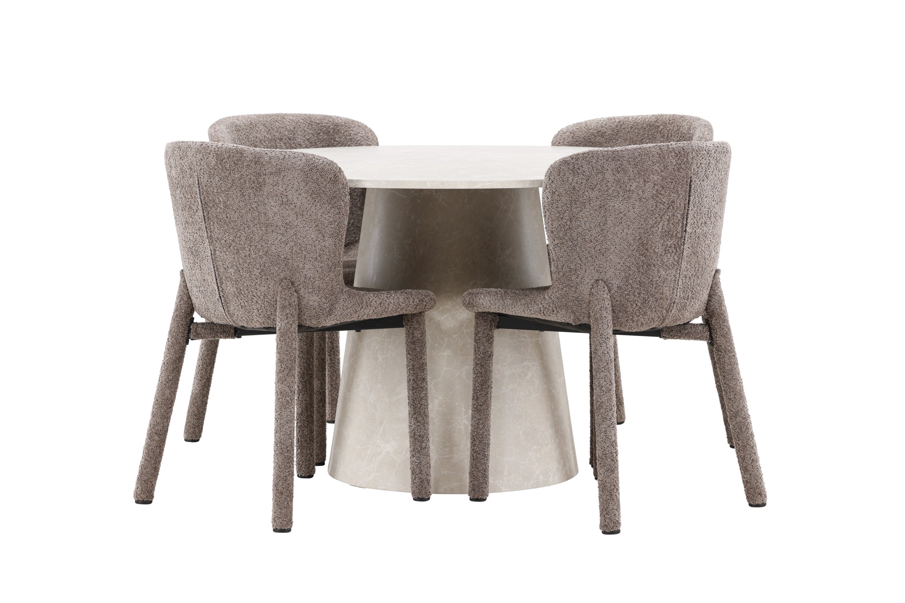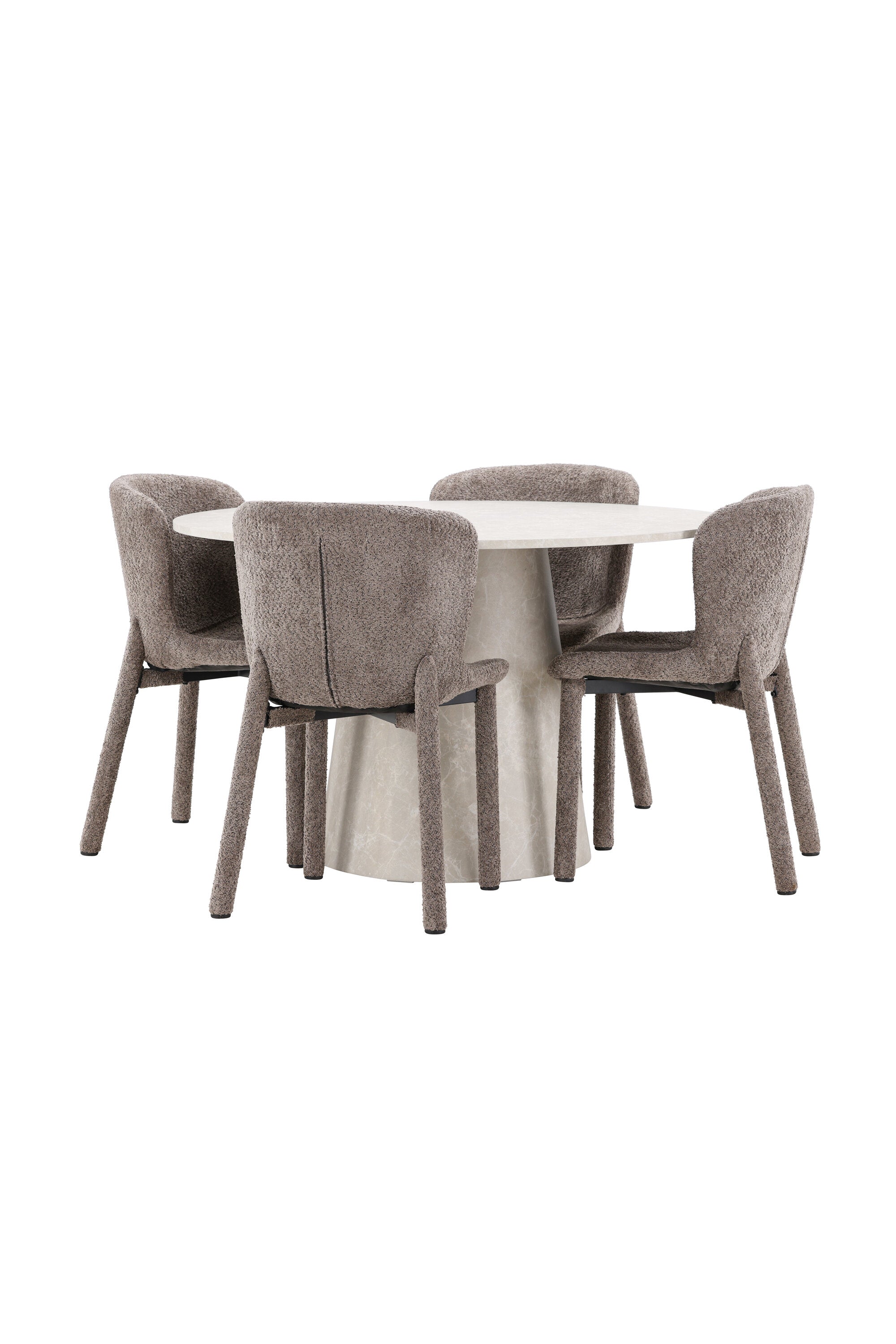 Ke stolu se hodí jídelní židle Astoria, čalouněná elegantním hnědým buklé. Z křesla vyzařuje teplo a příjemný pocit s měkkou texturou buclé, která dodává nádech luxusu. Bohaté barvy a složitá textura činí z Astoria pozoruhodný prvek v moderním i klasickém prostředí. Židle byla navržena s ohledem na ergonomii a má obepínající opěradlo a pohodlné polstrované sedadlo, takže je ideální pro dlouhé, relaxační večeře.