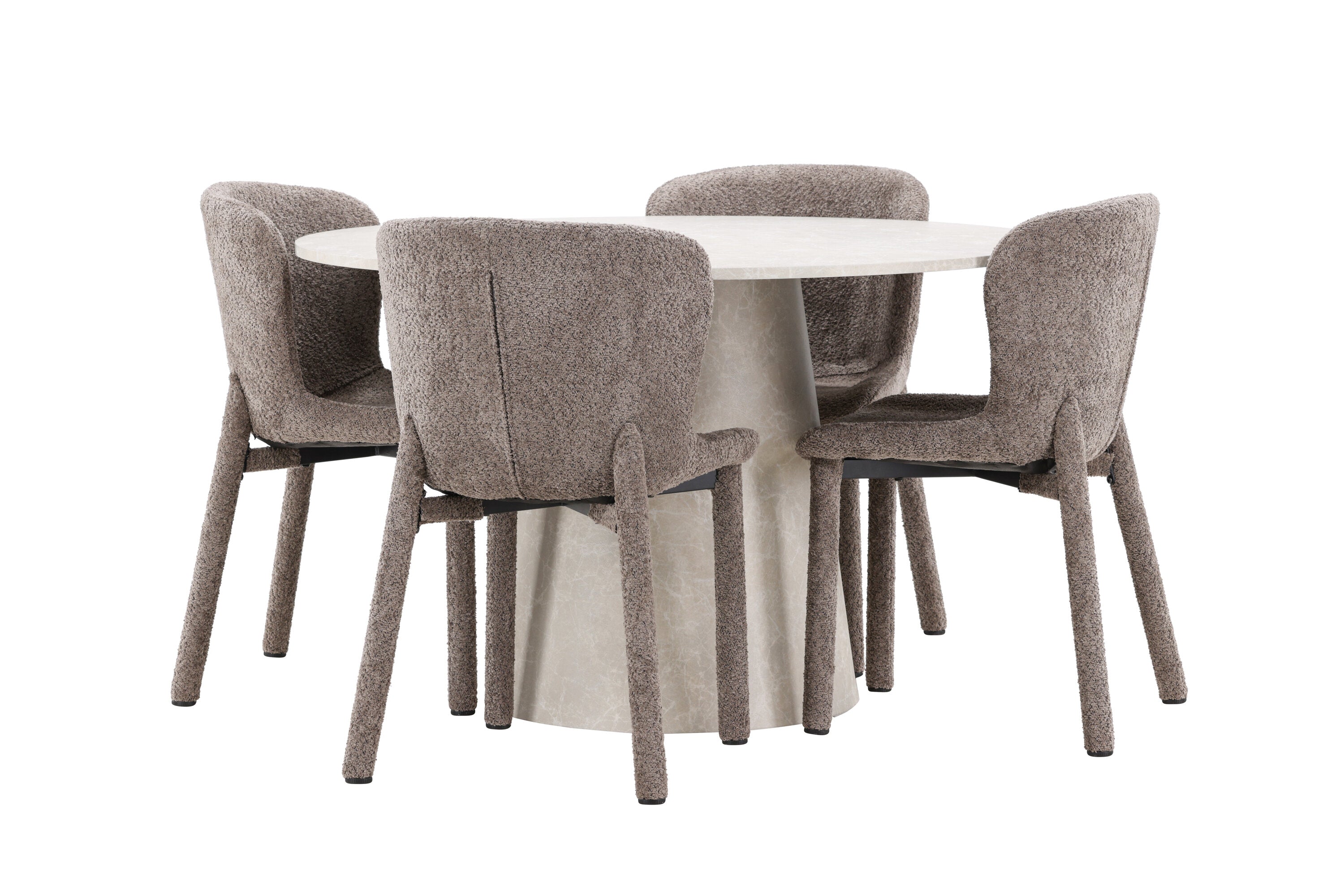 Stůl Lanzo – béžový se 4 židlemi Astoria – hnědý