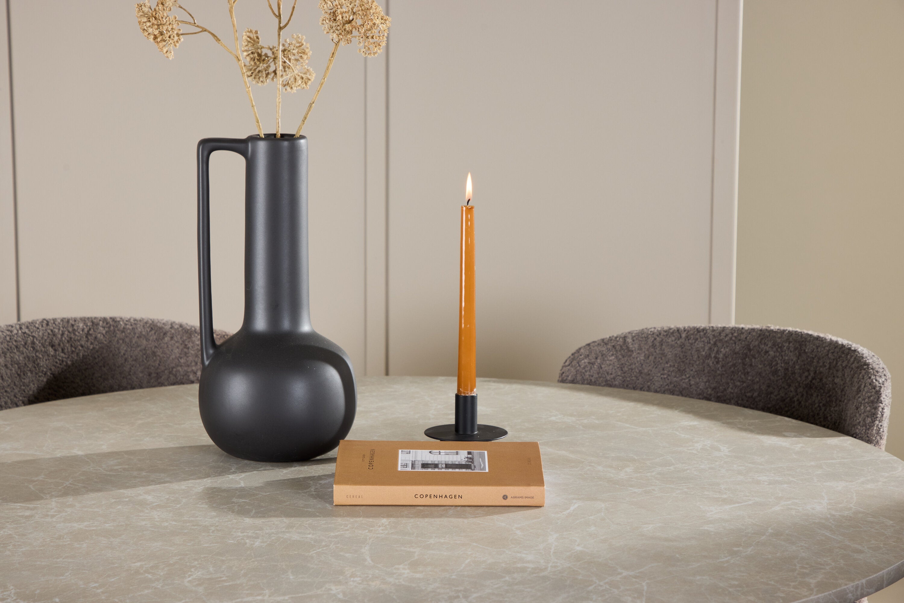Jídelní stůl Lanzo je sofistikovaný kousek, který spojuje nadčasový design s luxusním béžovým mramorovým efektem. Stolní deska kopíruje krásu přírodního kamene a dodává exkluzivní a elegantní vzhled, který doplňuje moderní i klasické interiéry. Kulatý tvar stolu vytváří příjemnou atmosféru a podporuje spojení a konverzaci, takže je ideální pro každodenní stolování a společenská setkání. Jeho hladký povrch se snadno čistí a udržuje, což z něj dělá praktickou, ale stylovou volbu pro každou příležitost.