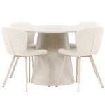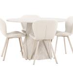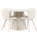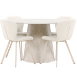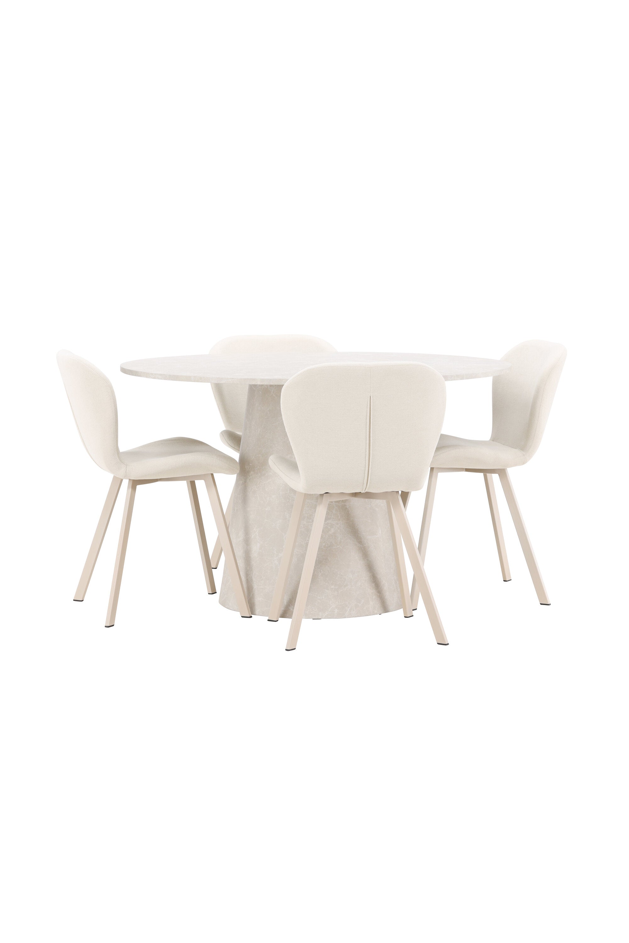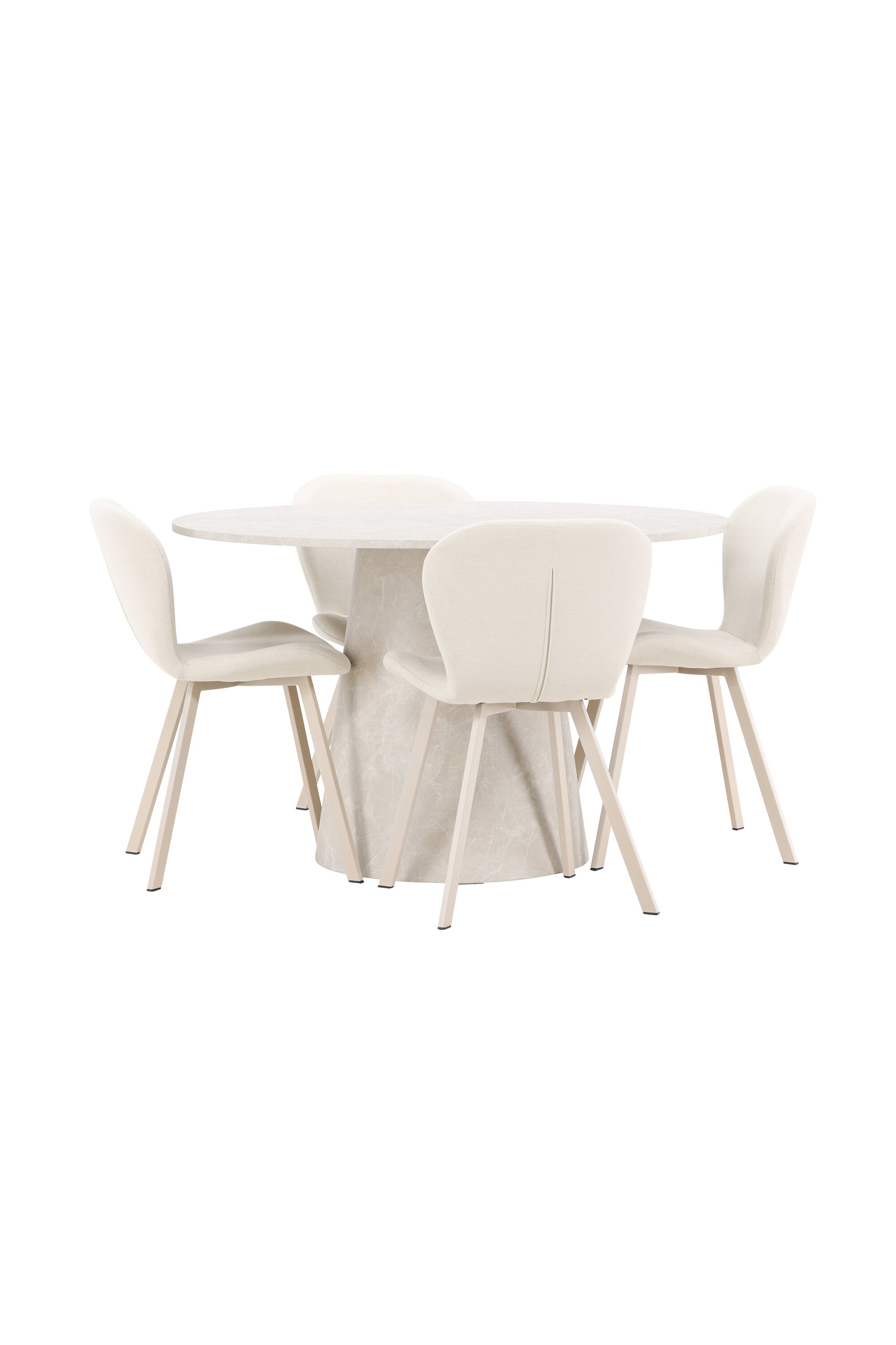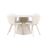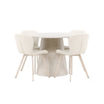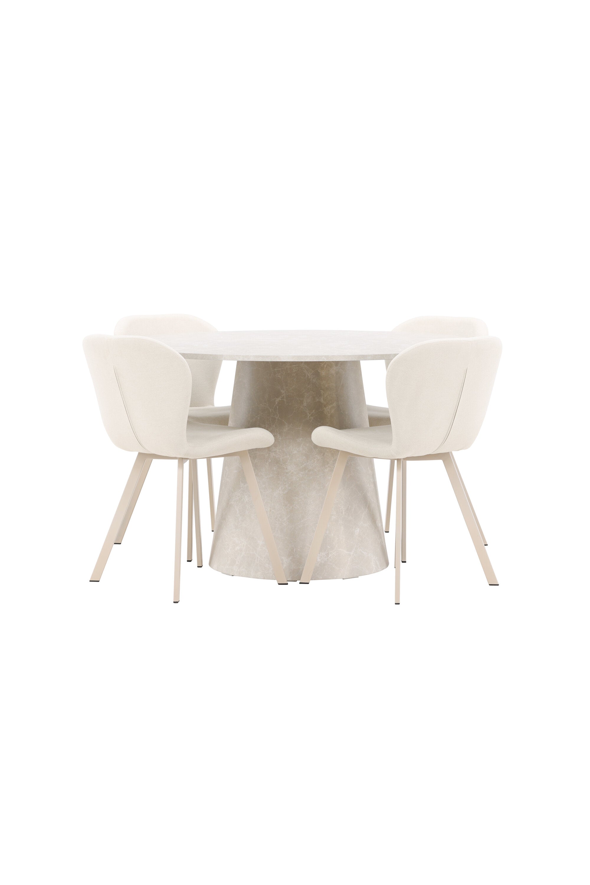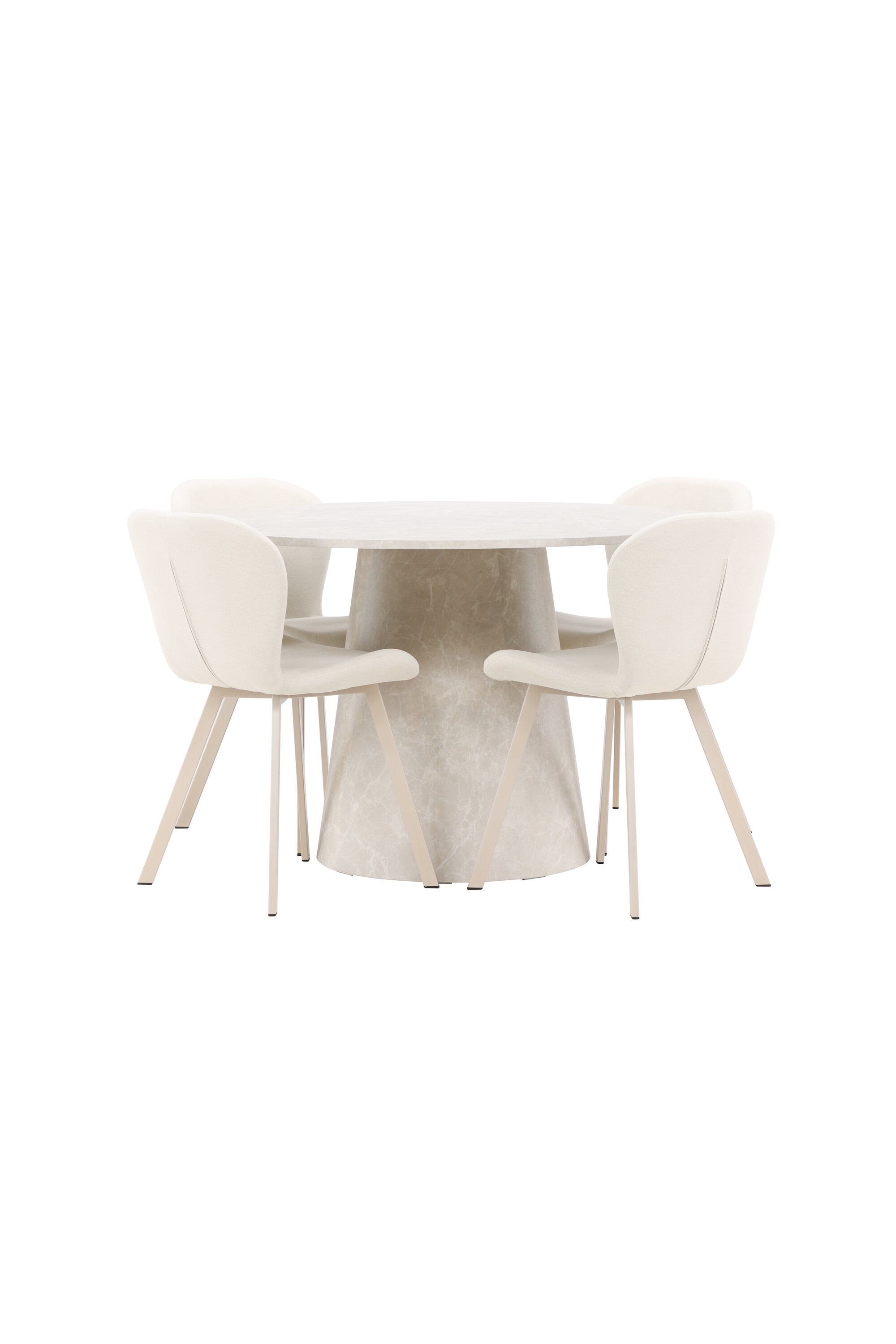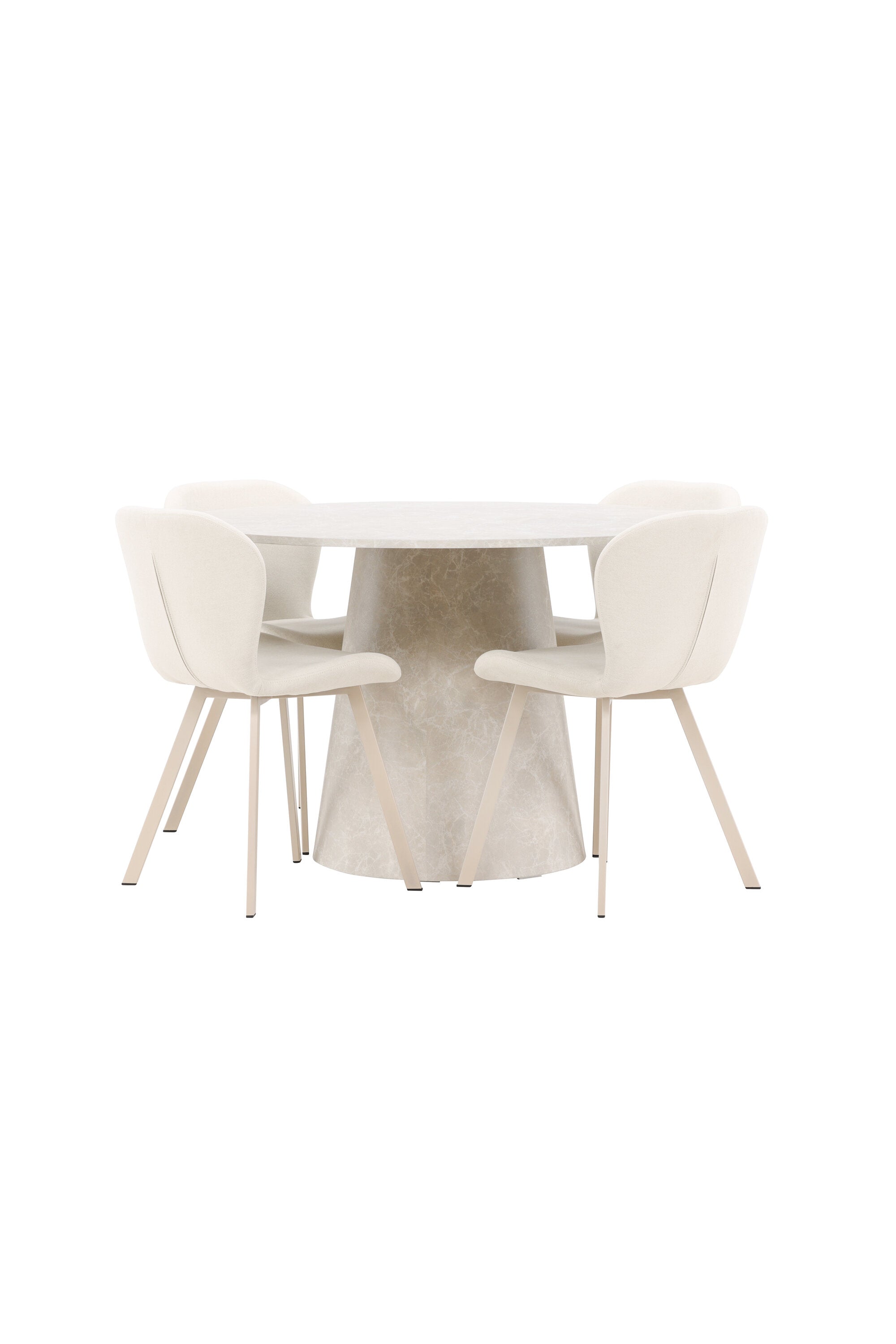 Jídelní stůl Lanzo je úžasný kousek s exkluzivním béžovým mramorovaným povrchem, který napodobuje nadčasovou krásu přírodního kamene. Jemný béžový odstín dodává stolu elegantní a jedinečnou estetiku, která se bez problémů hodí do moderního i klasického stylu interiéru. Stůl s průměrem 120 cm poskytuje dostatek prostoru pro konverzaci a spojení a zároveň dodává vaší jídelně punc luxusu. Jeho hladký povrch se snadno čistí a udržuje, takže Lanzo je praktické i stylové.