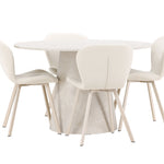 Proměňte svůj jídelní kout pomocí elegantní a elegantní kombinace jídelního stolu Lanzo a jídelních židlí Lilja. Tato sada je navržena tak, aby vytvořila sofistikovanou atmosféru, ideální jak pro každodenní jídlo, tak pro slavnostní setkání.