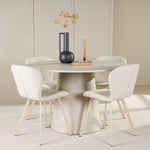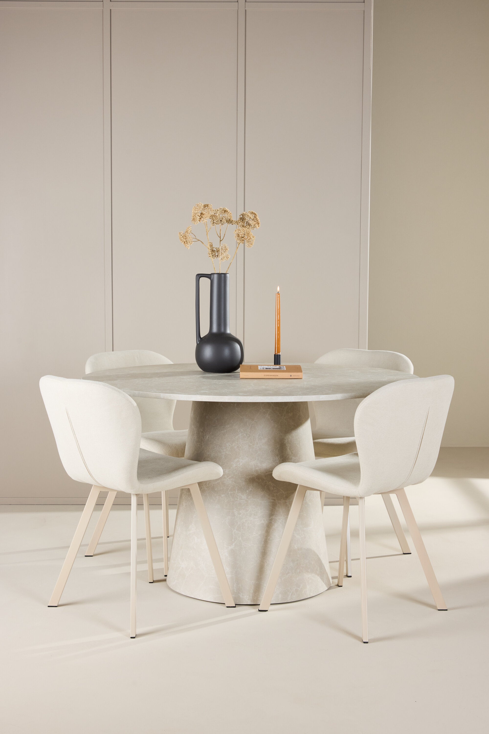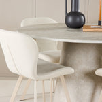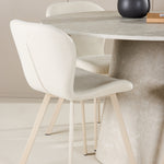 Doplňkem stolu je jídelní židle Lilja, která dokonale kombinuje pohodlí a design. Měkké béžové čalounění nabízí hřejivý a příjemný pocit, zatímco ergonomický design s opěrným opěradlem a velkoryse polstrovaným sedákem zajišťuje pohodlí při dlouhých večeřích a společenských setkáních. Díky neutrálnímu béžovému tónu je židle všestranná a lze ji snadno spárovat s různými styly dekorů a dodává jí elegantní a nadčasovou přitažlivost.