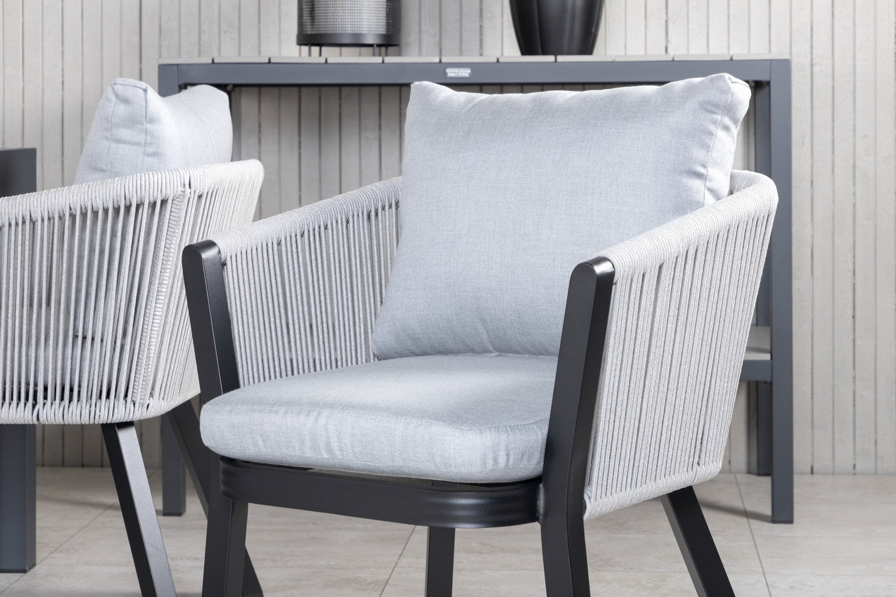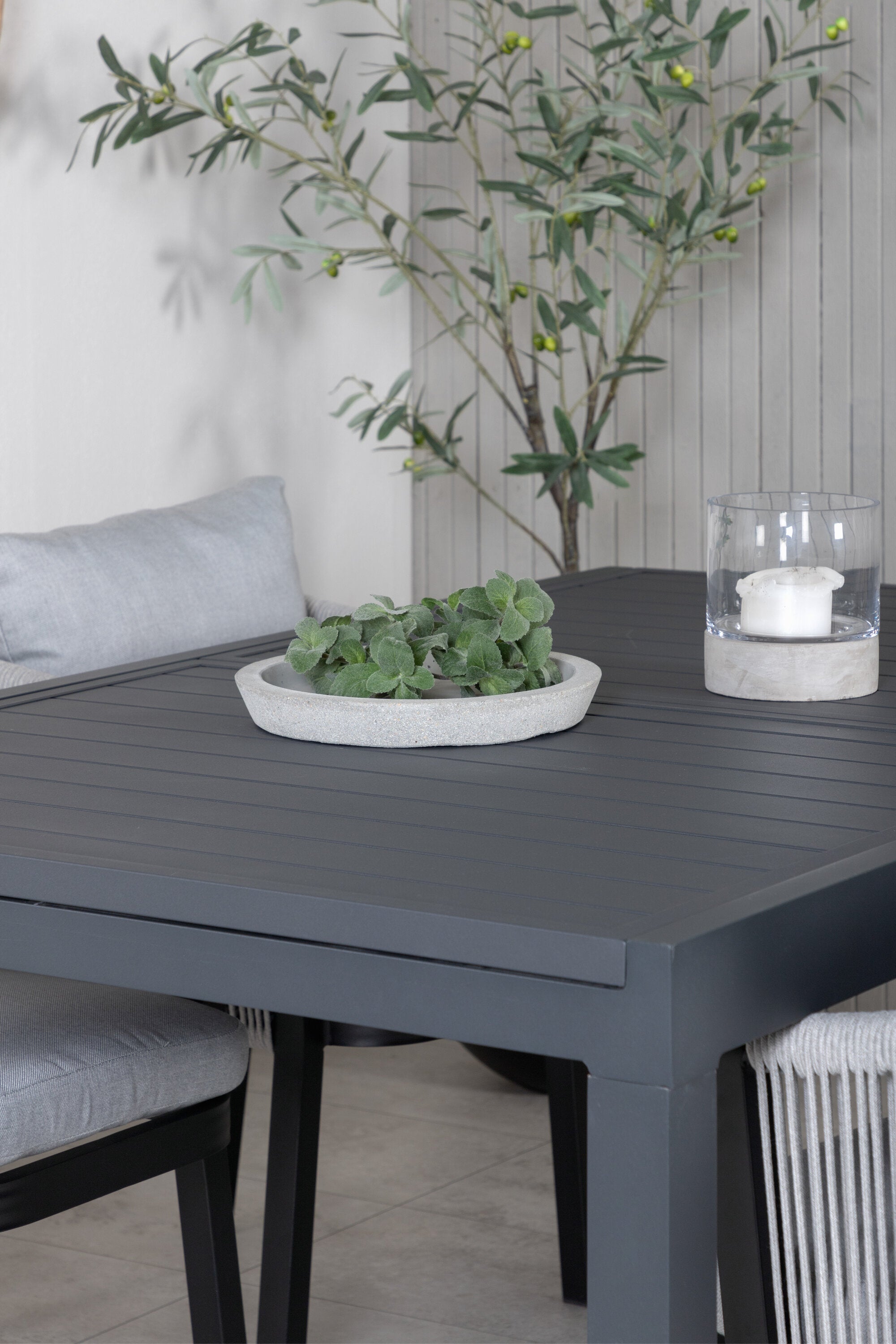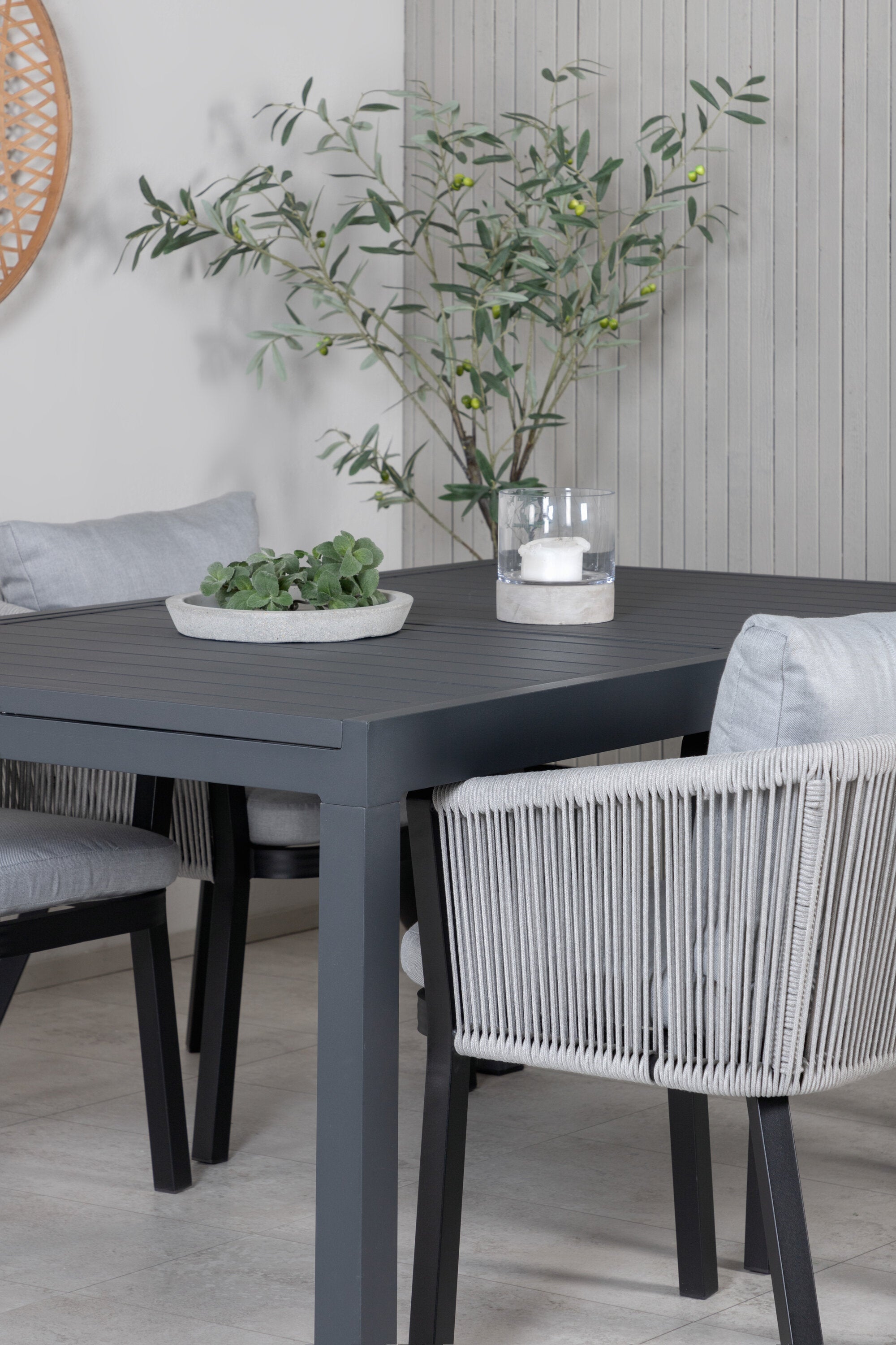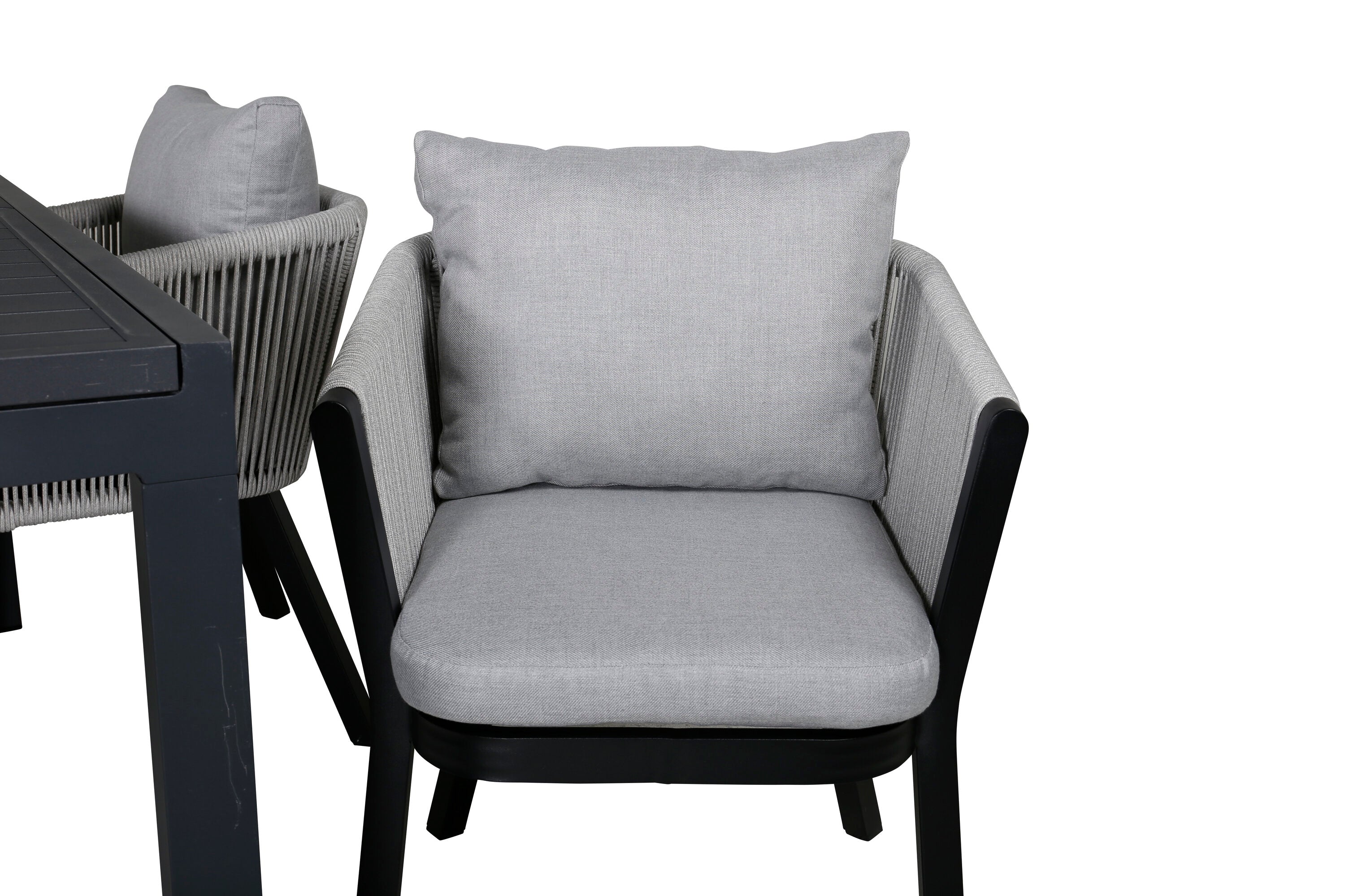 Stůl Marbella 160/240 - Černá/Černá+Virya Jídelní židle - ČERNÁ Alu / Šedý polštář _4