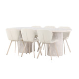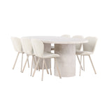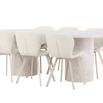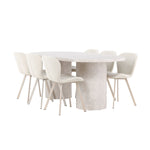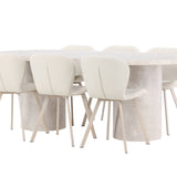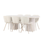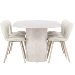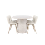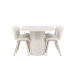 Dodejte svému jídelnímu koutu stylovou a příjemnou atmosféru s tímto elegantním jídelním setem obsahujícím jídelní stůl Narvik a jídelní židle Lilja – dokonalá kombinace sofistikovaného designu a pohodlí.