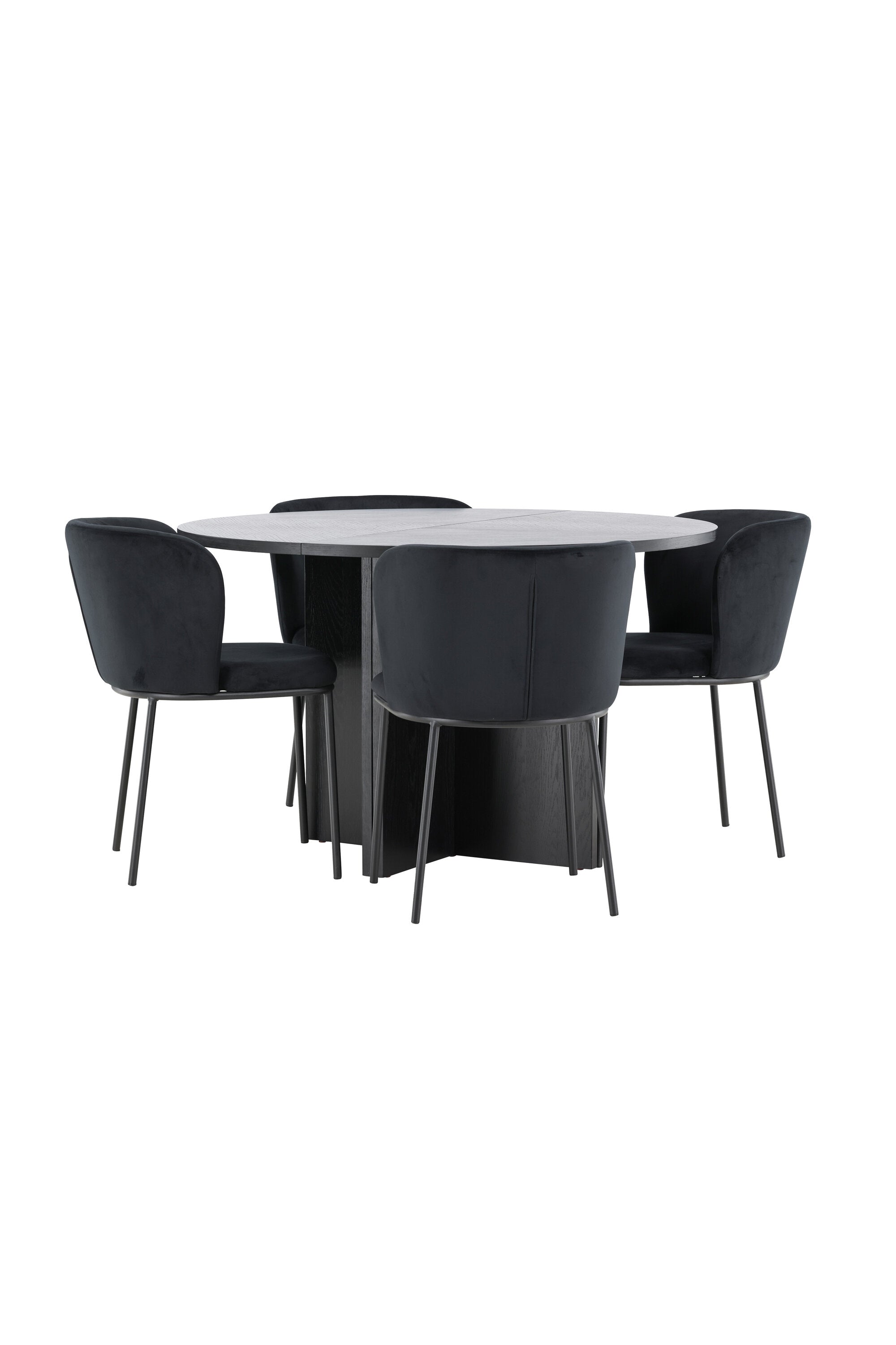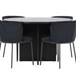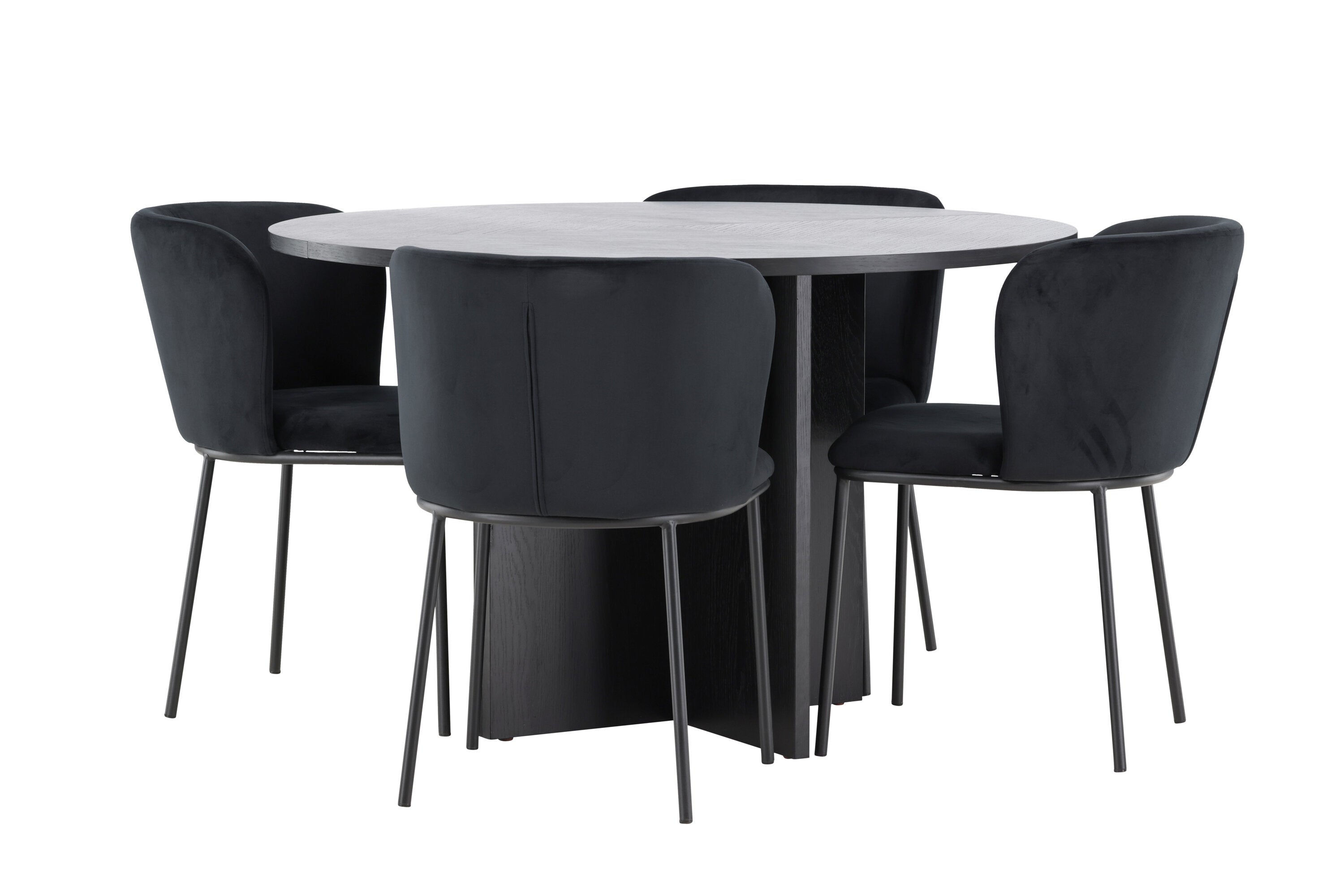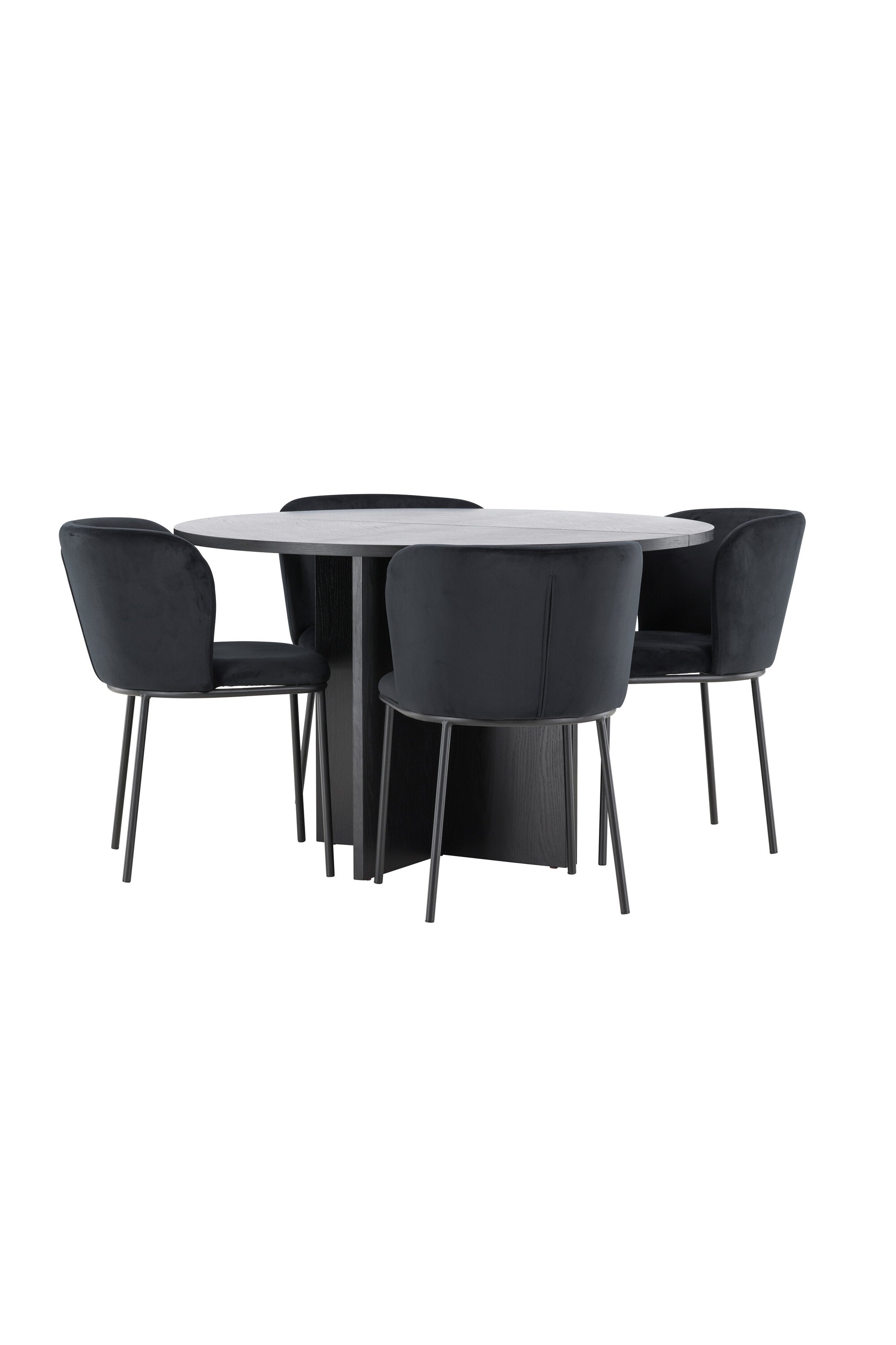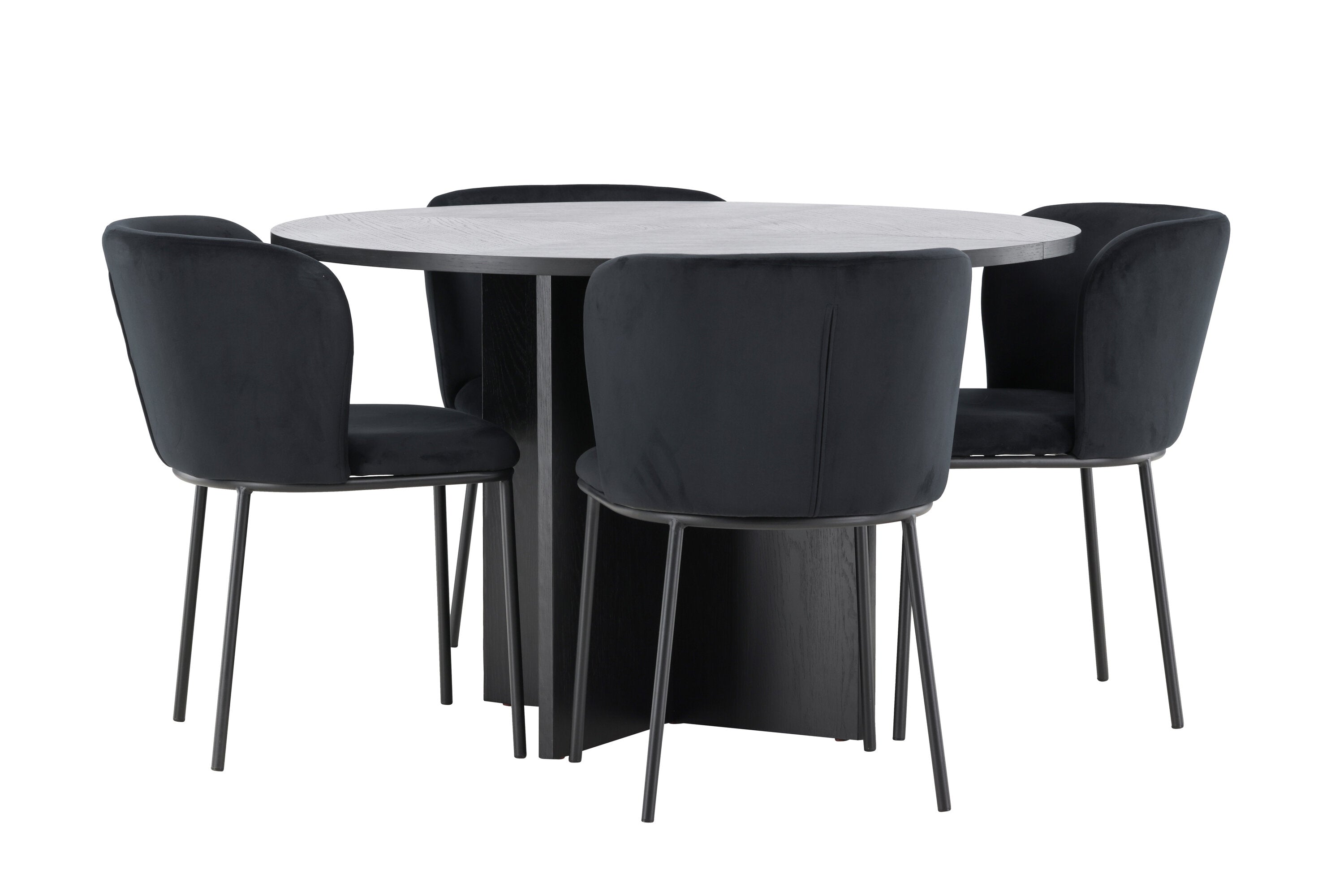 Jídelní židle Edina jsou čalouněny luxusním černým sametem, který dodává bohatý a příjemný nádech. Hluboký černý tón přináší nádech půvabu, zatímco jemný sametový povrch zajišťuje výjimečné pohodlí. Židle jsou navrženy s ohledem na estetiku i ergonomii a jsou ideální pro každodenní stolování i společenská setkání.