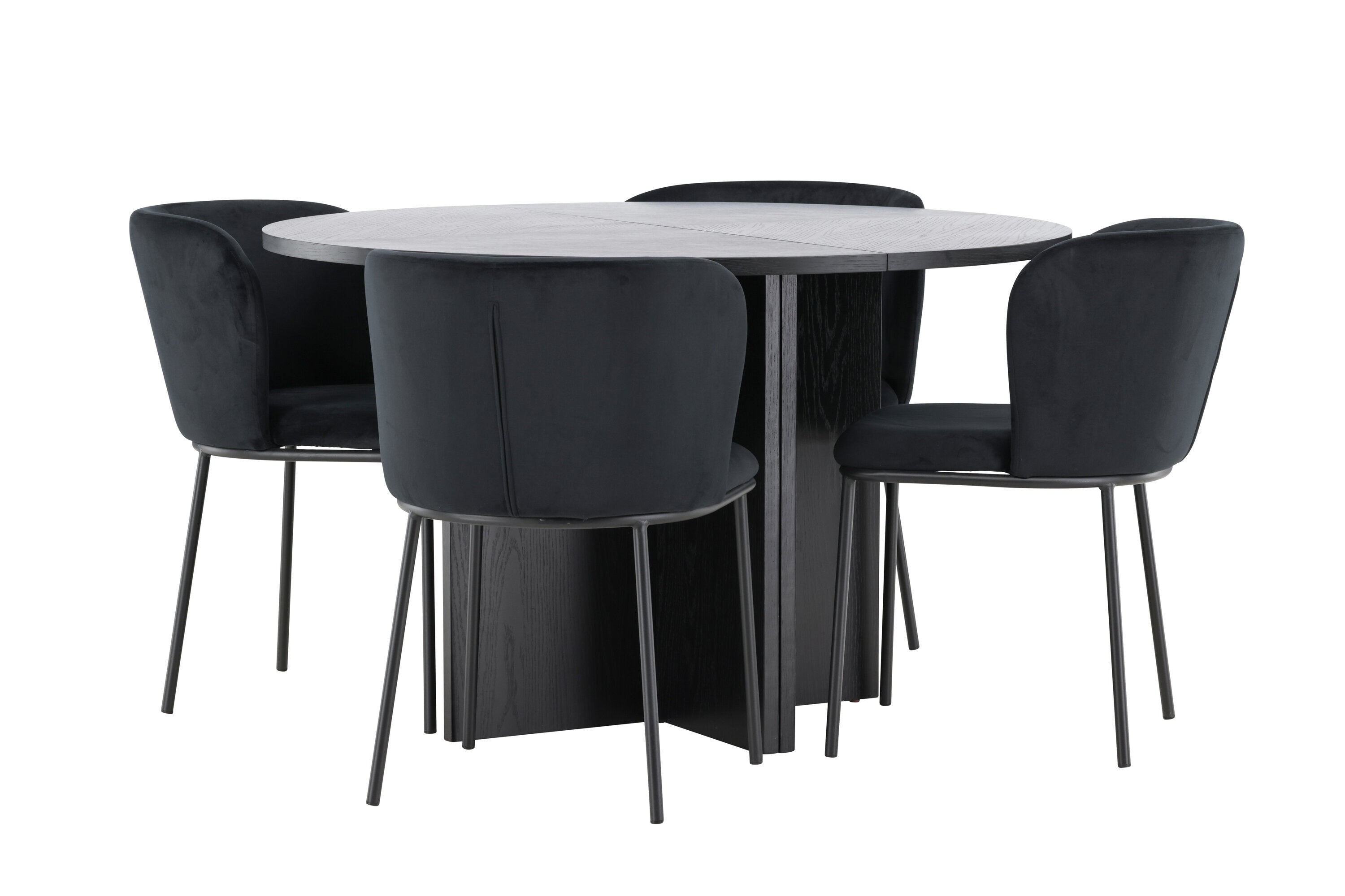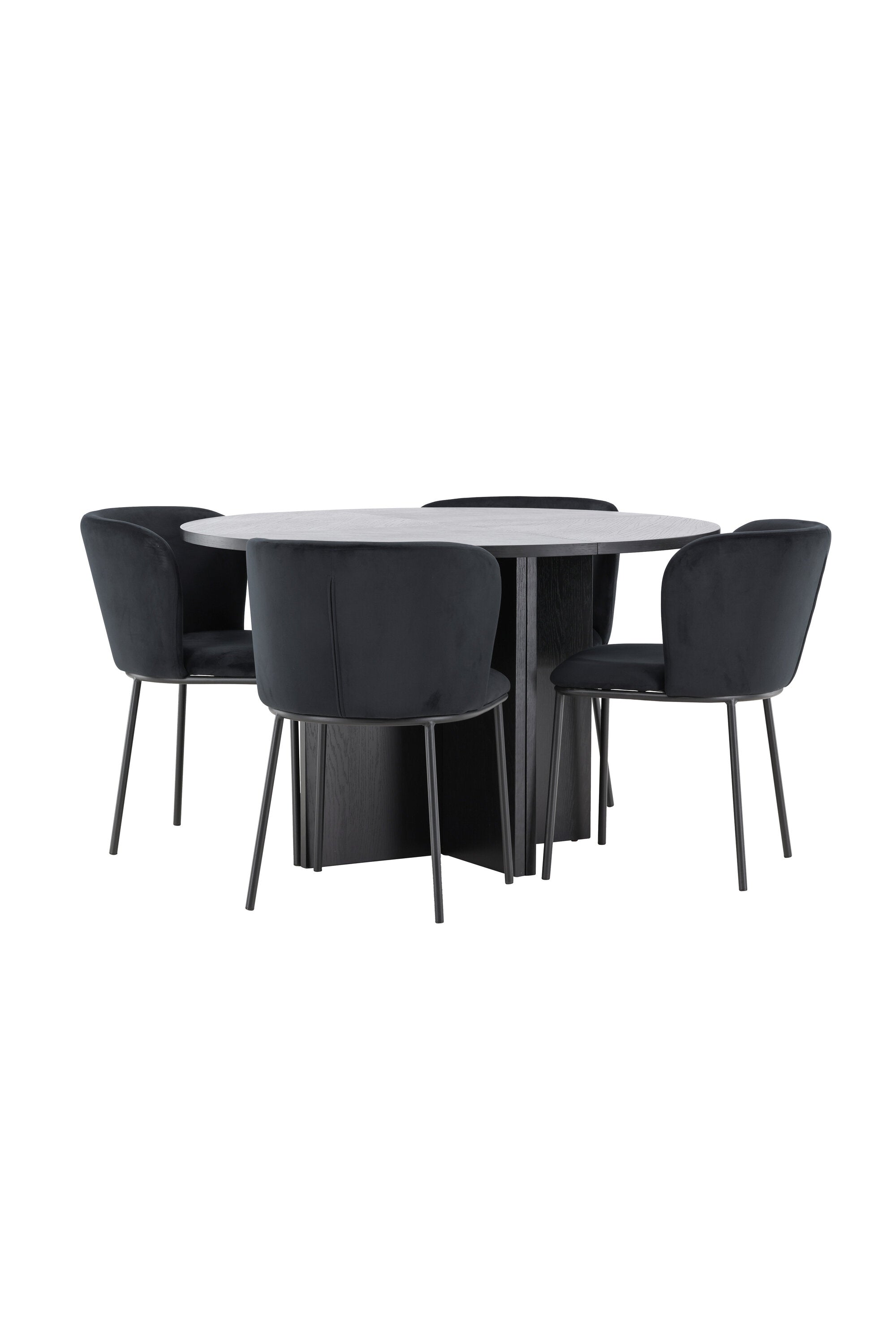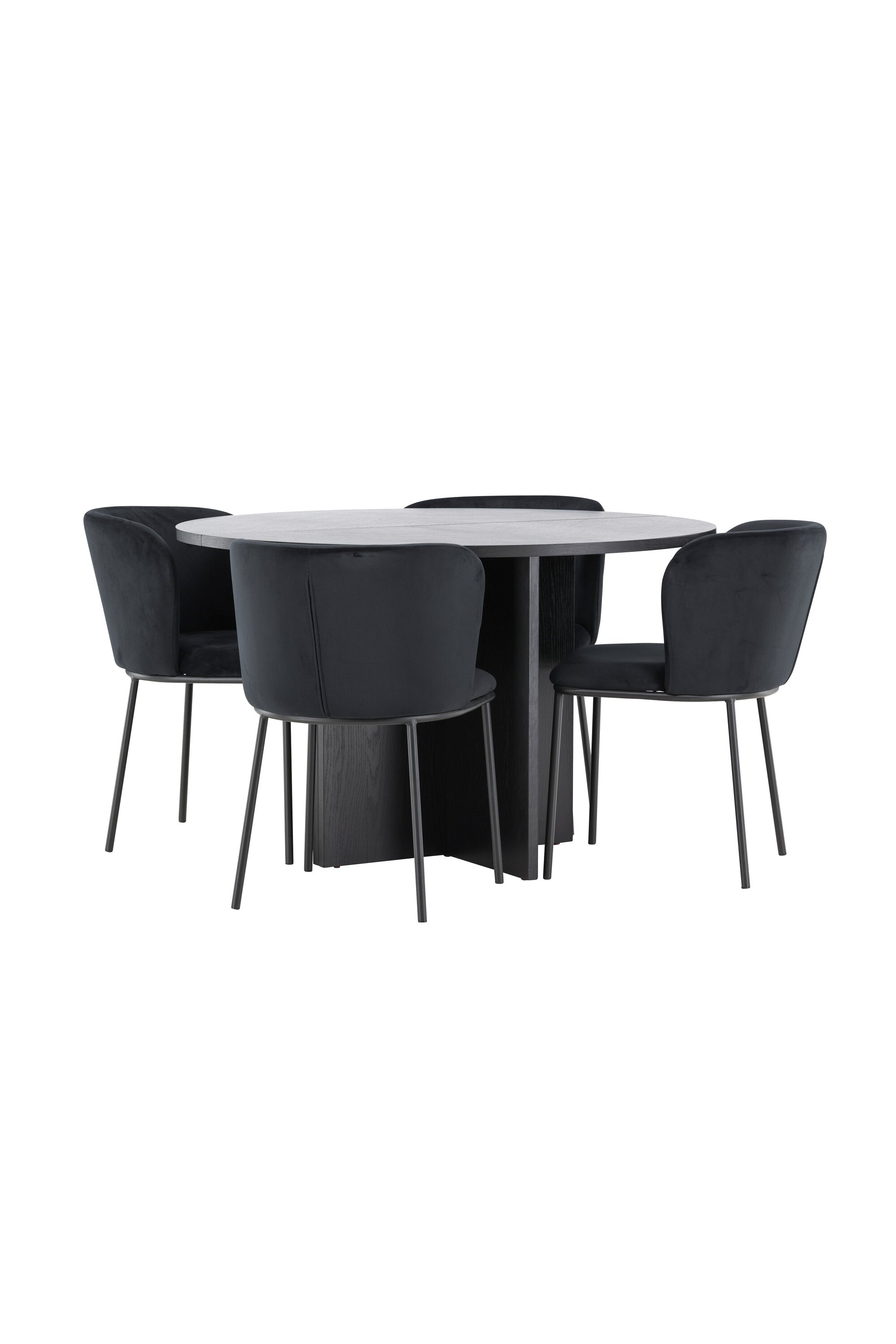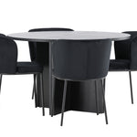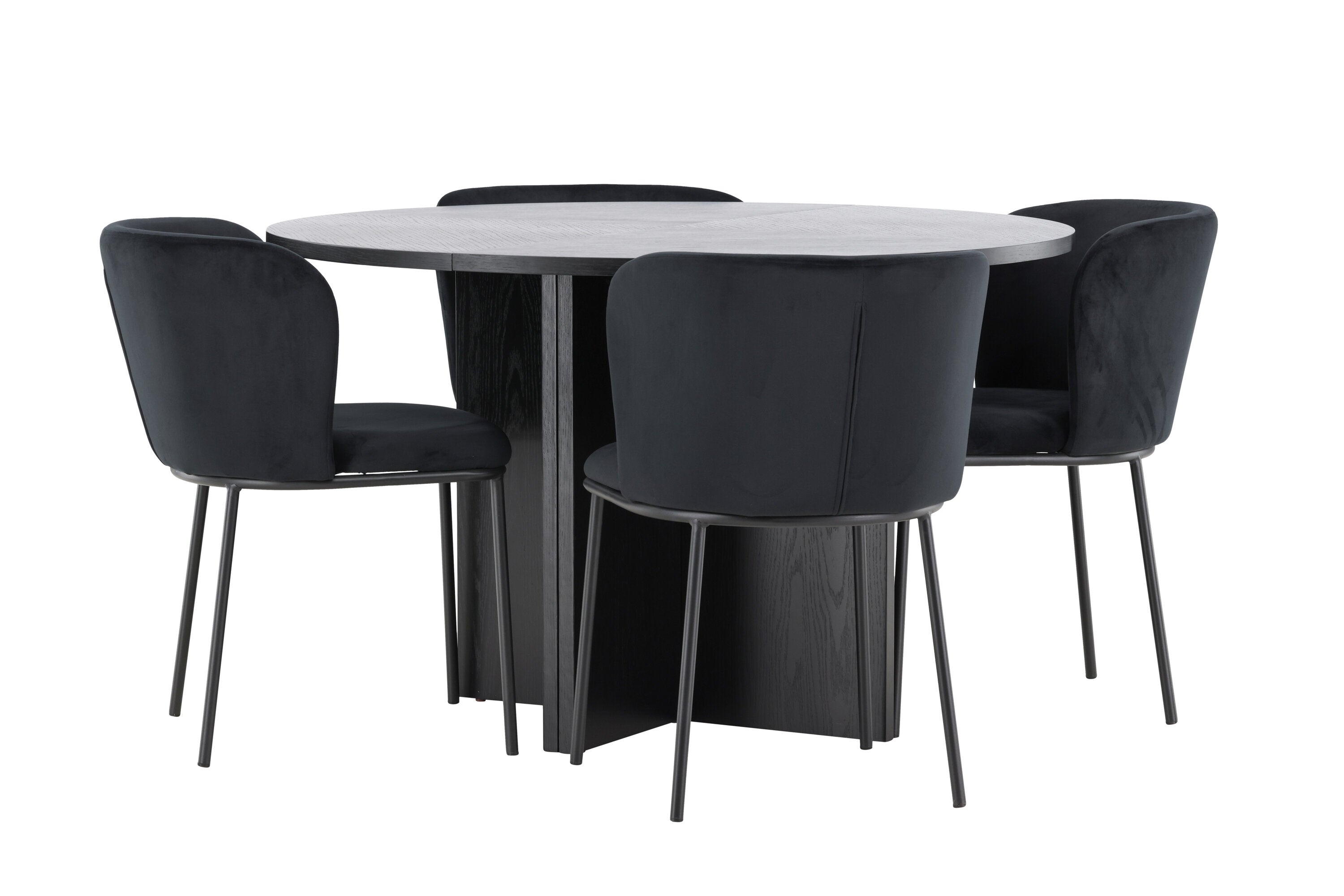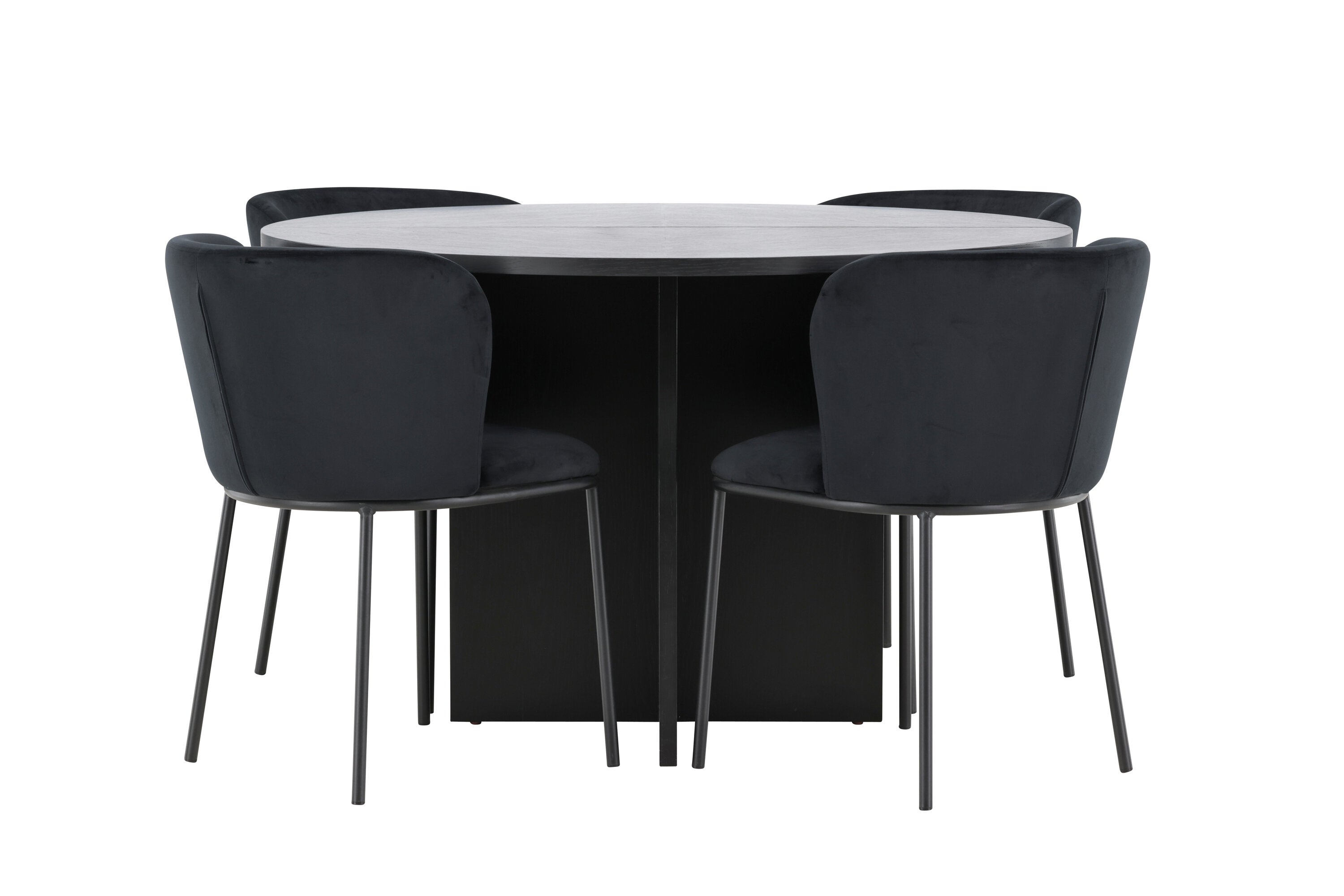 Jídelní židle Edina jsou čalouněny luxusním černým sametem, který dodává bohatý a příjemný nádech. Hluboký černý tón přináší nádech půvabu, zatímco jemný sametový povrch zajišťuje výjimečné pohodlí. Židle jsou navrženy s ohledem na estetiku i ergonomii a jsou ideální pro každodenní stolování i společenská setkání.