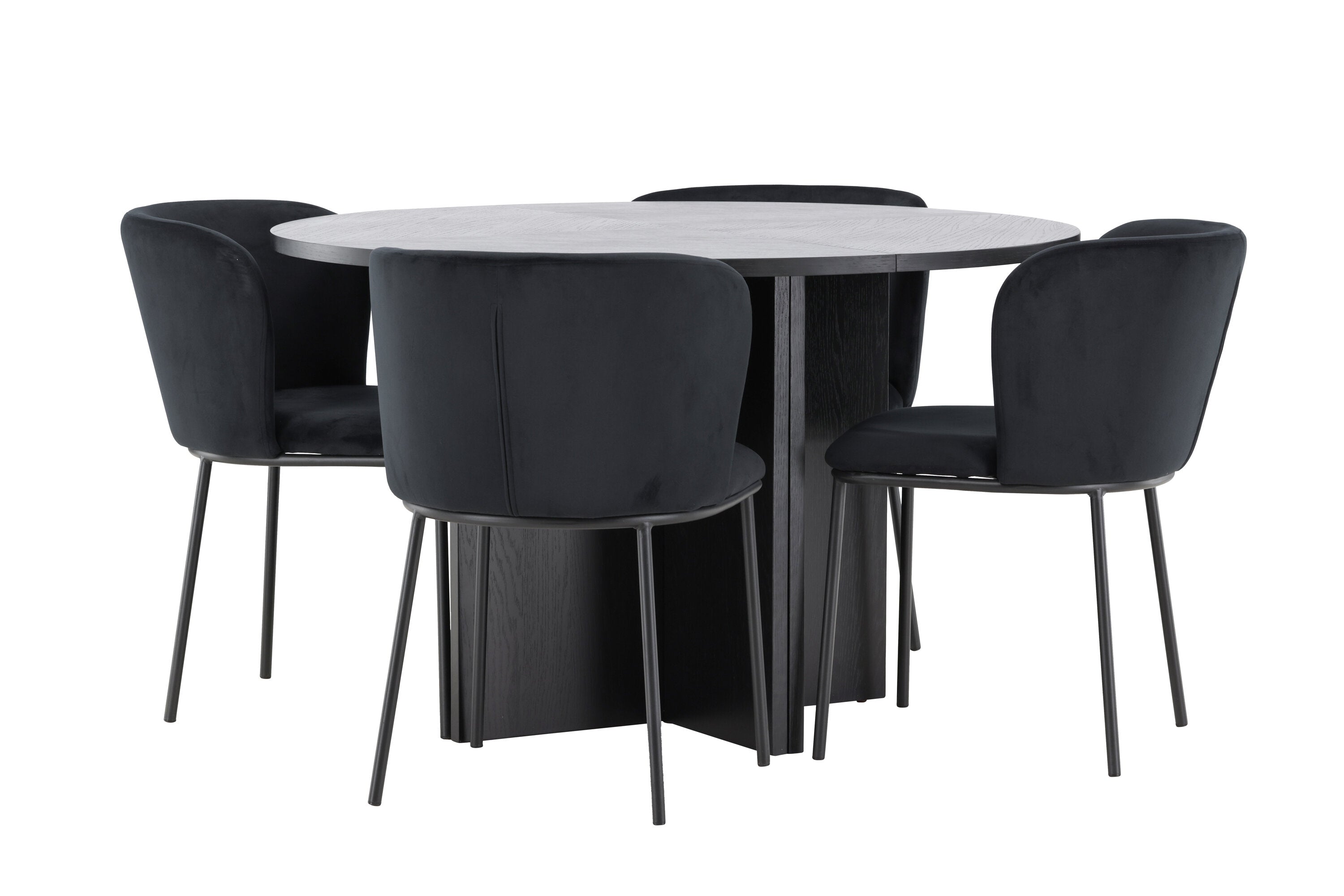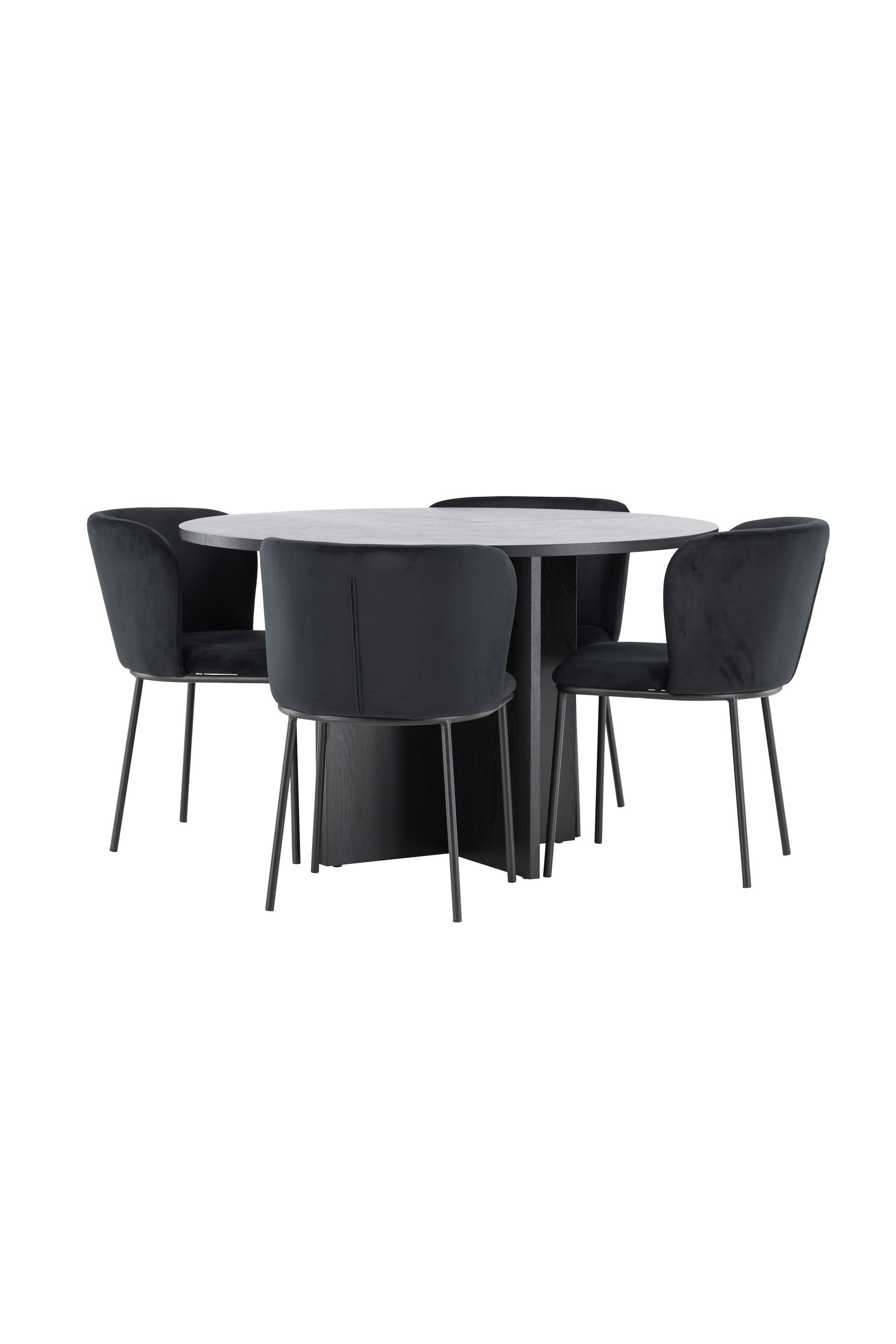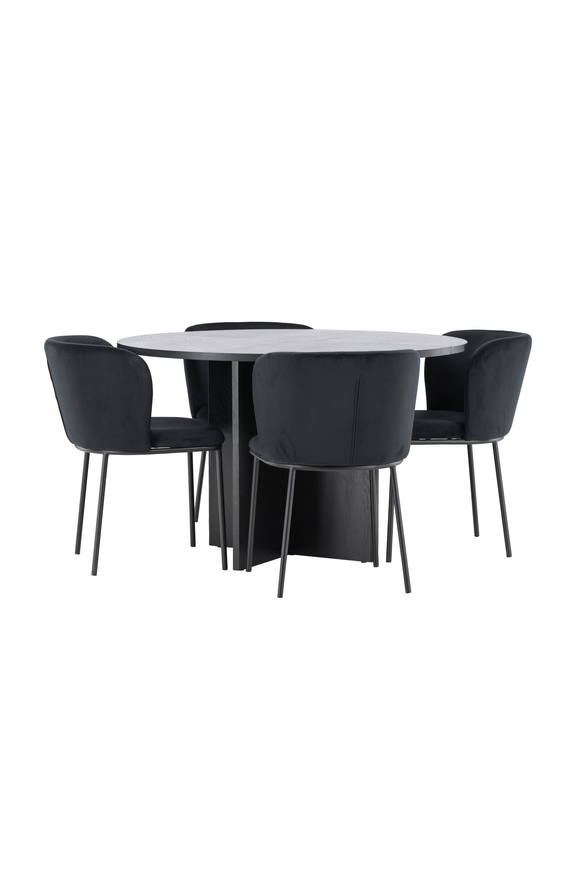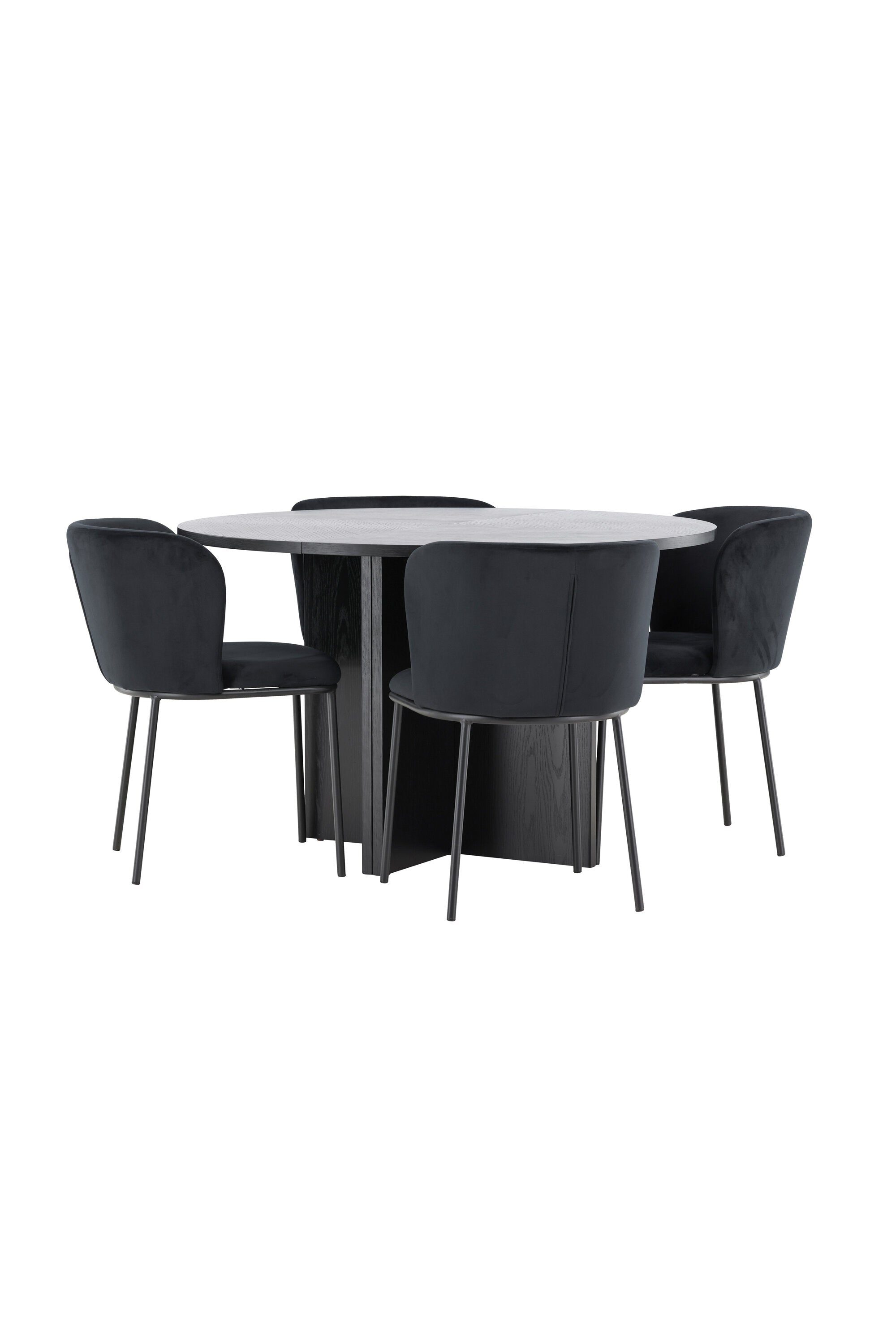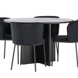 Jídelní židle Edina jsou čalouněny luxusním černým sametem, který dodává bohatý a příjemný nádech. Hluboký černý tón přináší nádech půvabu, zatímco jemný sametový povrch zajišťuje výjimečné pohodlí. Židle jsou navrženy s ohledem na estetiku i ergonomii a jsou ideální pro každodenní stolování i společenská setkání.