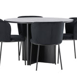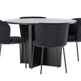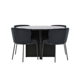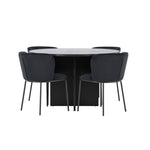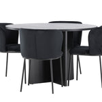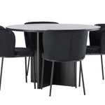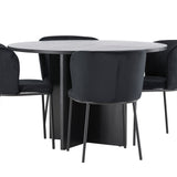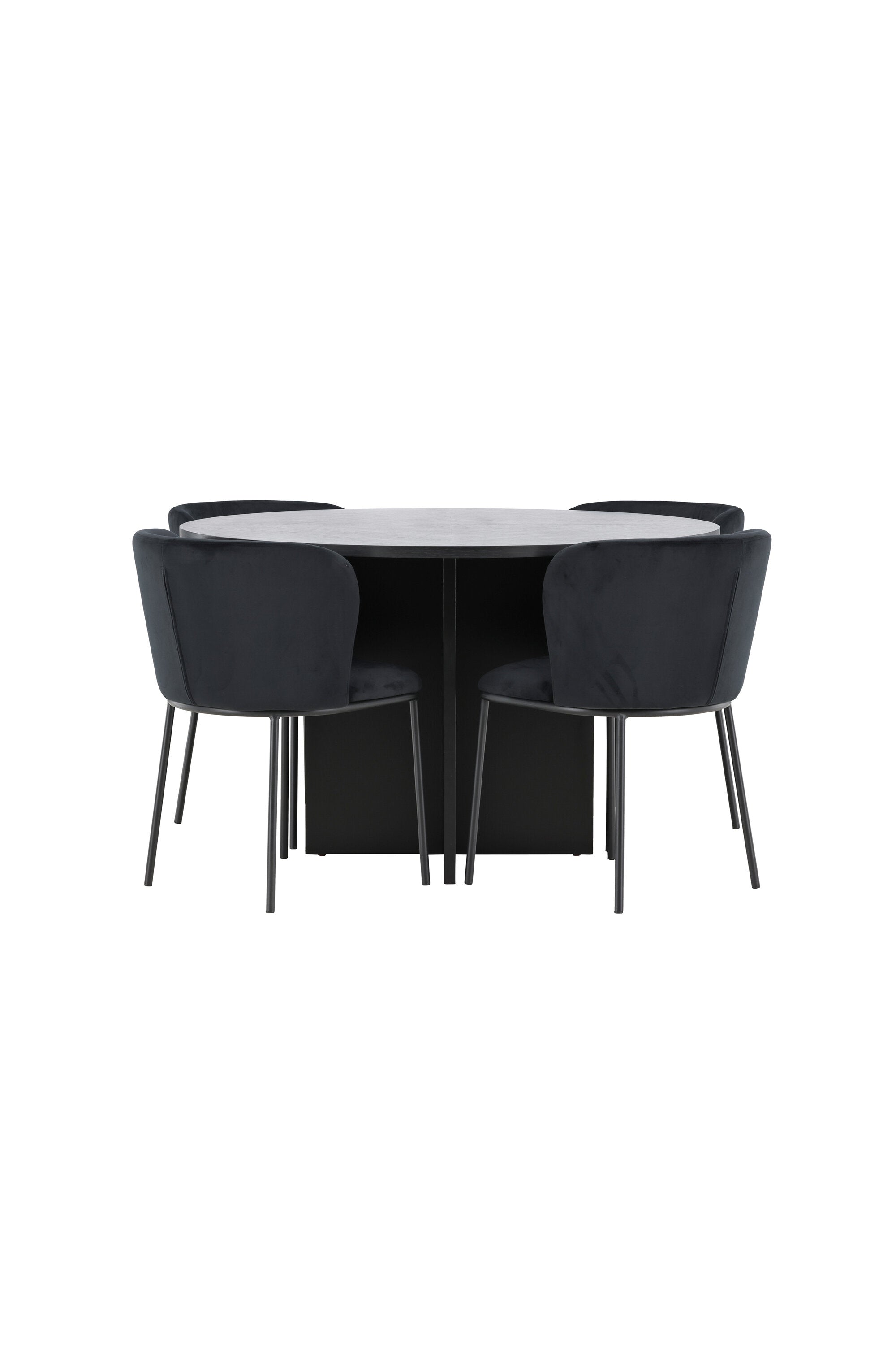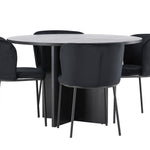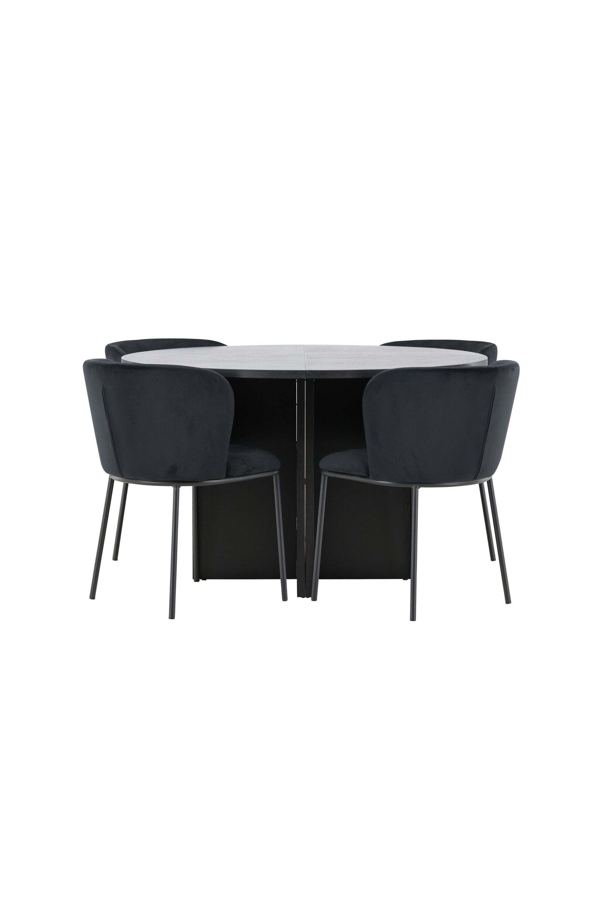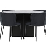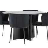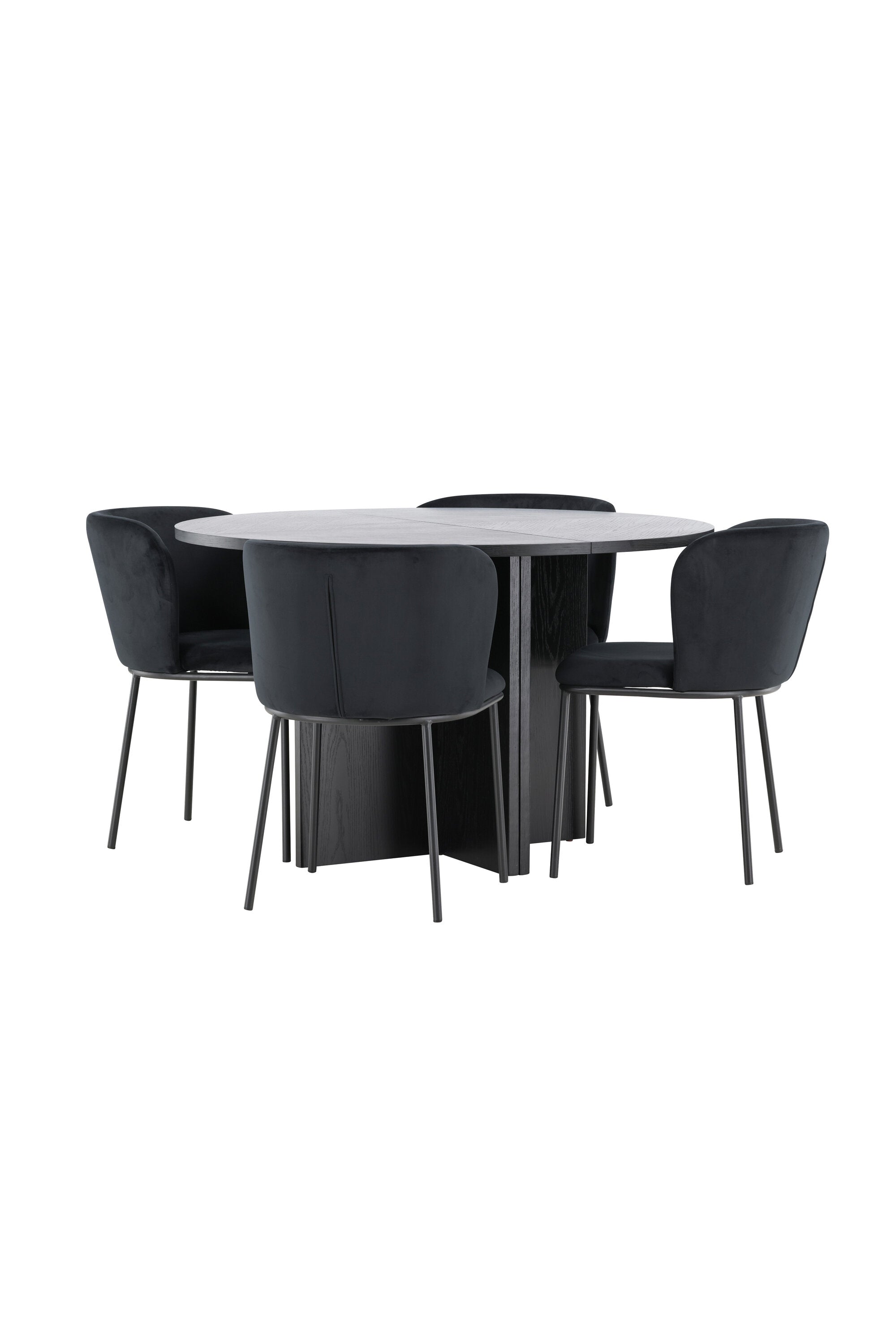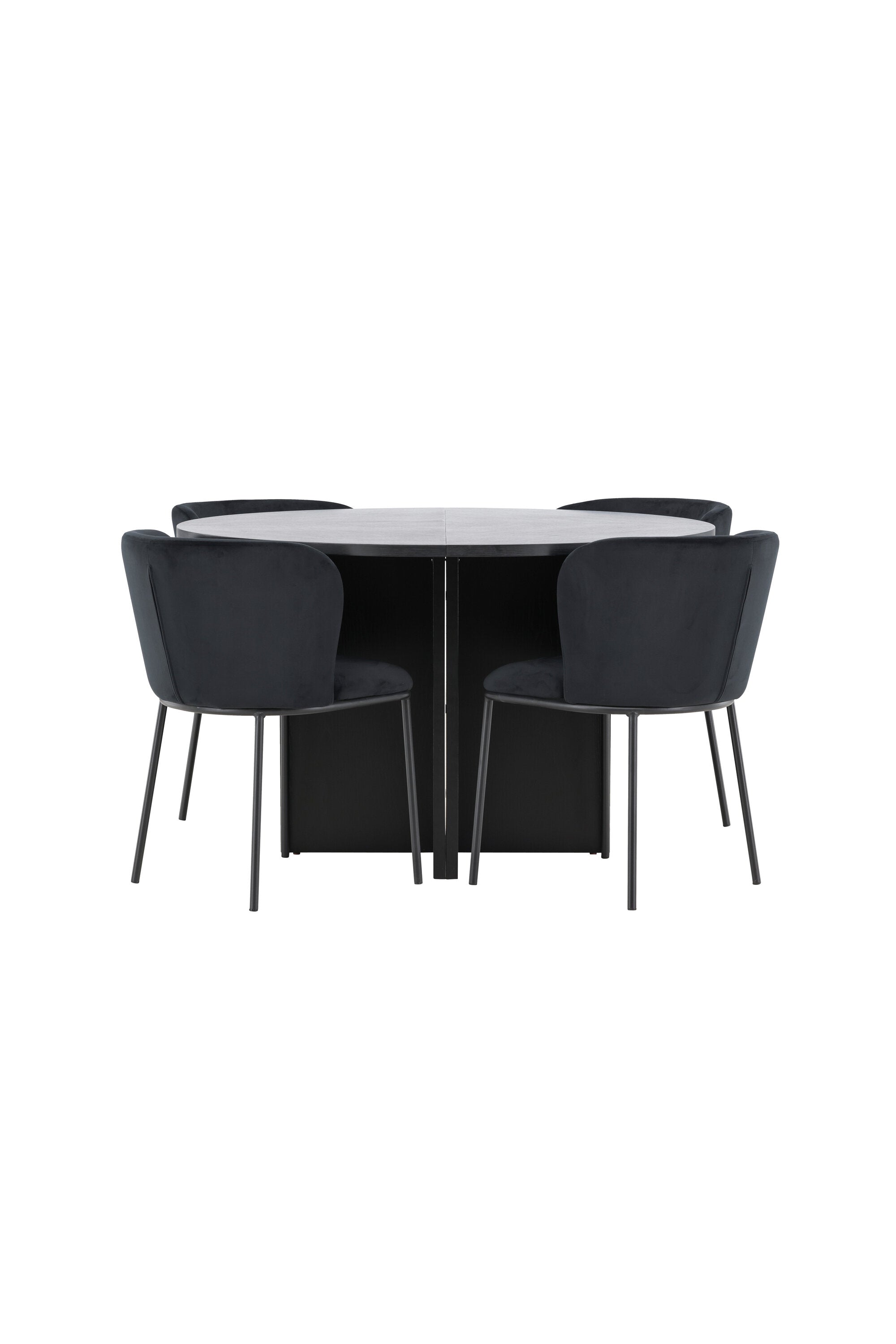Jídelní židle Edina jsou čalouněny luxusním černým sametem, který dodává bohatý a příjemný nádech. Hluboký černý tón přináší nádech půvabu, zatímco jemný sametový povrch zajišťuje výjimečné pohodlí. Židle jsou navrženy s ohledem na estetiku i ergonomii a jsou ideální pro každodenní stolování i společenská setkání.