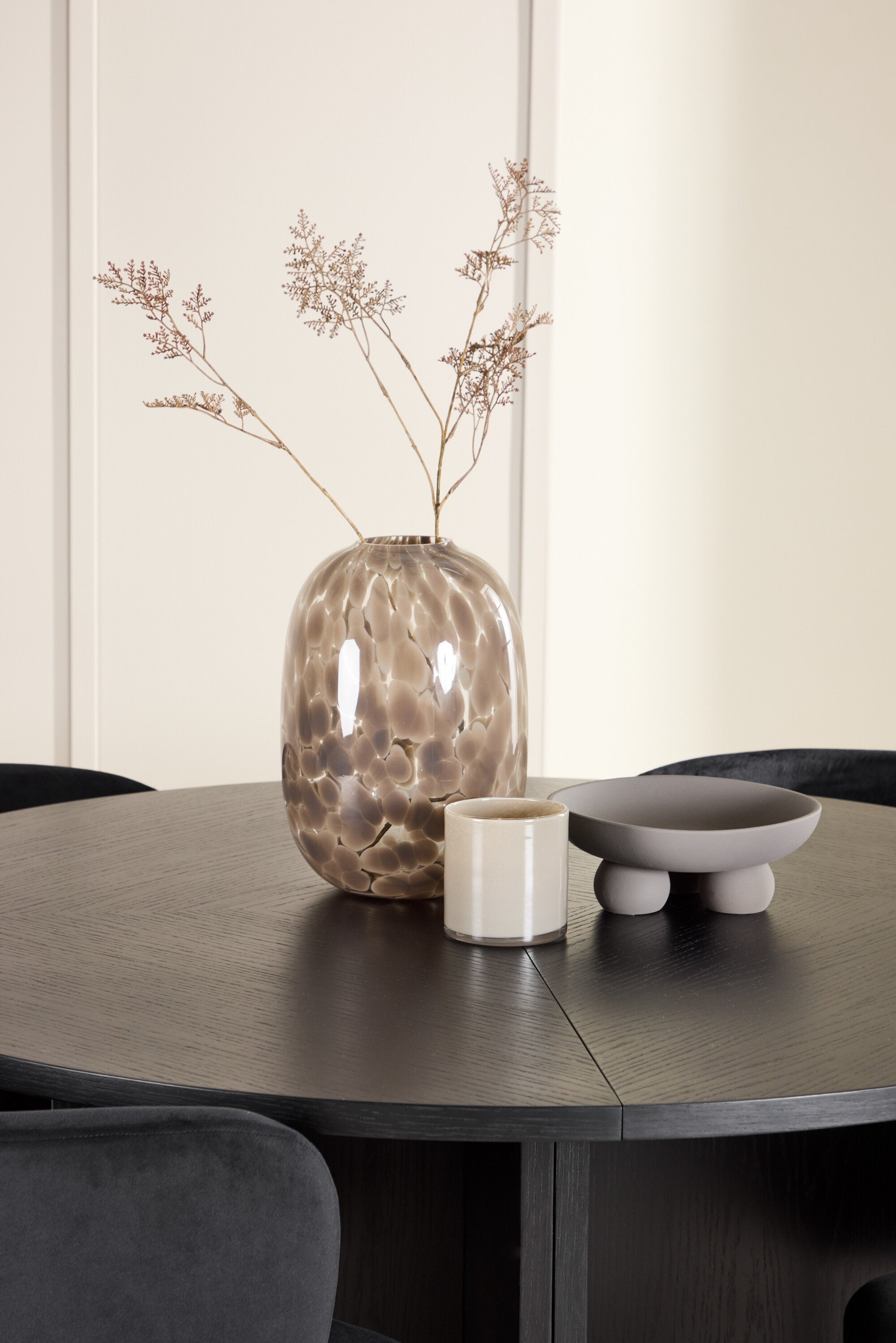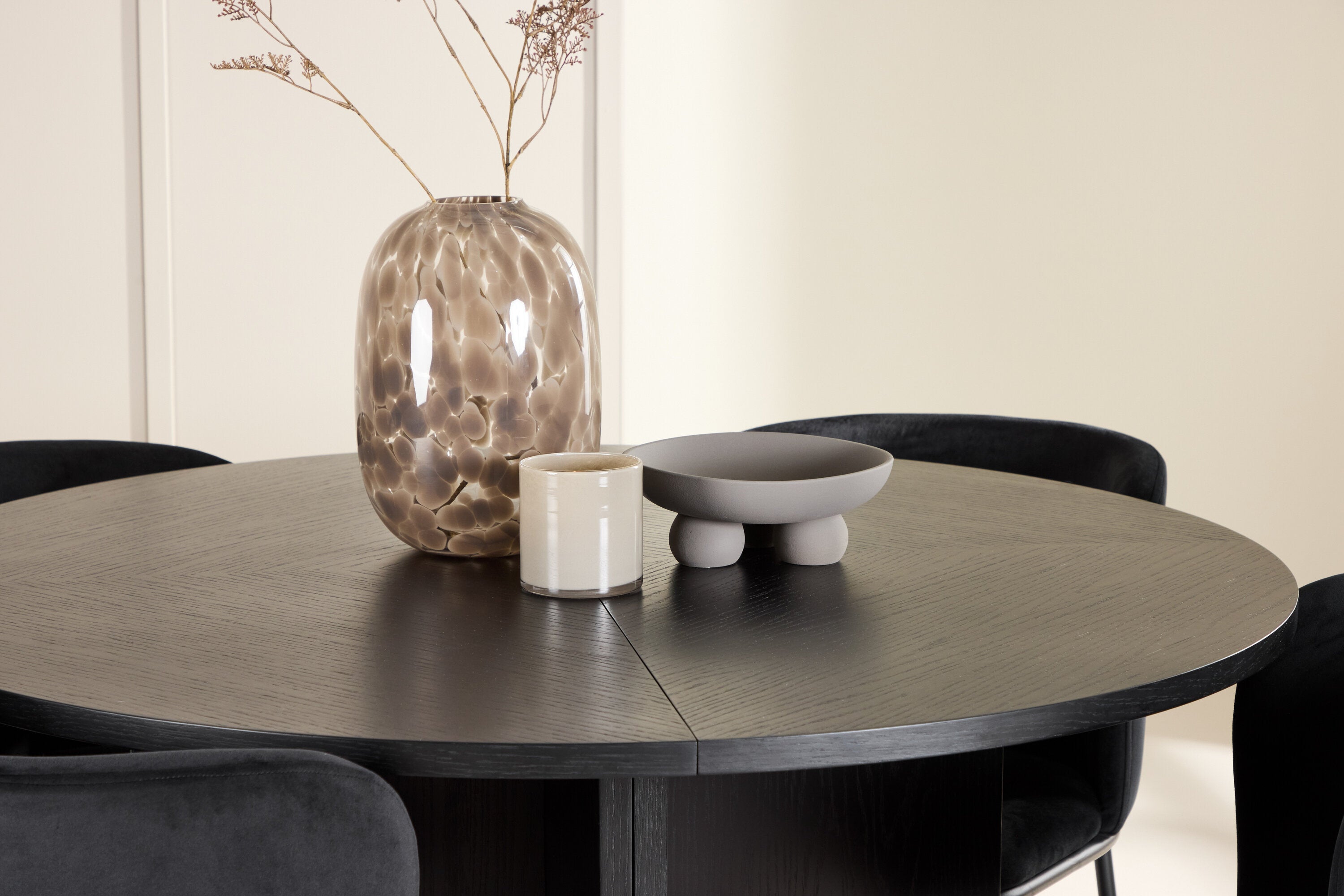 Jídelní stůl Strada je vyroben z černého dýhovaného dřeva a nabízí moderní a nadčasový vzhled. S průměrem 120 cm je ideální pro menší jídla, ale pokud potřebujete další prostor pro hosty, lze snadno rozšířit až na 170 cm. Výsuvný mechanismus stolu se snadno používá a poskytuje flexibilitu i styl. Černé dýhované dřevo zvýrazňuje čisté linie a elegantní design stolu, což z něj činí všestrannou volbu, která doplňuje různé styly interiéru, od minimalistického po klasické.