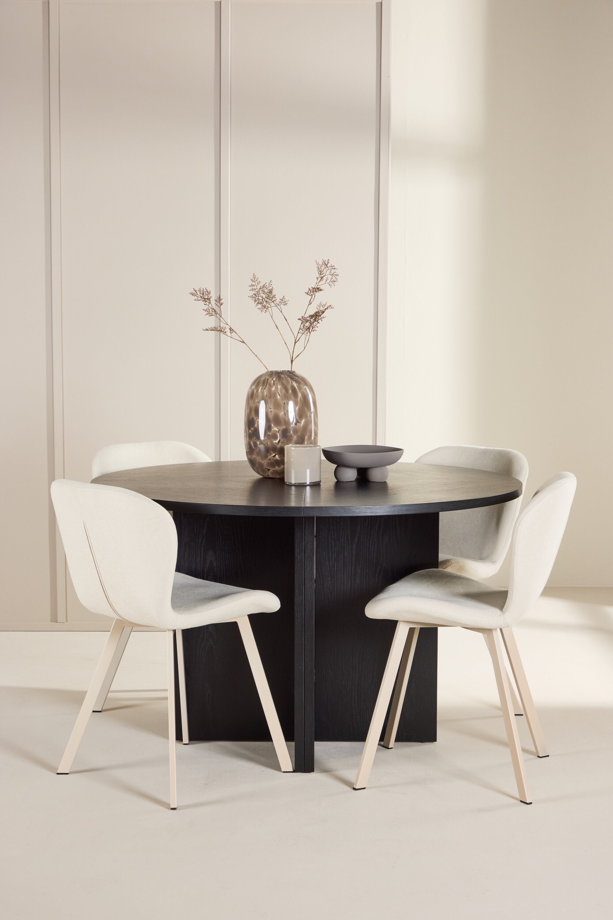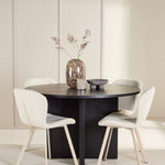 Jídelní stůl Strada je flexibilním a moderním středobodem vyrobeným z elegantního černého dýhového dřeva, díky čemuž je dokonalým středobodem vaší jídelny. S průměrem 120 cm vytváří příjemný a intimní jídelní kout pro každodenní stolování. V případě potřeby lze Strada snadno rozšířit na 170 cm, takže je ideální pro větší setkání a slavnostní večeře s rodinou a přáteli. Jeho elegantní konstrukce z černé dýhy nabízí nadčasový vzhled, který se bez problémů integruje do různých stylů interiéru – od minimalistických a průmyslových až po klasické designy.
