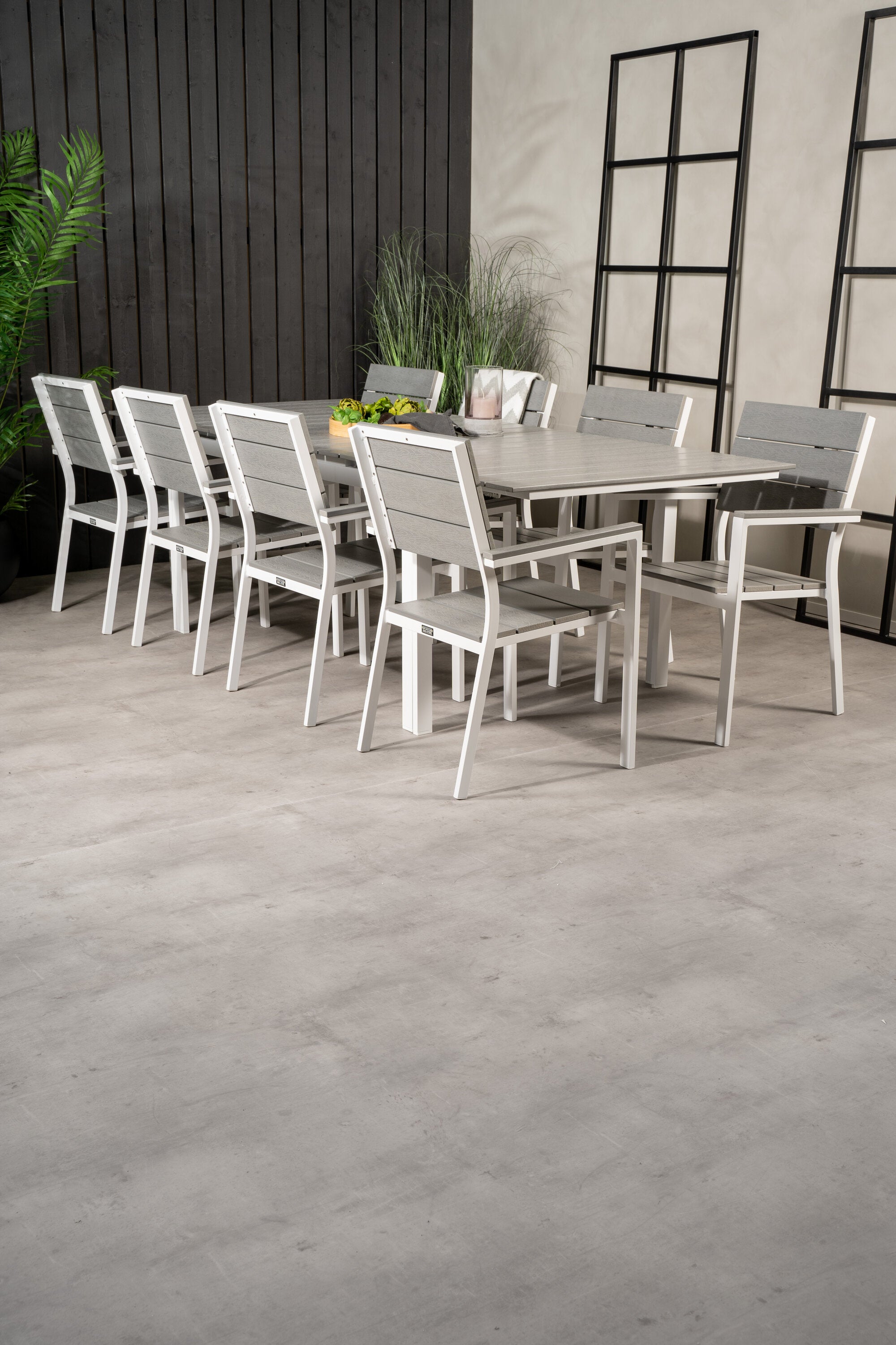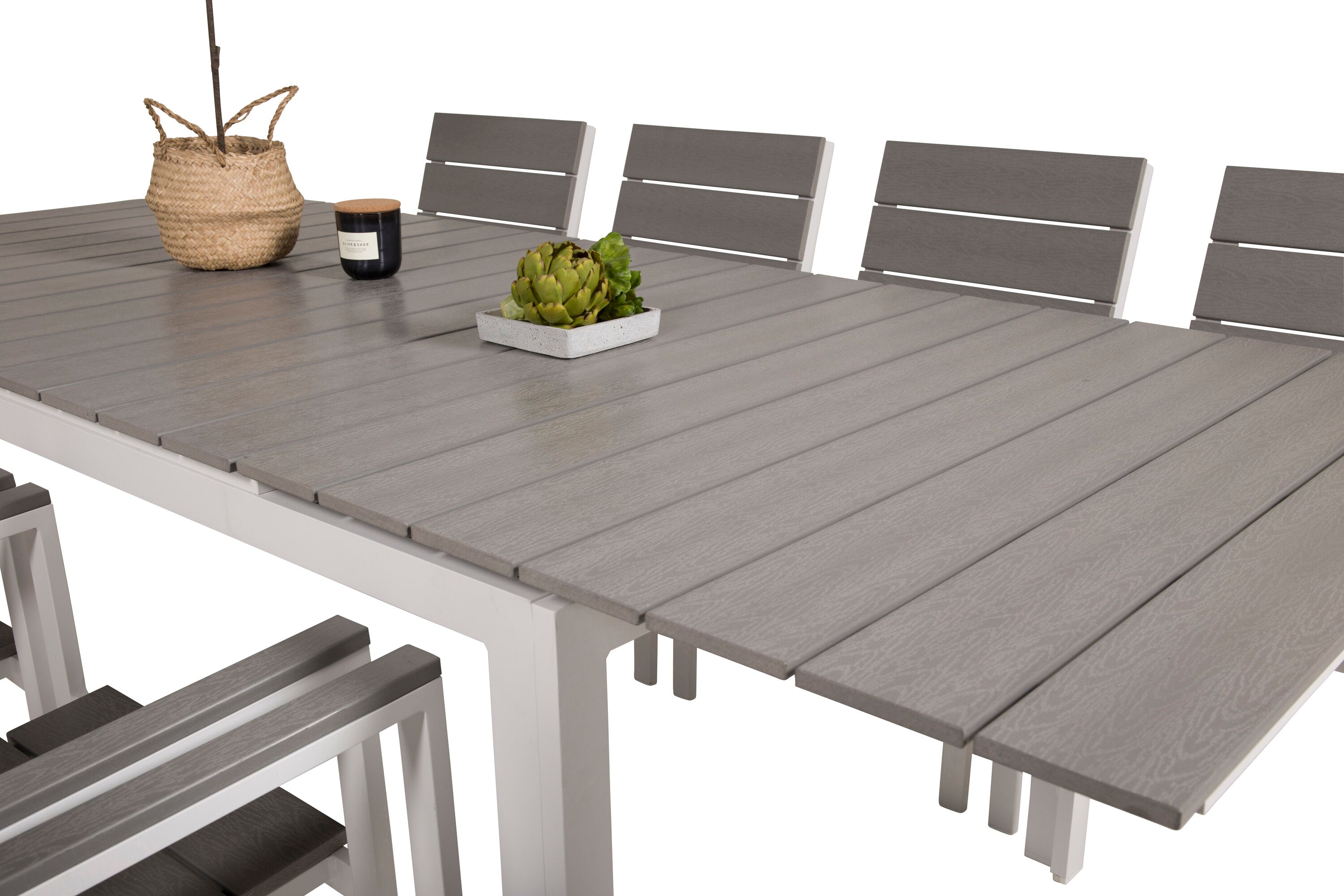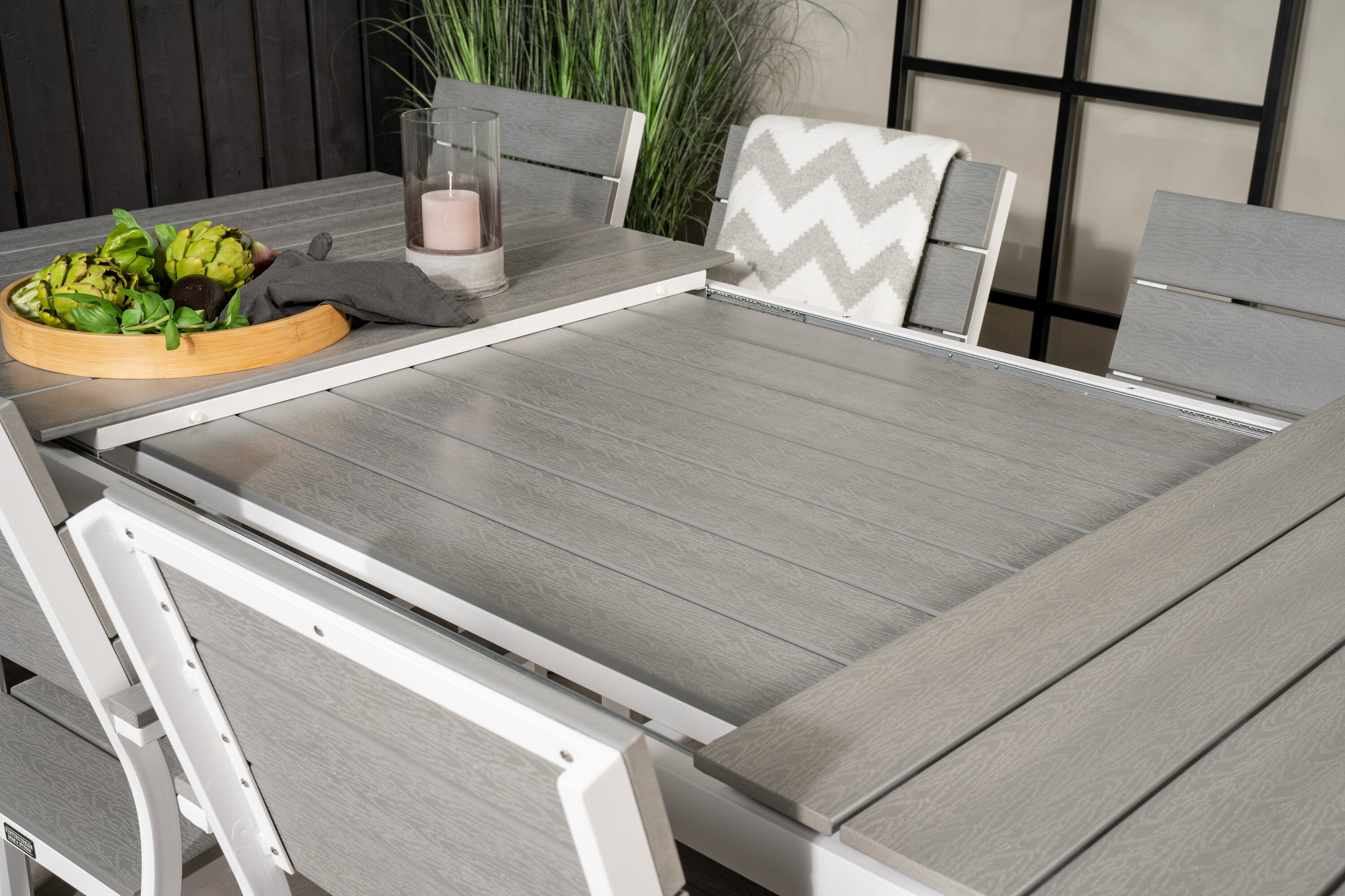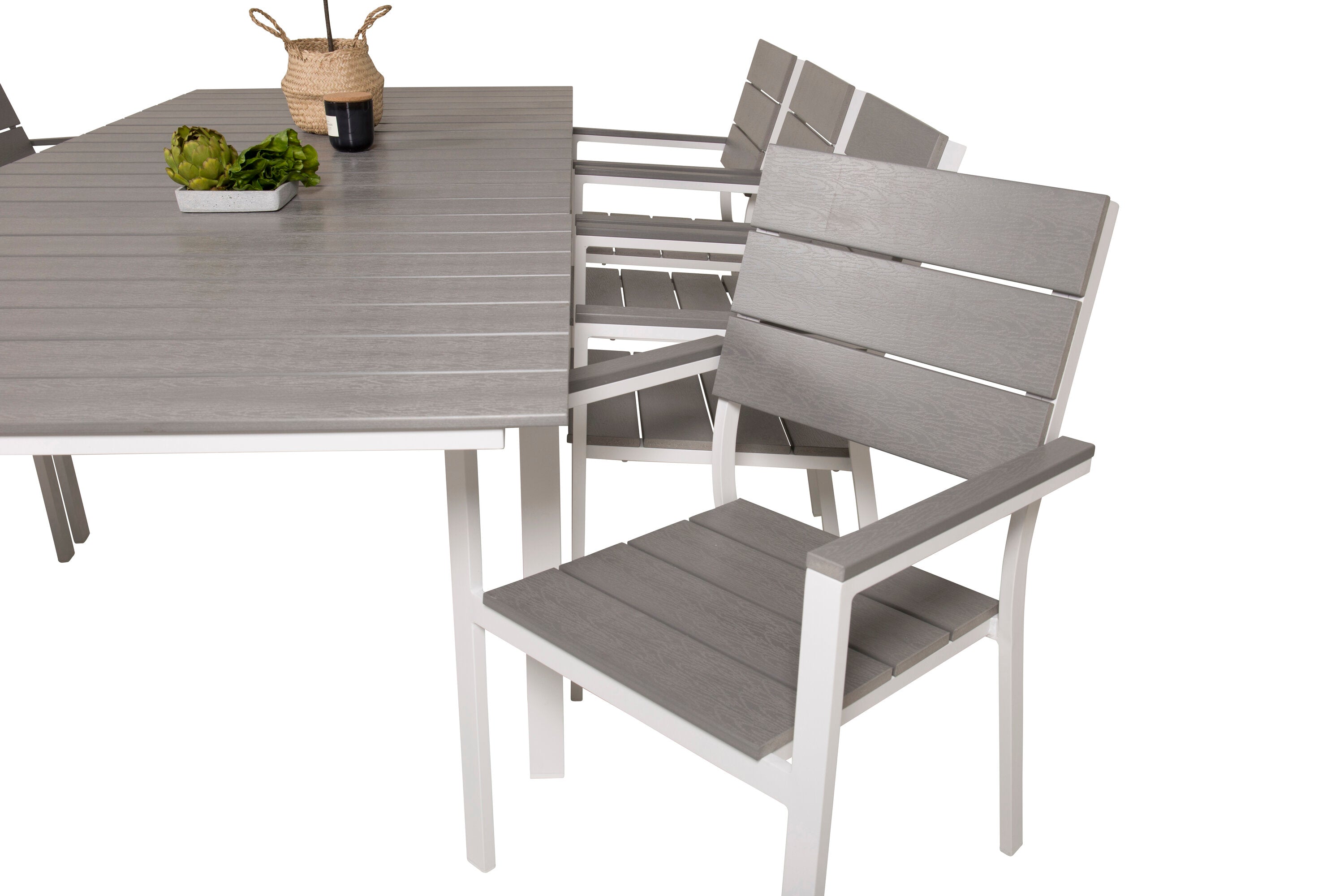 Stůl úrovní 160/240 - Bílá/Šedá - Židle úrovně (stohovatelné) - Bílá Alu / Šedá Aintwood 8