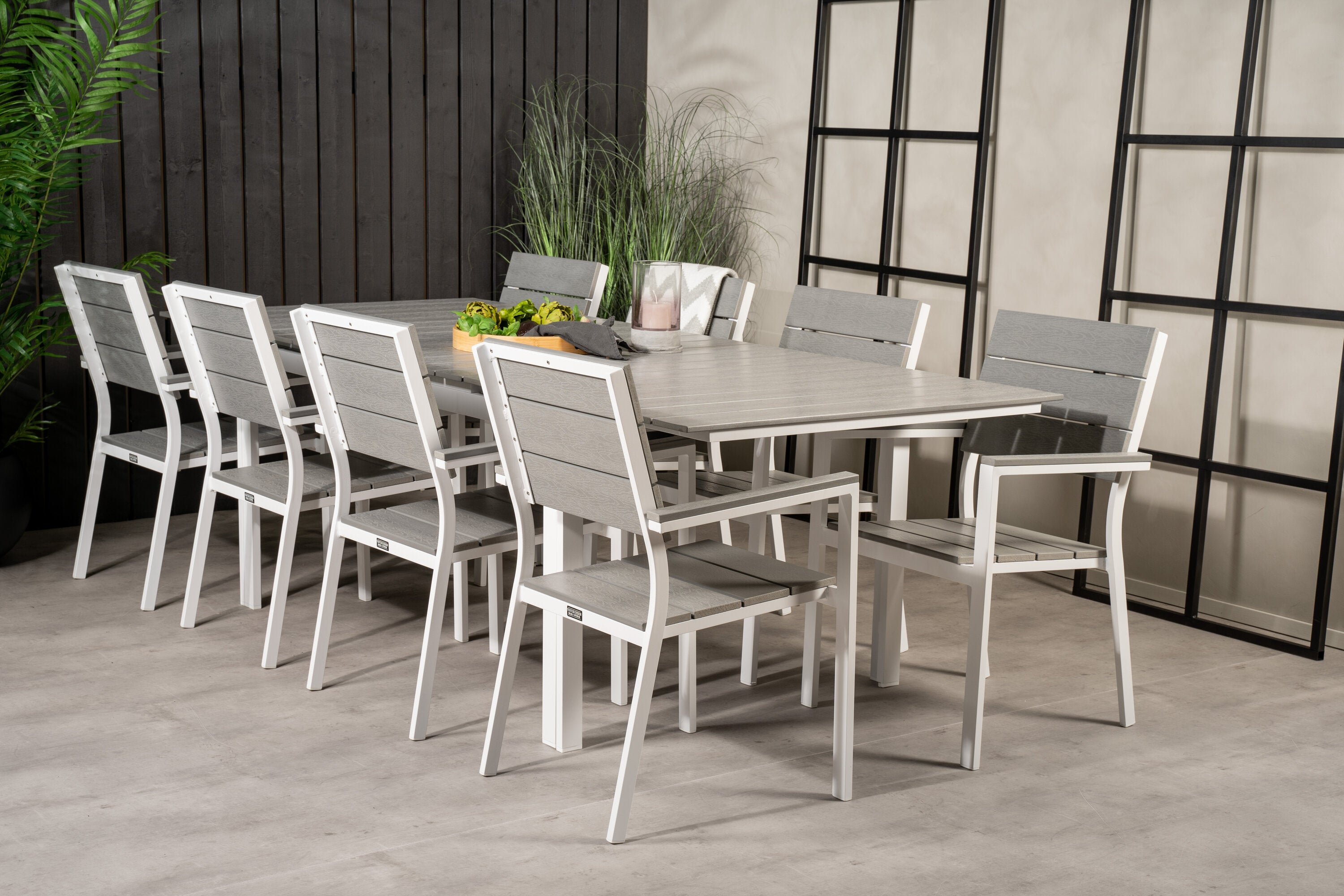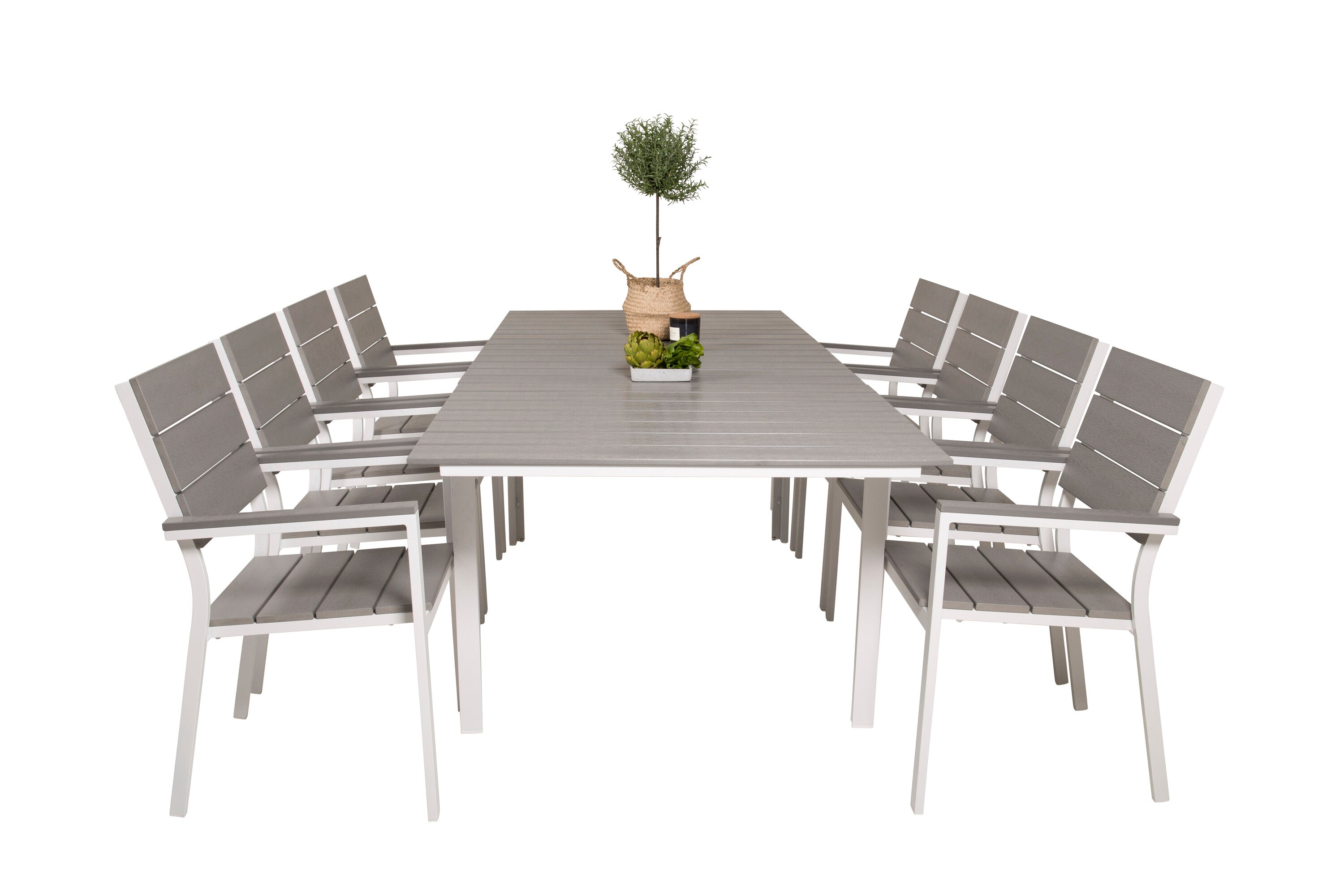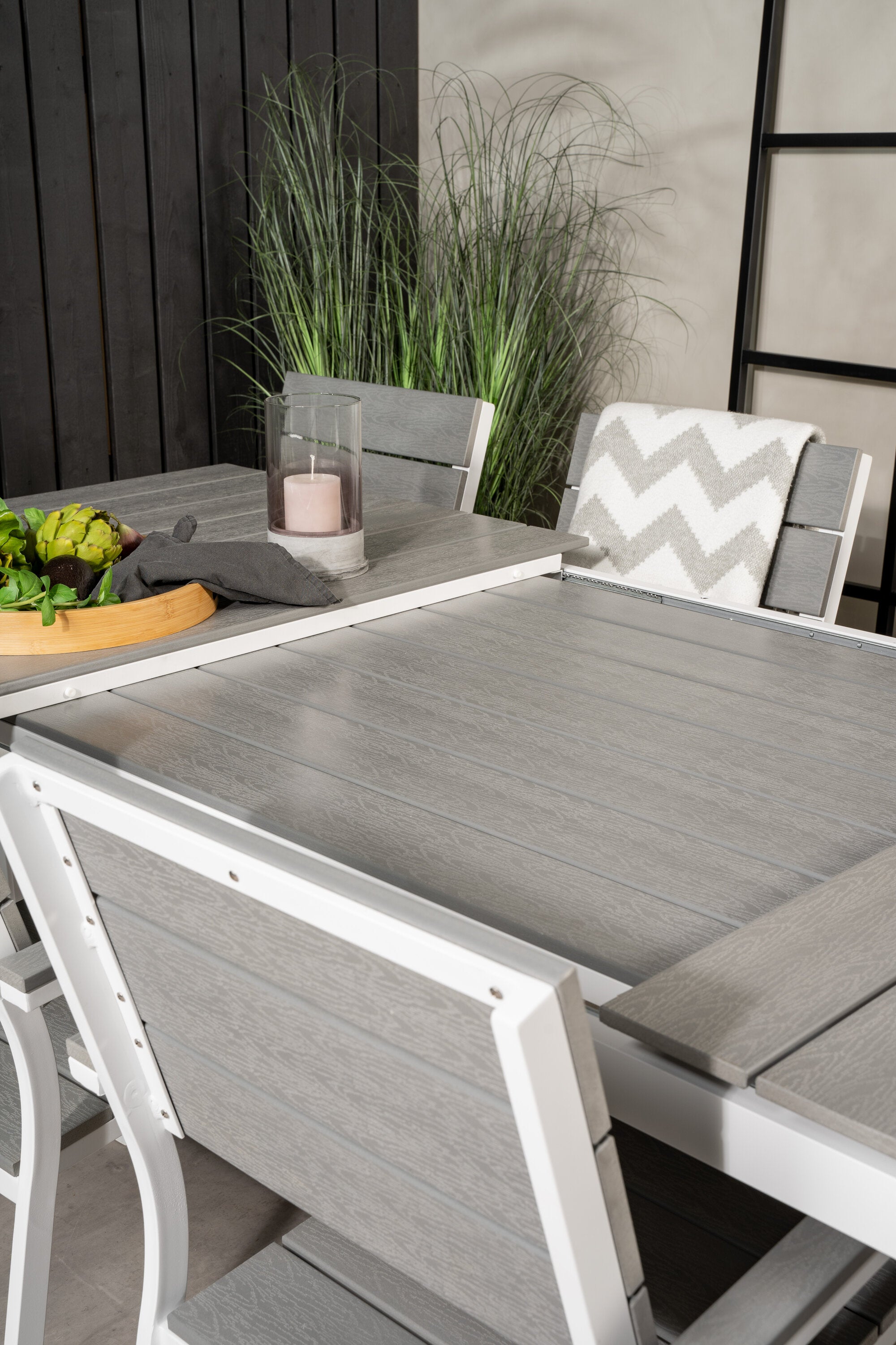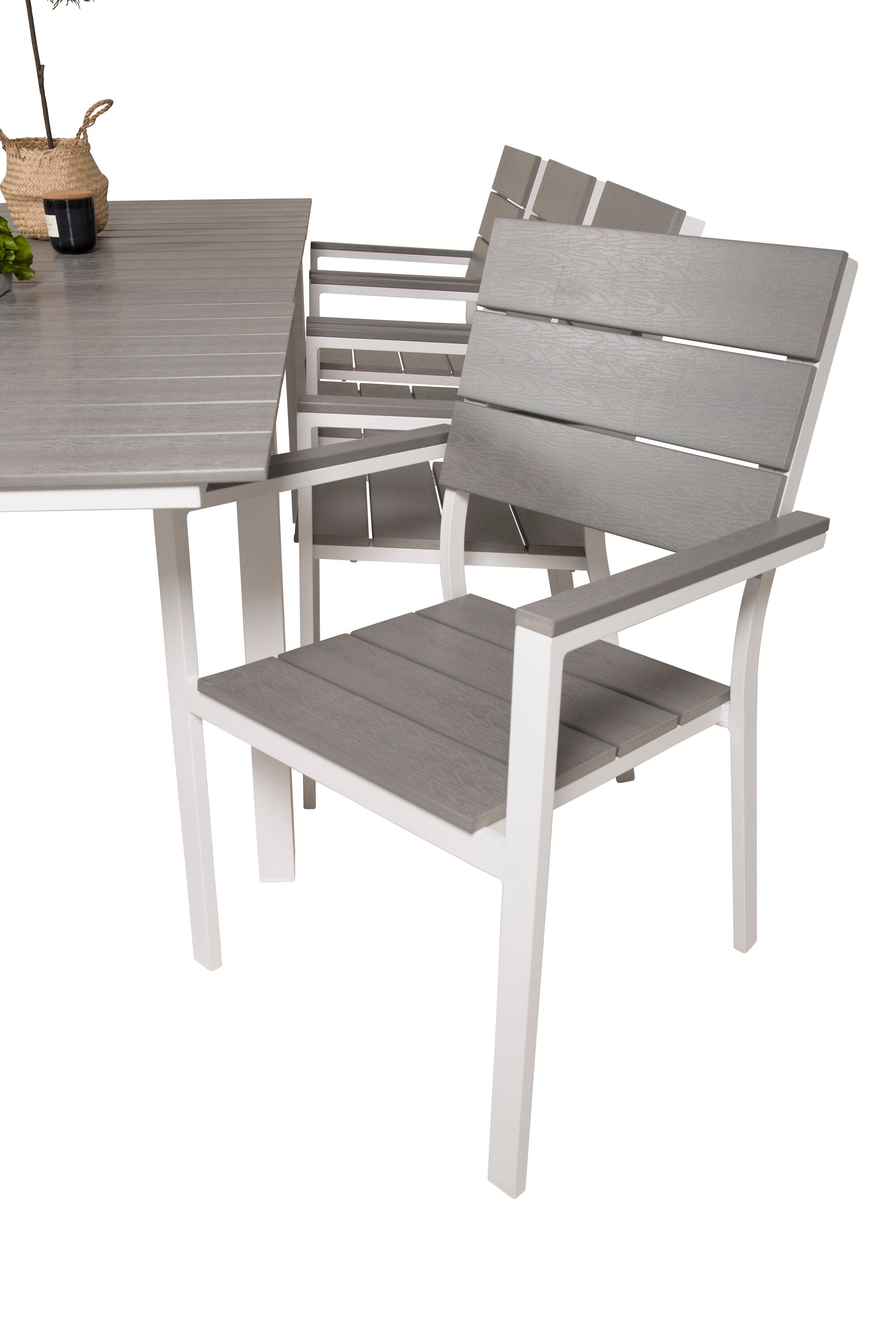 Stůl úrovní 160/240 - Bílá/Šedá - Židle úrovně (stohovatelné) - Bílá Alu / Šedá Aintwood 8