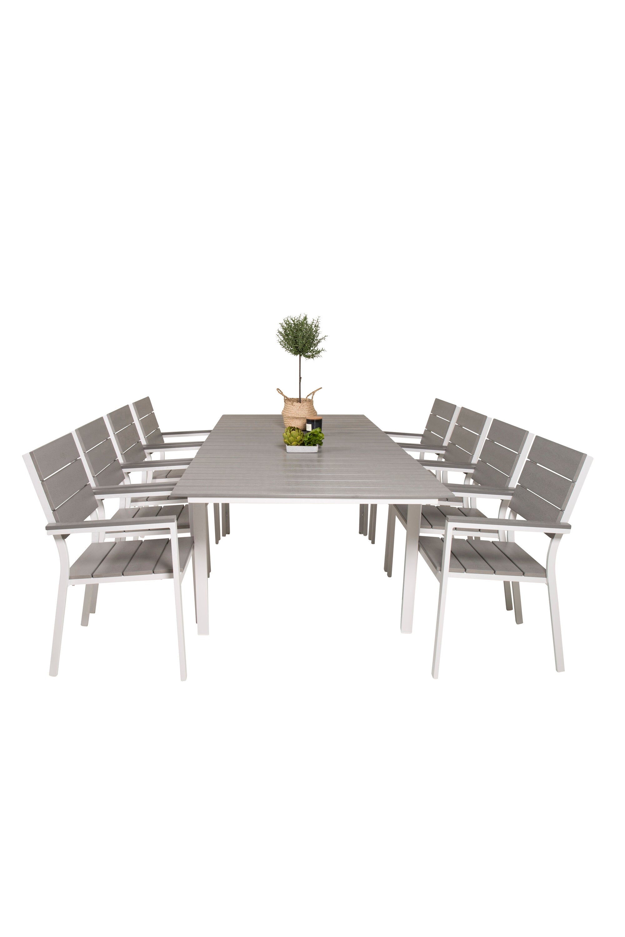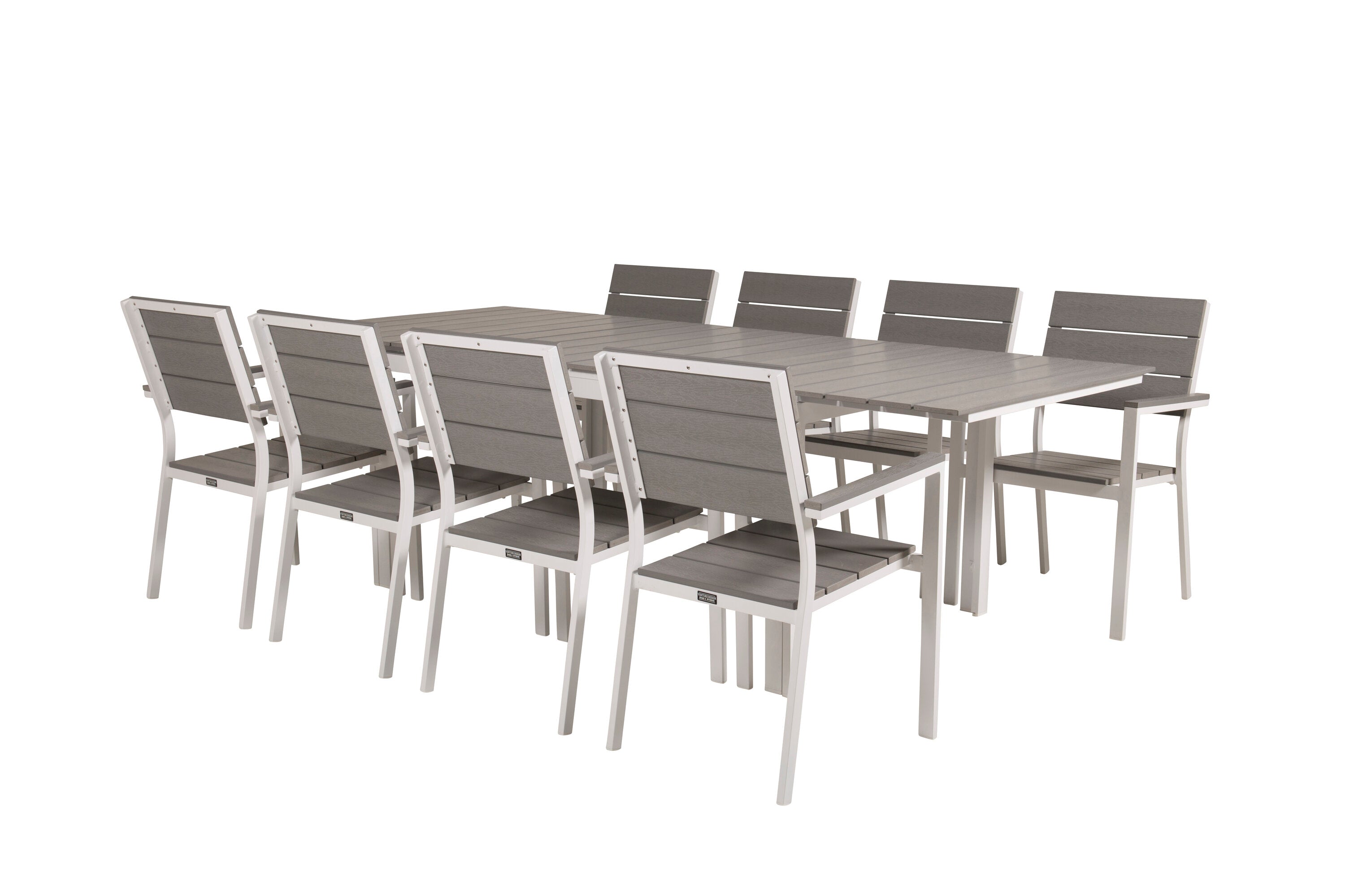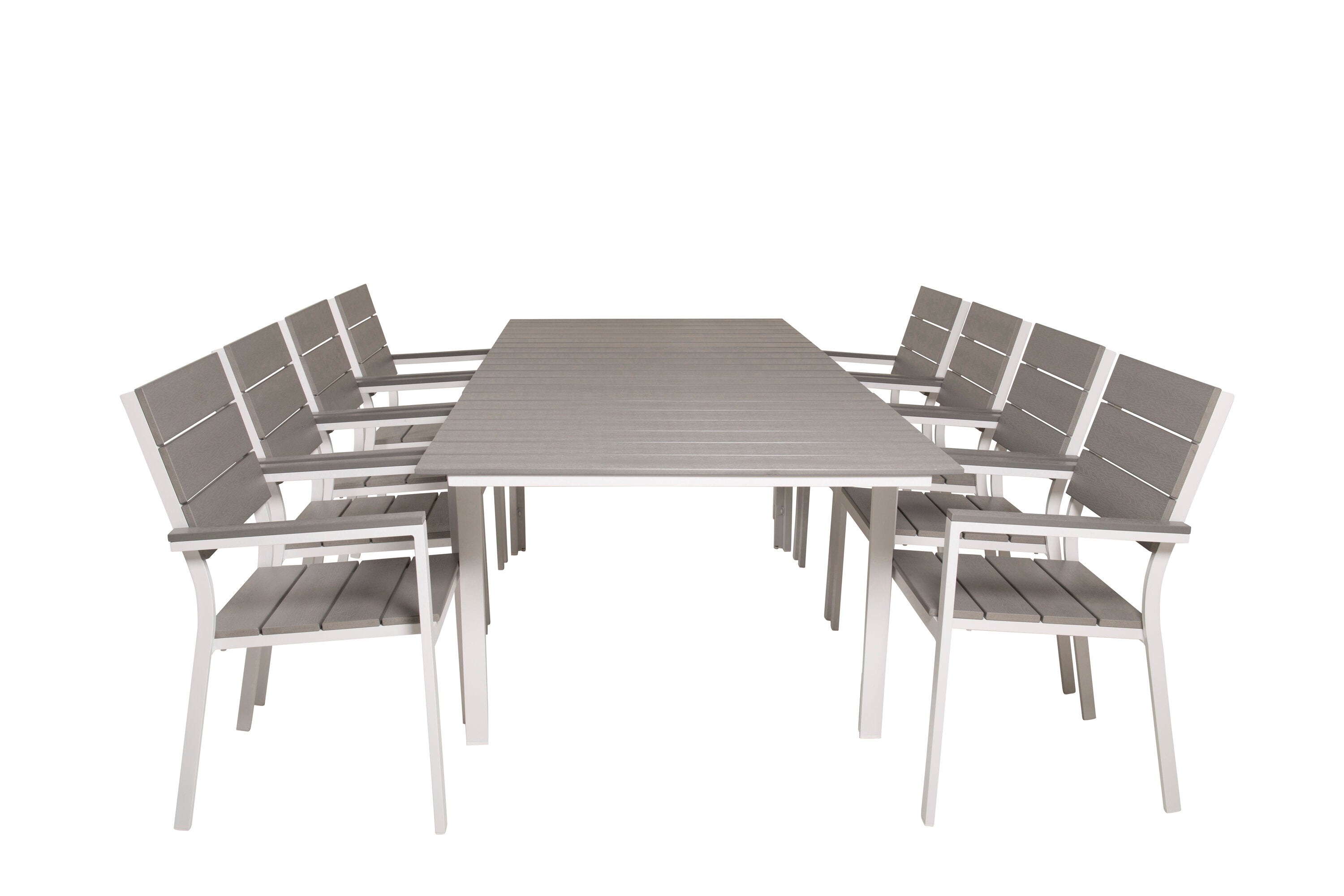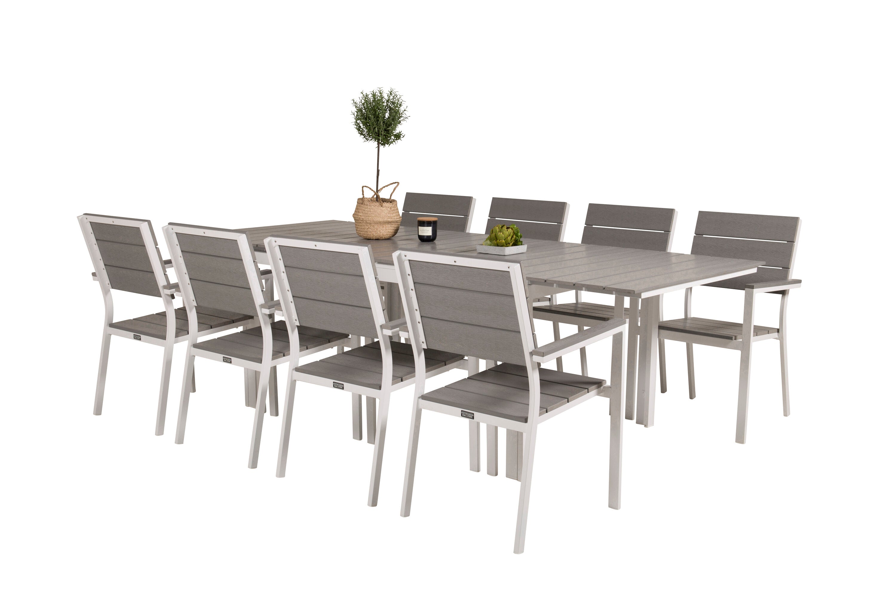 Stůl úrovní 160/240 - Bílá/Šedá - Židle úrovně (stohovatelné) - Bílá Alu / Šedá Aintwood 8