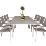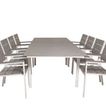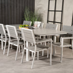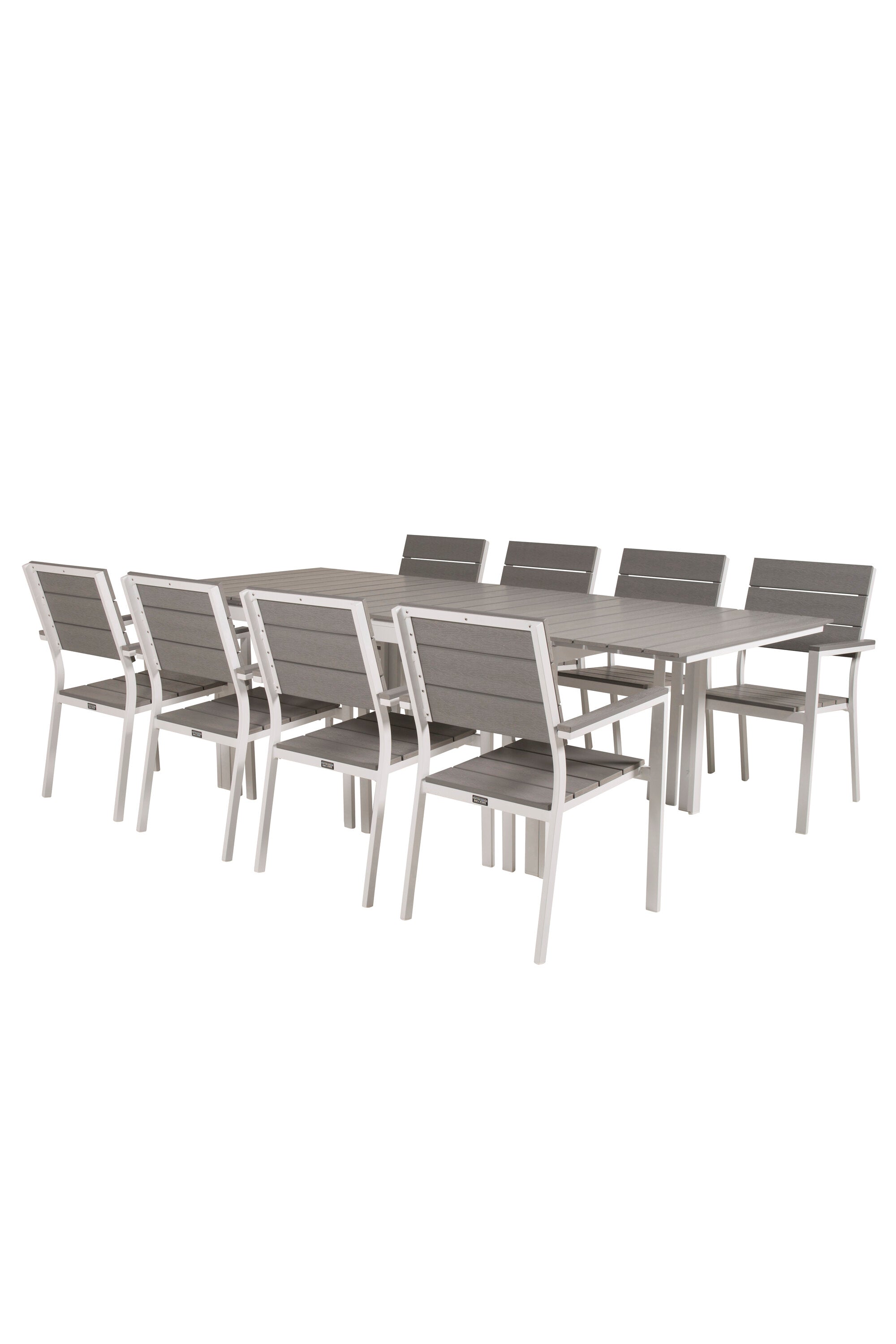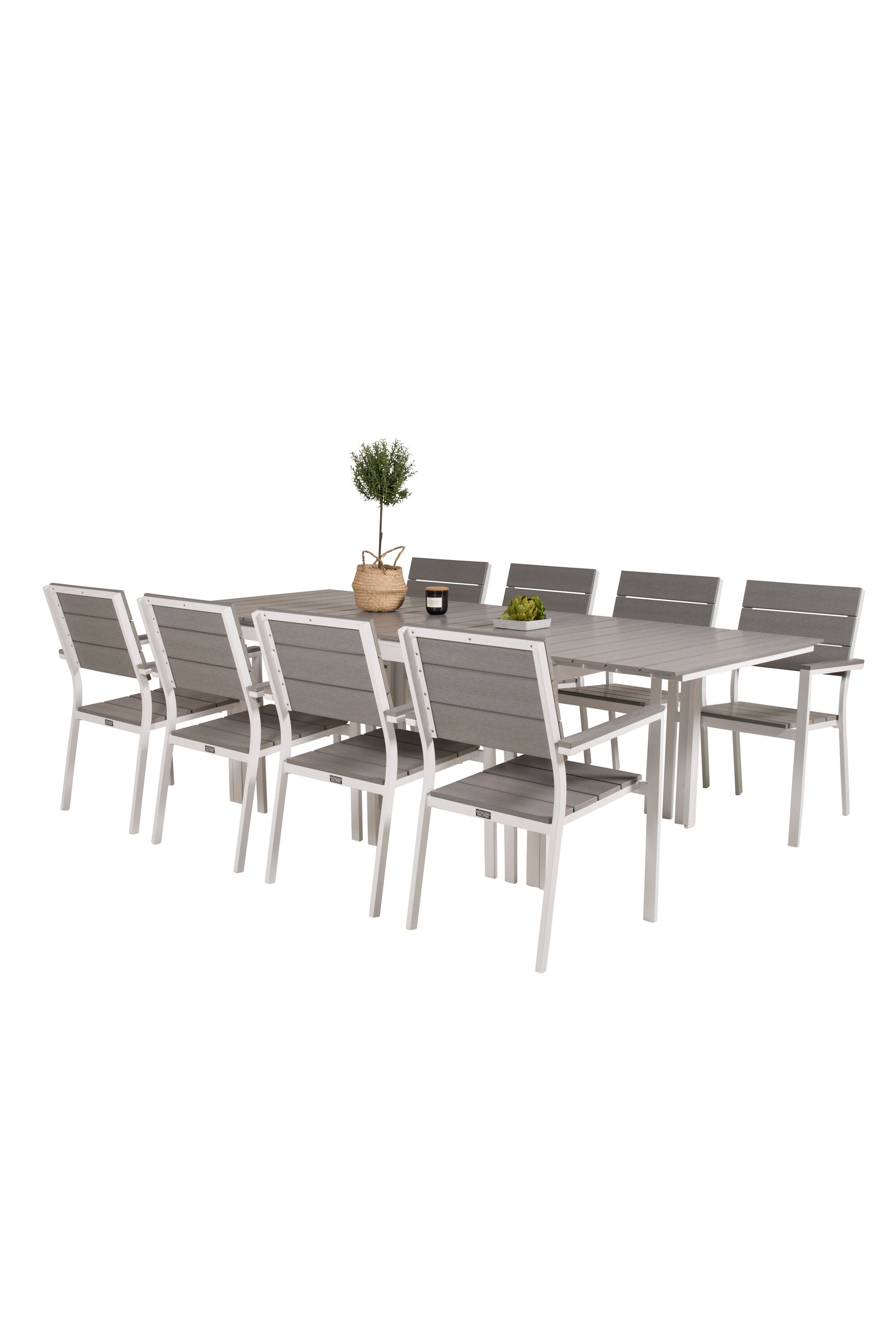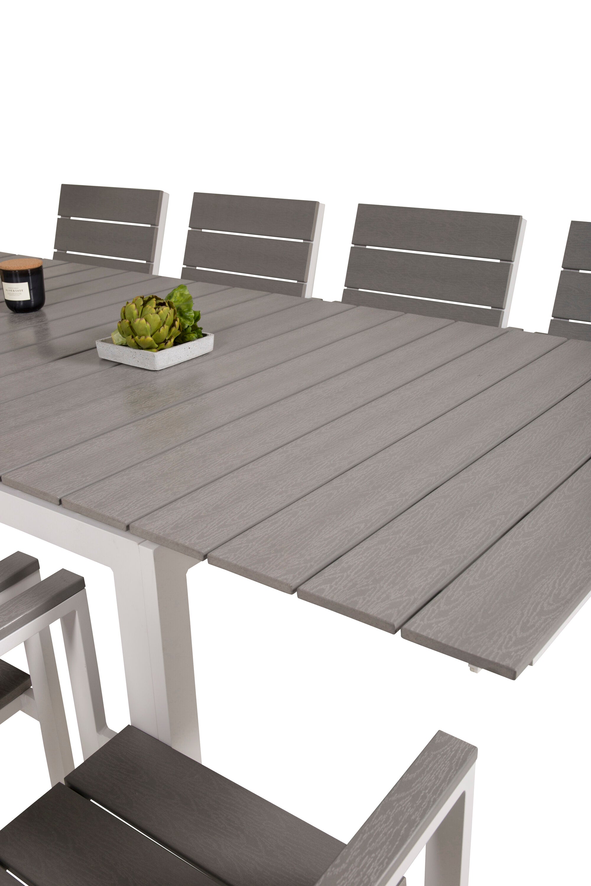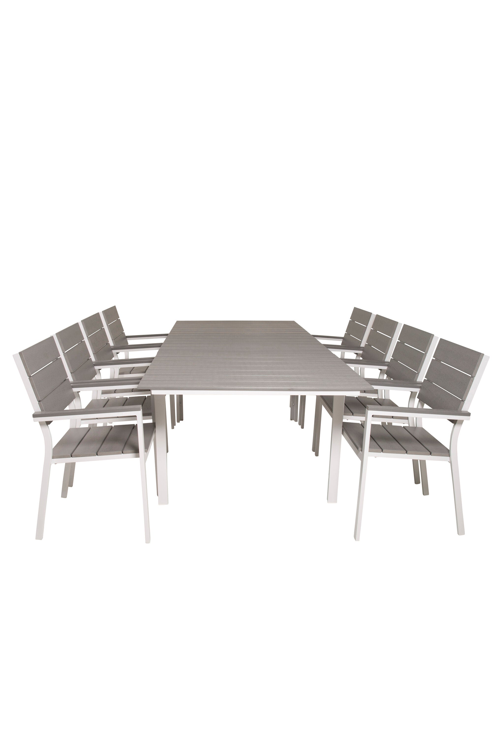 Stůl úrovní 160/240 - Bílá/Šedá - Židle úrovně (stohovatelné) - Bílá Alu / Šedá Aintwood 8