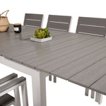 Náš rozkládací jídelní stůl Levels je svým designem praktický i stylový! Zde společně se stylovými jídelními židlemi ze stejné série. Zařiďte si terasu moderní skupinou jídel a shromážděte rodinu a přátele pro krásné letní večery společně u stolu, kde se každý vejde!