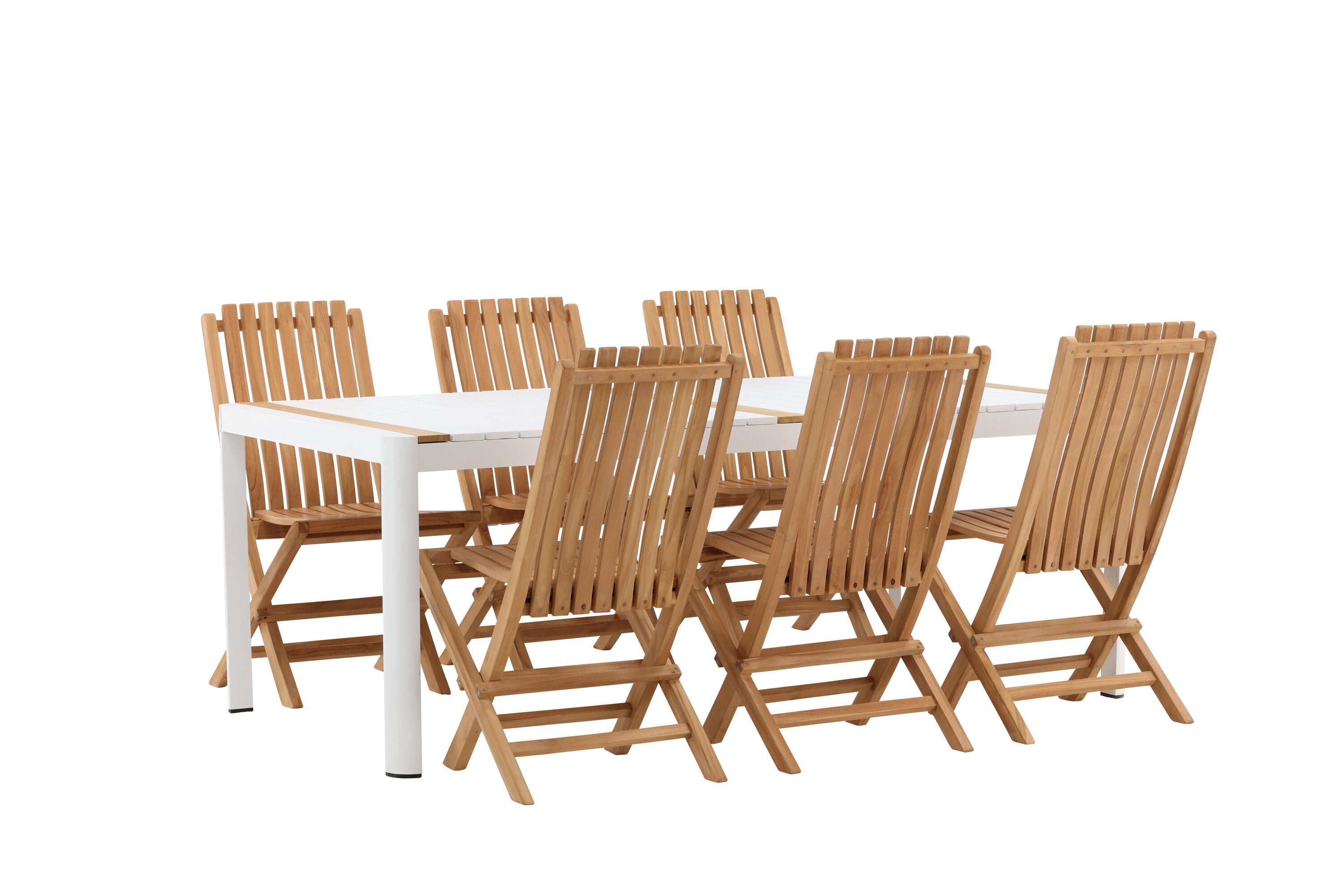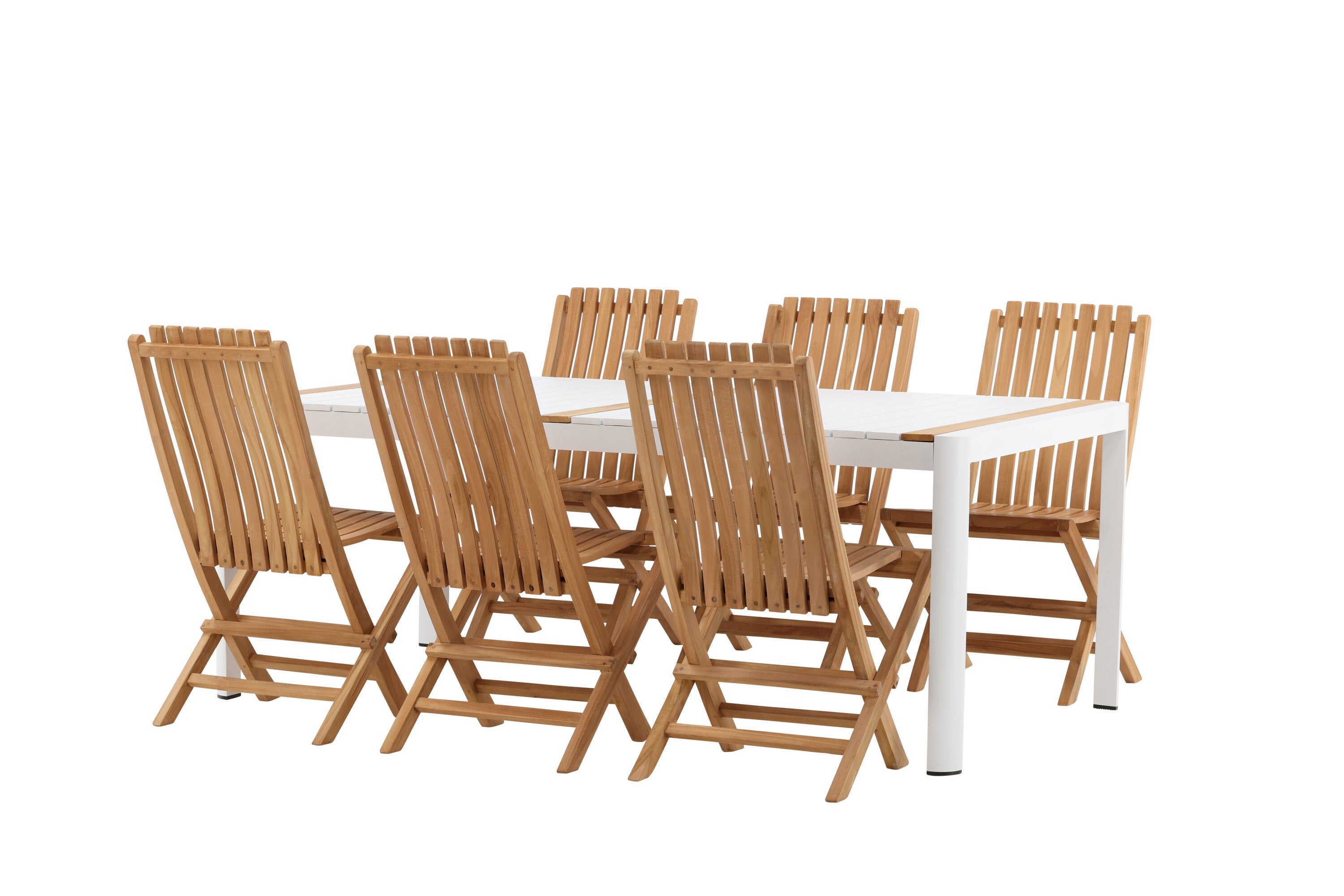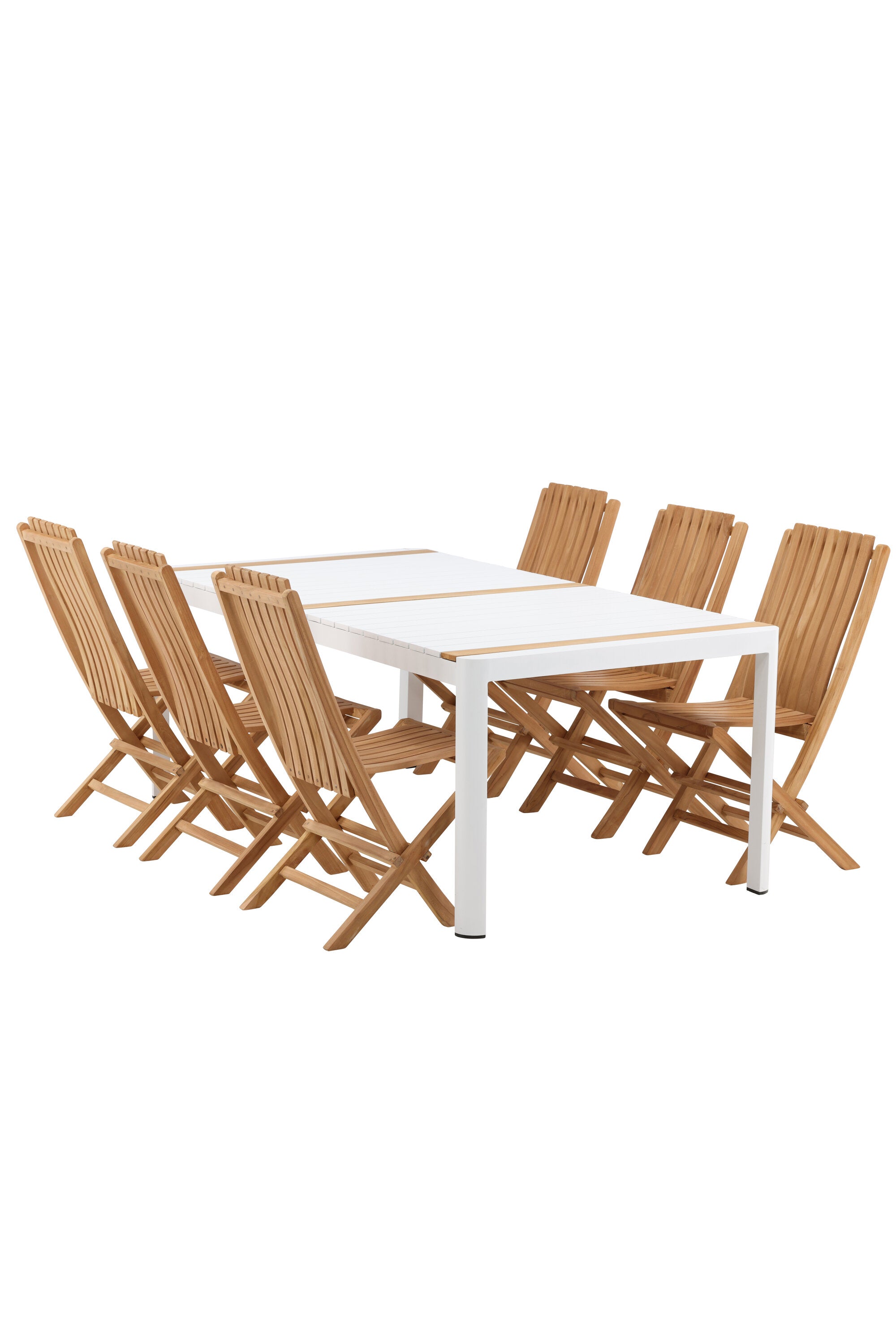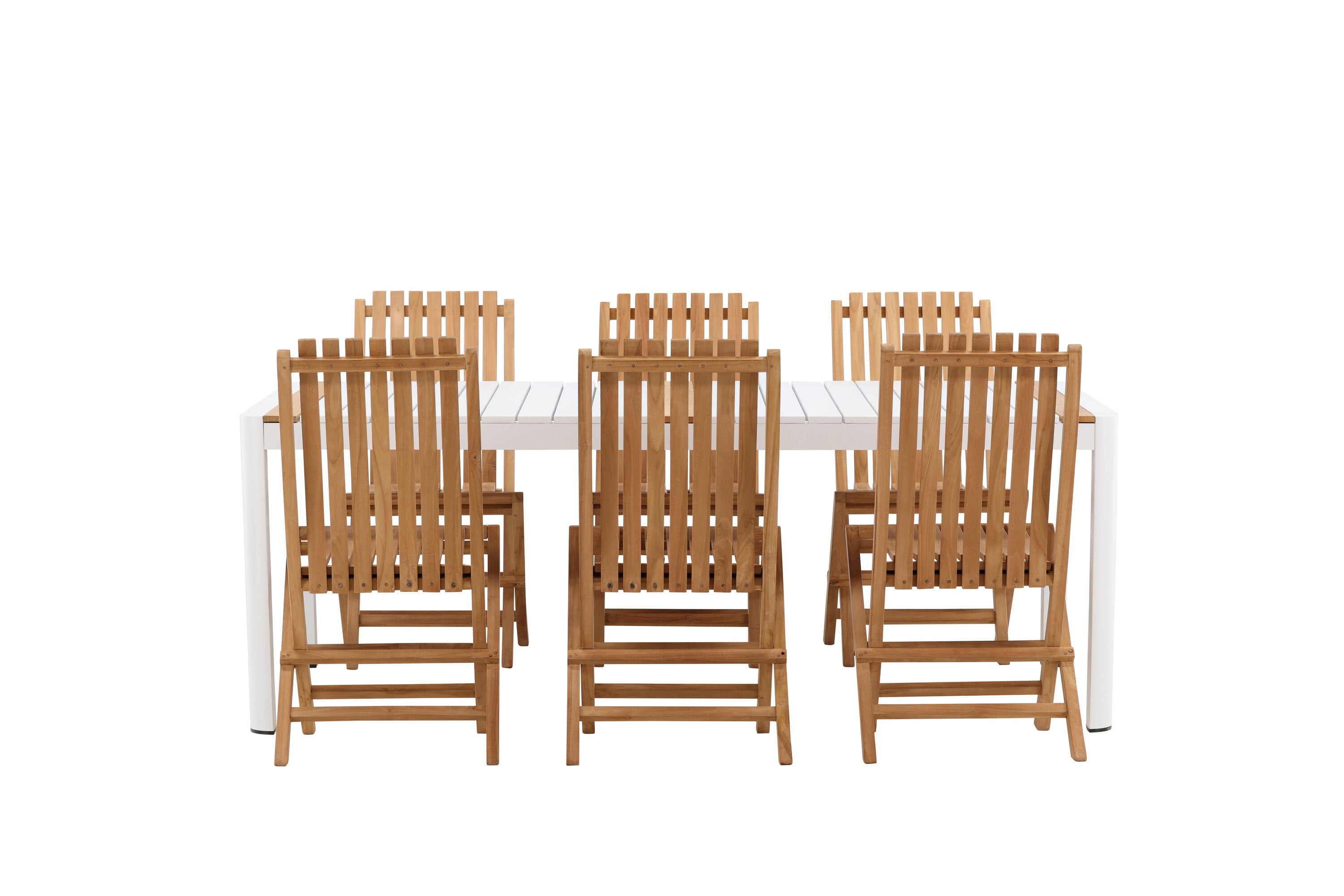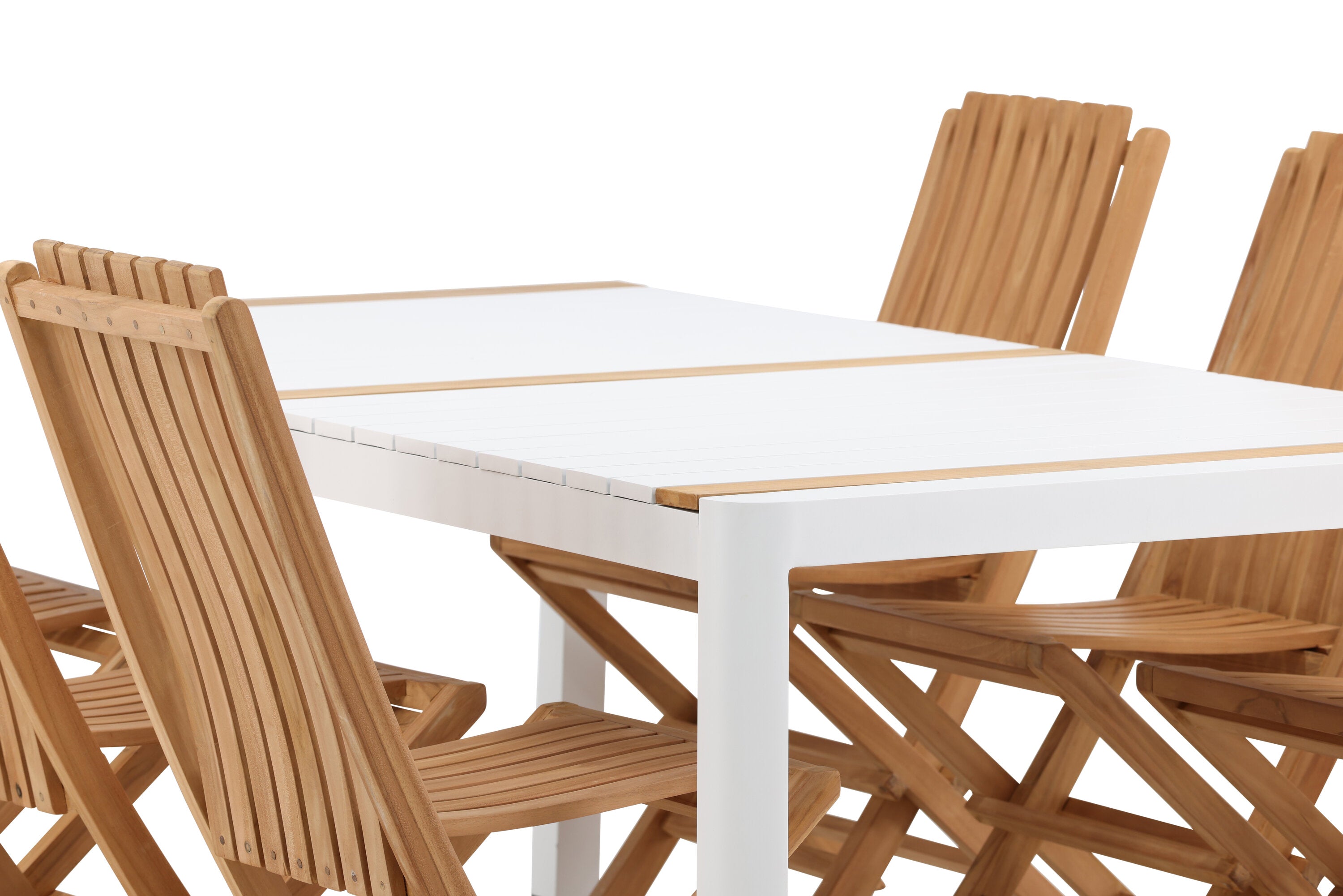 Togo - Jídelní stůl - Bílá / Teak - Allu / Teak - 200*100 _1+ Ghana - Skládací židle - Natural - Teak - _6