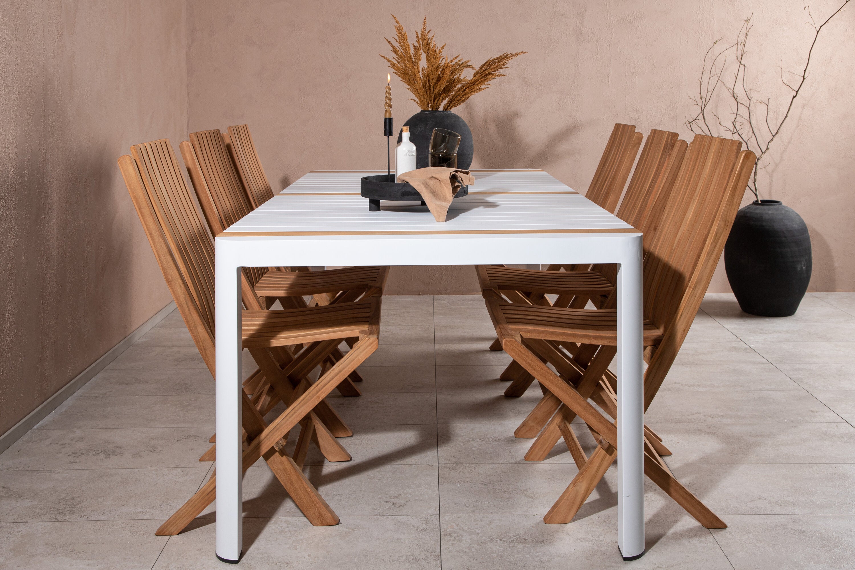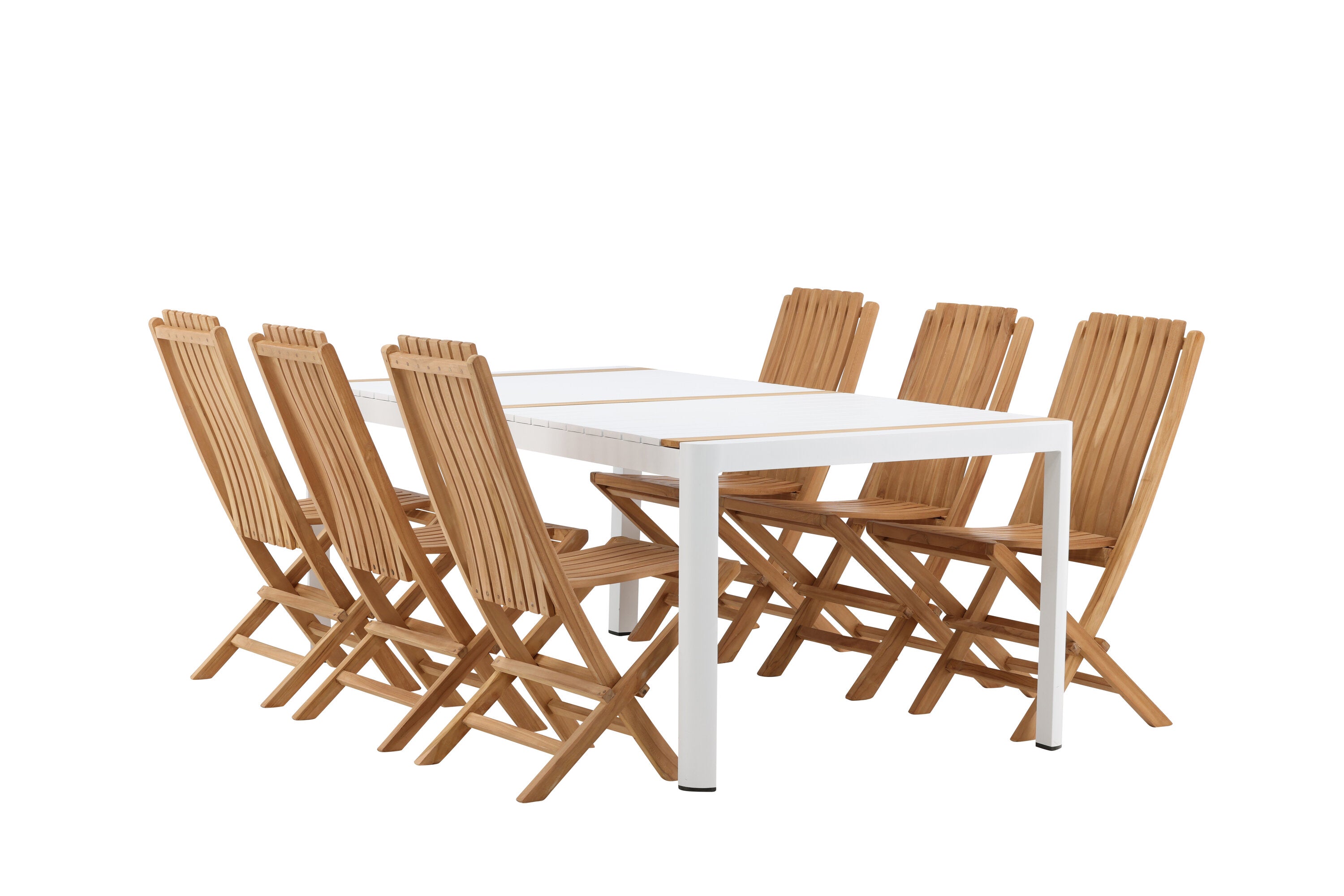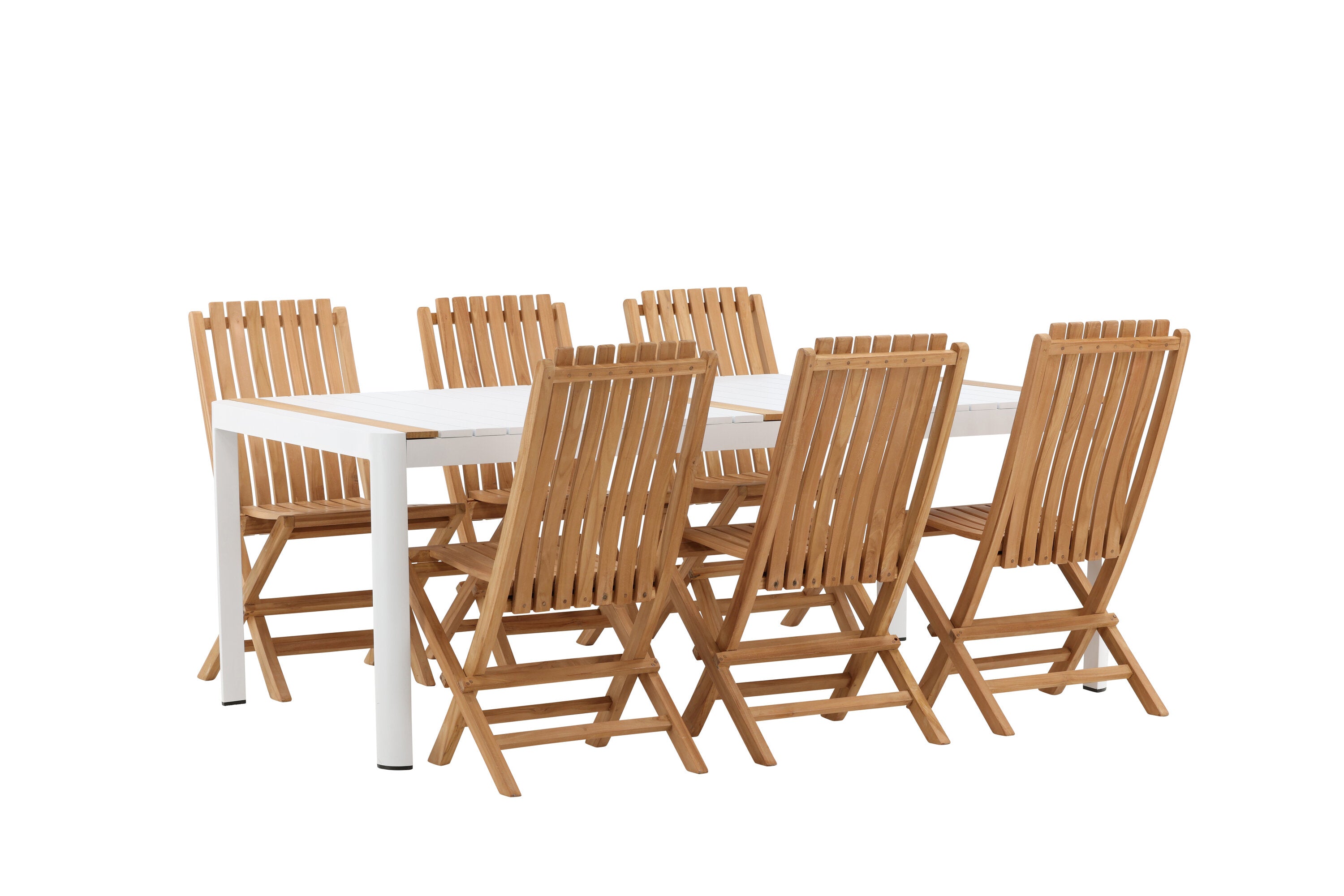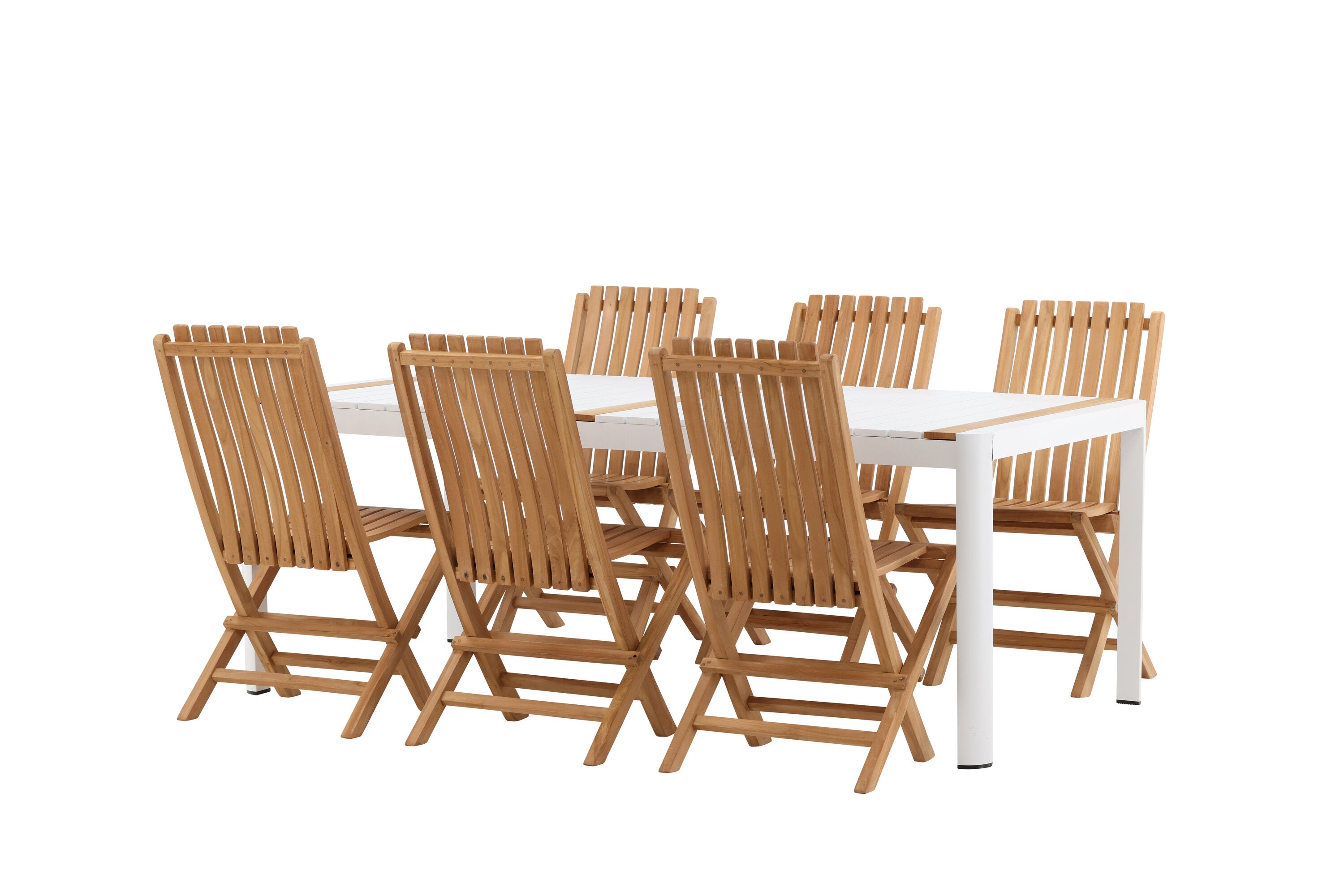 Togo - Jídelní stůl - Bílá / Teak - Allu / Teak - 200*100 _1+ Ghana - Skládací židle - Natural - Teak - _6