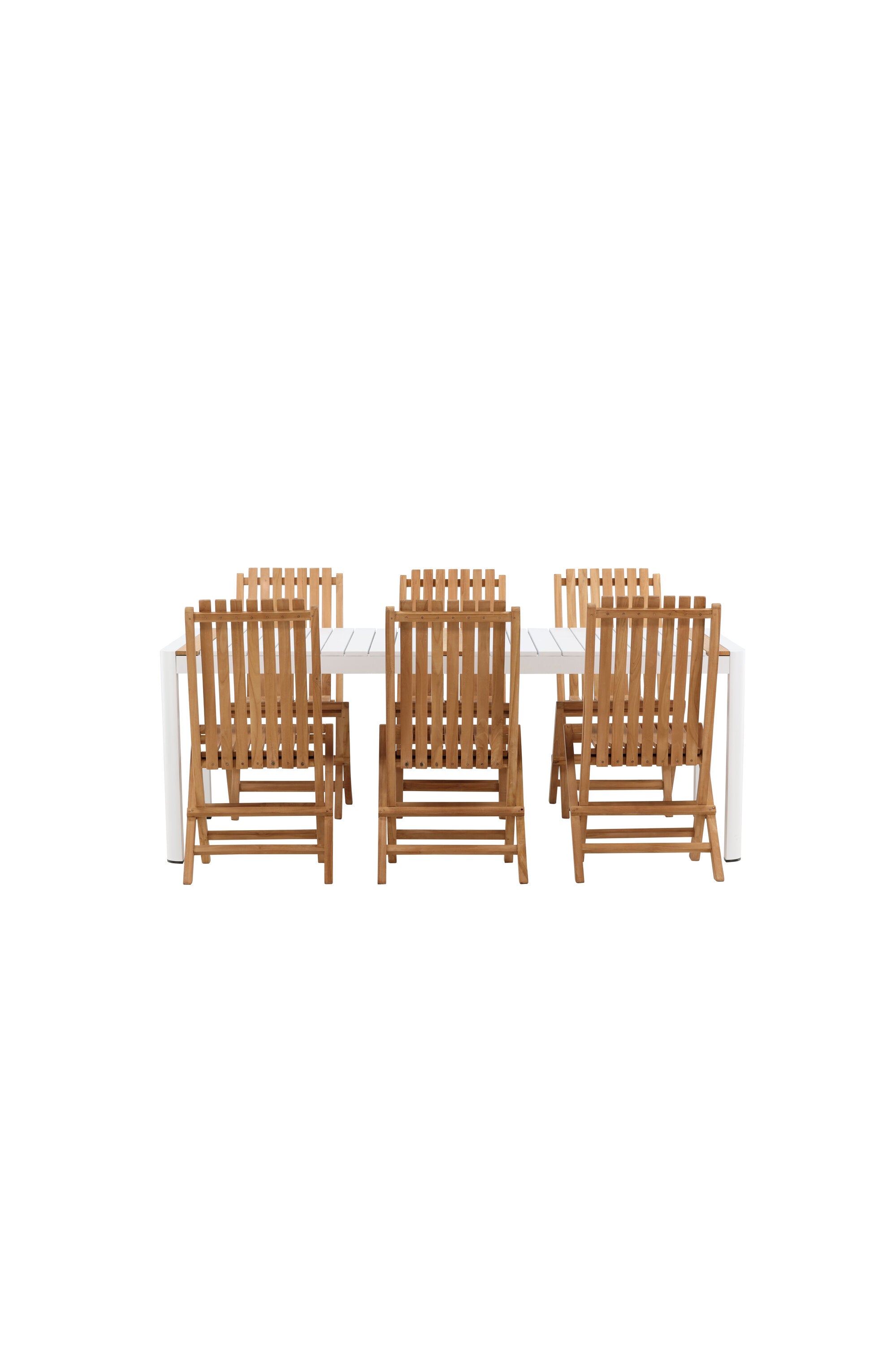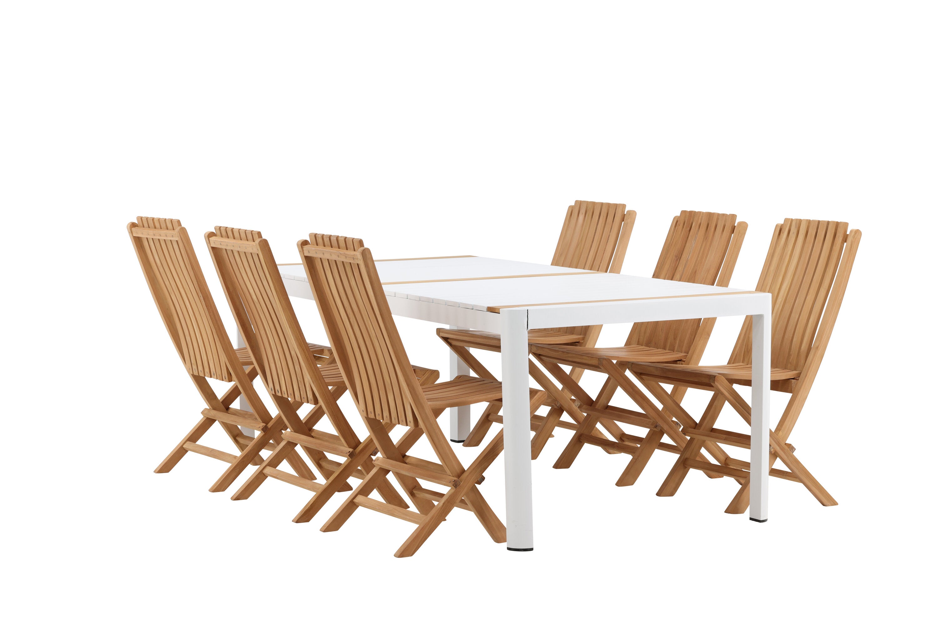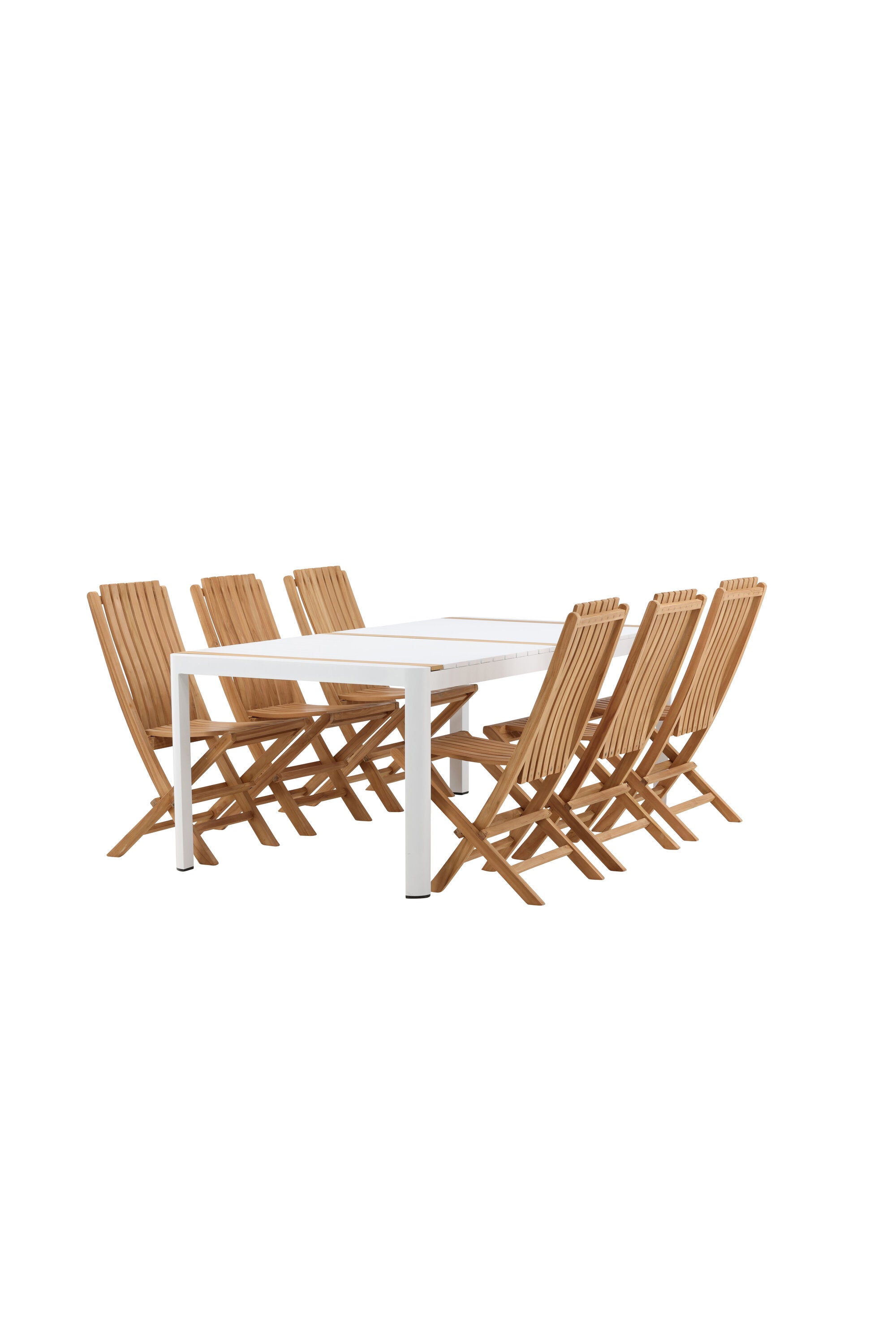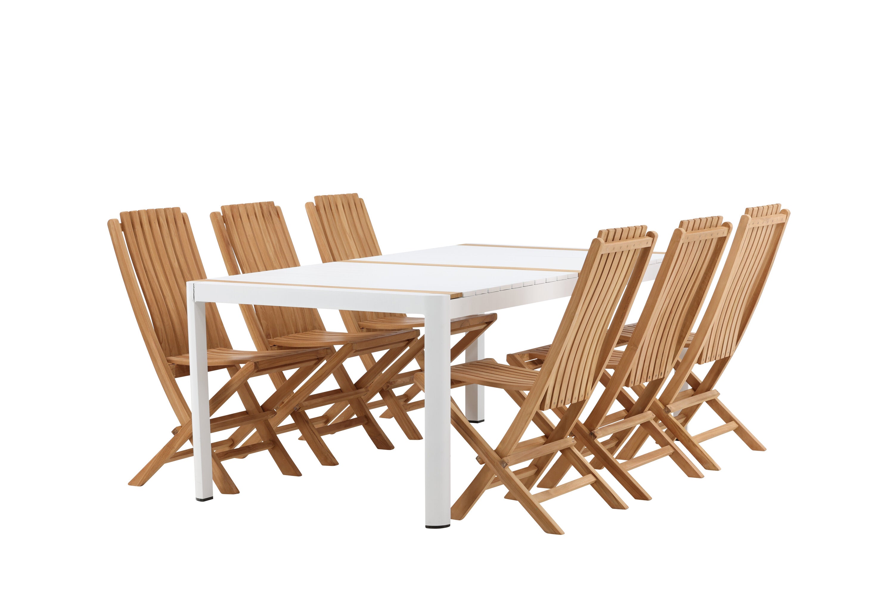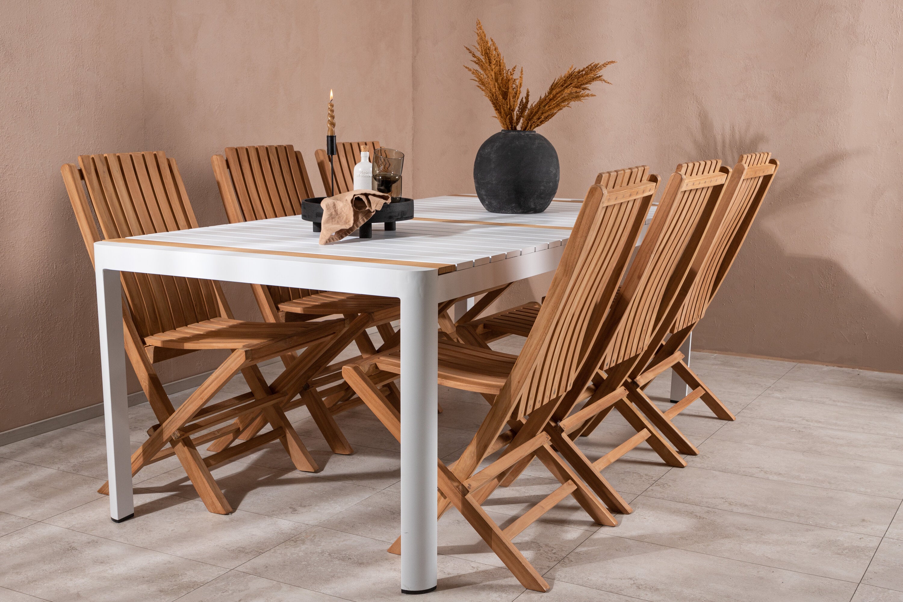 Togo - Jídelní stůl - Bílá / Teak - Allu / Teak - 200*100 _1+ Ghana - Skládací židle - Natural - Teak - _6