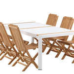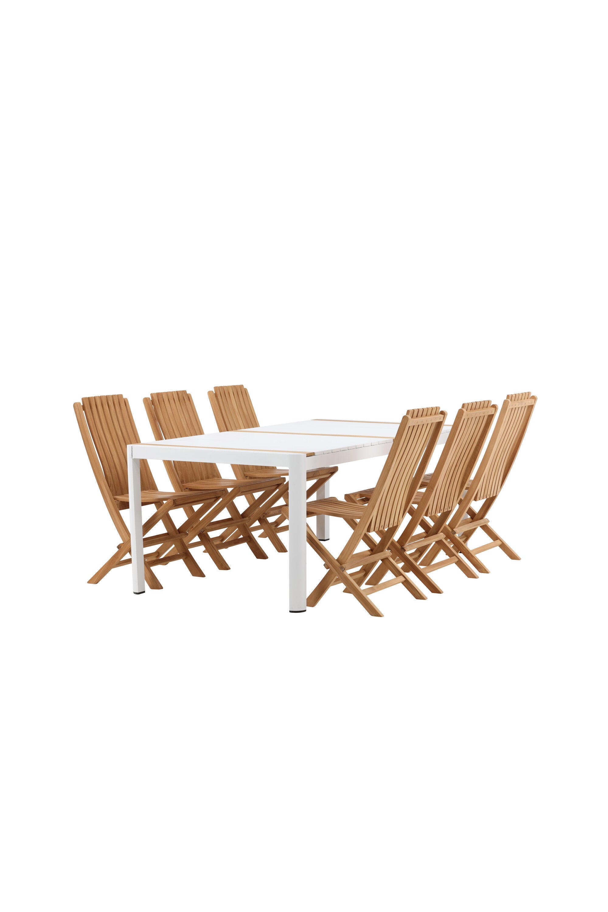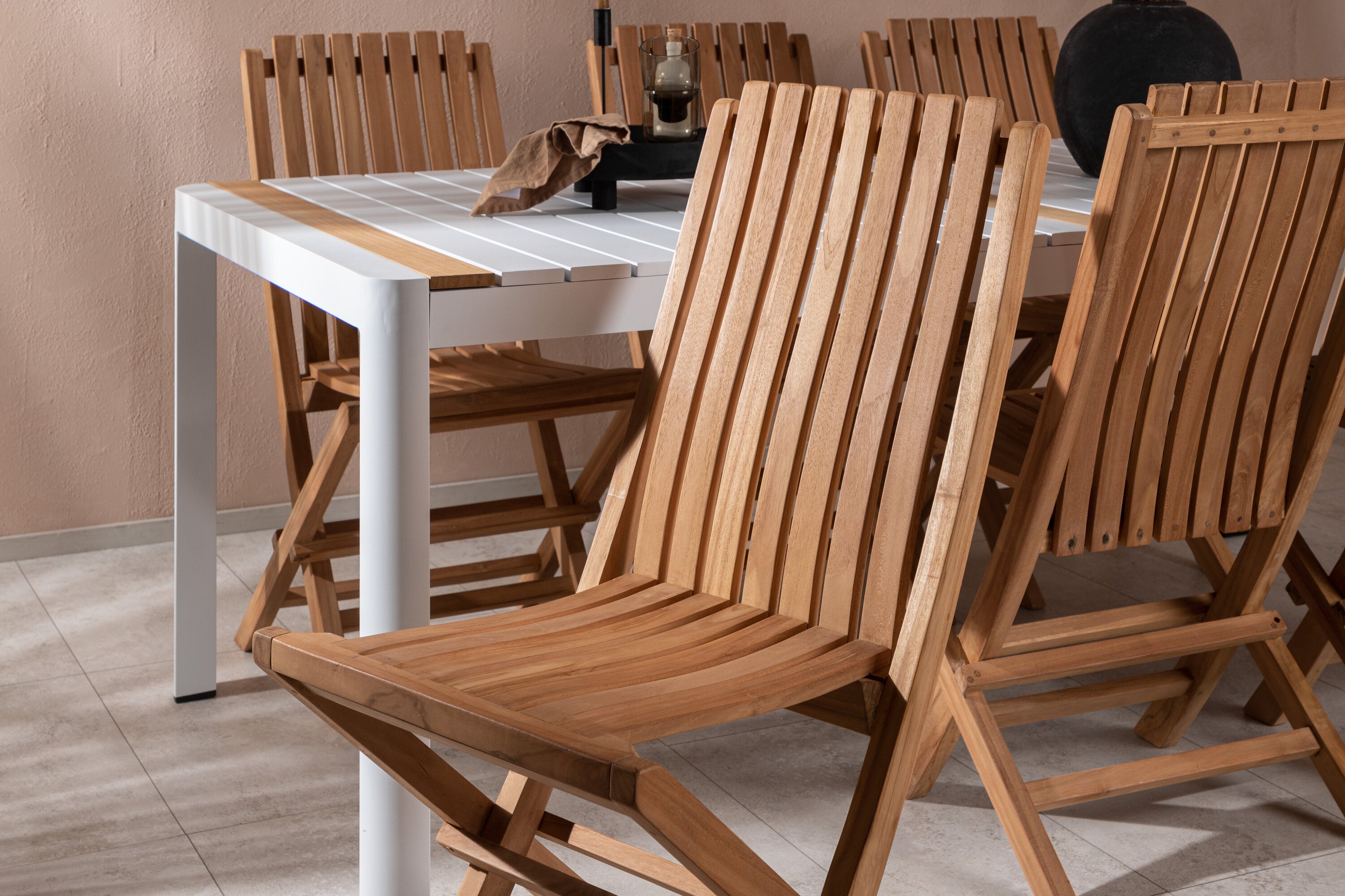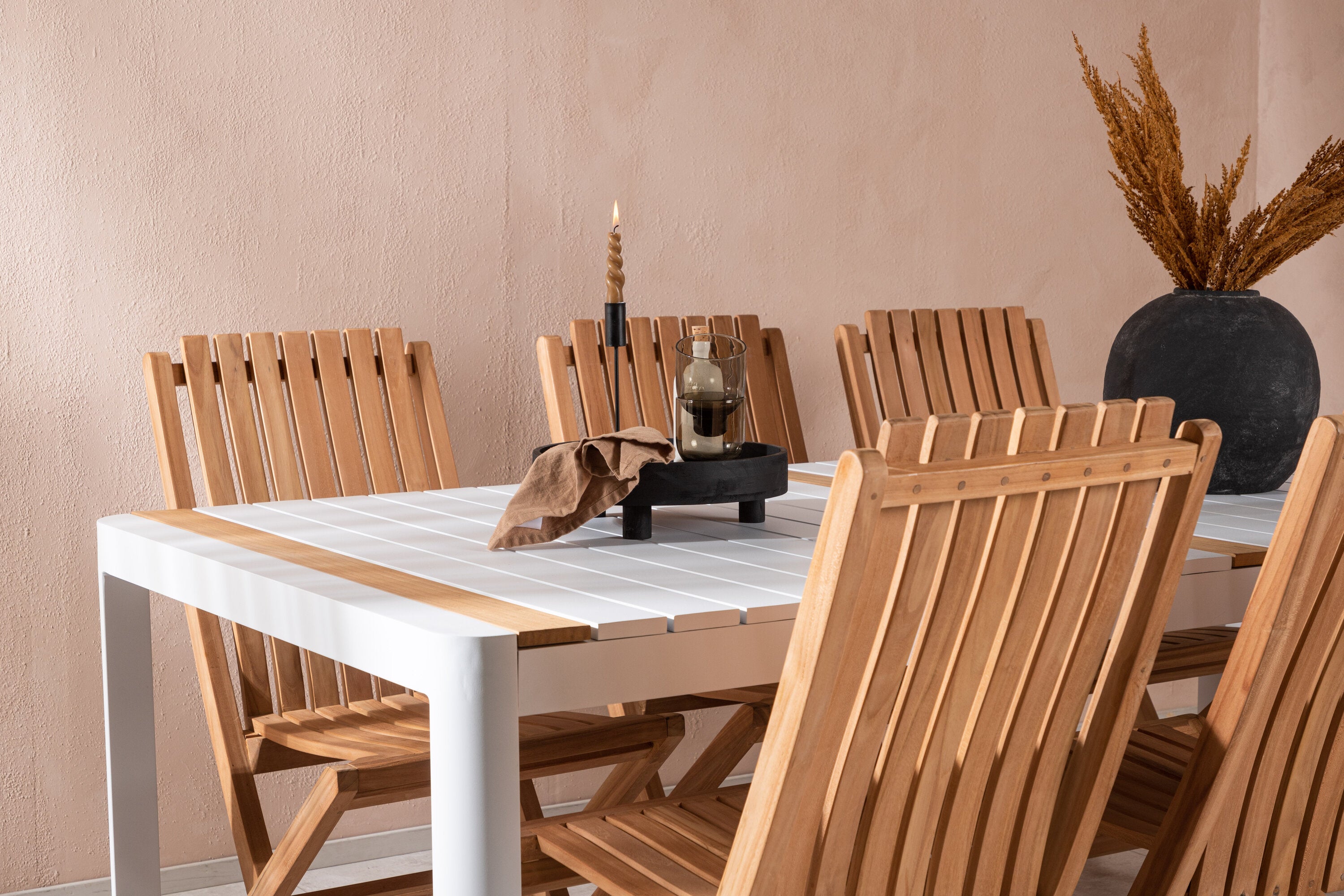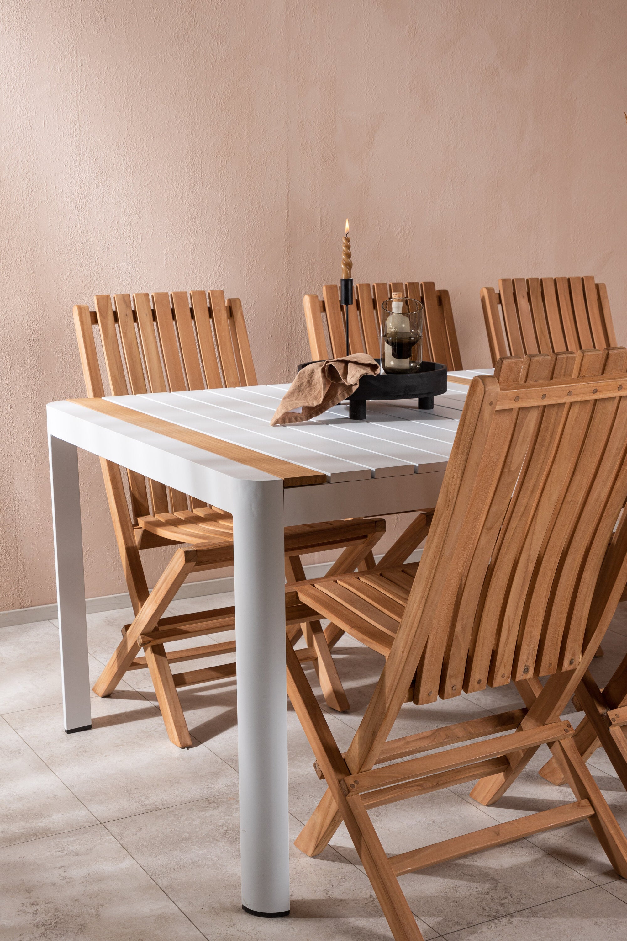 Togo - Jídelní stůl - Bílá / Teak - Allu / Teak - 200*100 _1+ Ghana - Skládací židle - Natural - Teak - _6