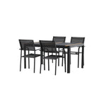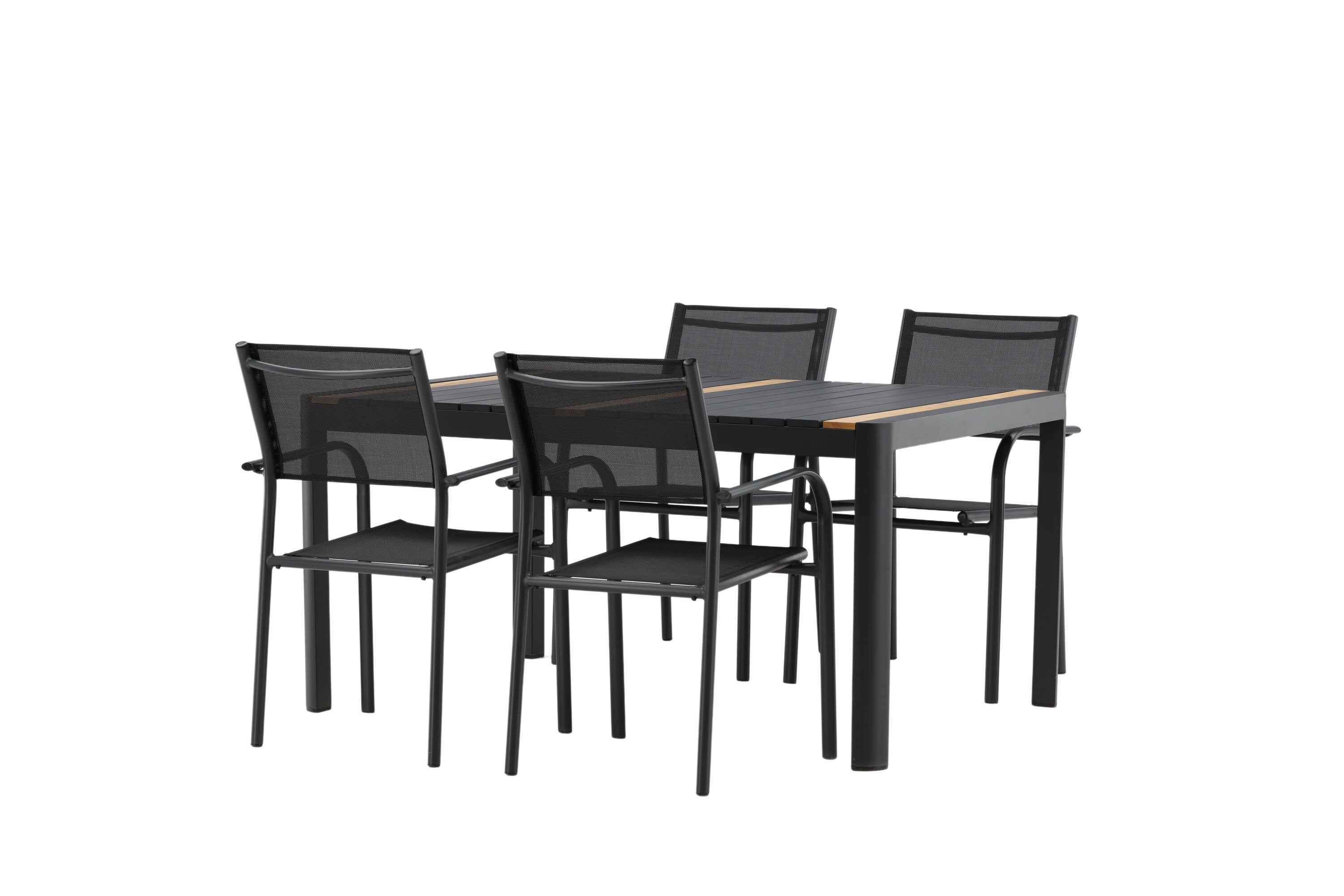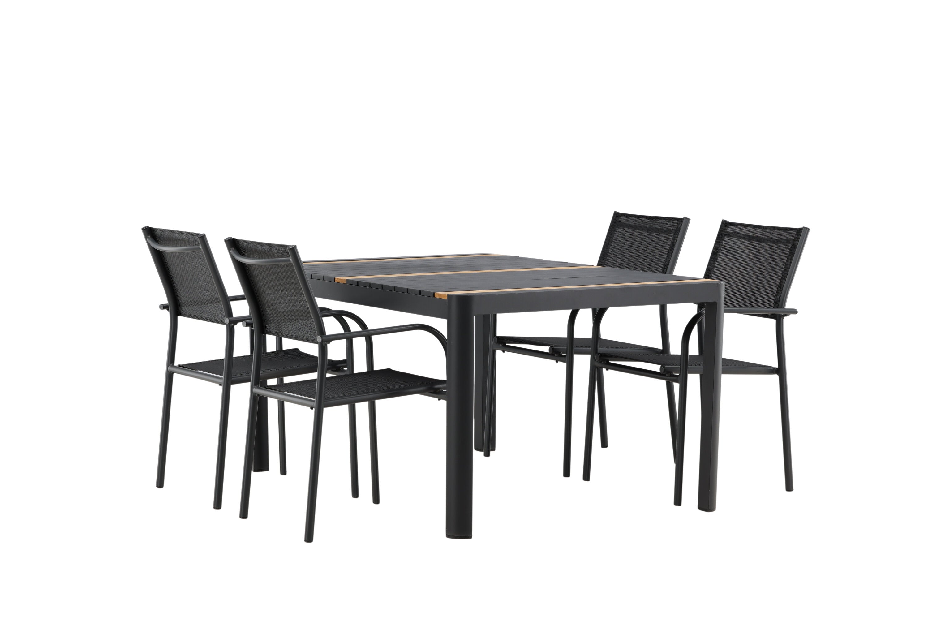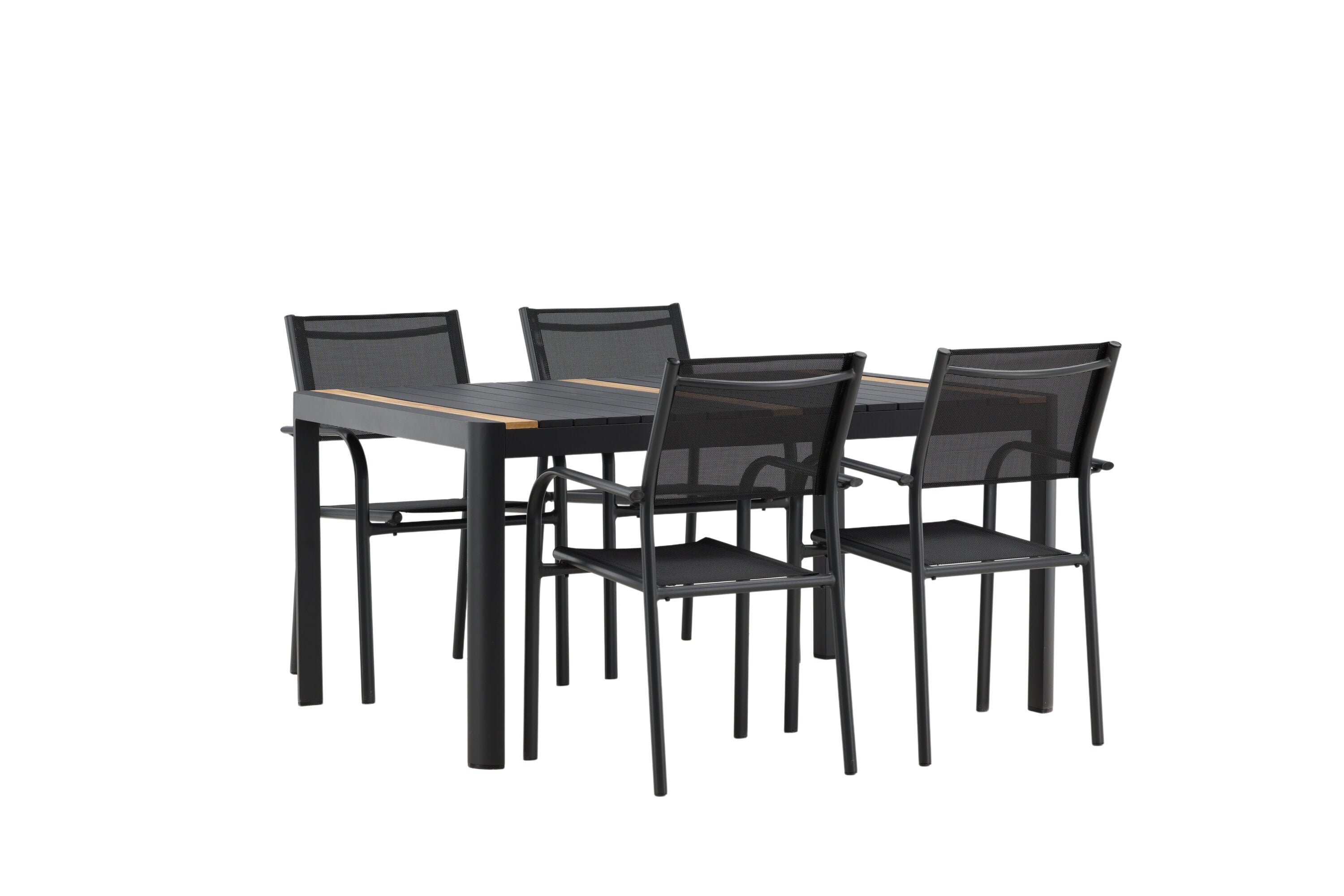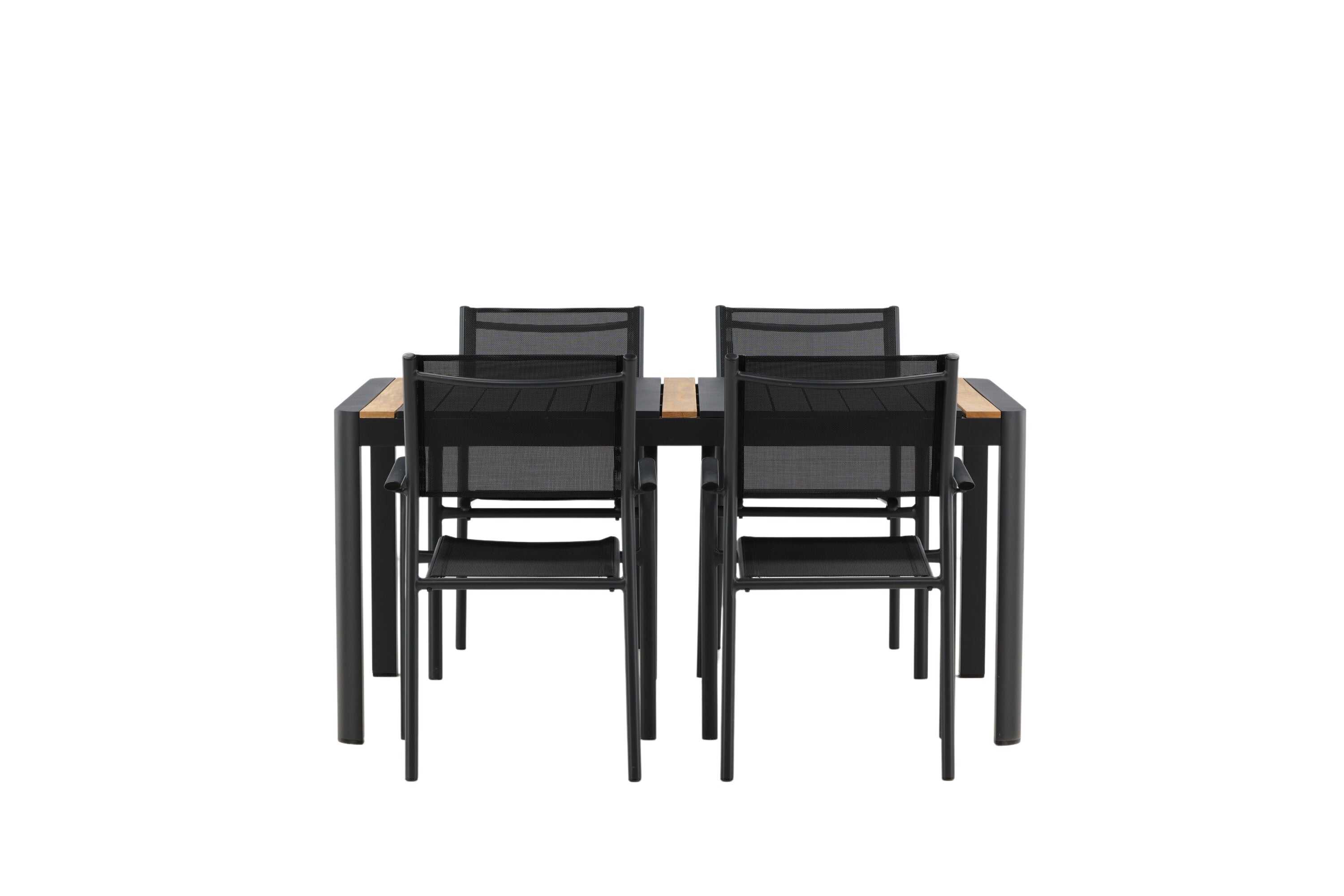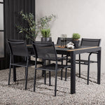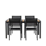Togo - Jídelní stůl - Černá / Teak - Allu / Teak - 150*100 _1+ křeslo Santorini (stohovatelné) - Černá alu / Černá textilie _4
