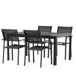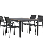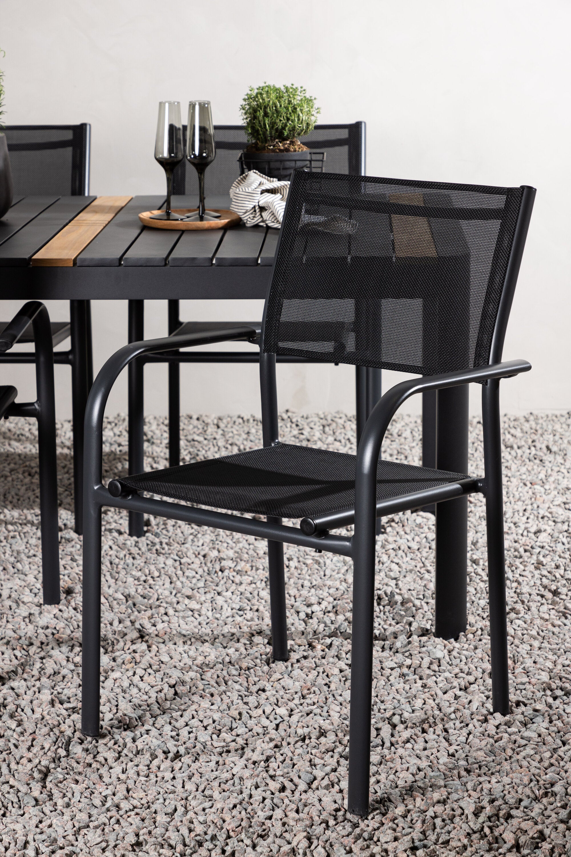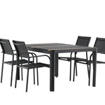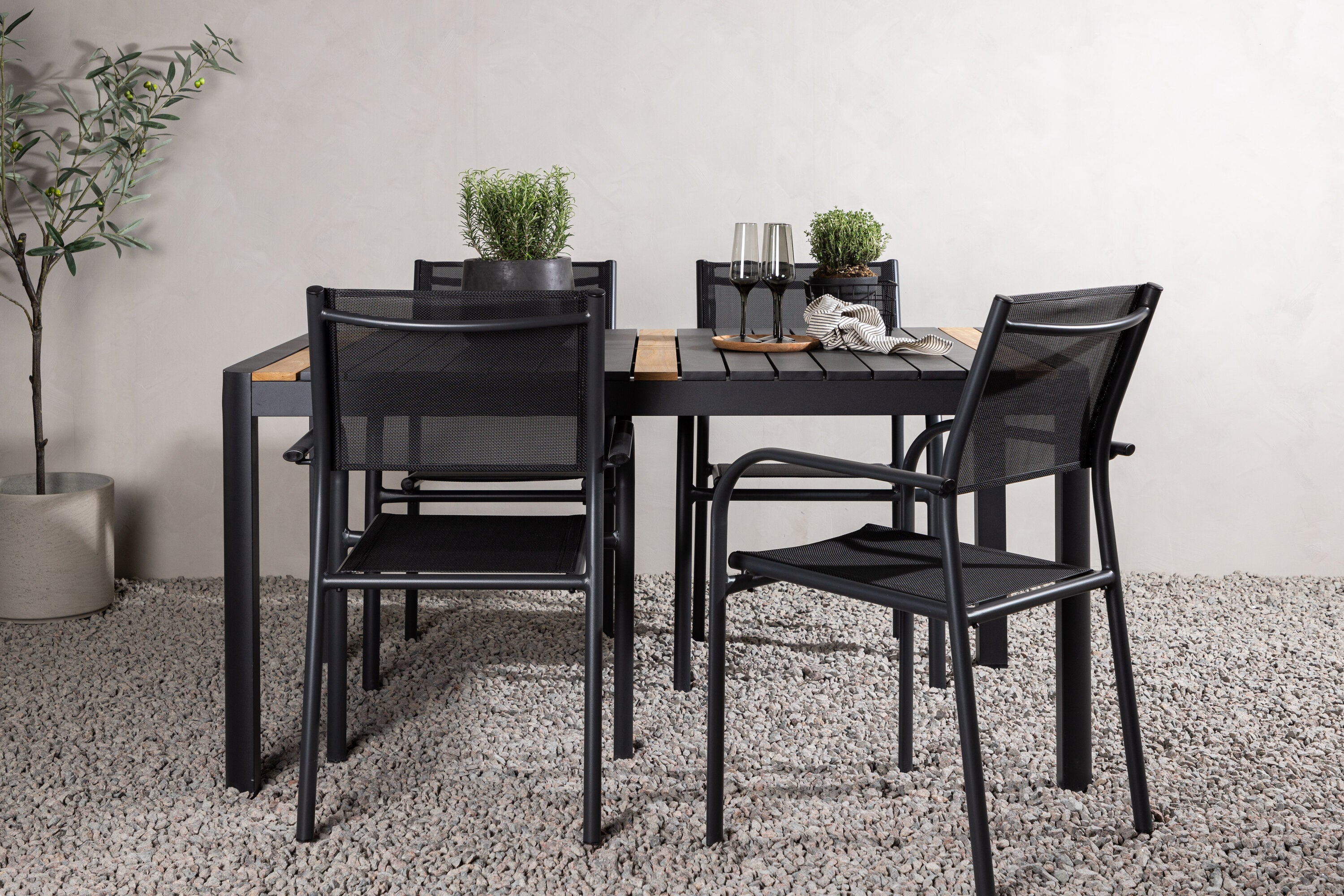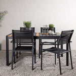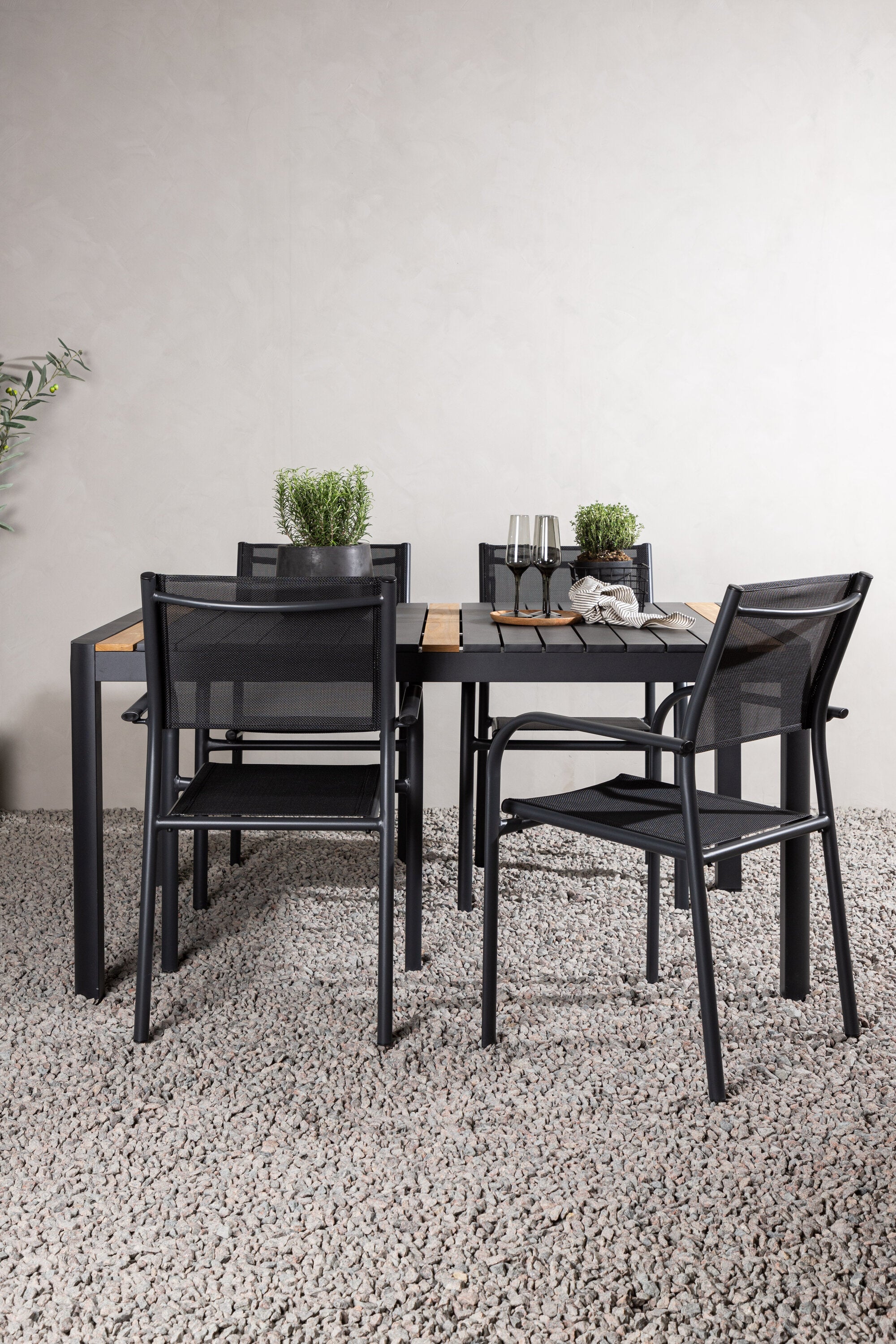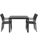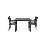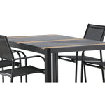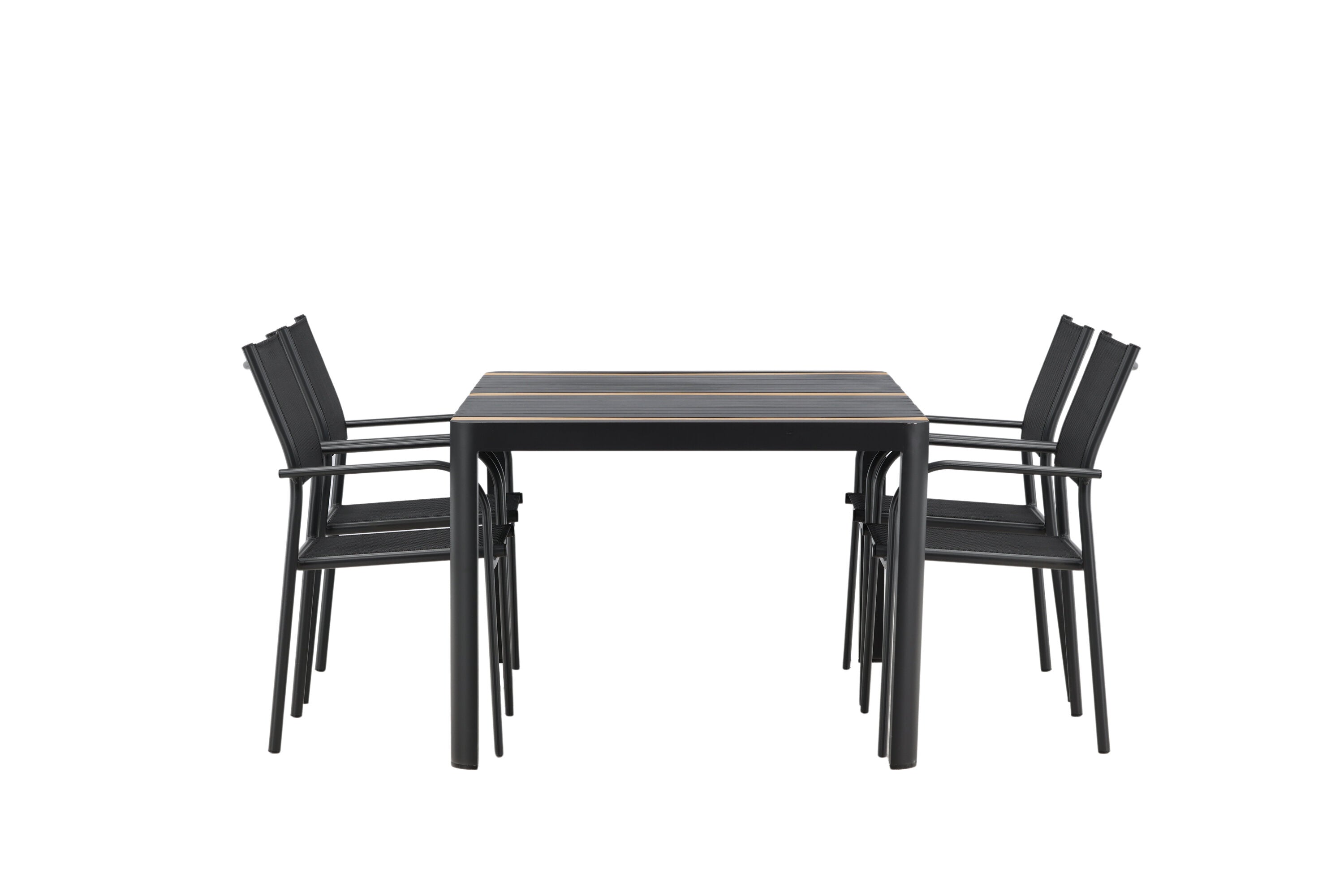 Togo - Jídelní stůl - Černá / Teak - Allu / Teak - 150*100 _1+ křeslo Santorini (stohovatelné) - Černá alu / Černá textilie _4