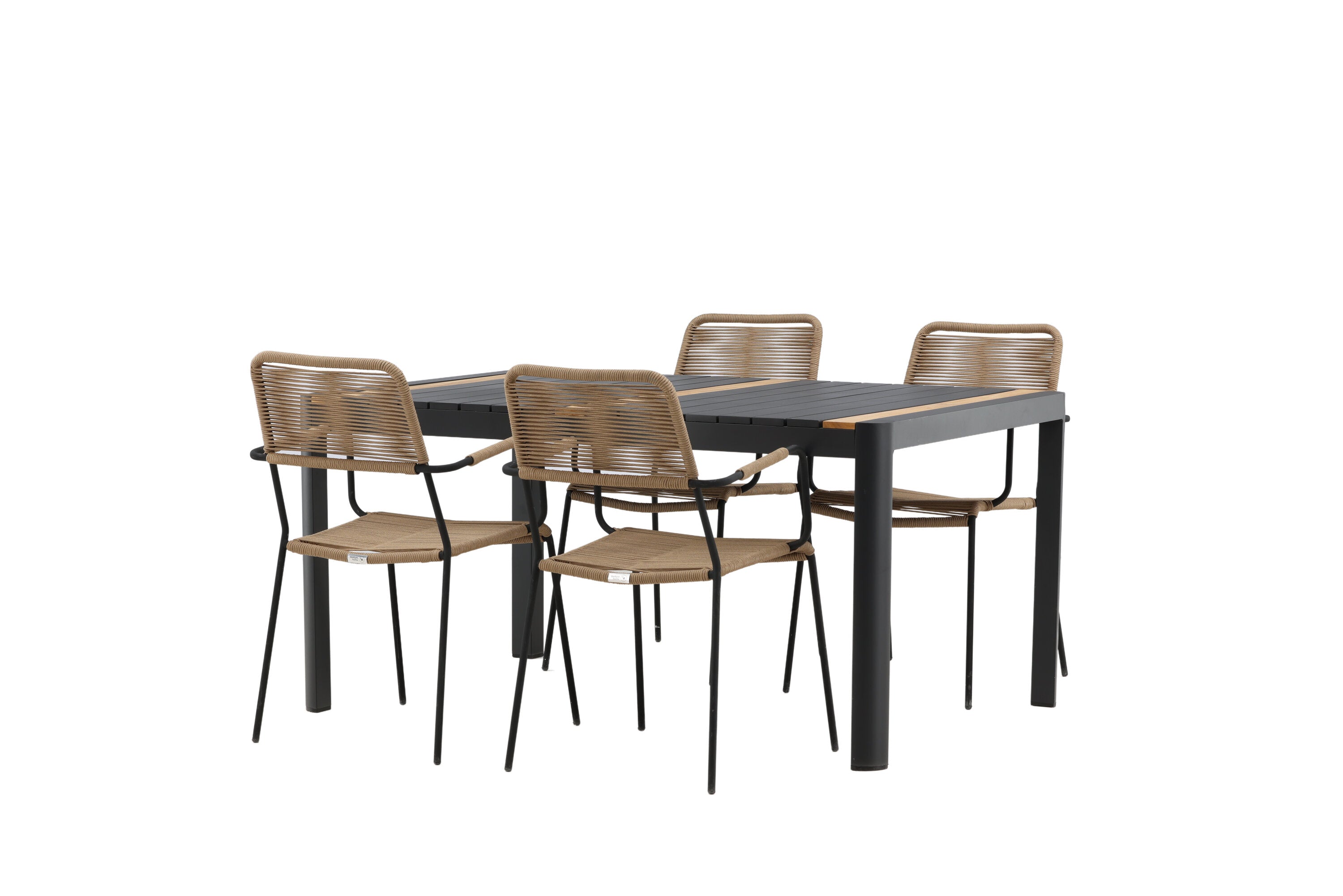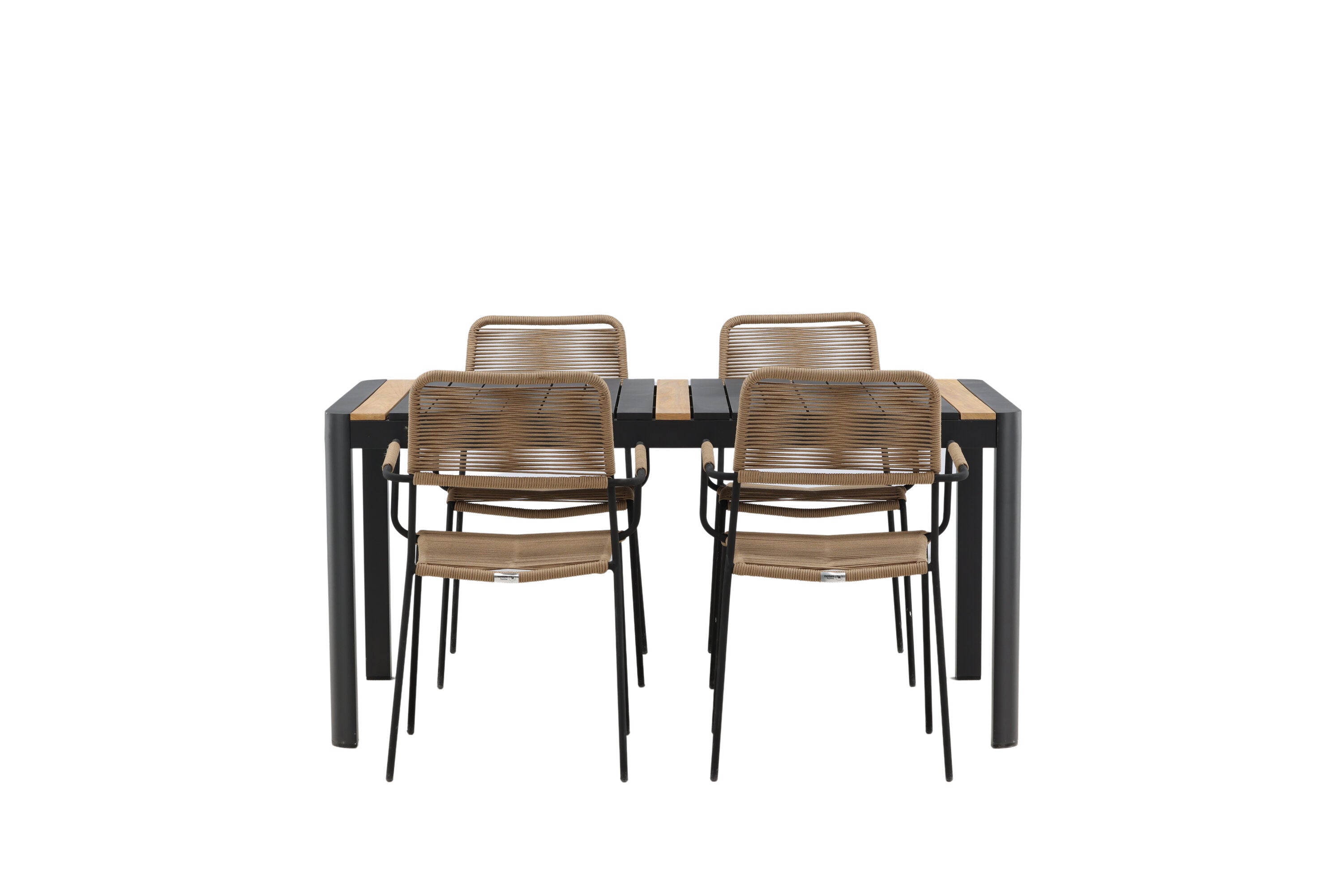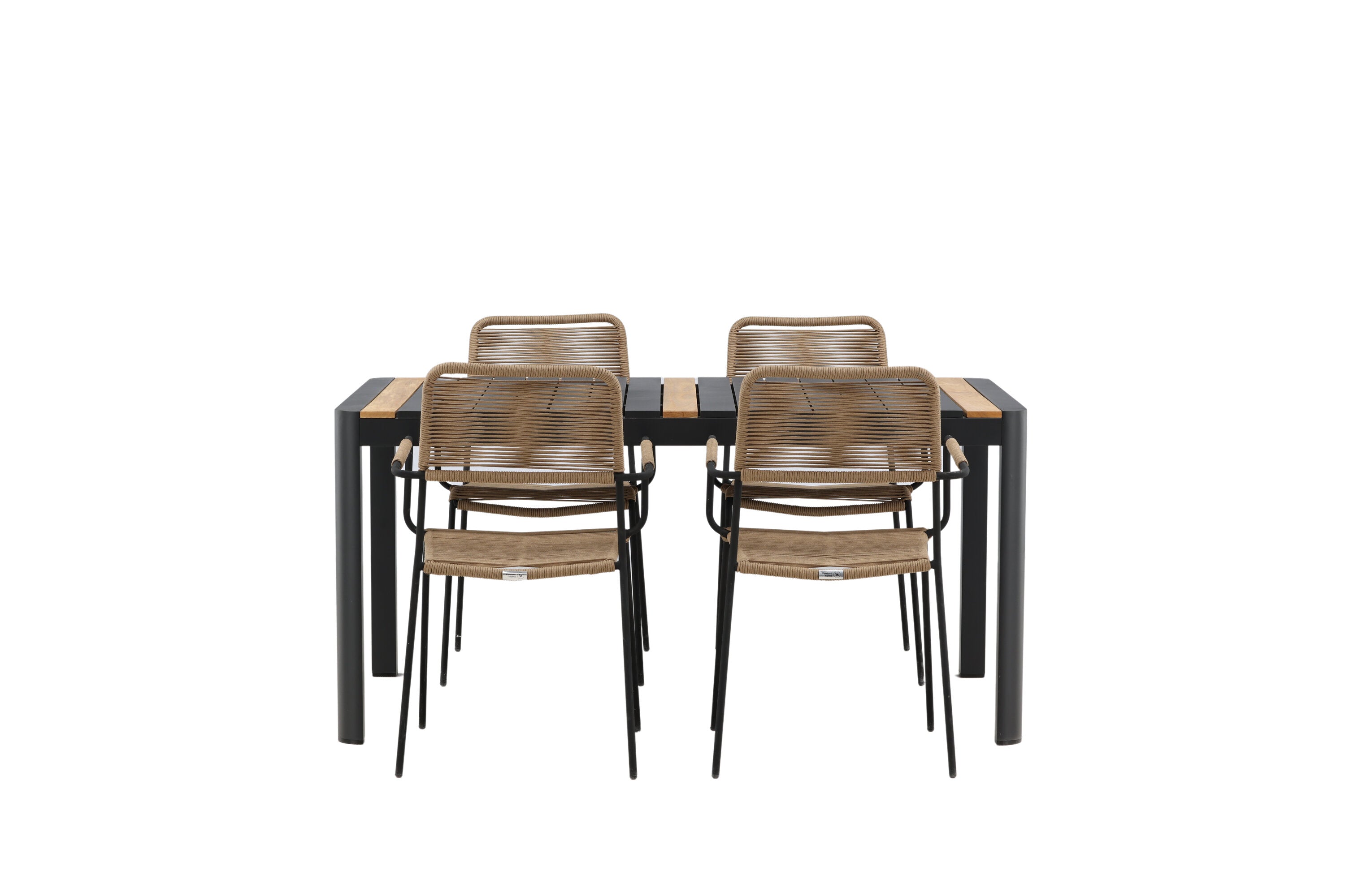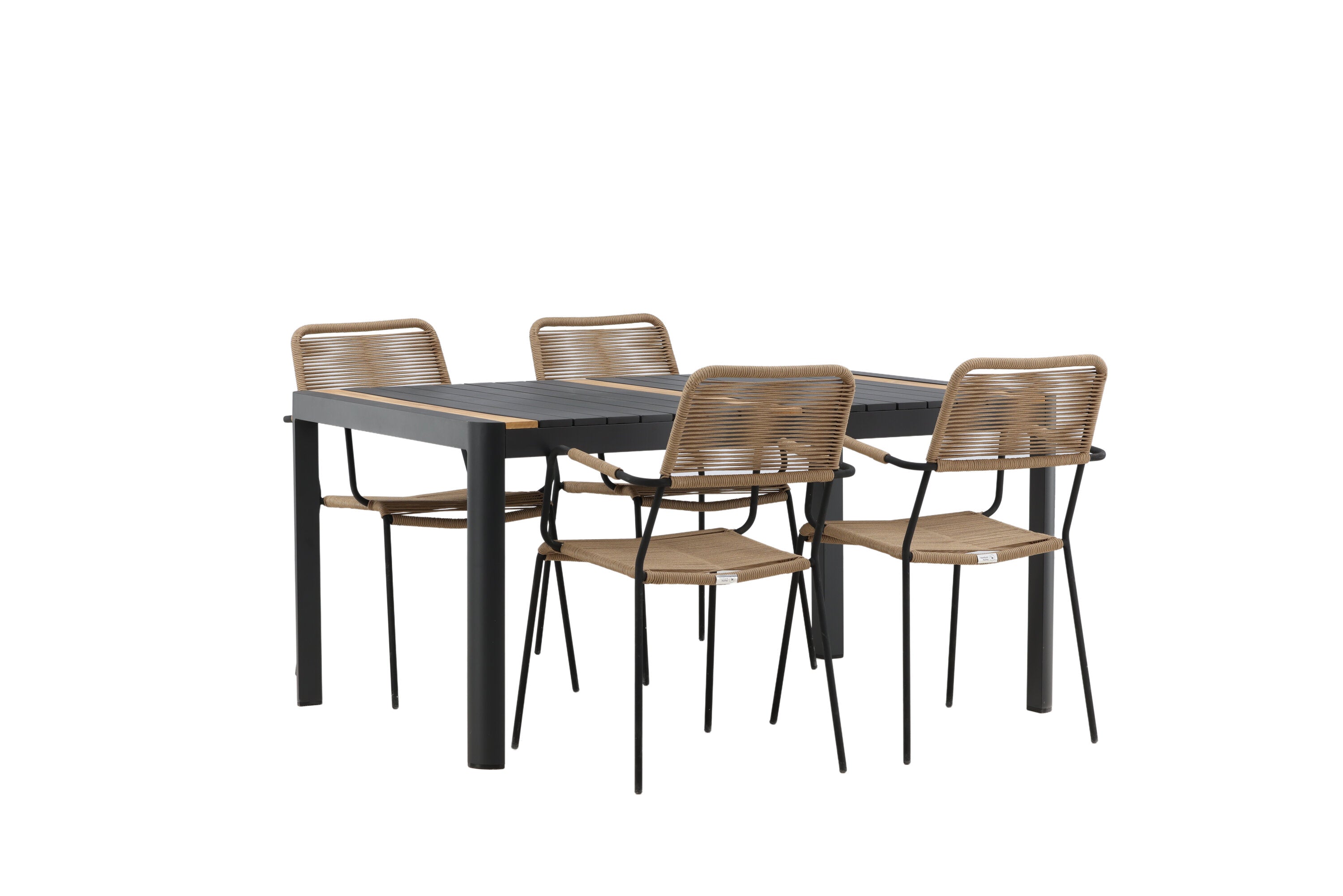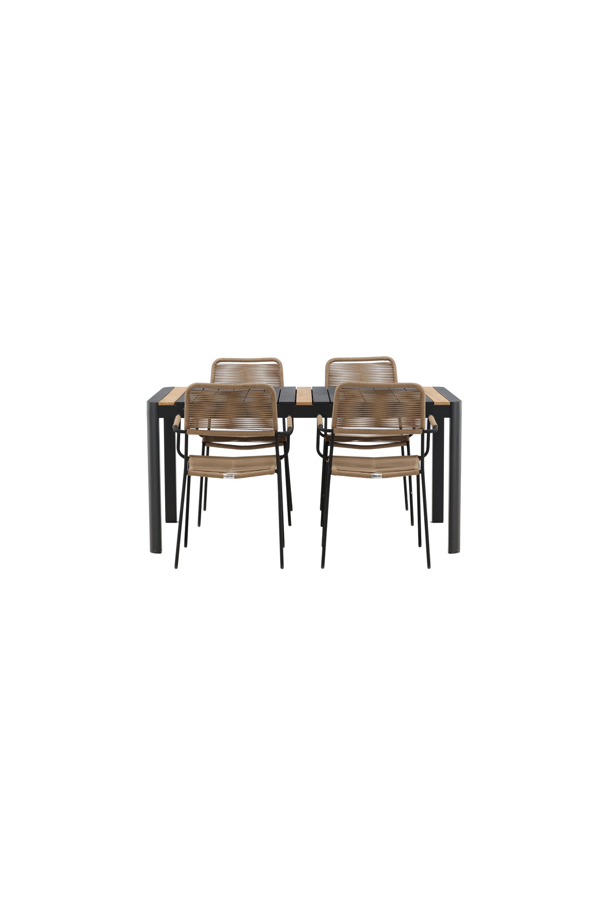 Togo - Jídelní stůl - Černá / Teak - Allu / Teak - 150*100 _1+ Lindos - Křeslo - Black Alu / Latte Latte _4