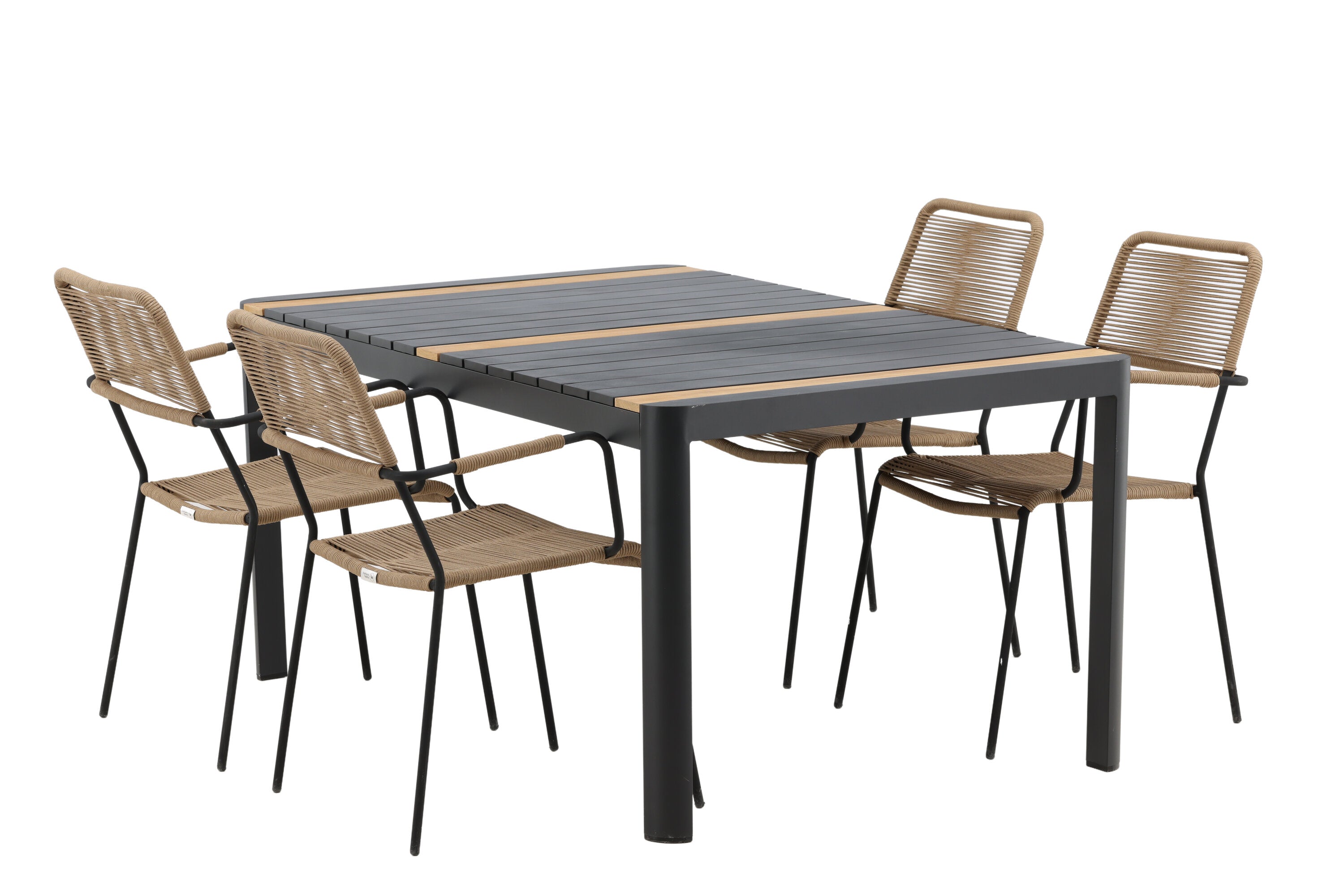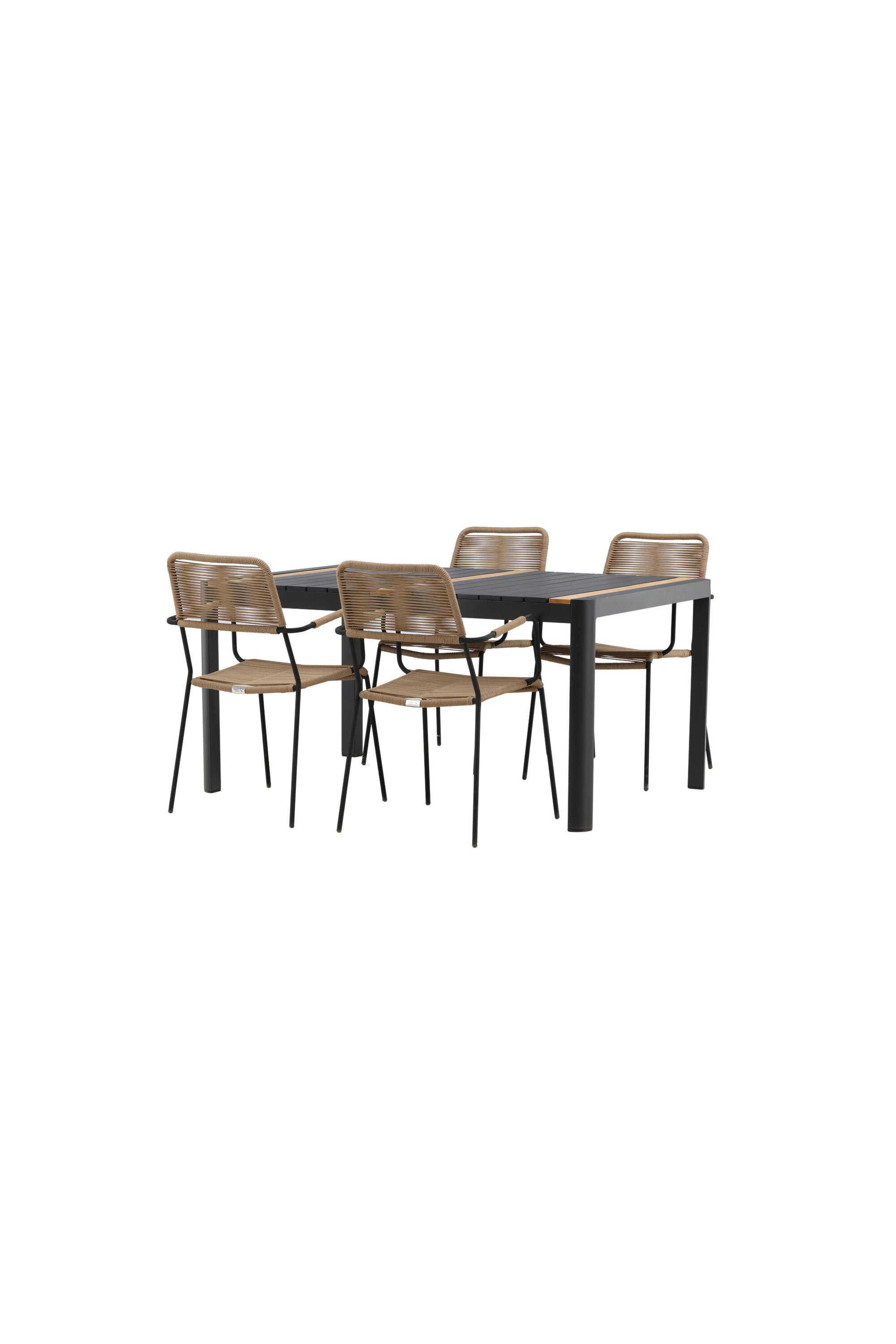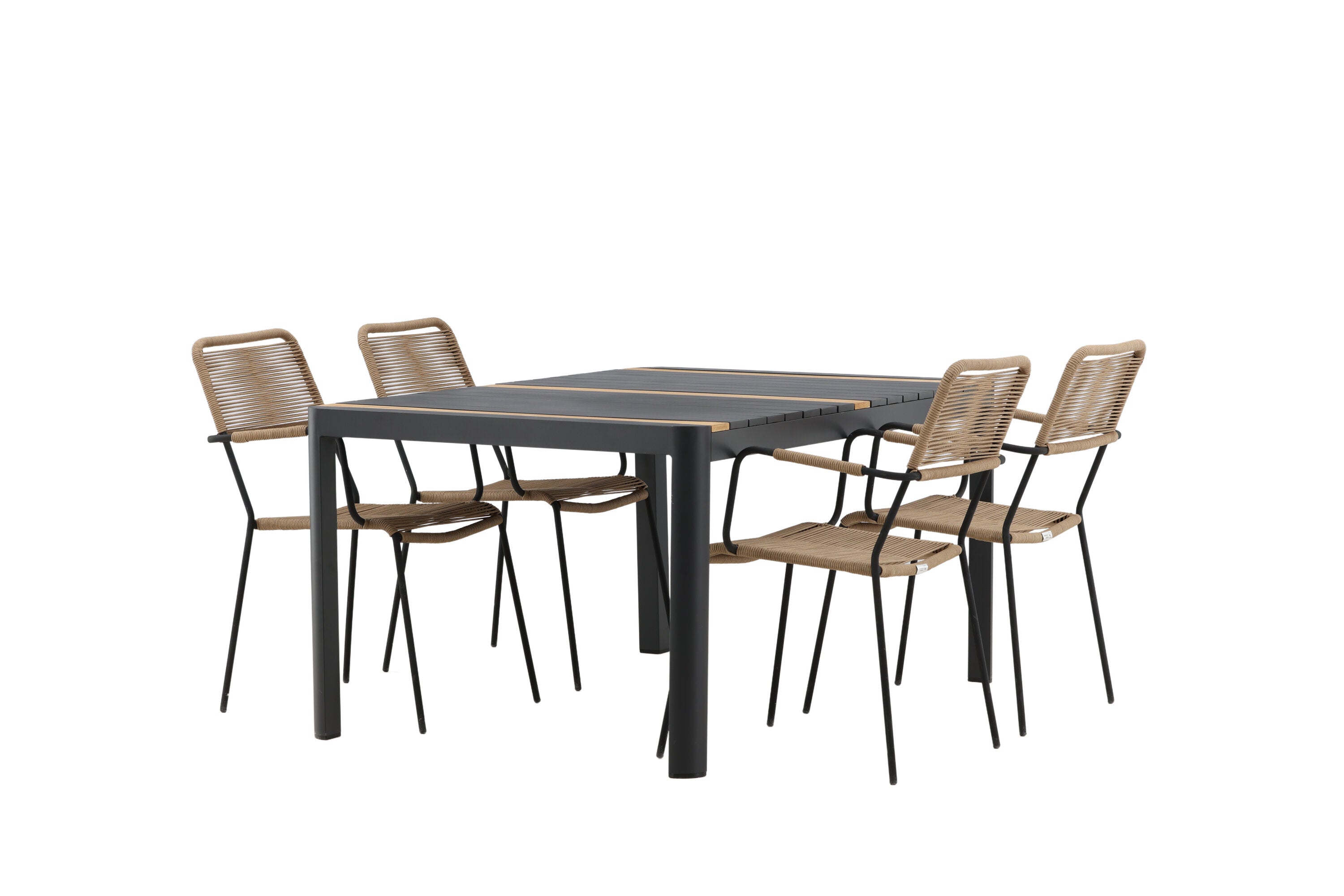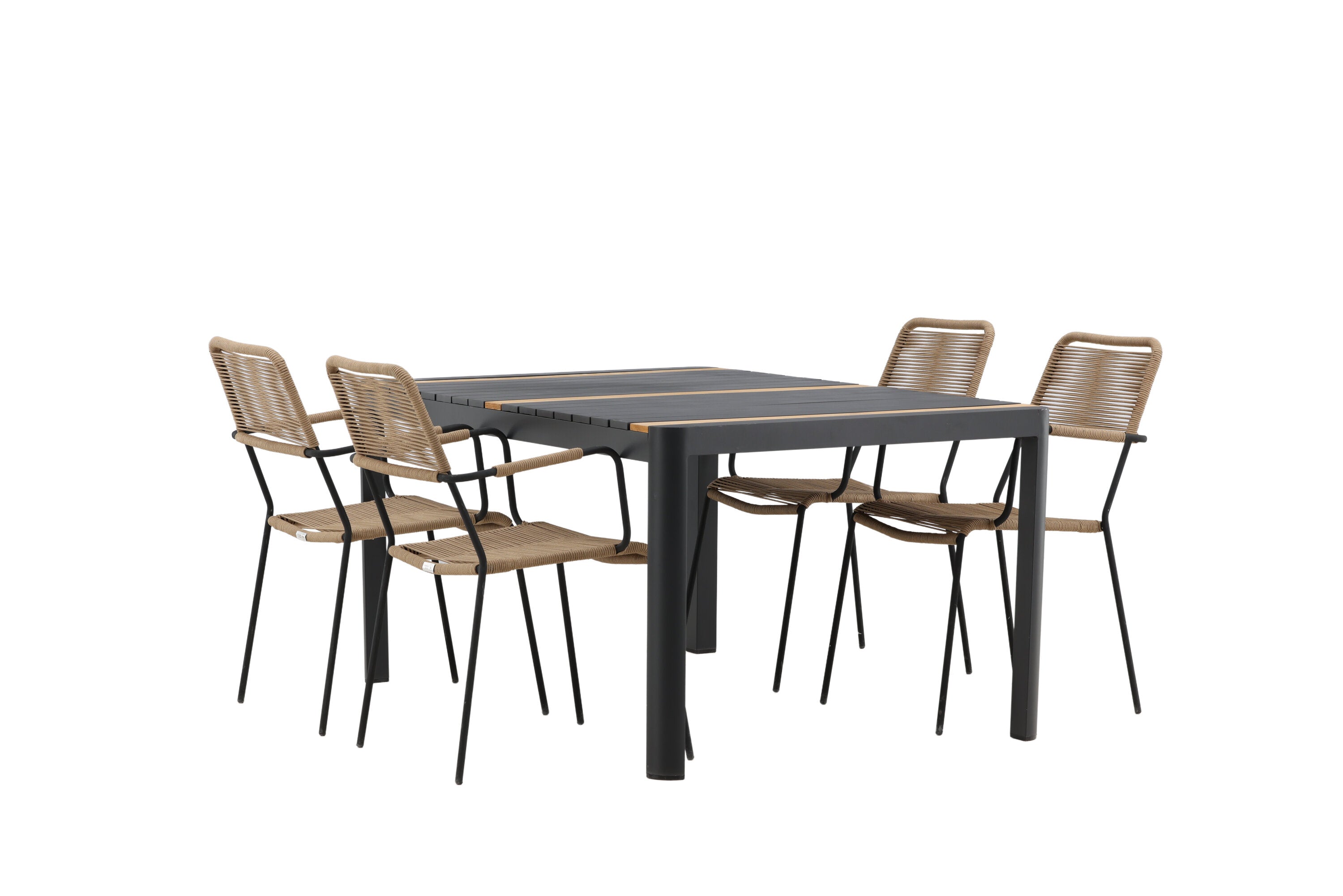 Togo - Jídelní stůl - Černá / Teak - Allu / Teak - 150*100 _1+ Lindos - Křeslo - Black Alu / Latte Latte _4