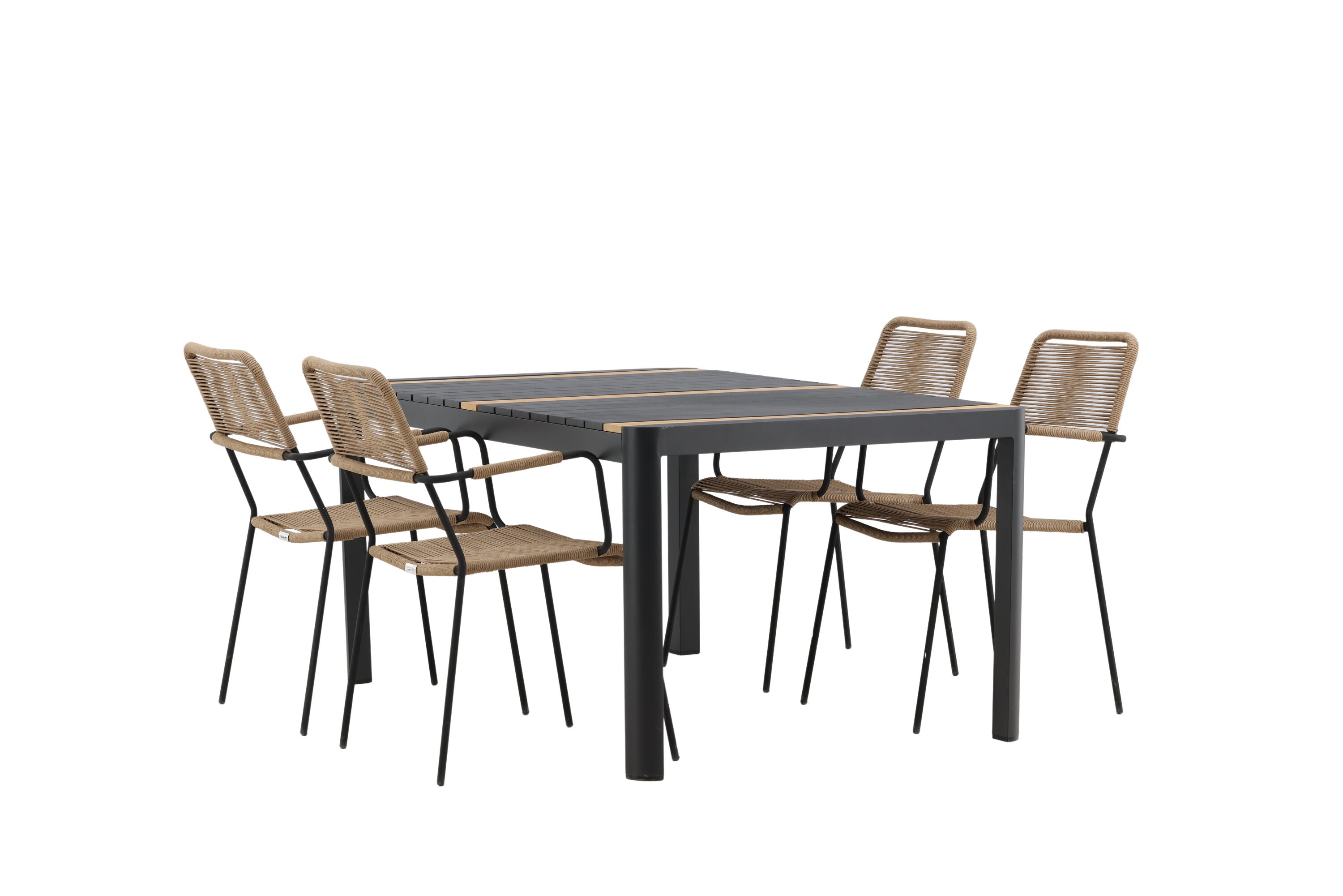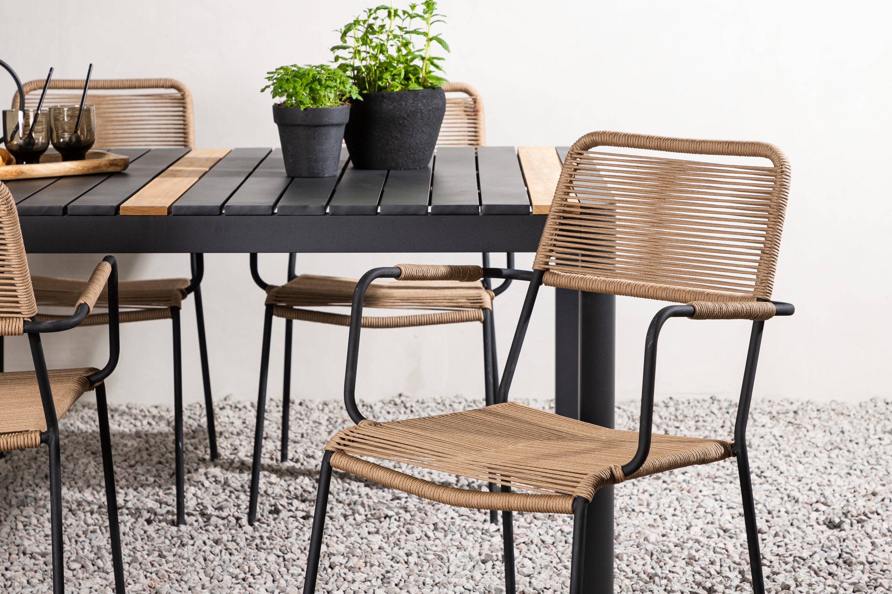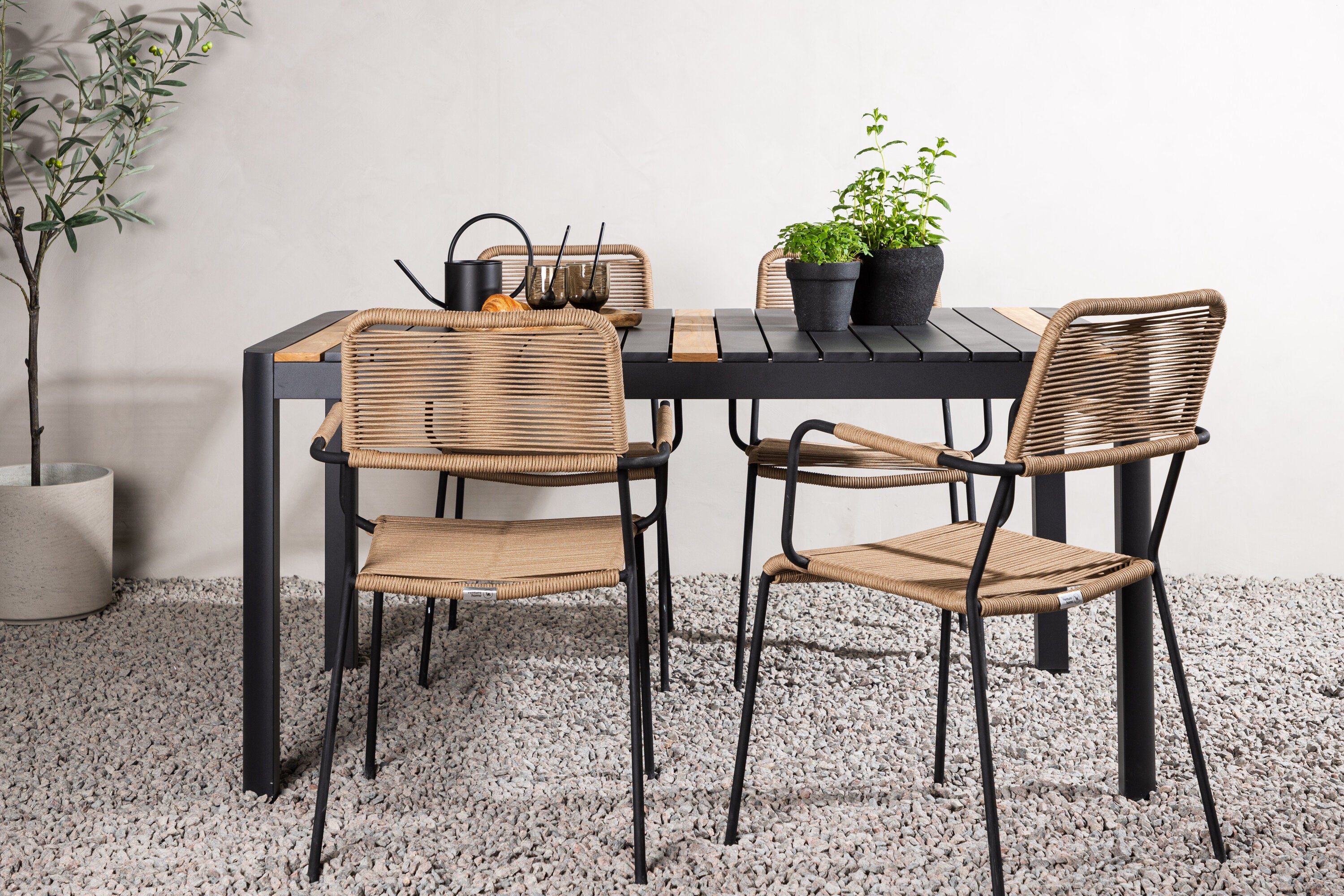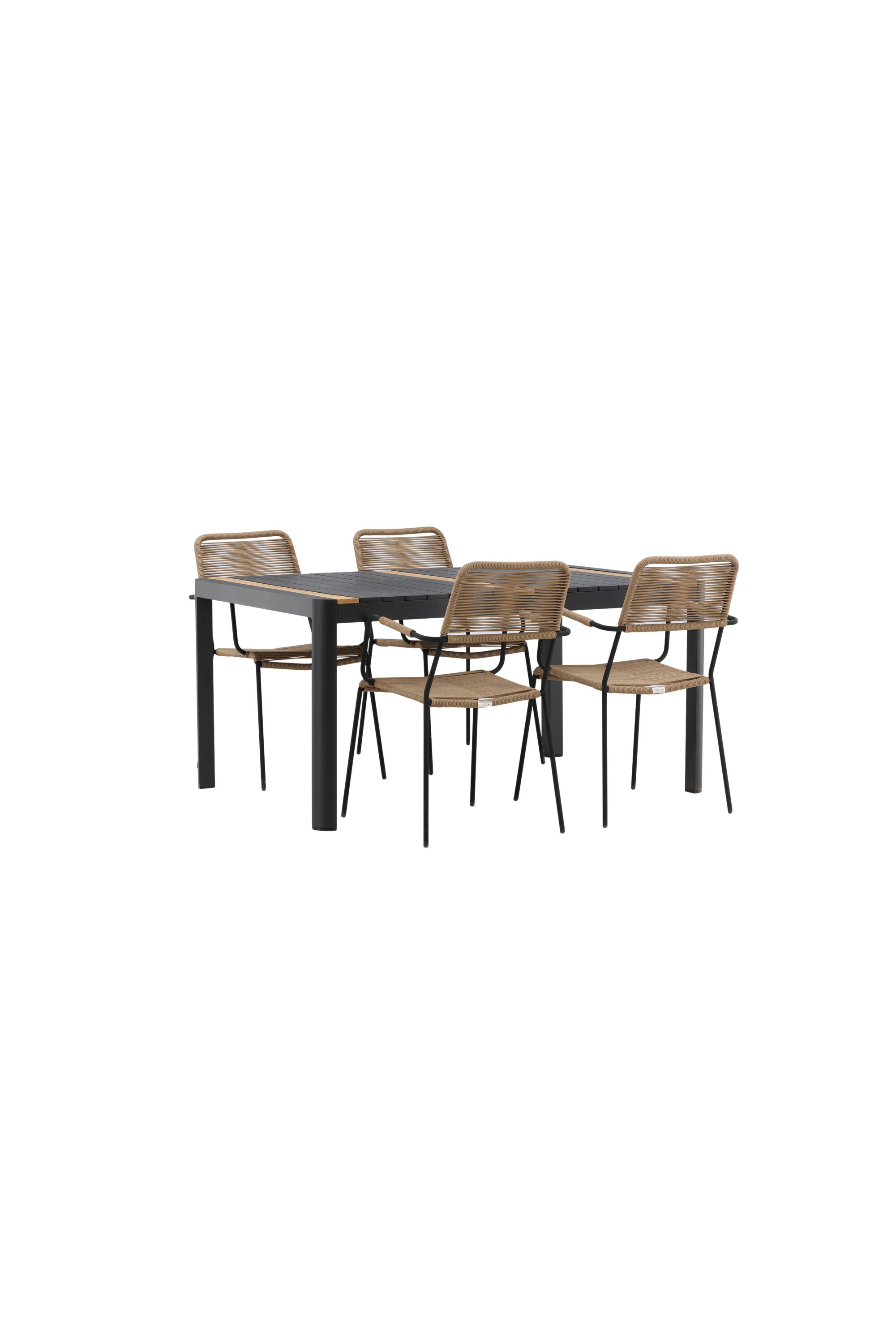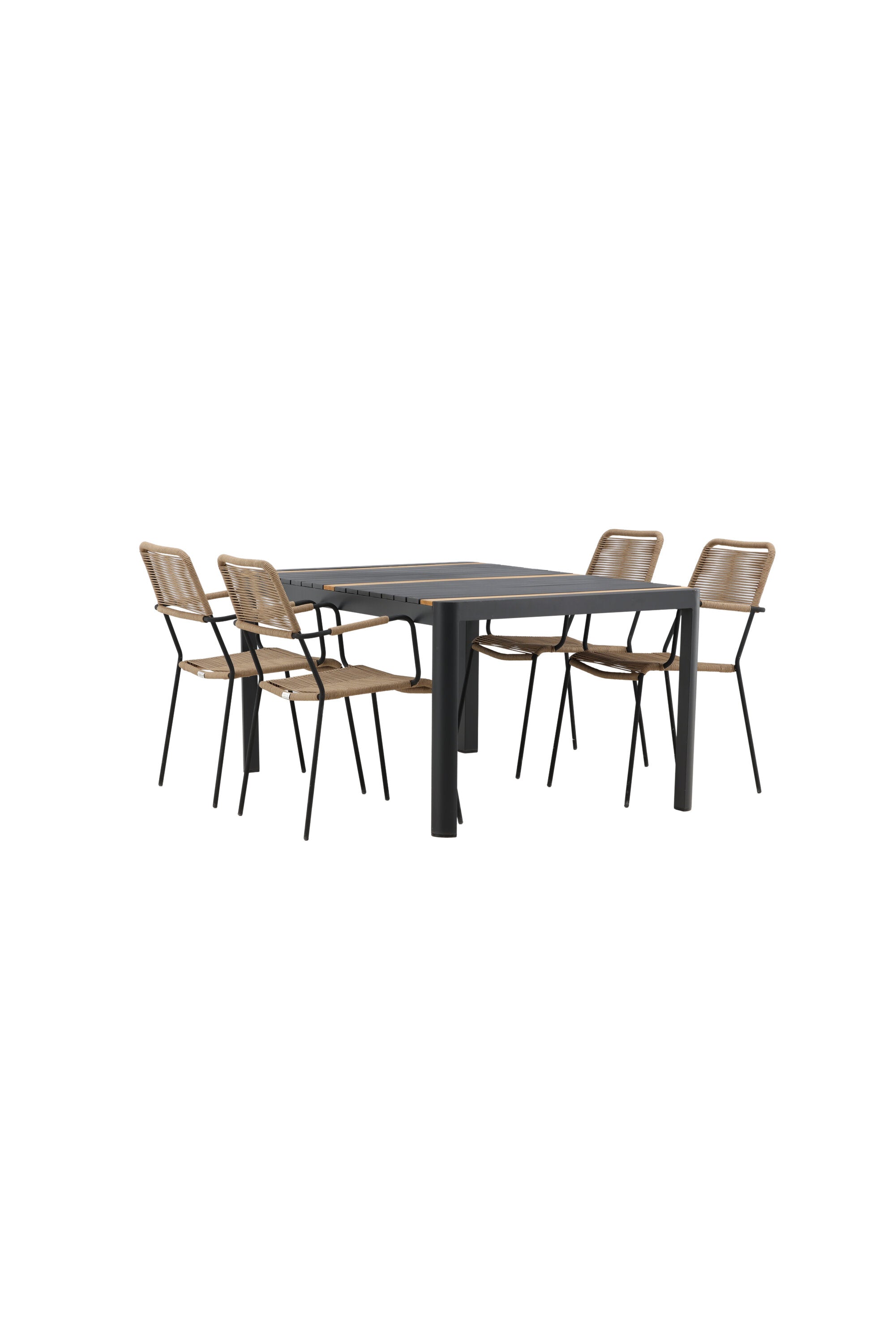 Togo - Jídelní stůl - Černá / Teak - Allu / Teak - 150*100 _1+ Lindos - Křeslo - Black Alu / Latte Latte _4
