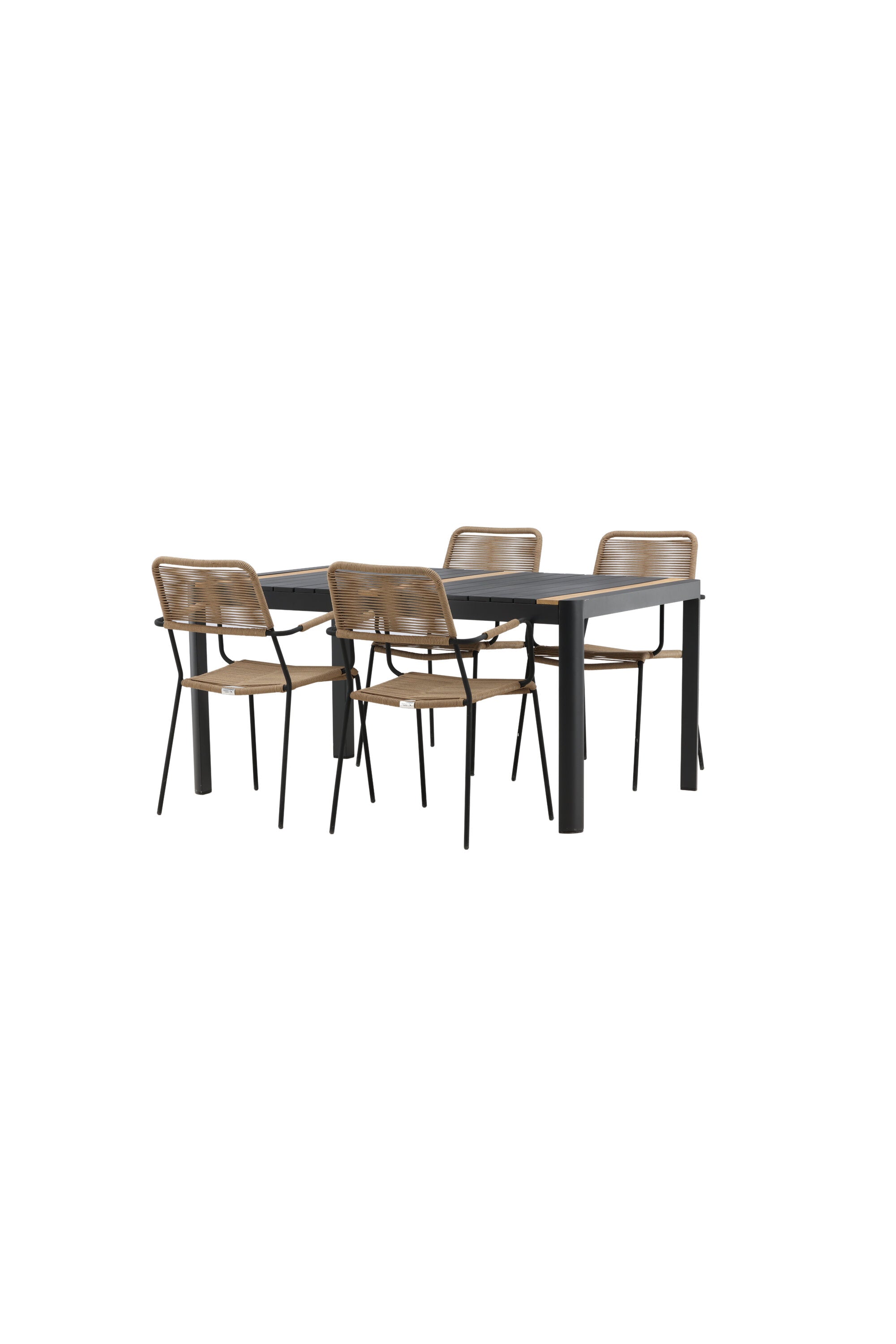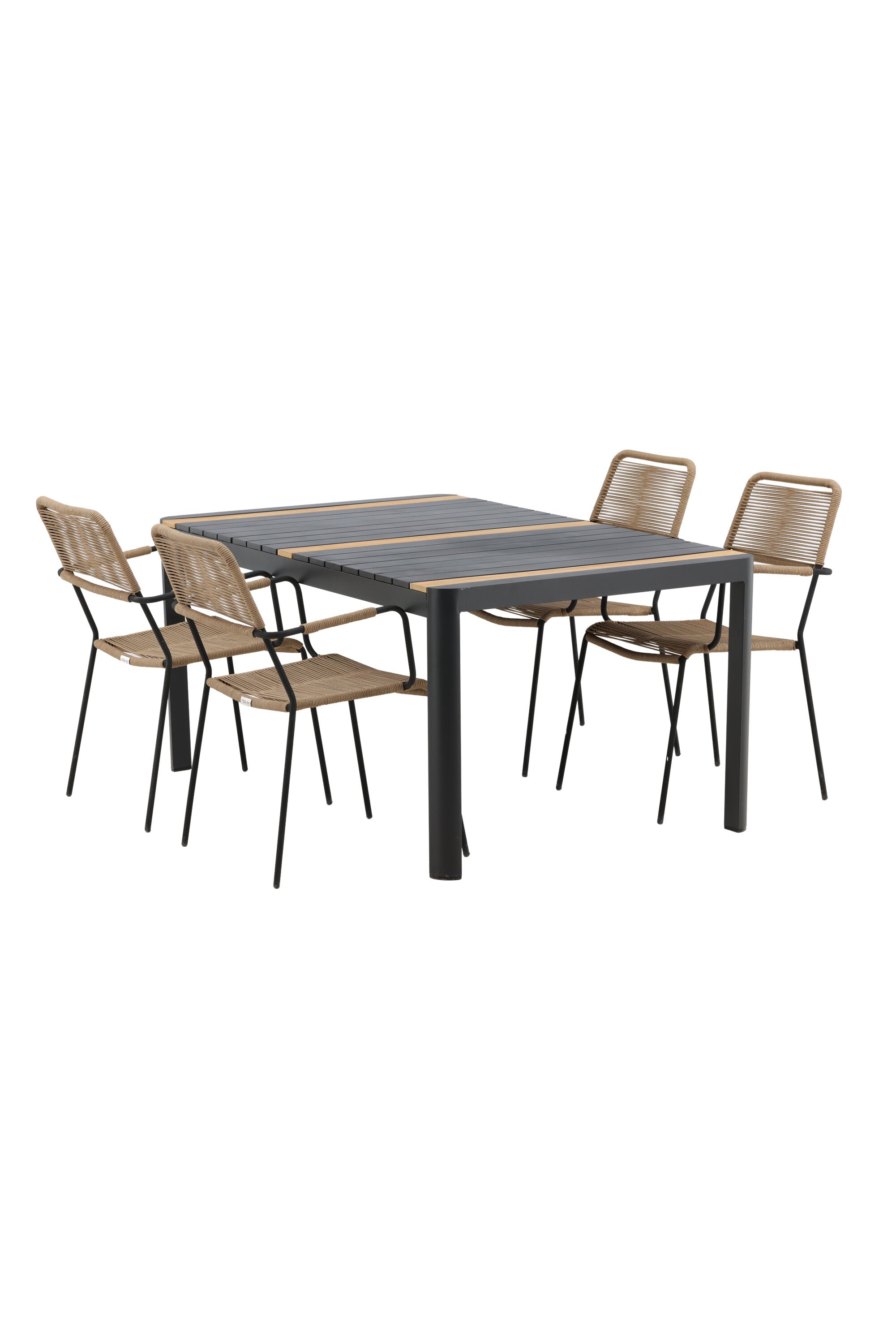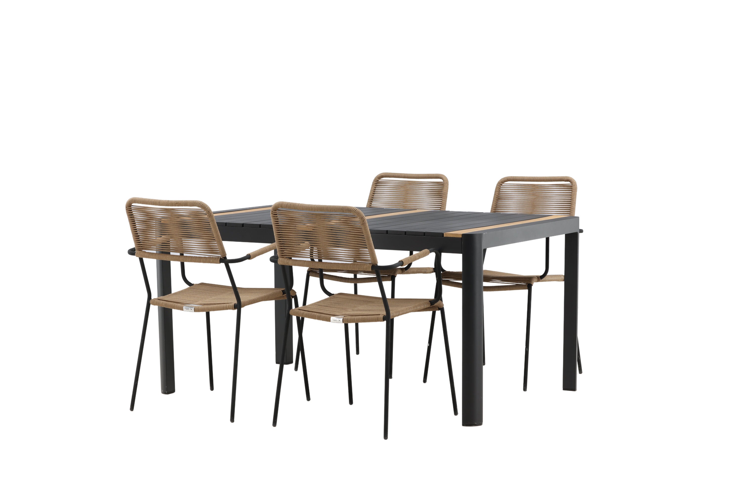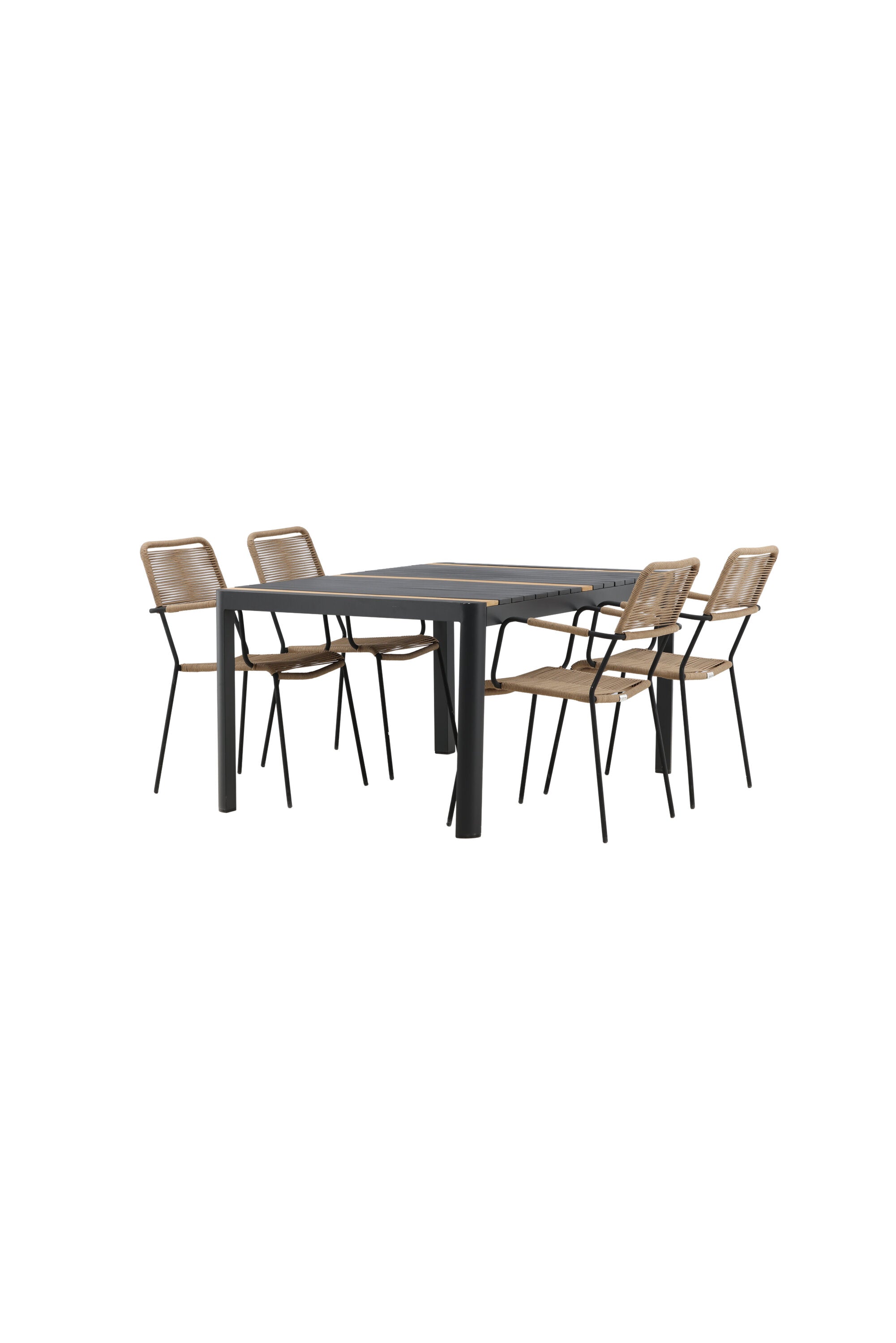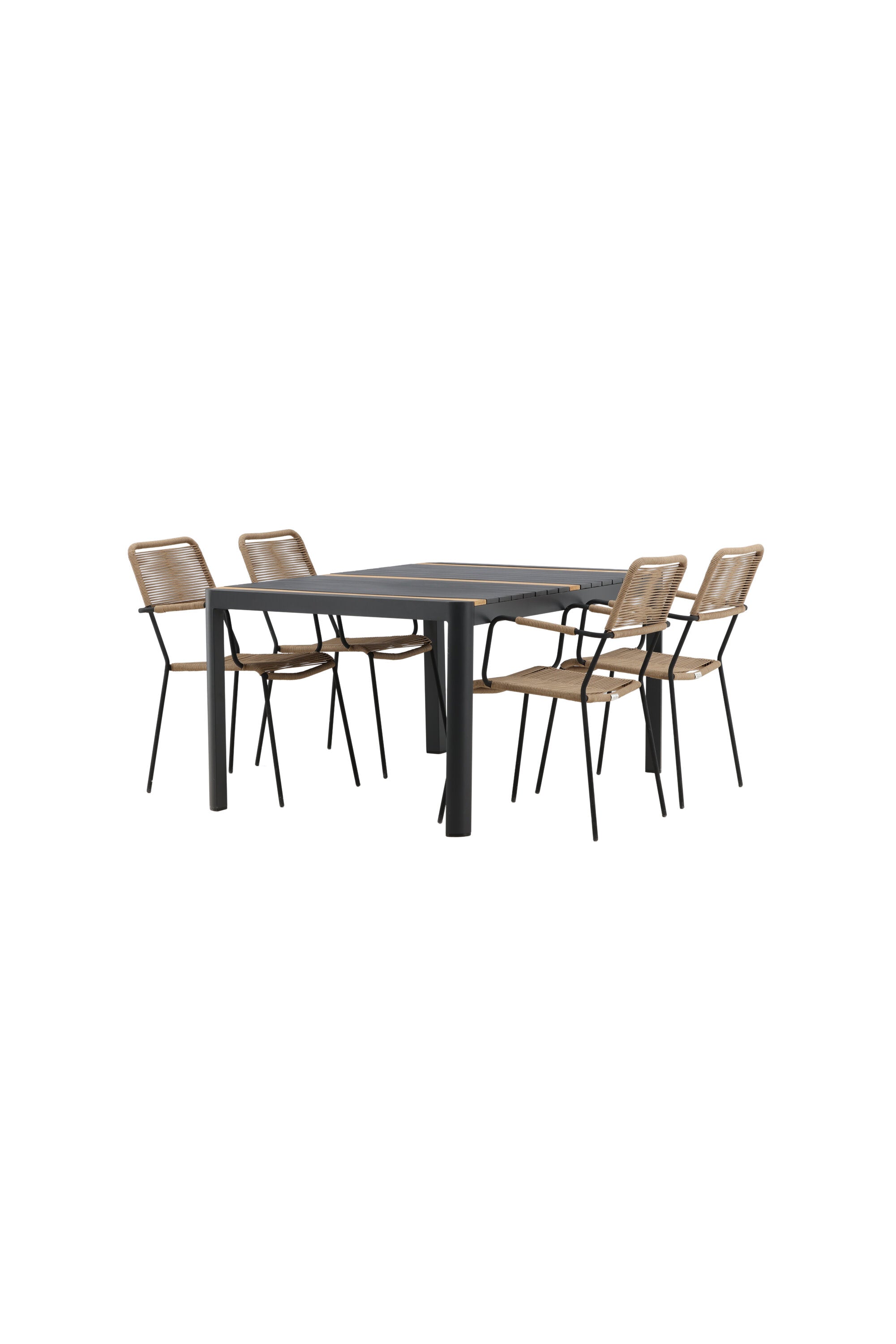Togo - Jídelní stůl - Černá / Teak - Allu / Teak - 150*100 _1+ Lindos - Křeslo - Black Alu / Latte Latte _4