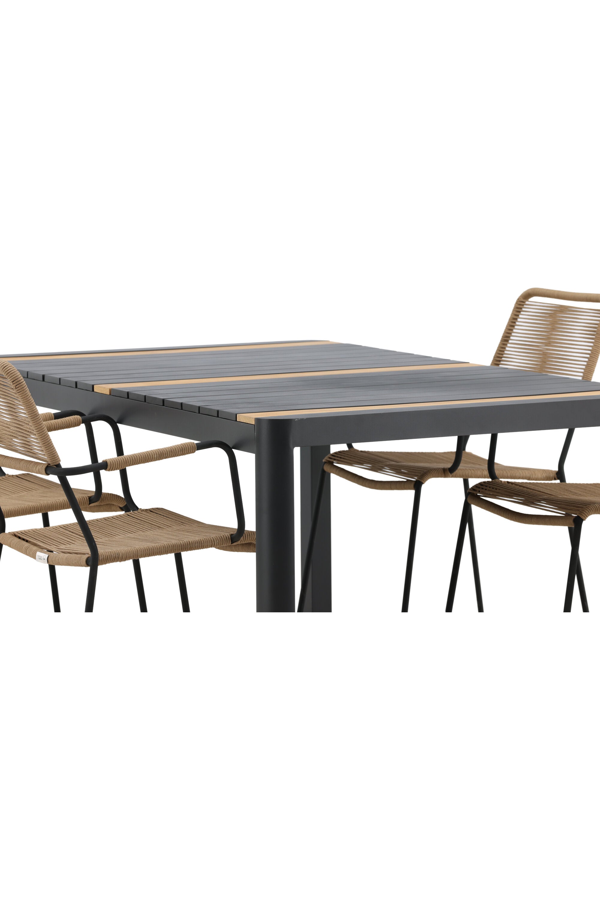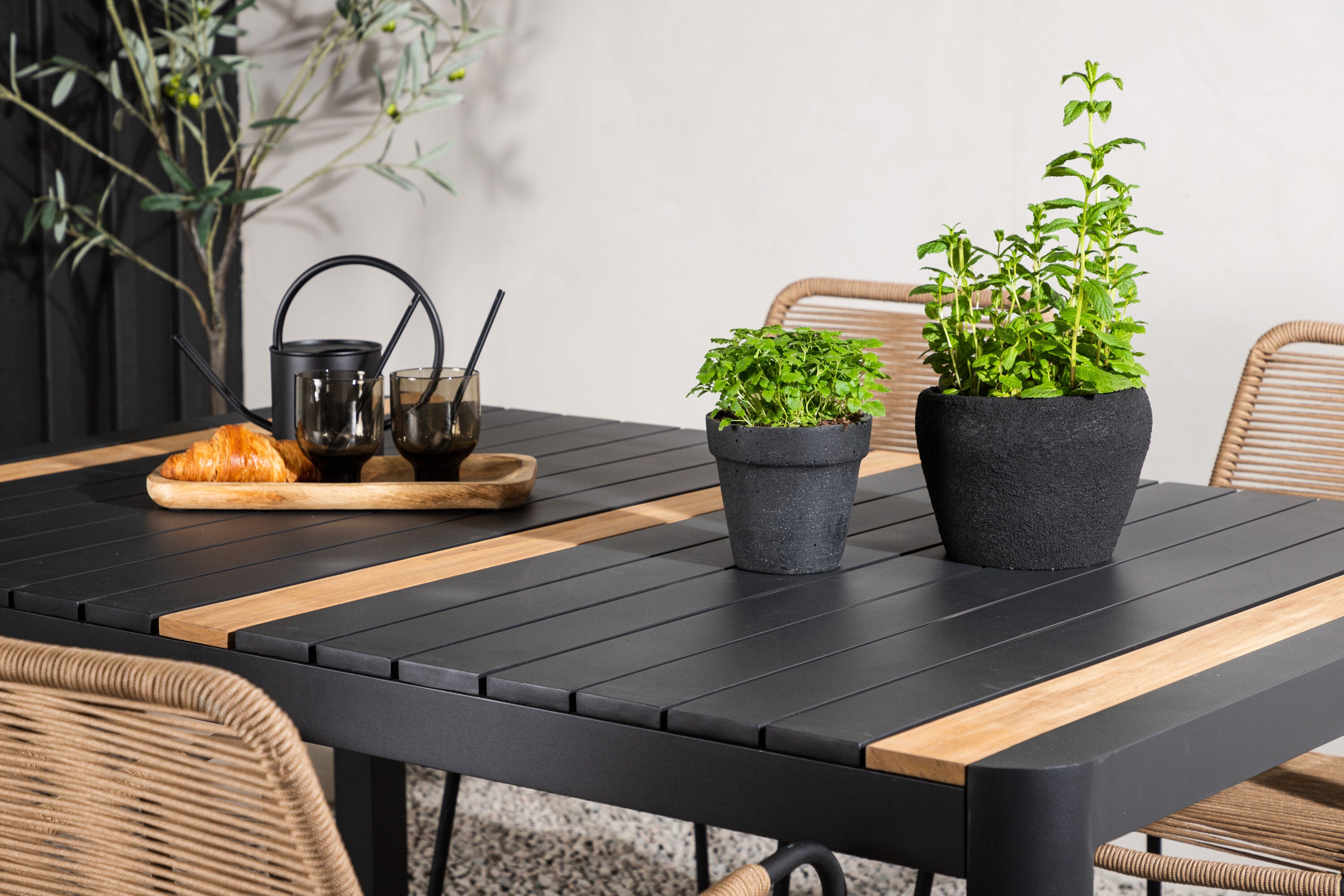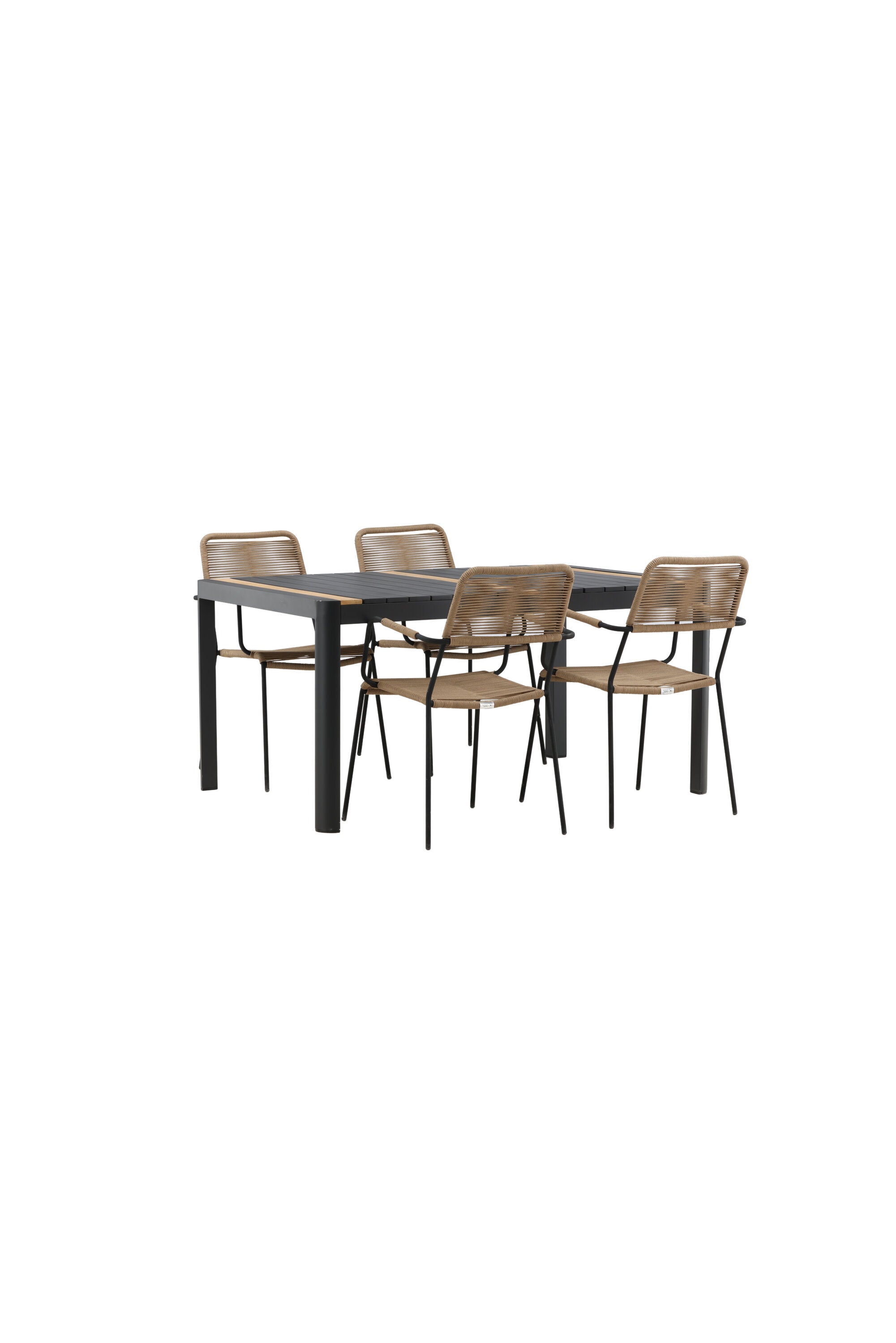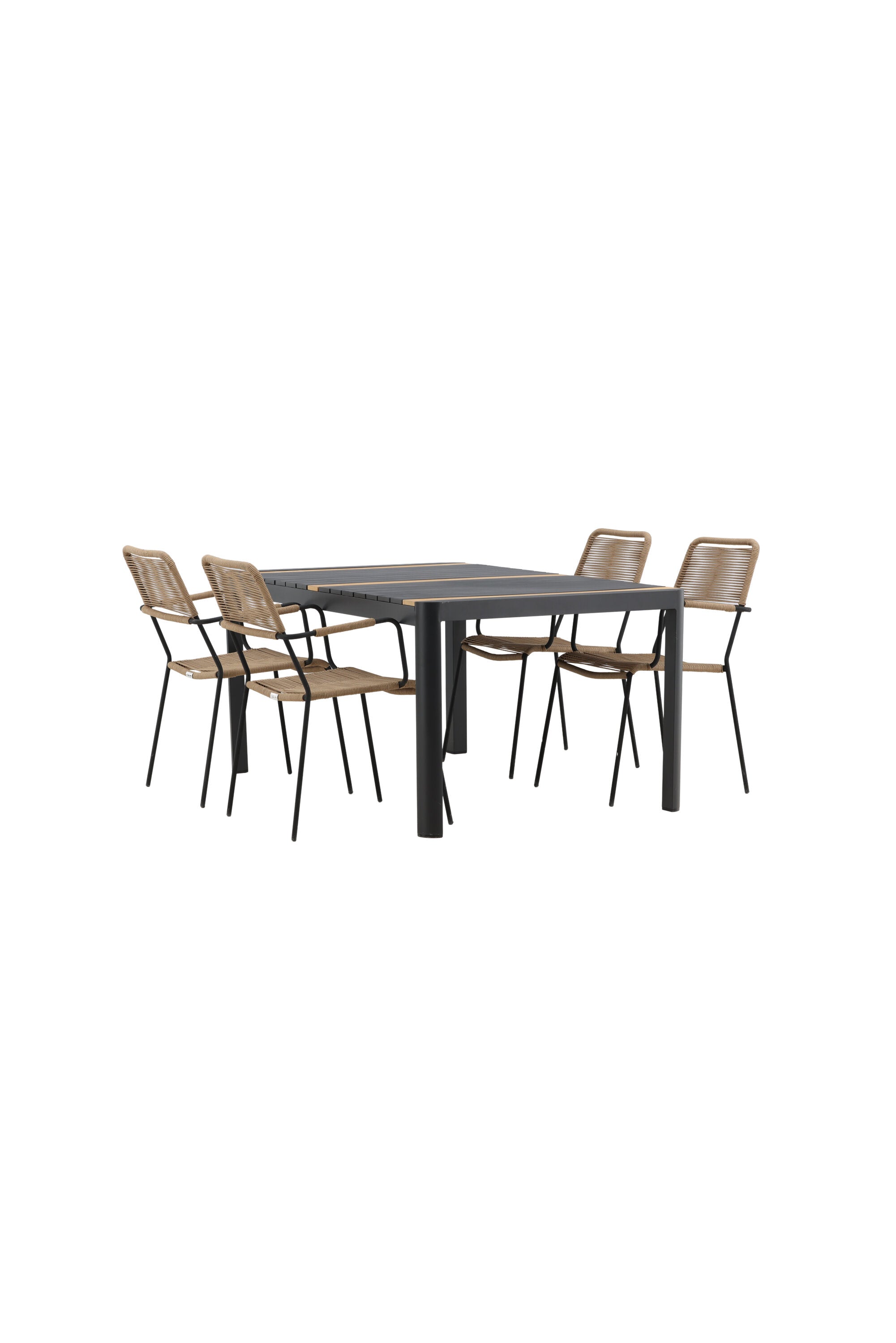 Togo - Jídelní stůl - Černá / Teak - Allu / Teak - 150*100 _1+ Lindos - Křeslo - Black Alu / Latte Latte _4