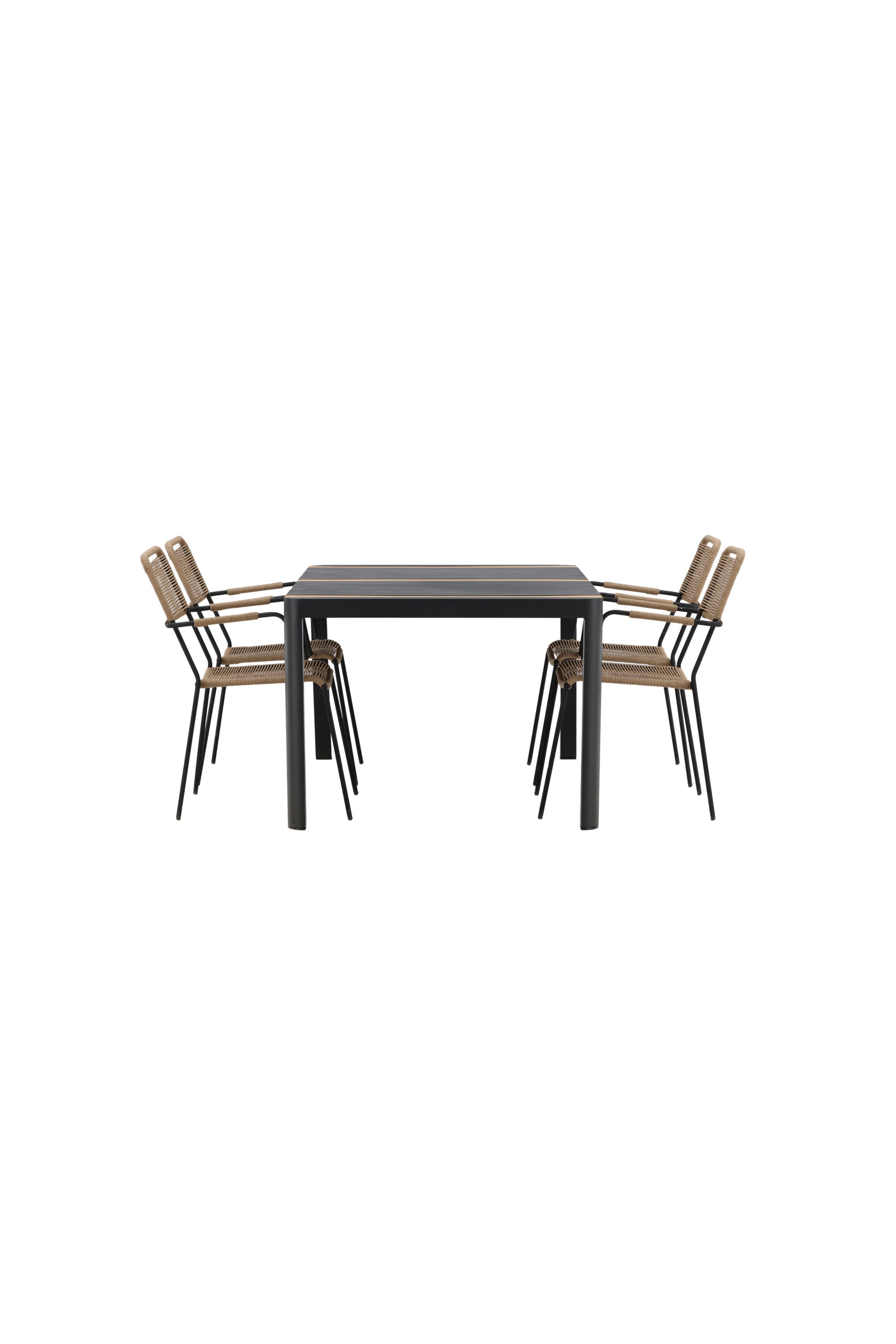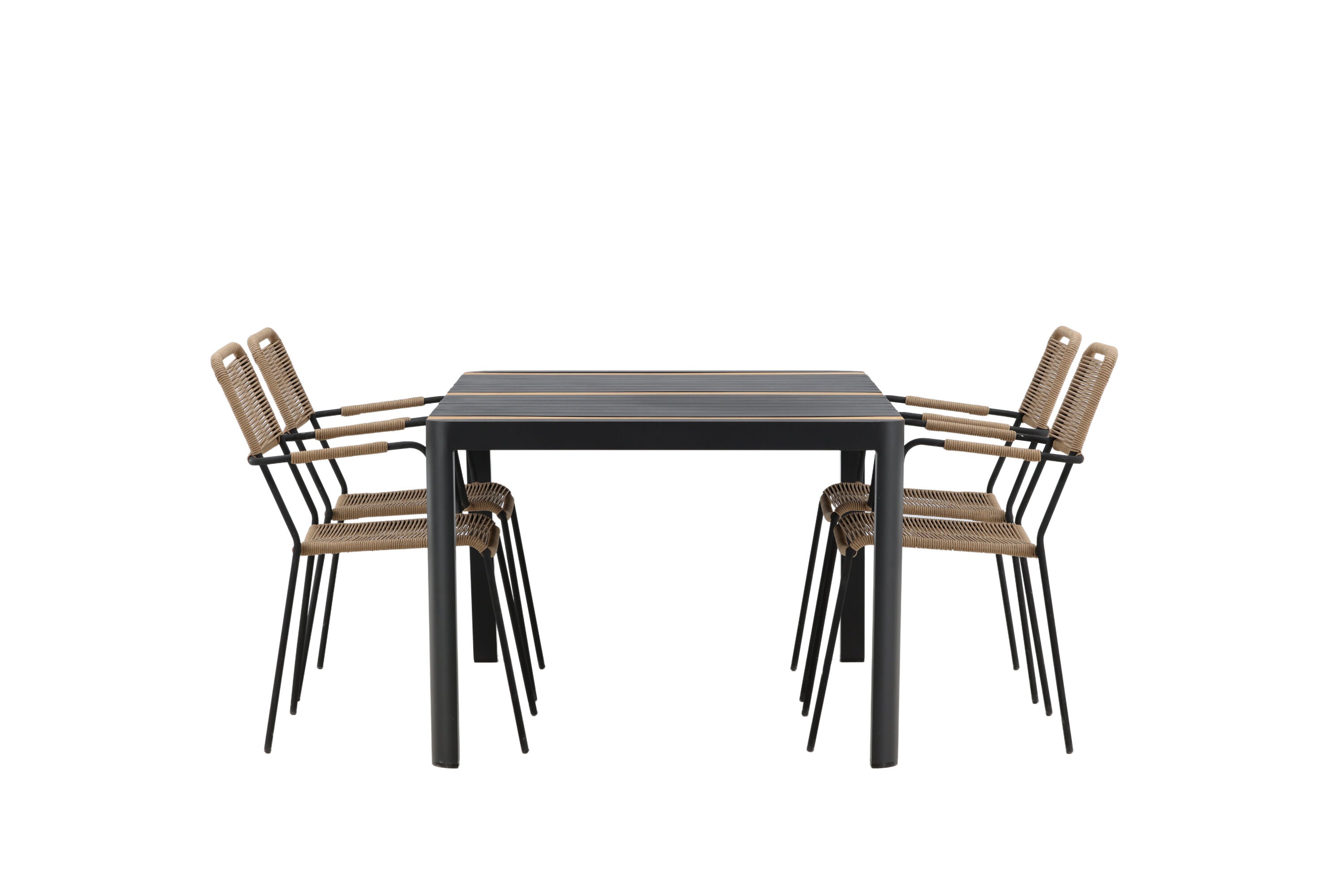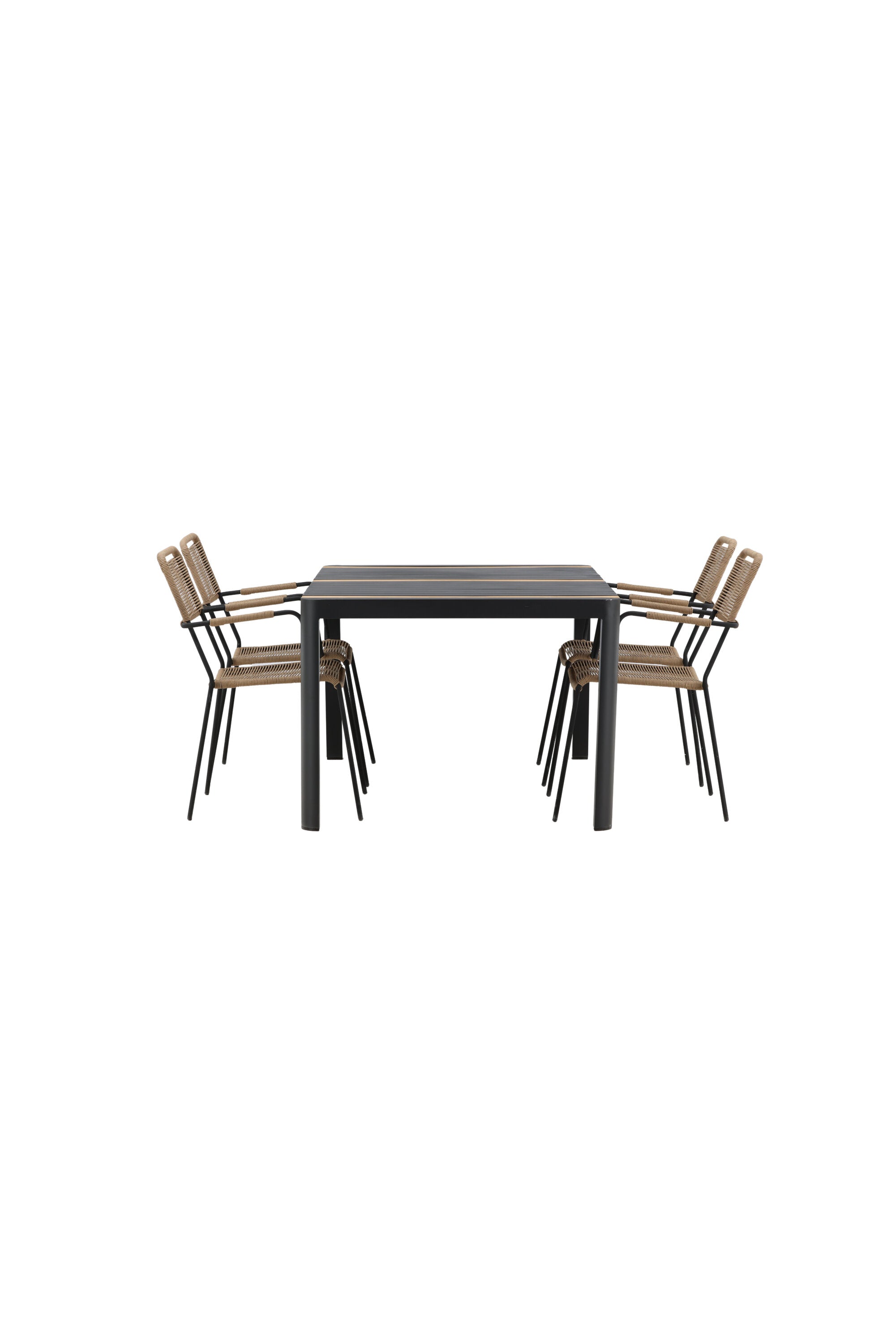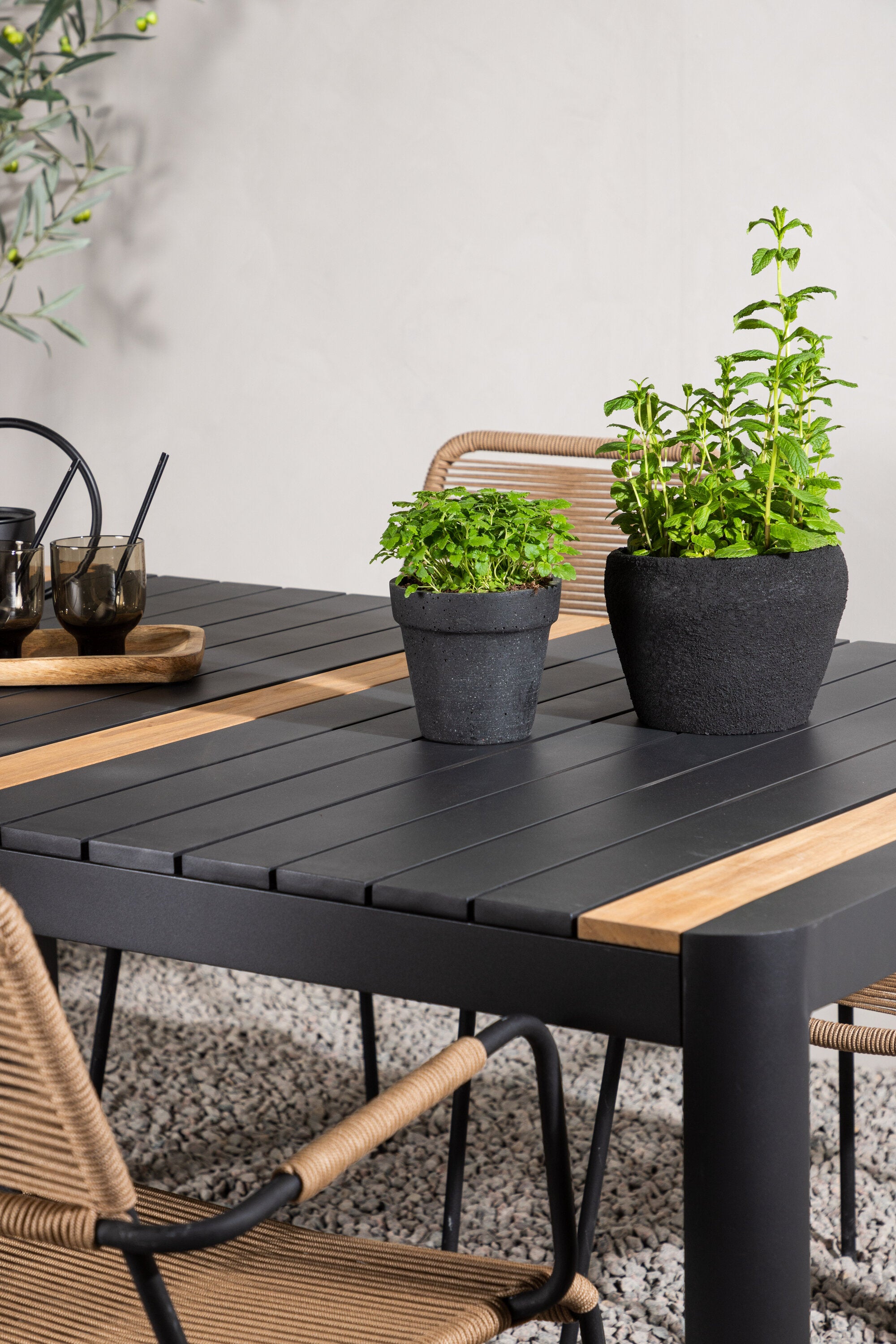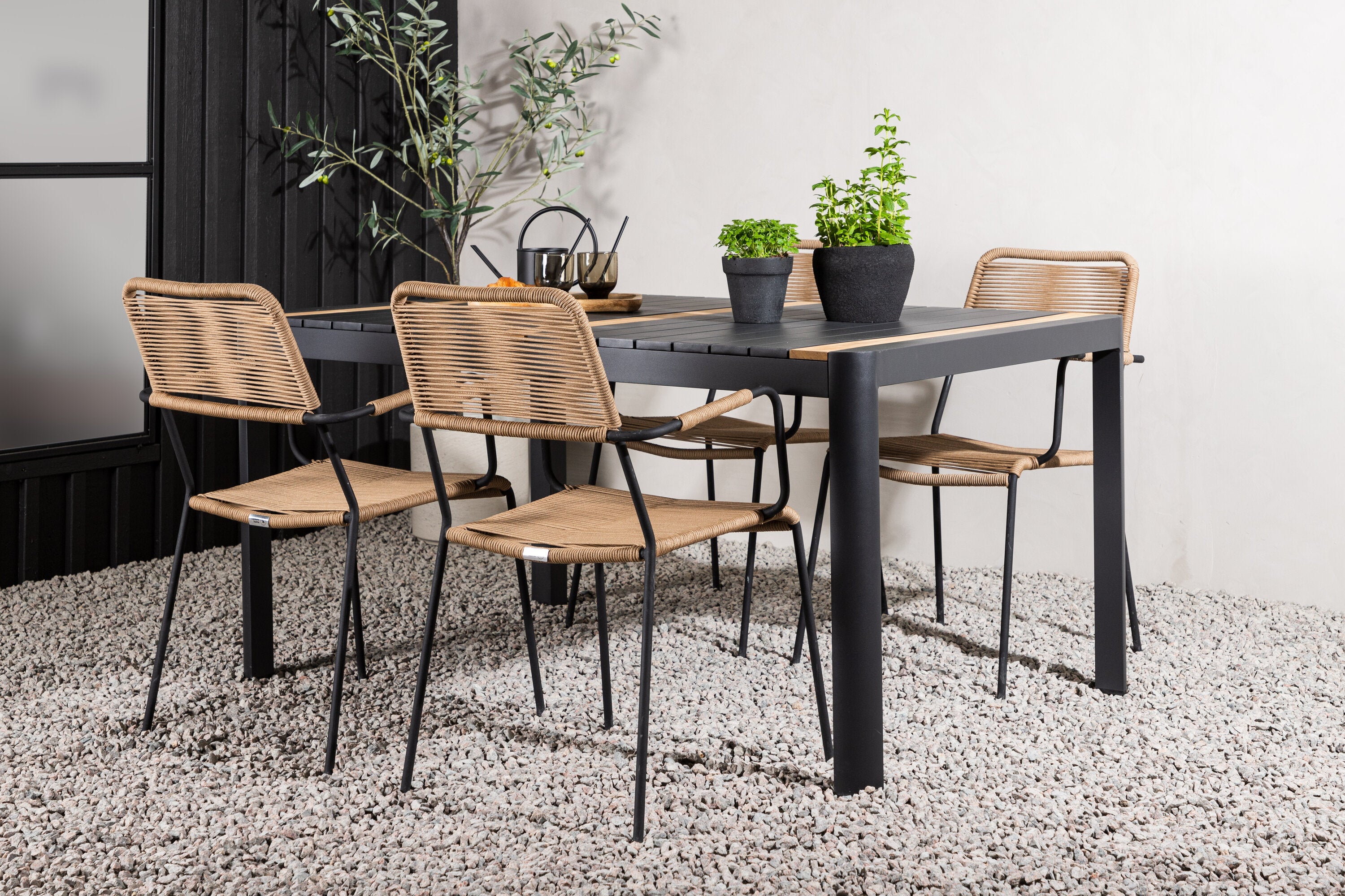 Togo - Jídelní stůl - Černá / Teak - Allu / Teak - 150*100 _1+ Lindos - Křeslo - Black Alu / Latte Latte _4