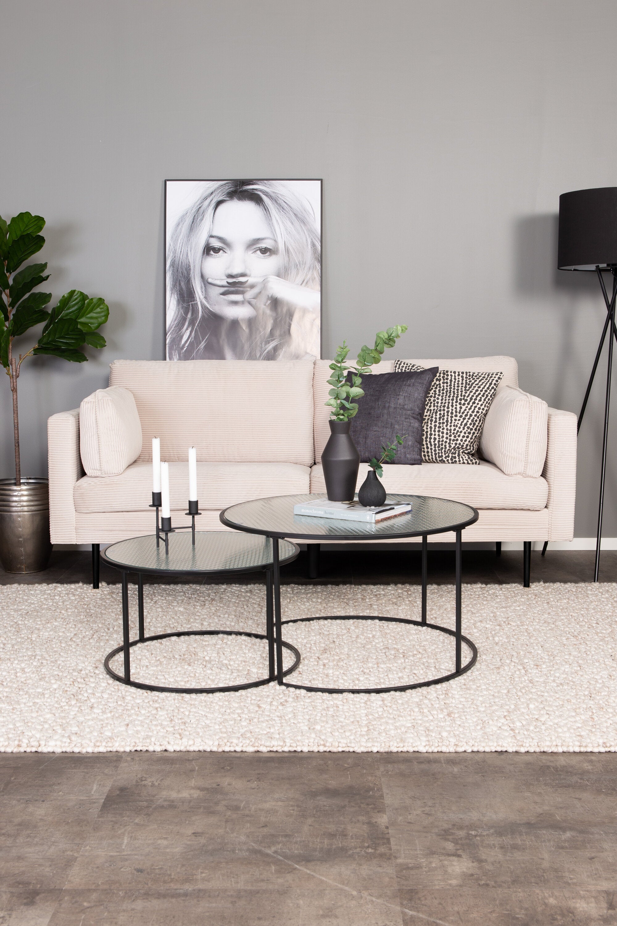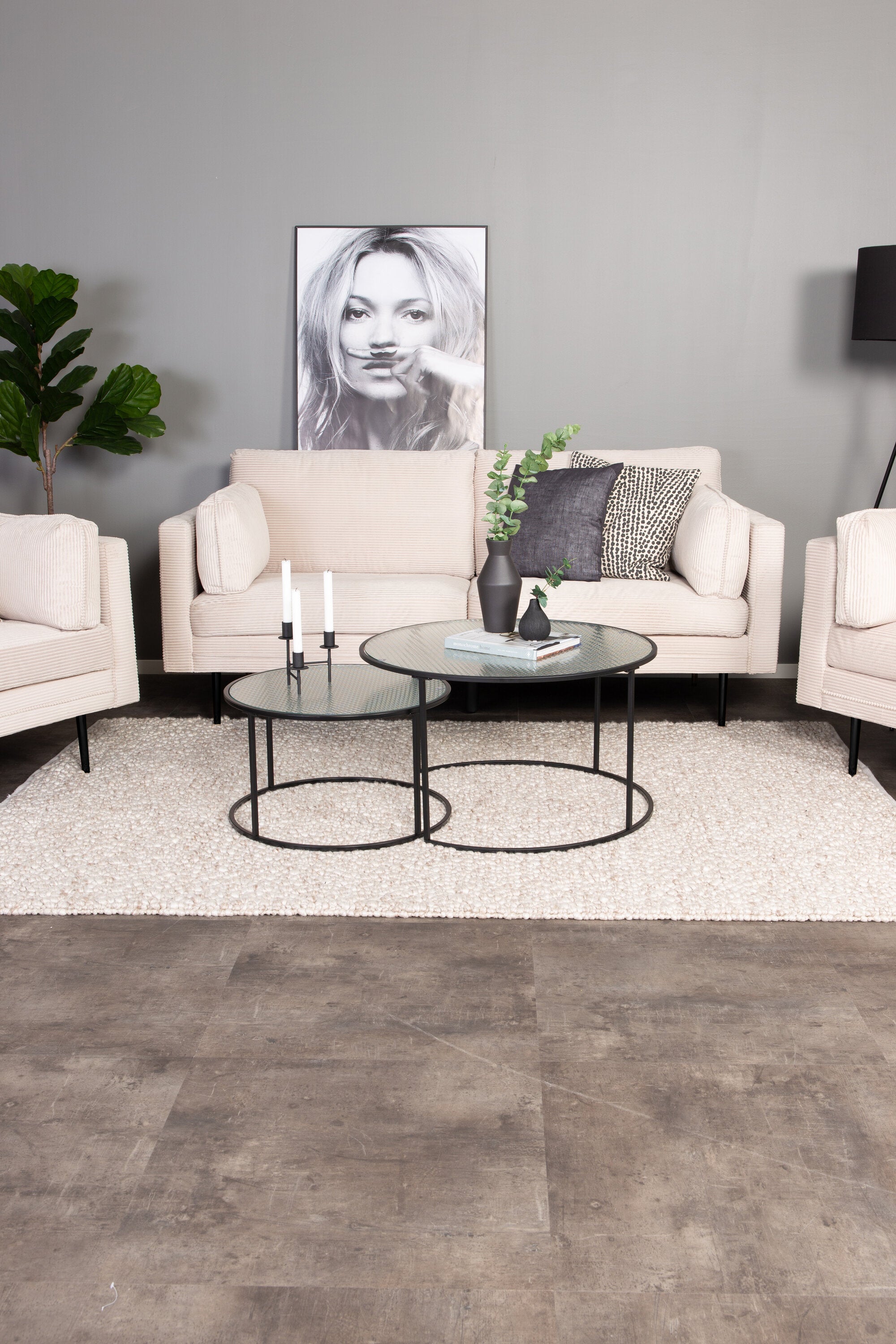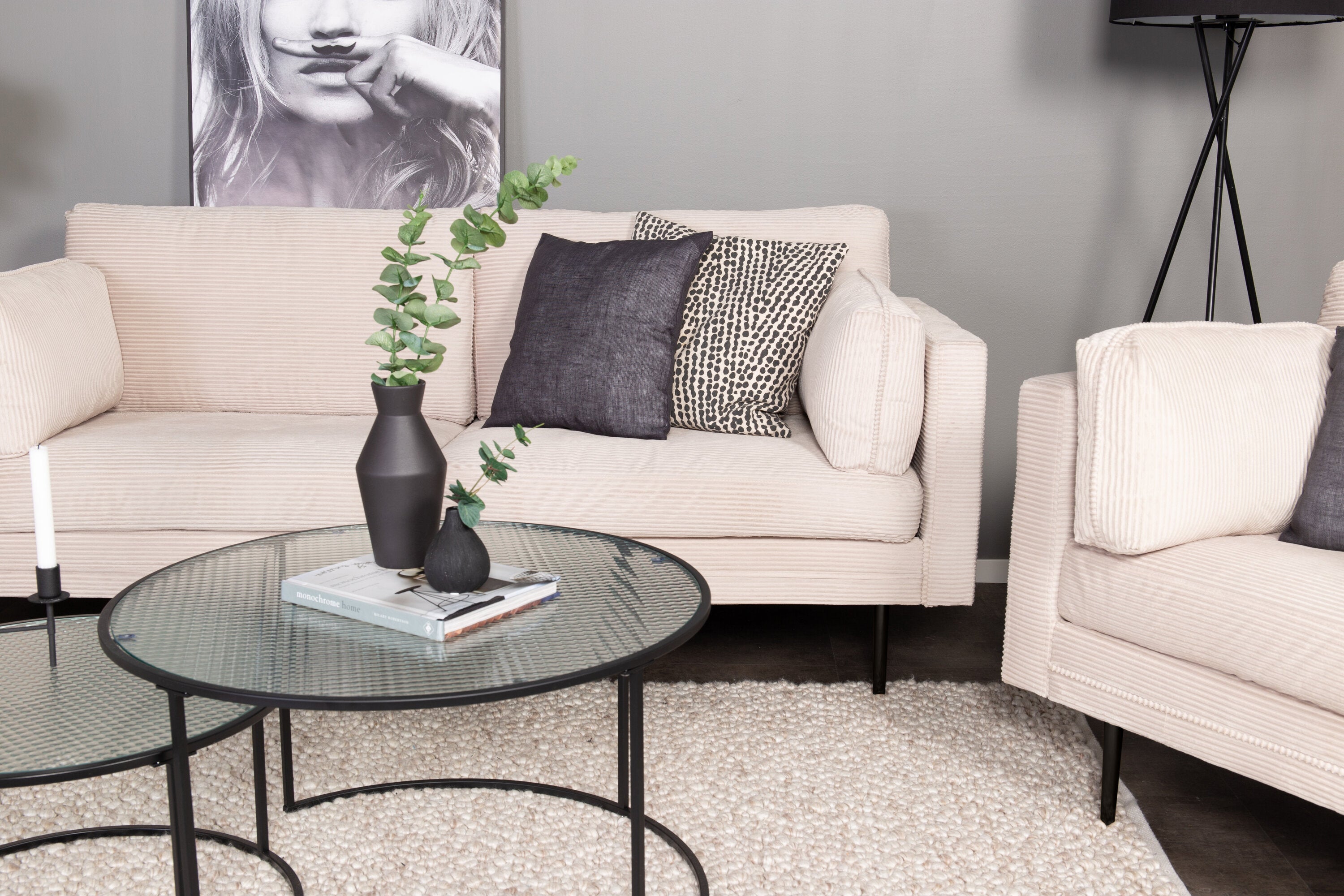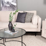 Nechte moderní design setkat se s nostalgií 50. let. Série pohovek Boom nabízí jak vkusný design, tak vysoký komfort sezení. Tato stylová 2-3místná pohovka s měkkým čalouněním podobným manchesteru v béžové barvě a válcovitými kovovými nohami má nadčasový vzhled, díky kterému ji lze snadno sladit a zaručí vám luxusní a domácký pocit!