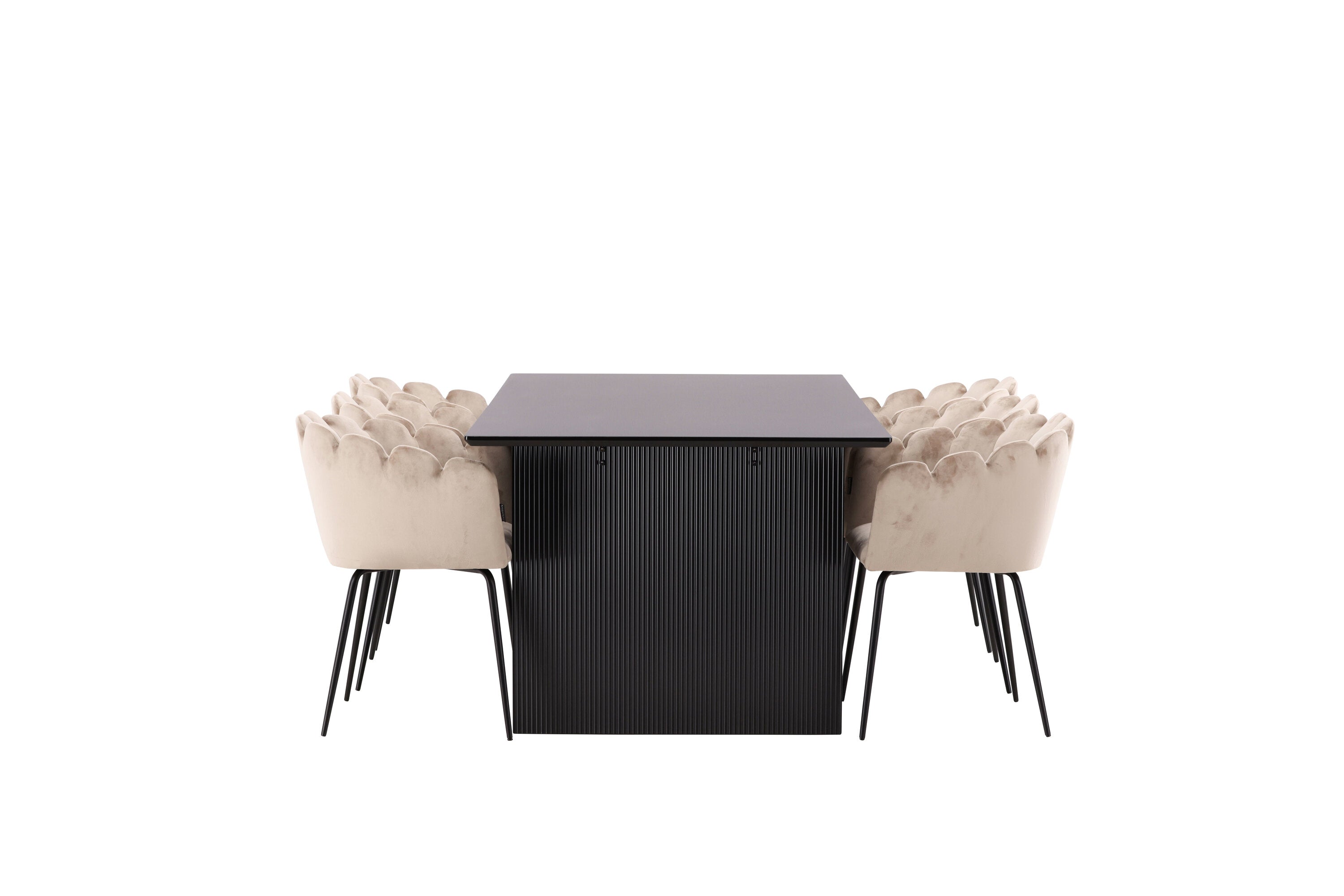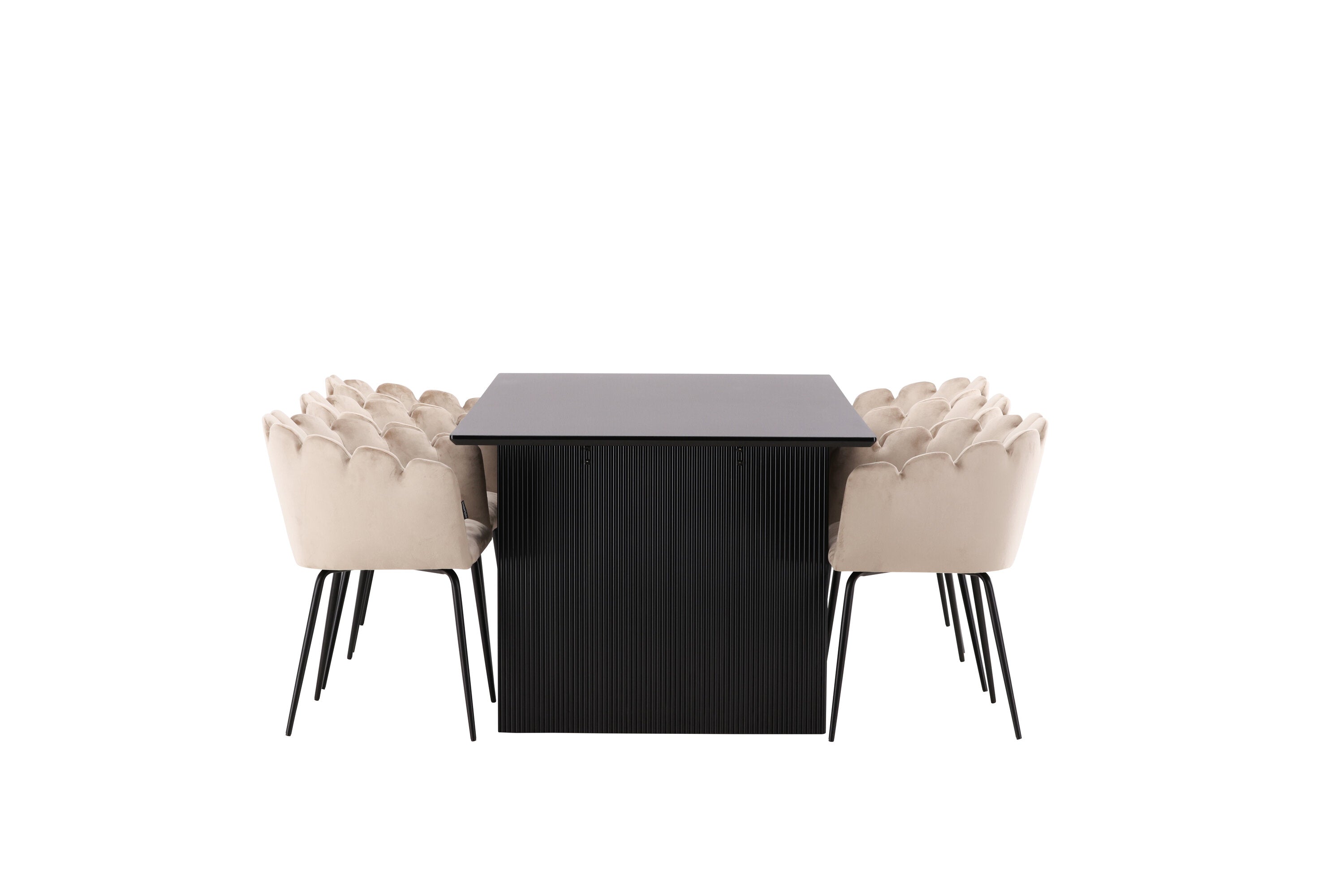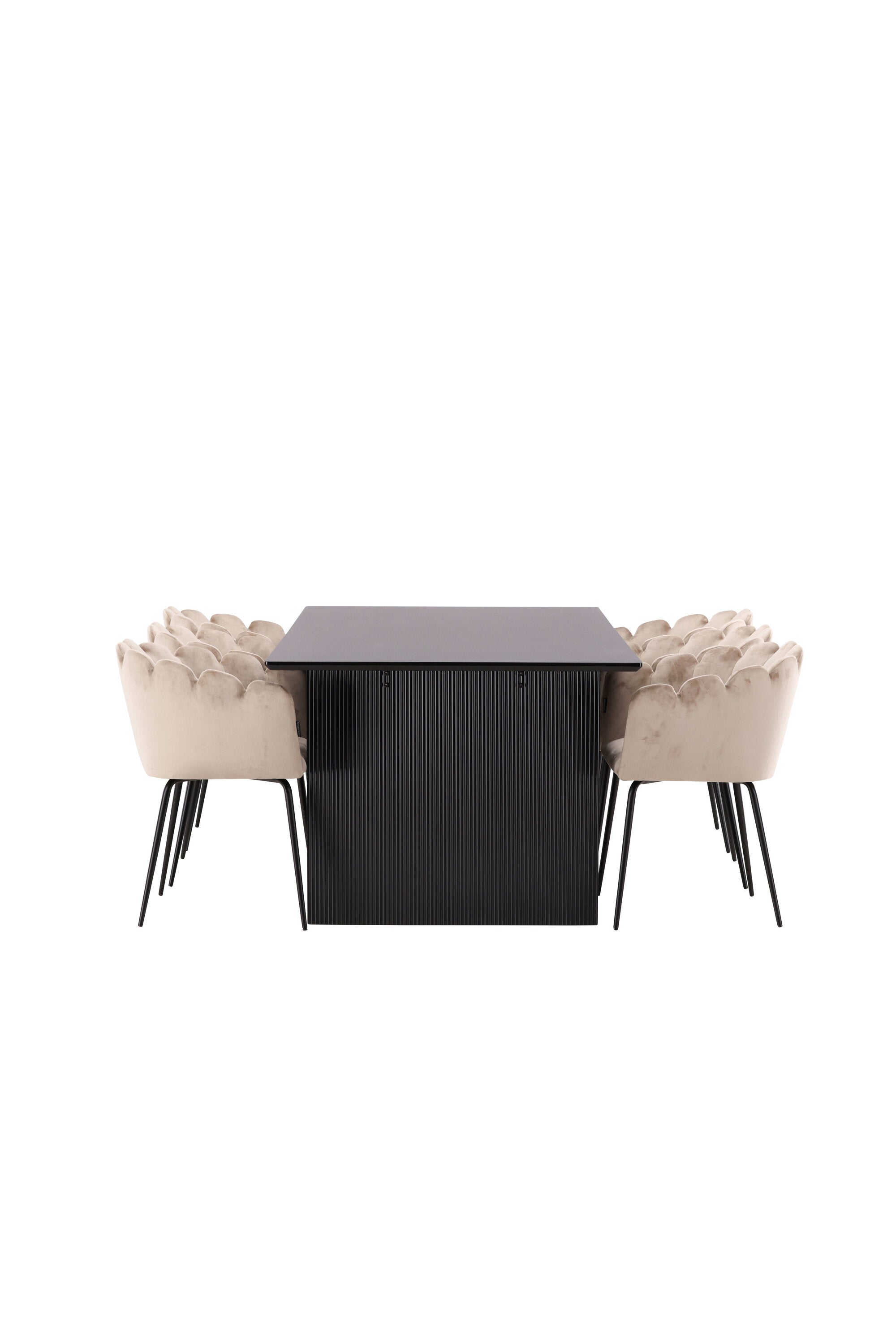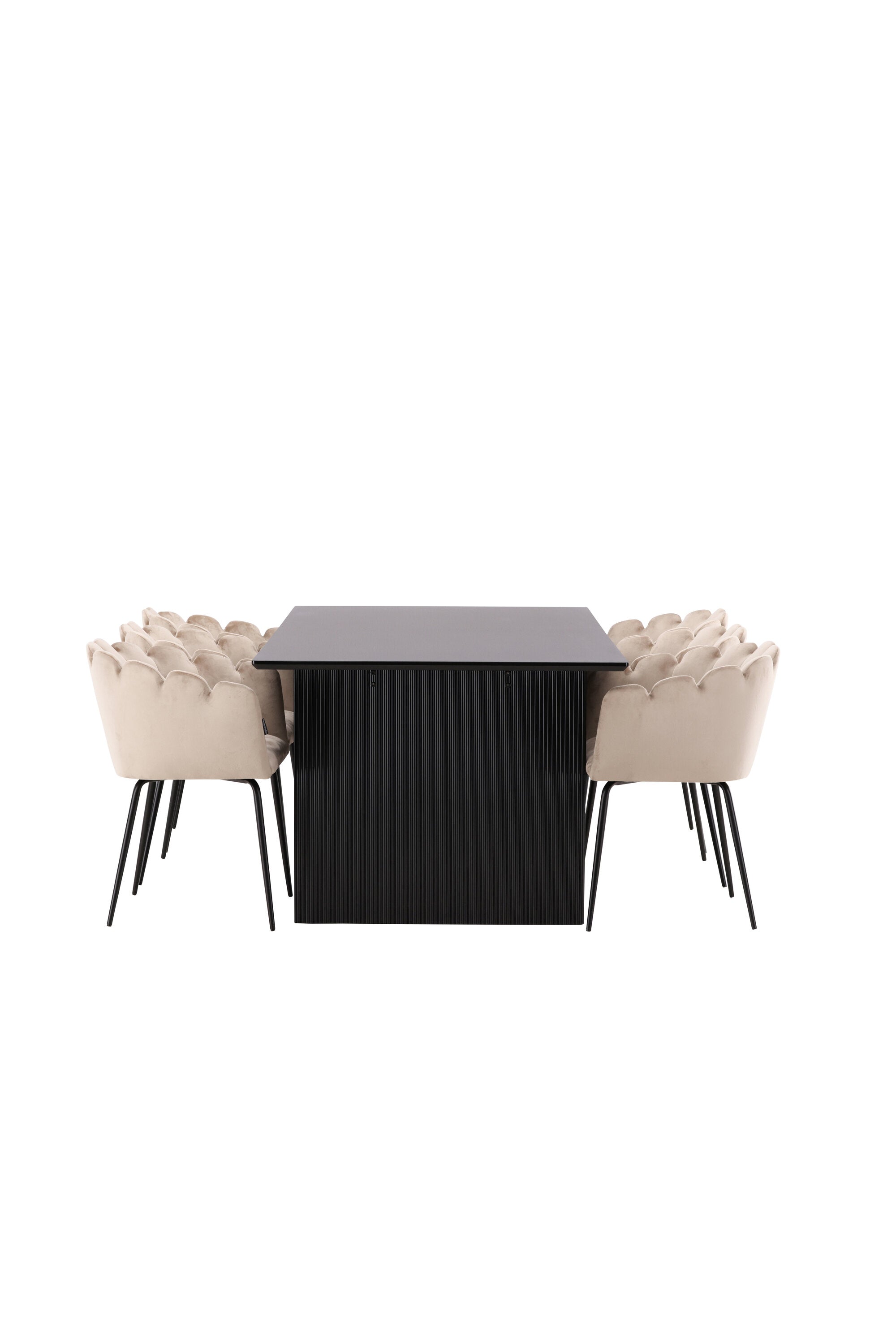 Vail Jídelní stůl - Černá / Zakouřená černá MDF + Židle Limhamn - Černá / Béžová Velvet _6