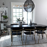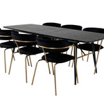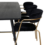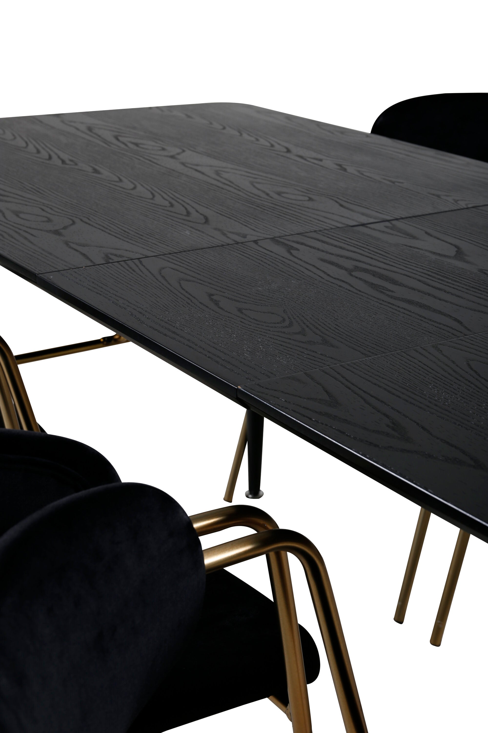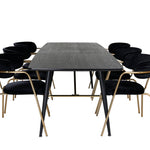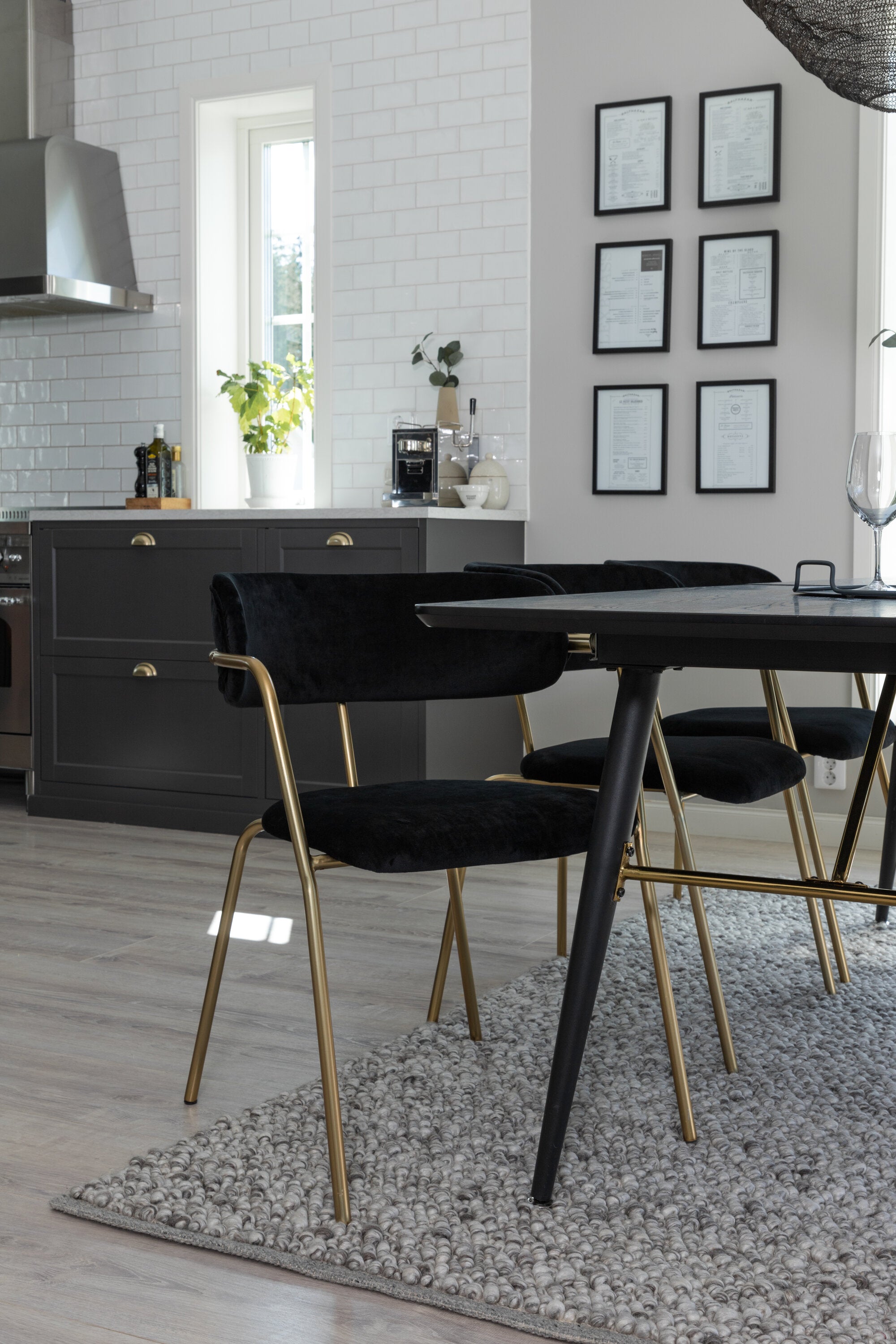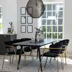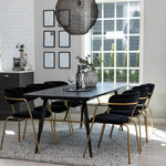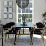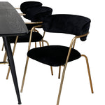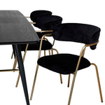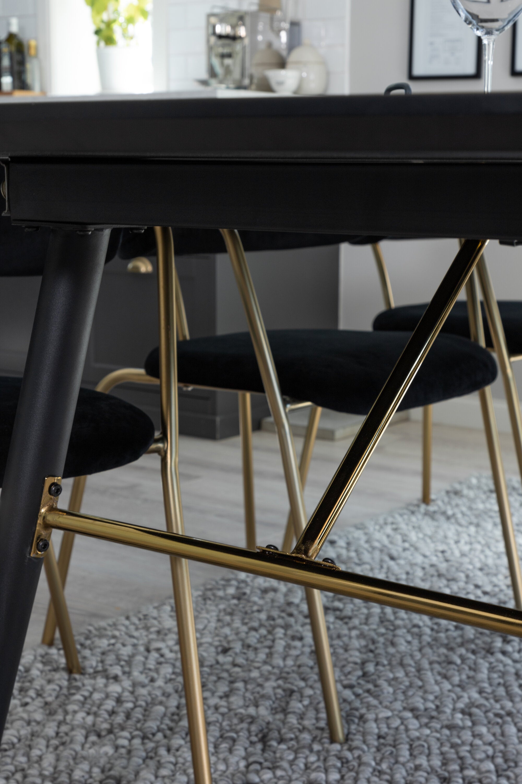Zlatý prodlužovací stůl - 180/220*85*H76 Černá dýha - Černé nohy - Mosazné detaily - Šípové křeslo - Mosazné nohy - Black Velvet 6