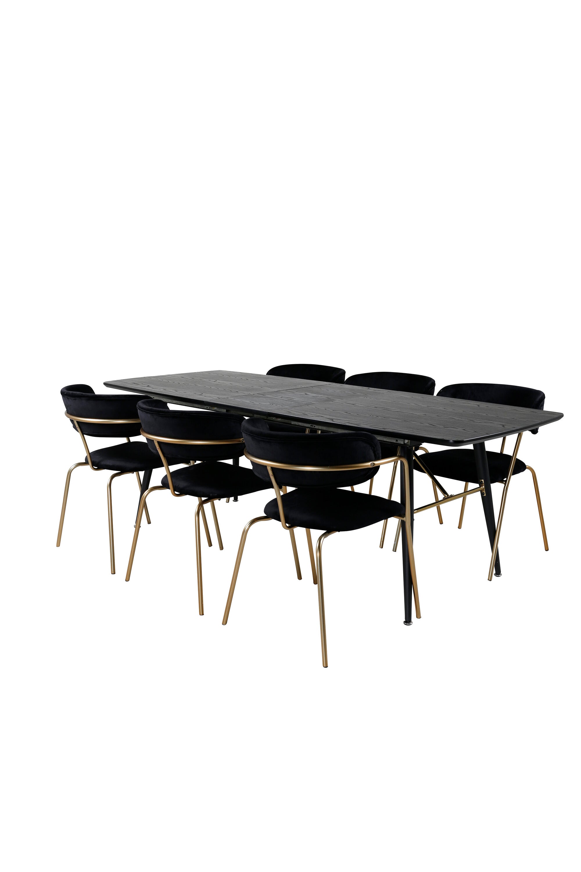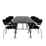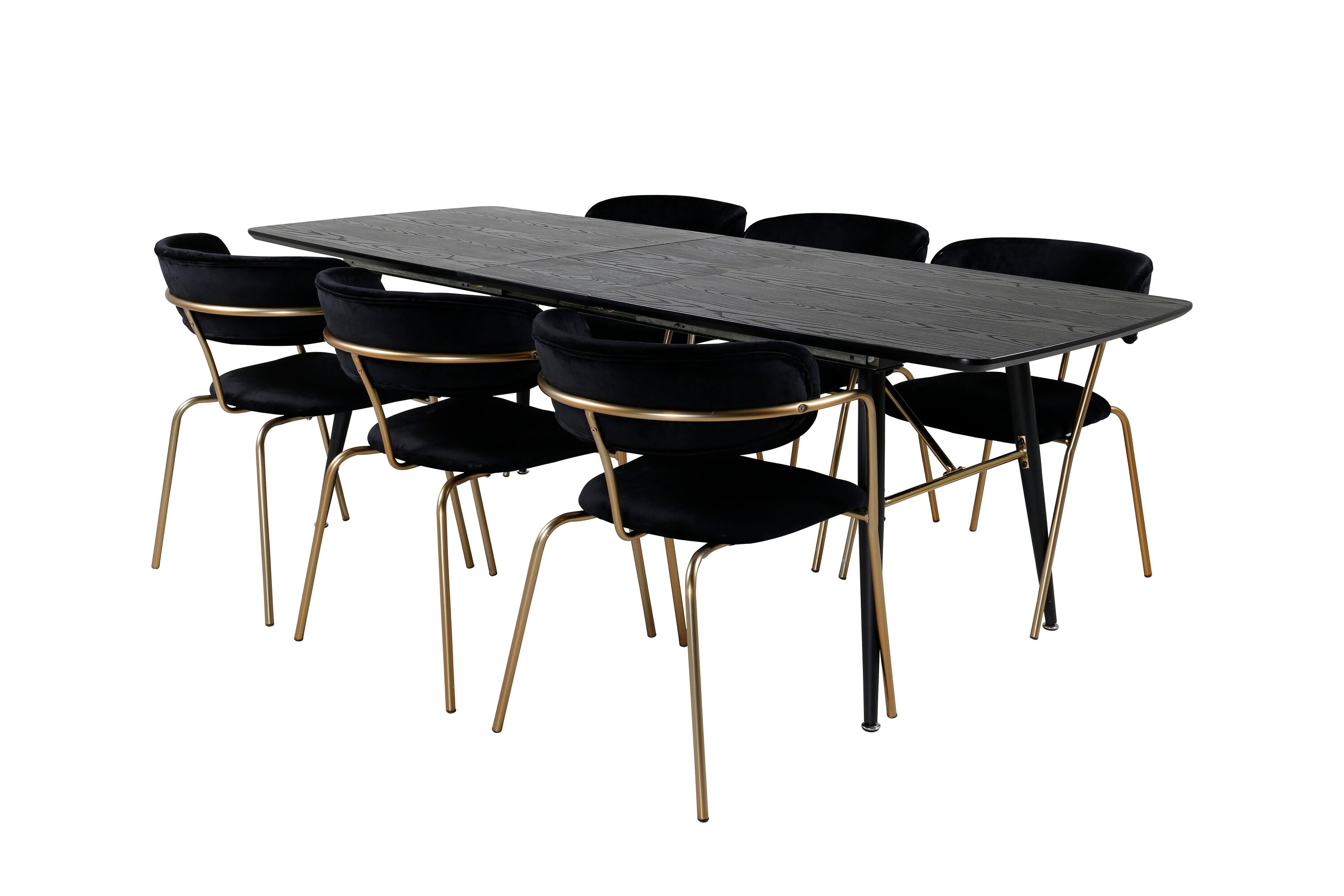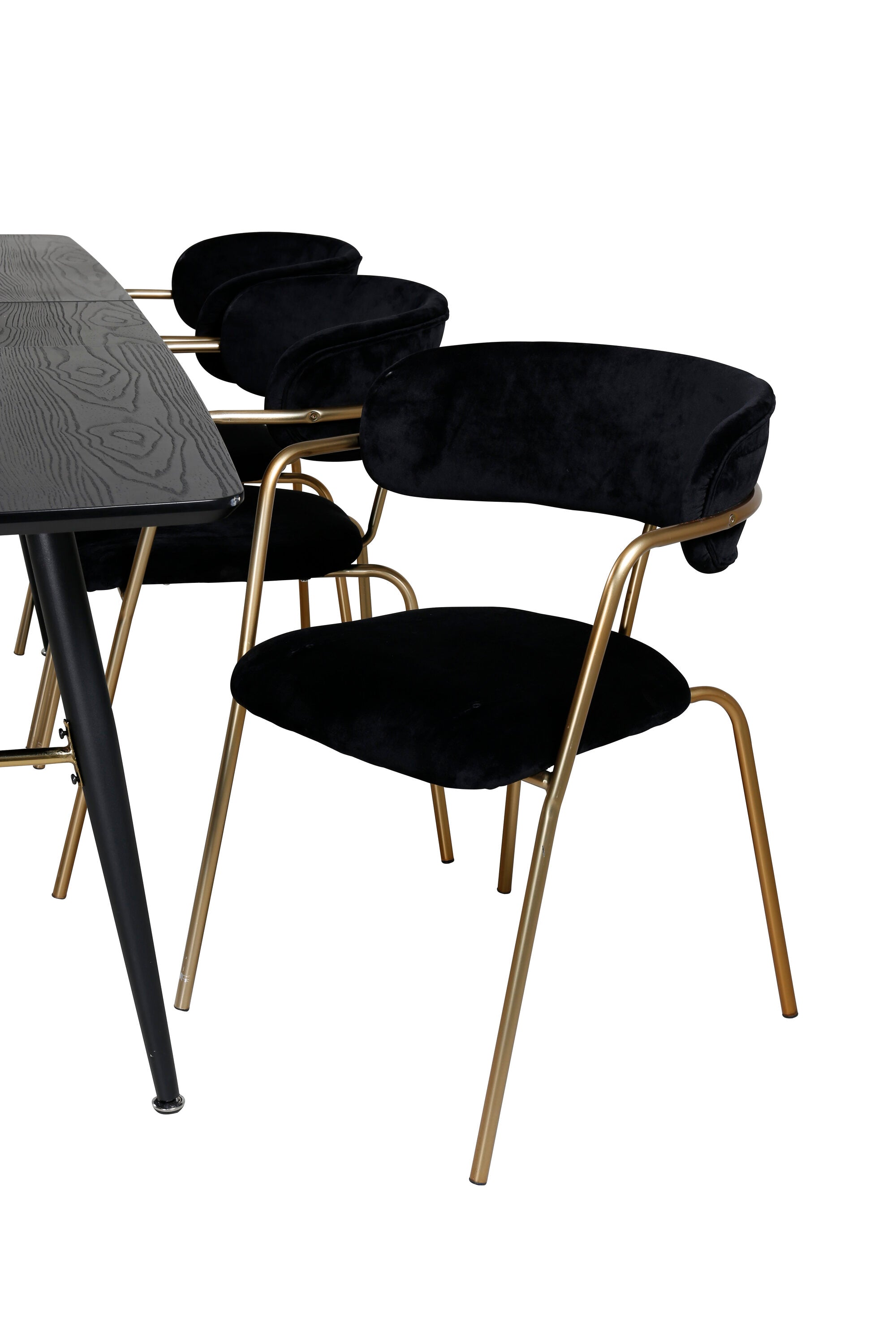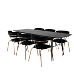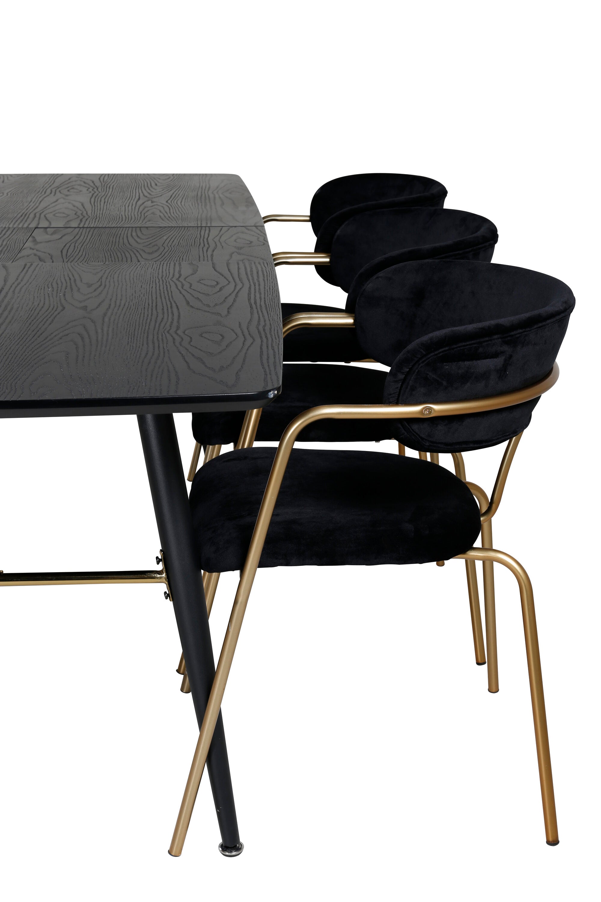 Zlatý prodlužovací stůl - 180/220*85*H76 Černá dýha - Černé nohy - Mosazné detaily - Šípové křeslo - Mosazné nohy - Black Velvet 6