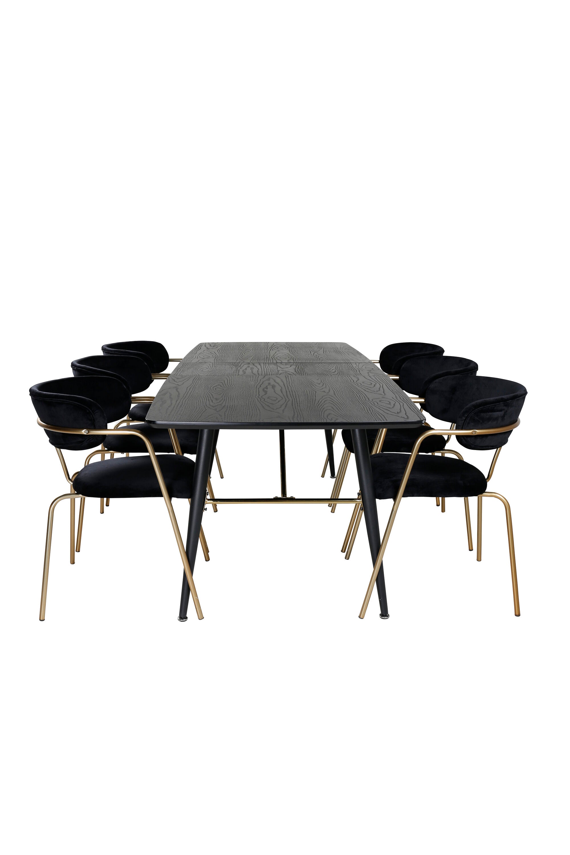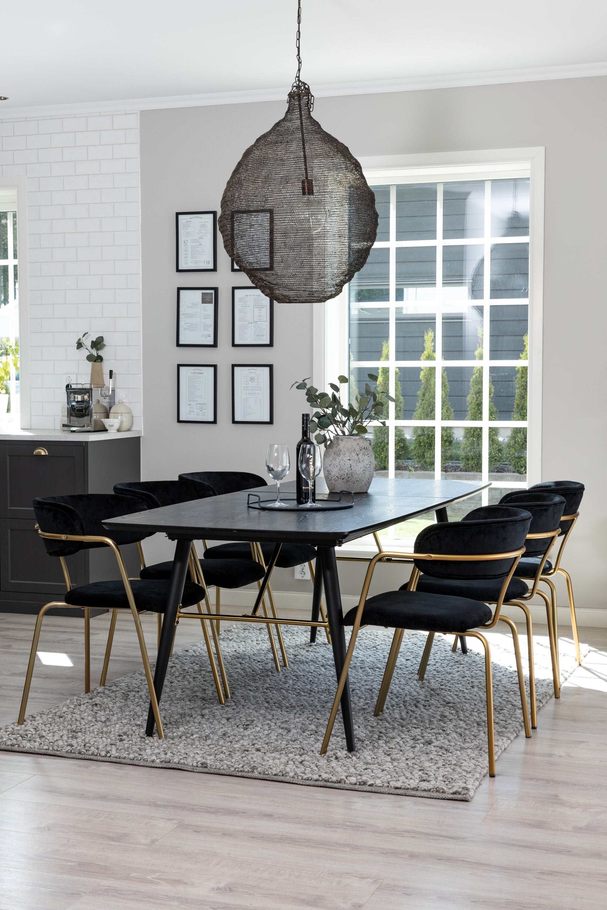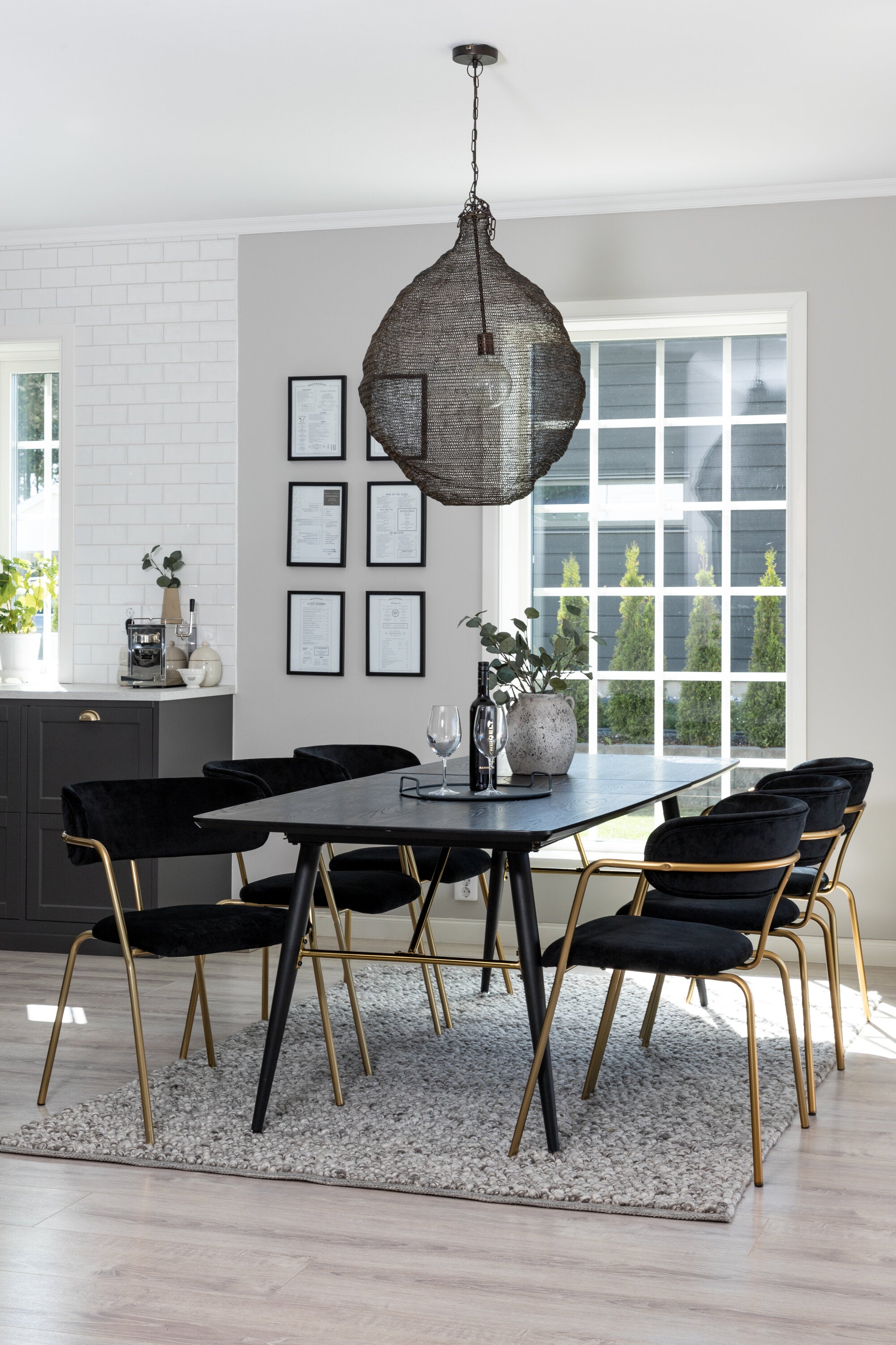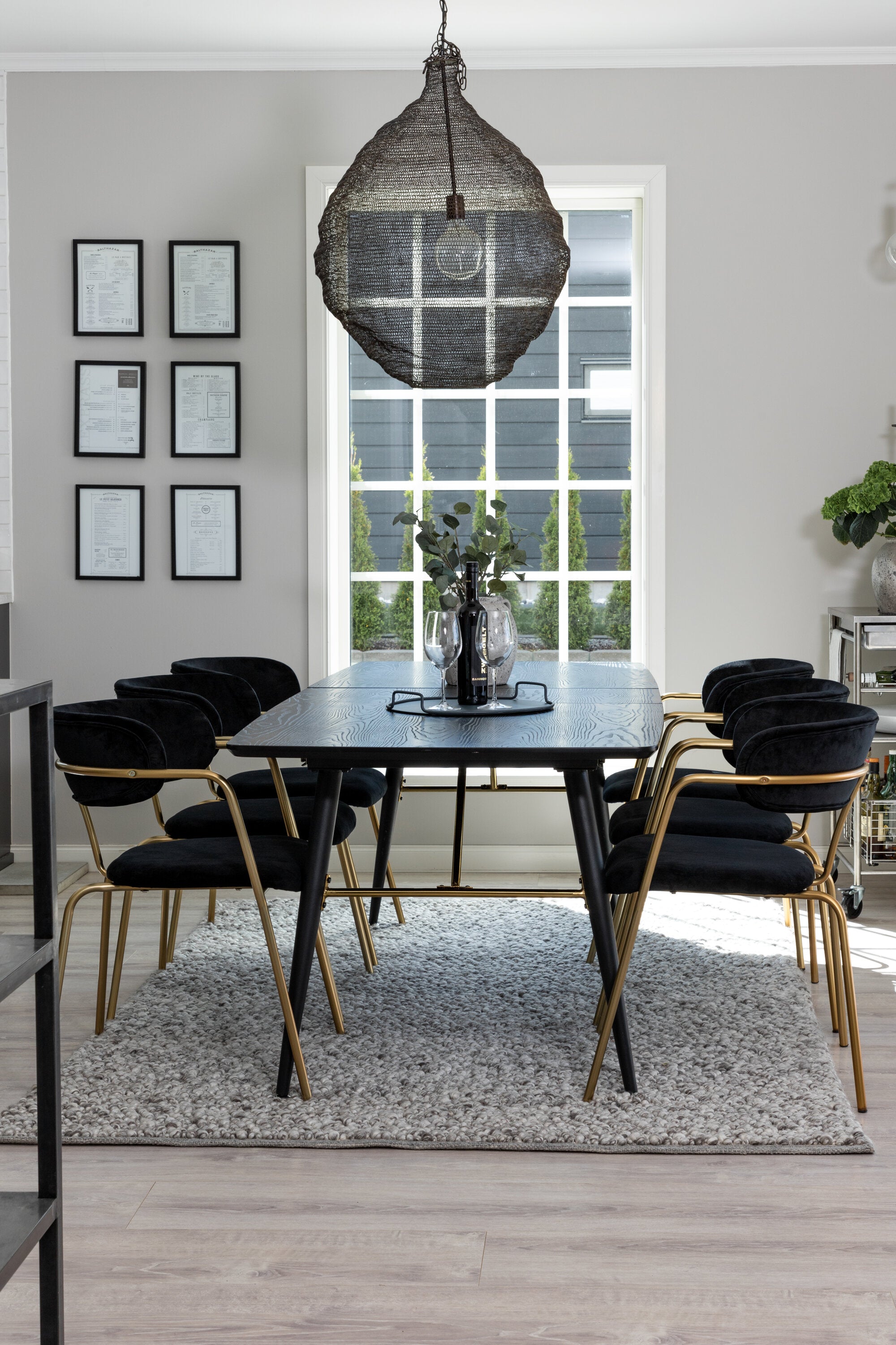 Jídelní stůl Gold, který je rozkládací, a jídelní židle Arrow se zde lahodně snoubí s luxusními detaily z mosazi. Nechte svůj domov charakterizovat vaší novou atraktivní skupinou potravin!