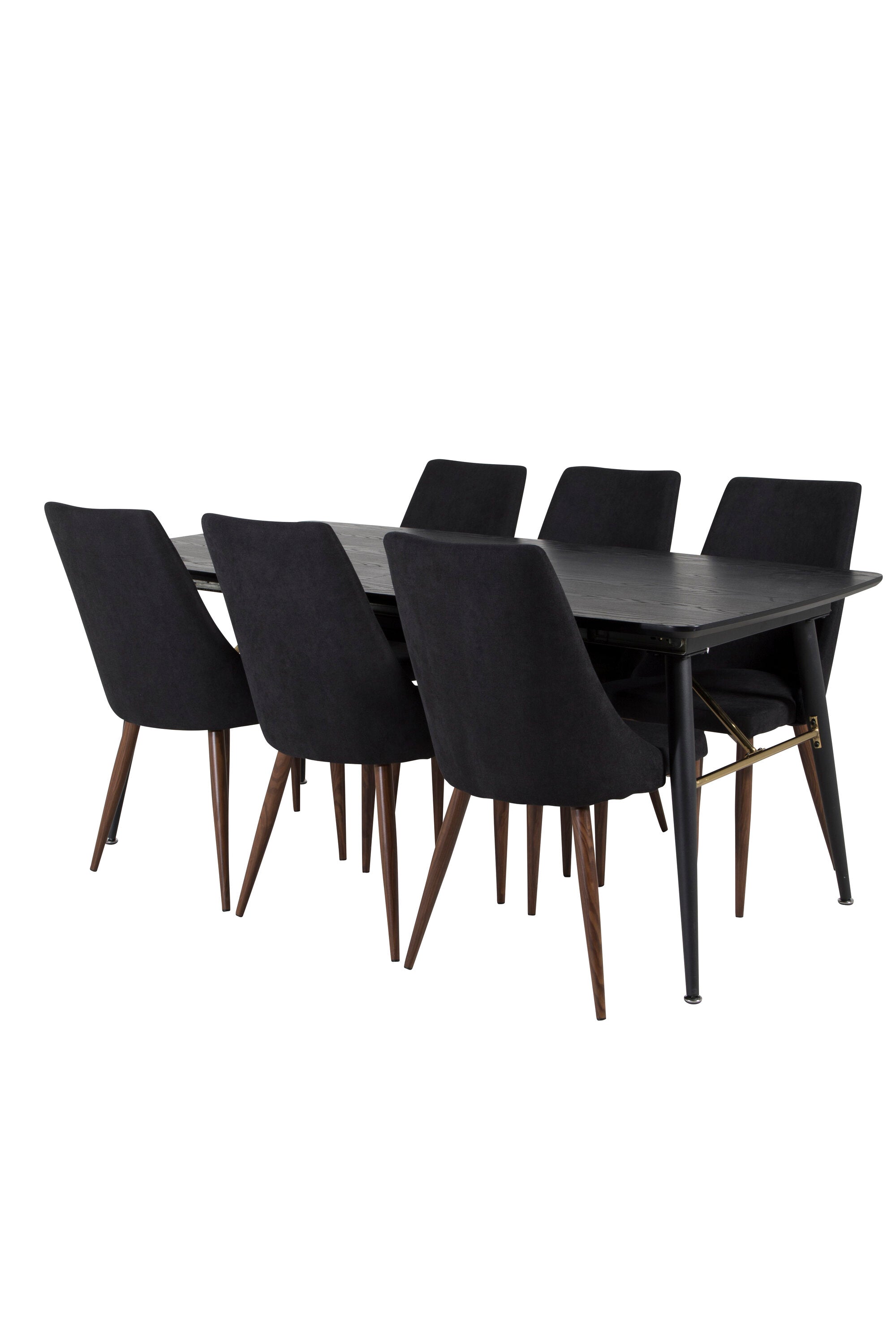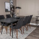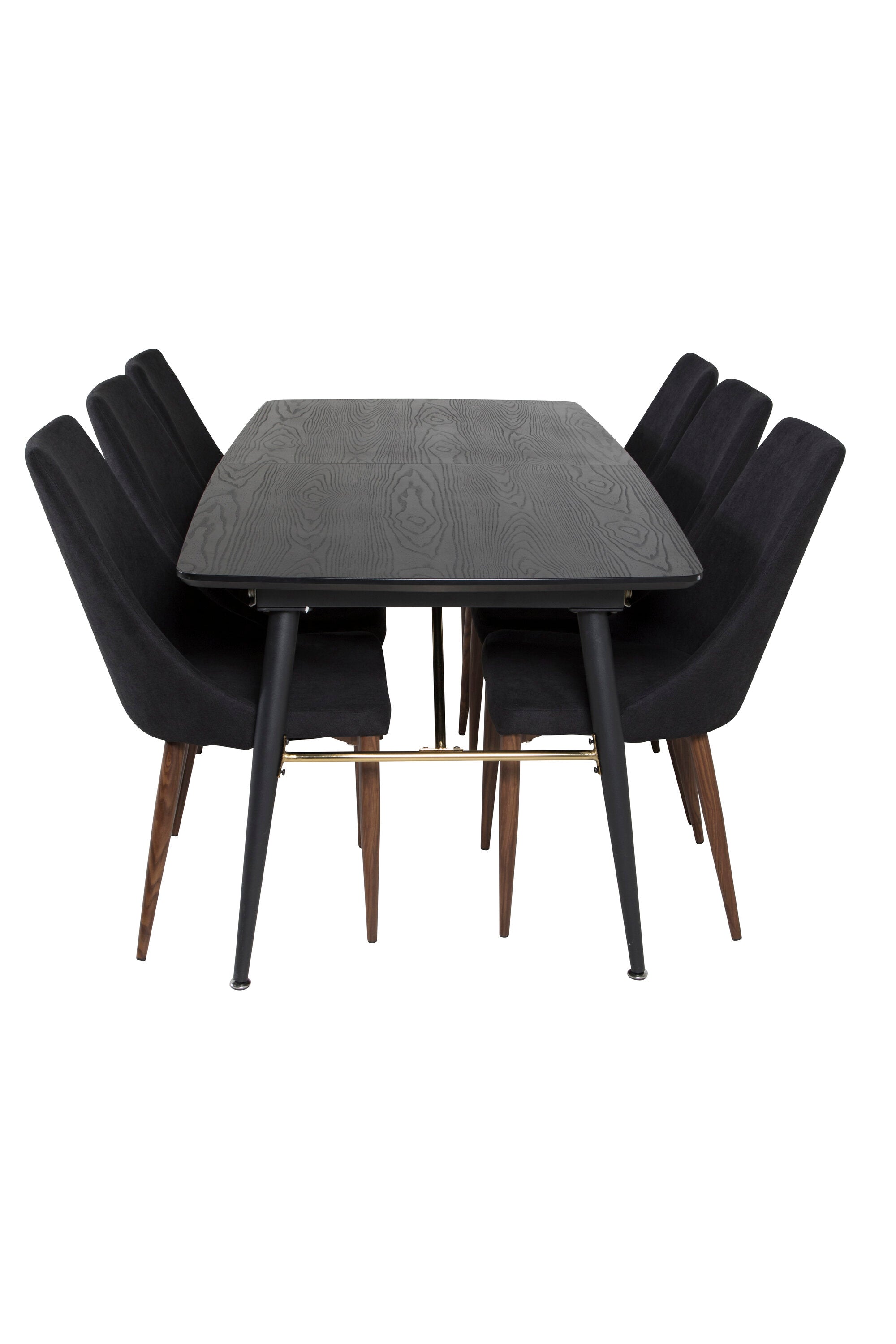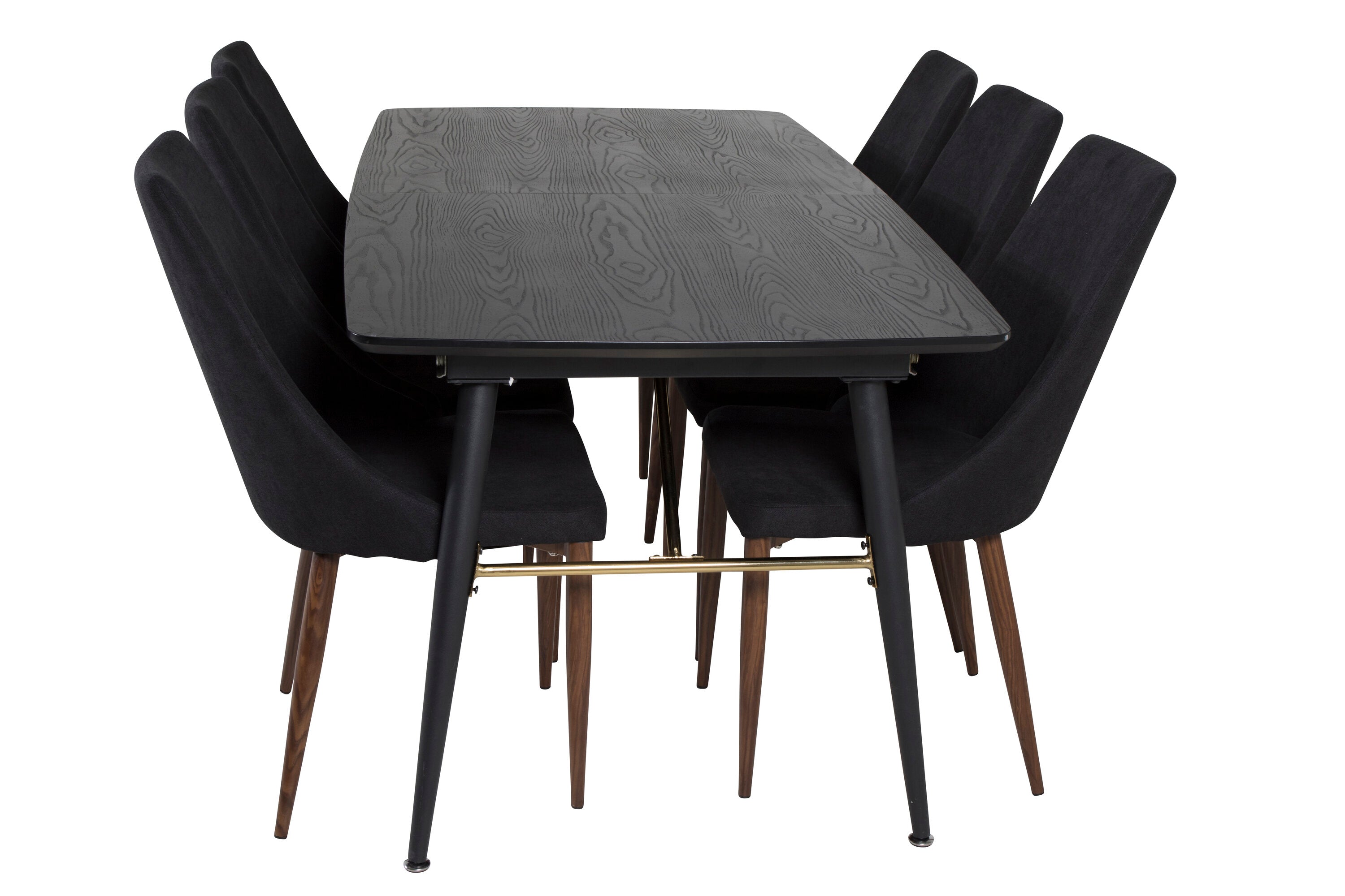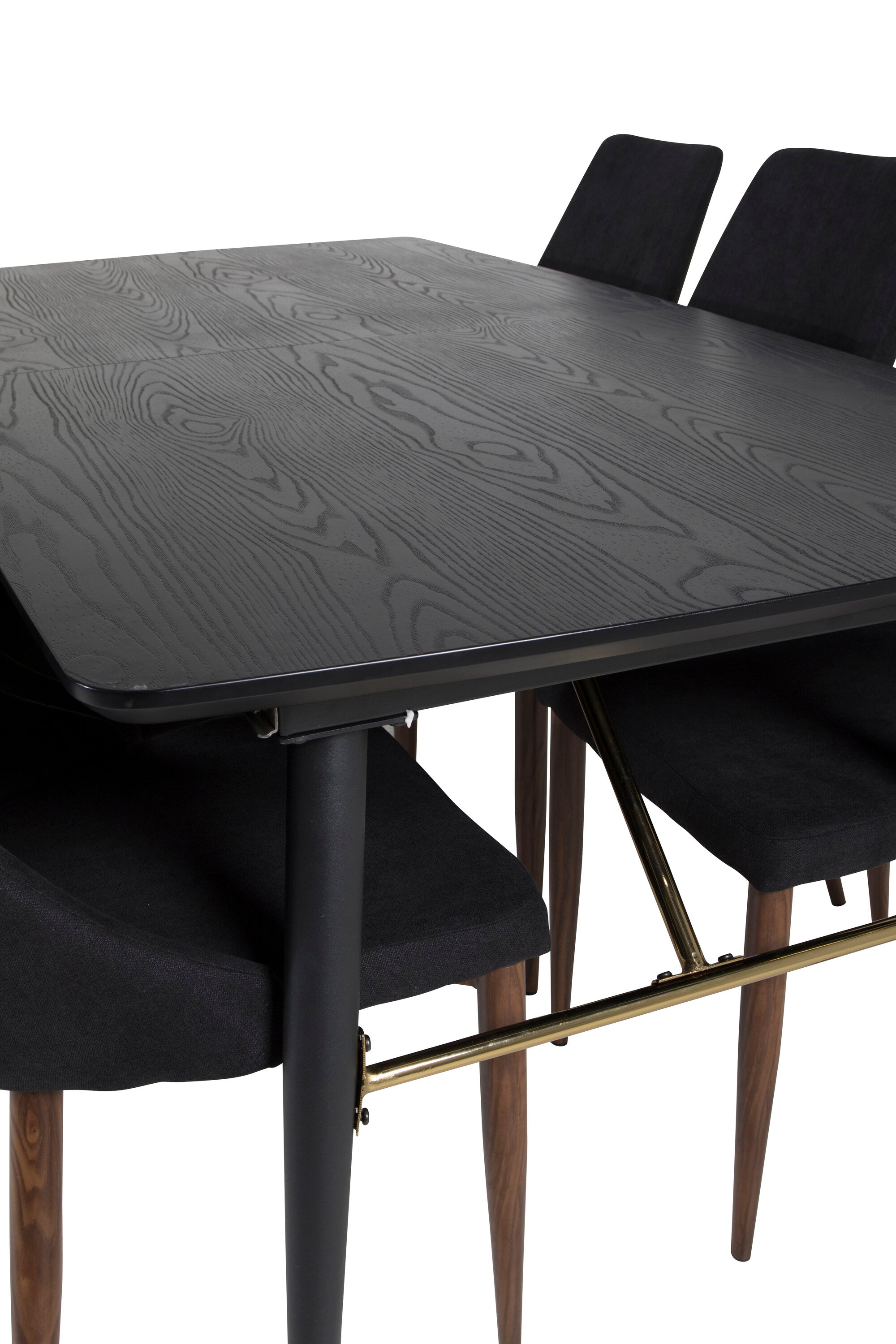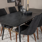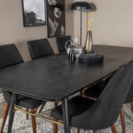 Zlatý rozkládací stůl - 180/220*85*H76 Černá dýha - Černé nohy - Mosazné detaily+Jídelní židle Leone - Ořechové nohy - Černá Fabric_6