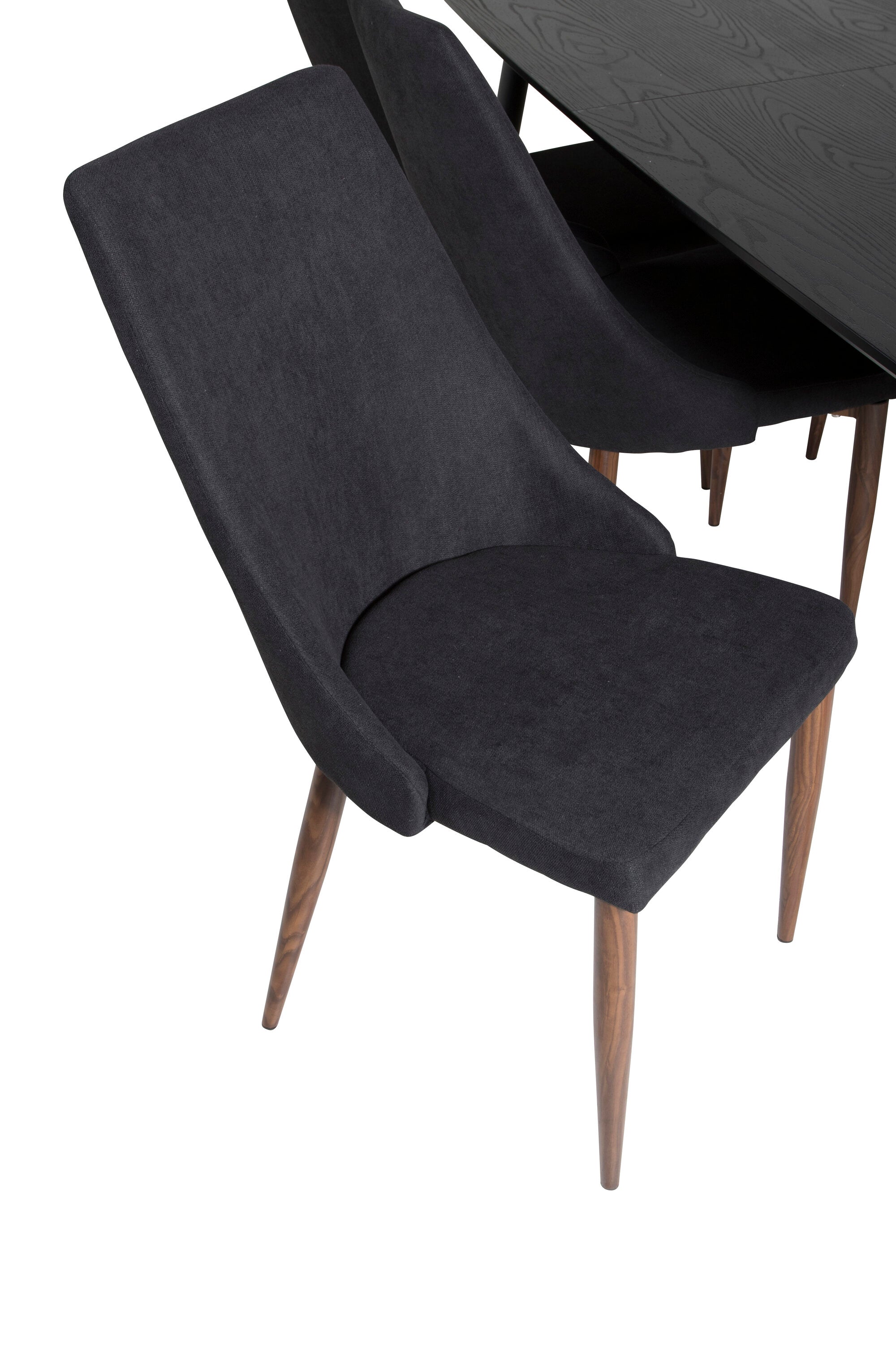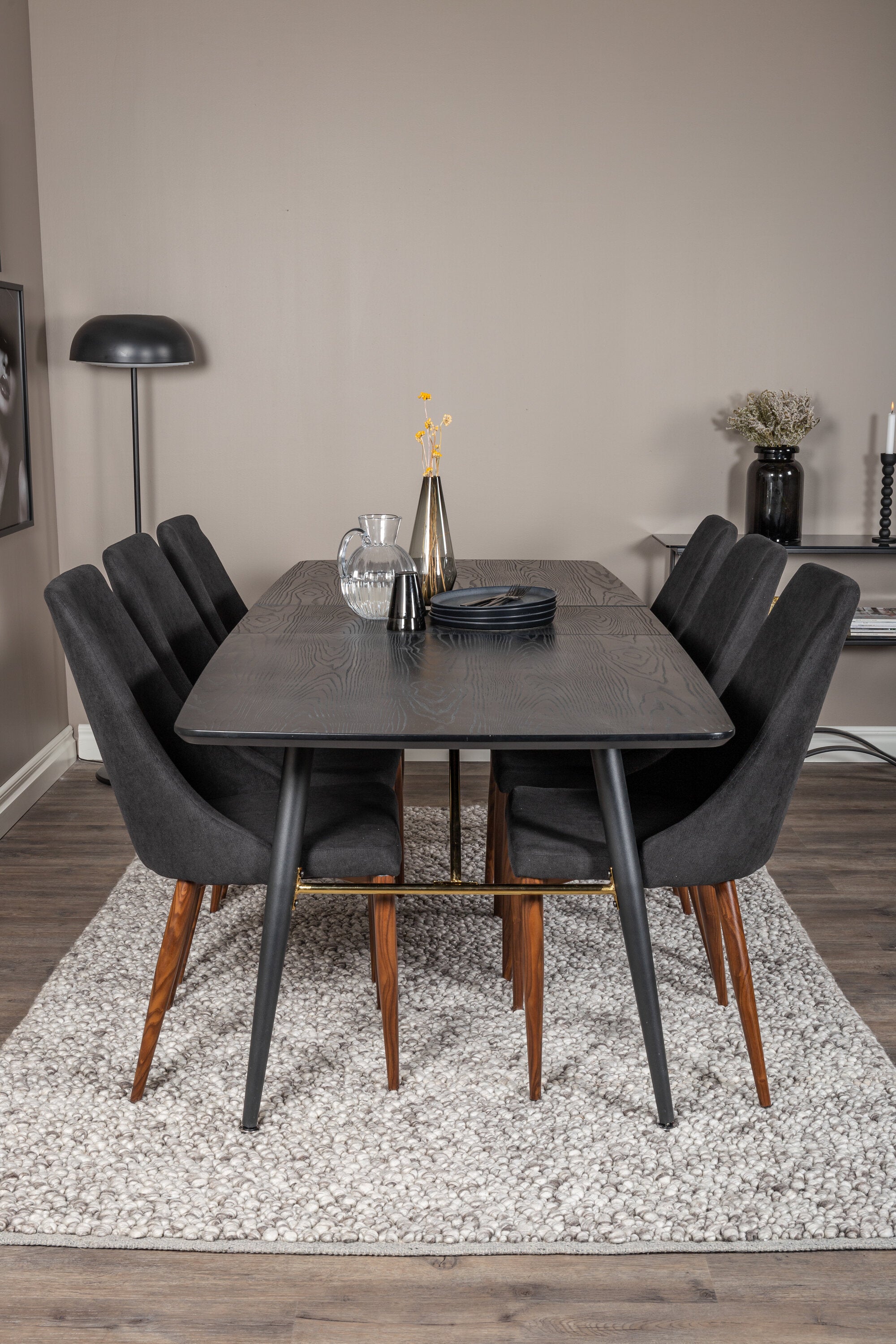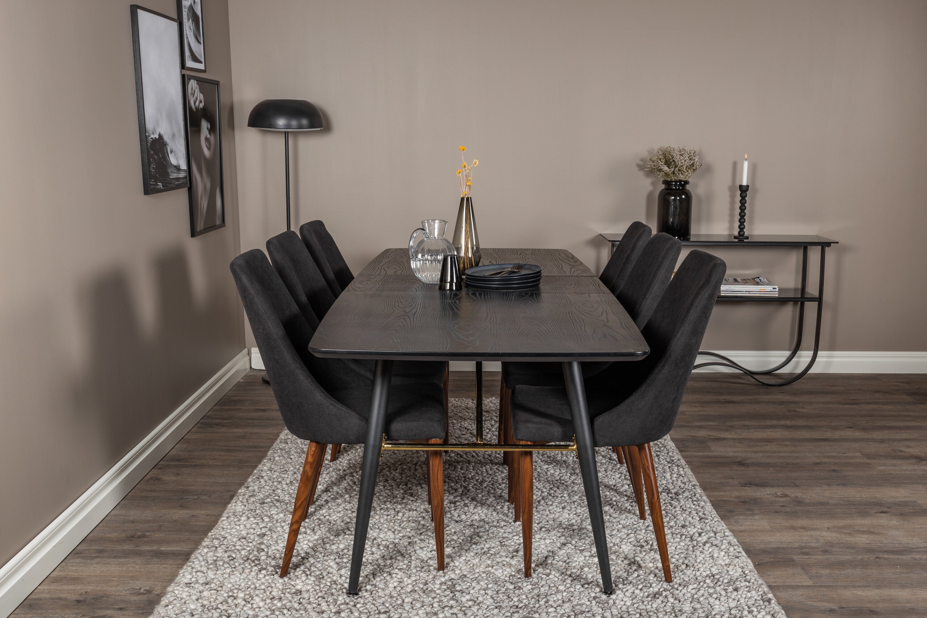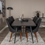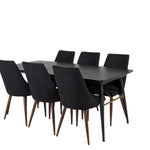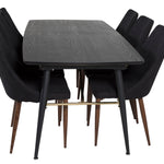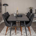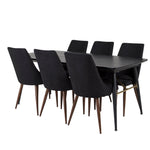 Zlatý rozkládací stůl - 180/220*85*H76 Černá dýha - Černé nohy - Mosazné detaily+Jídelní židle Leone - Ořechové nohy - Černá Fabric_6
