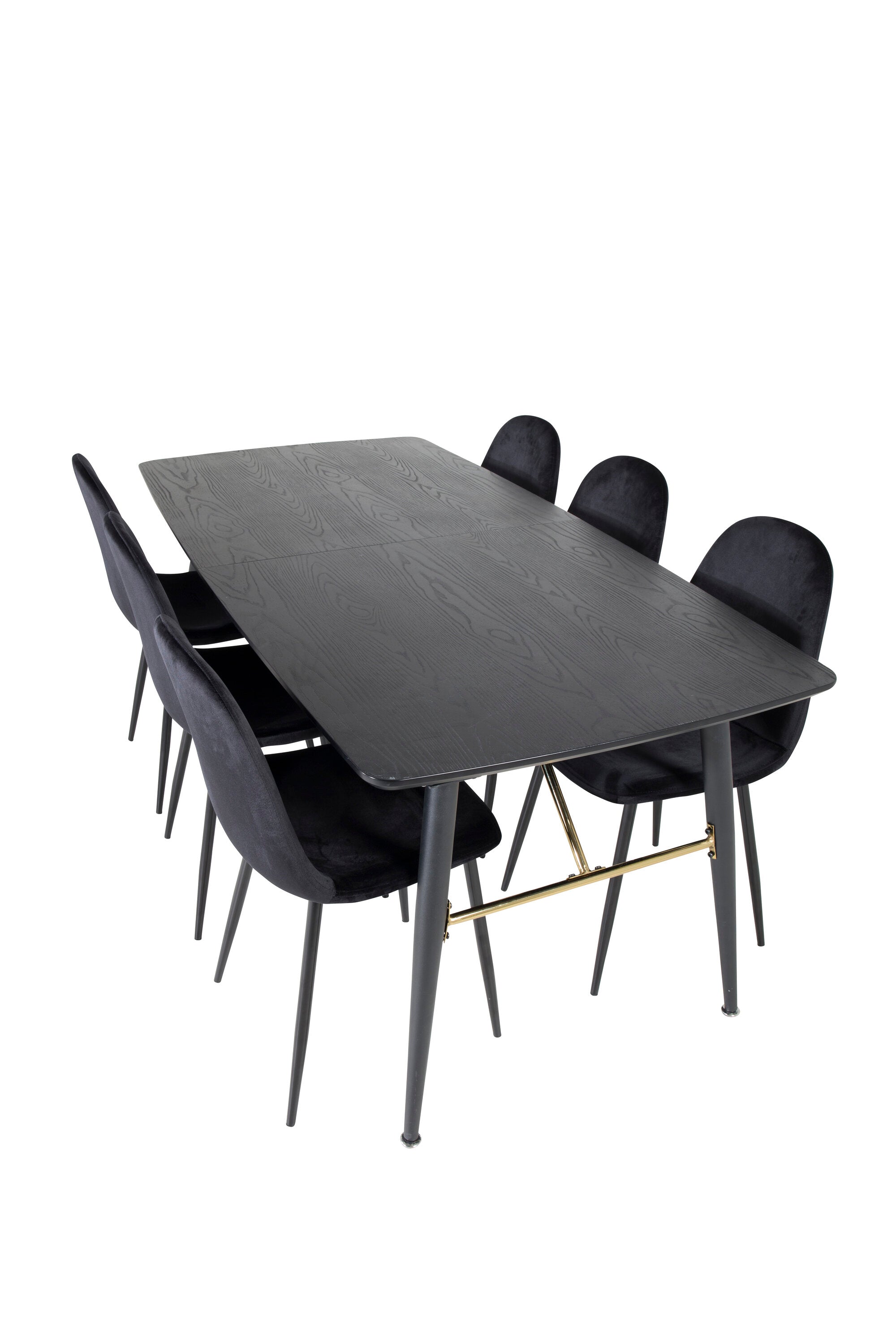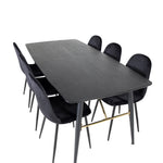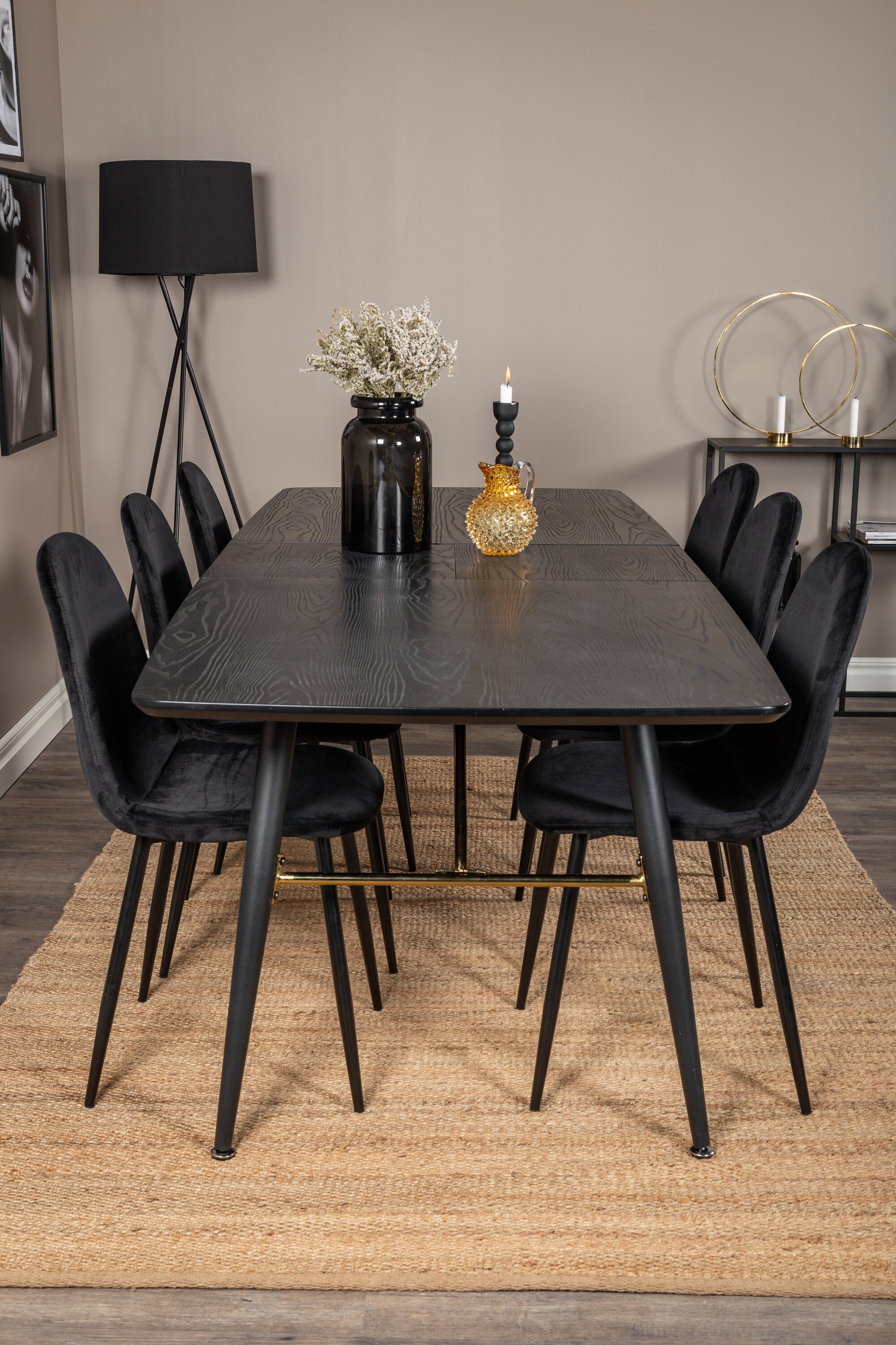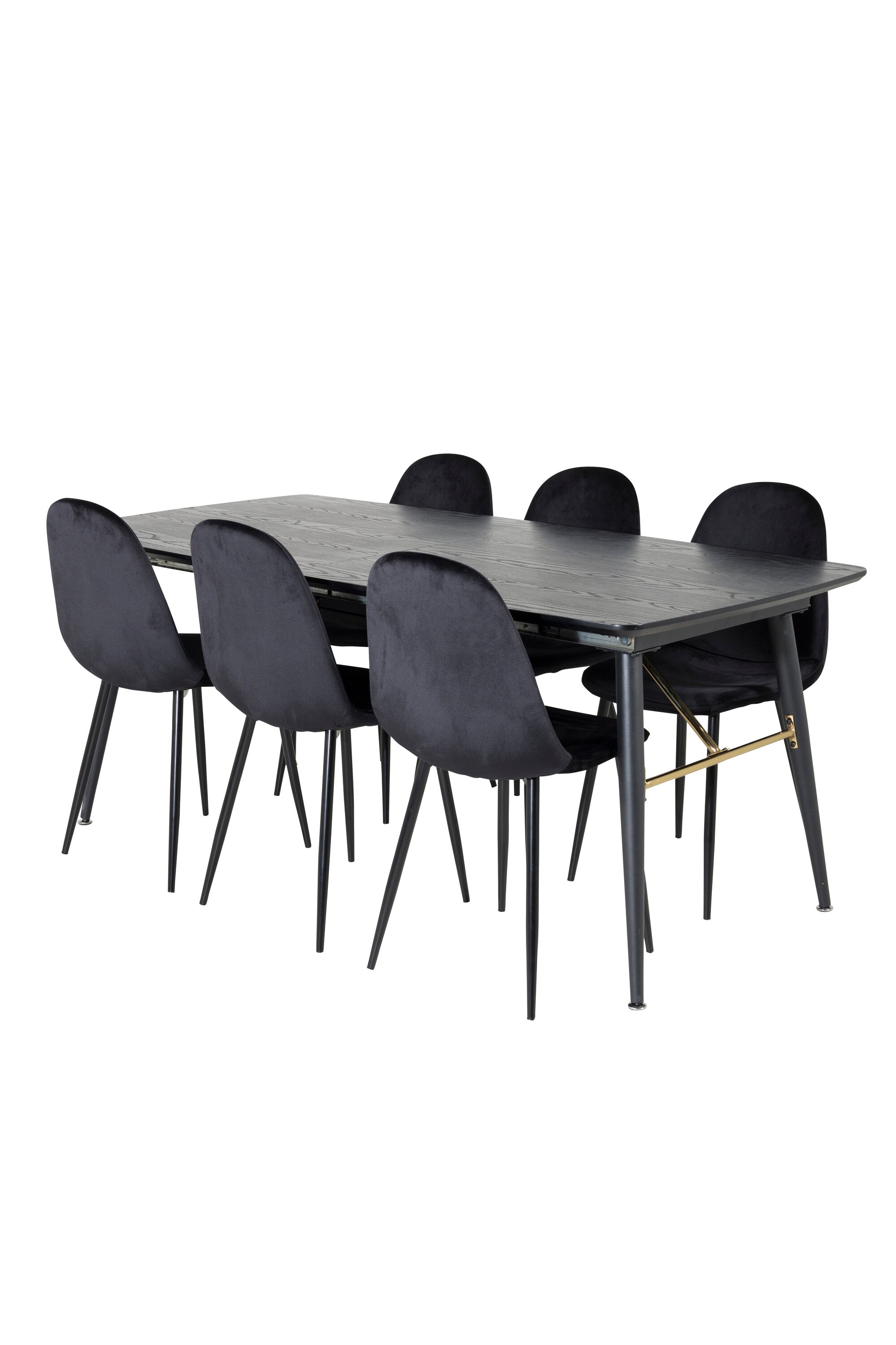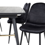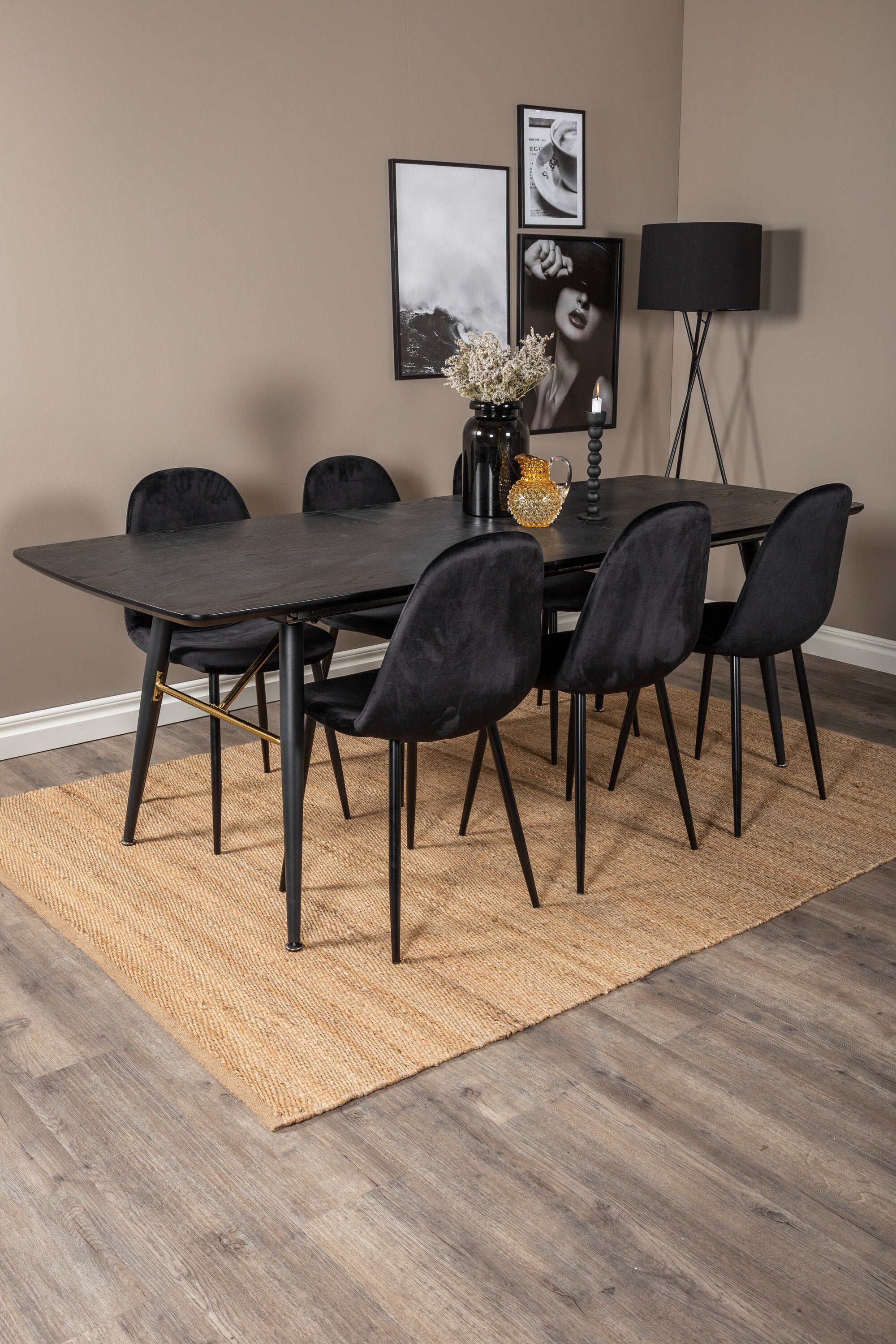 Zlatý rozkládací stůl - 180/220*85*H76 Černá dýha - Černé nohy - Mosazné detaily+Jídelní židle Polar - Černé nohy / Black Velvet (ersätter 19902-888)_6