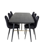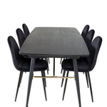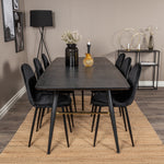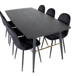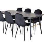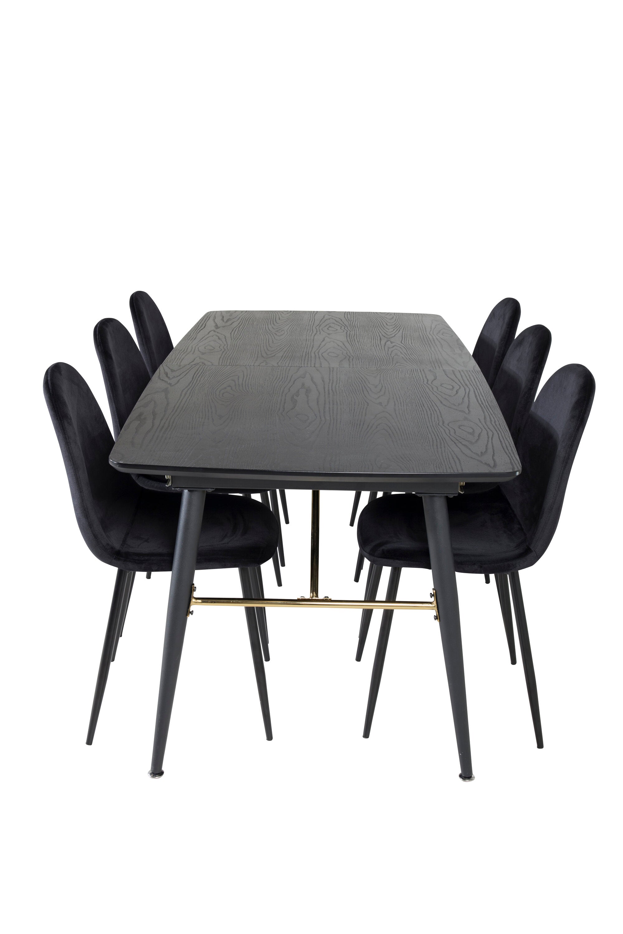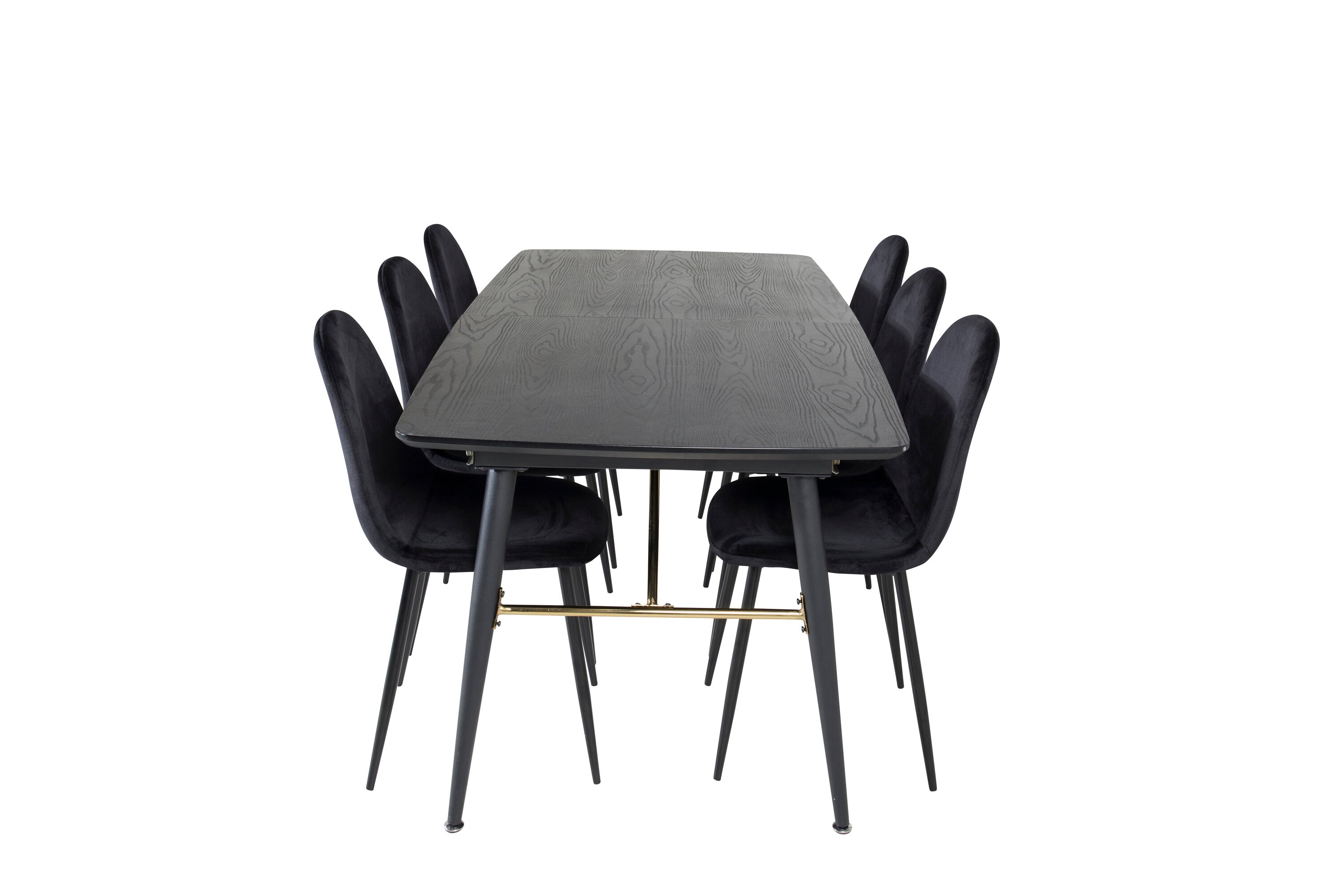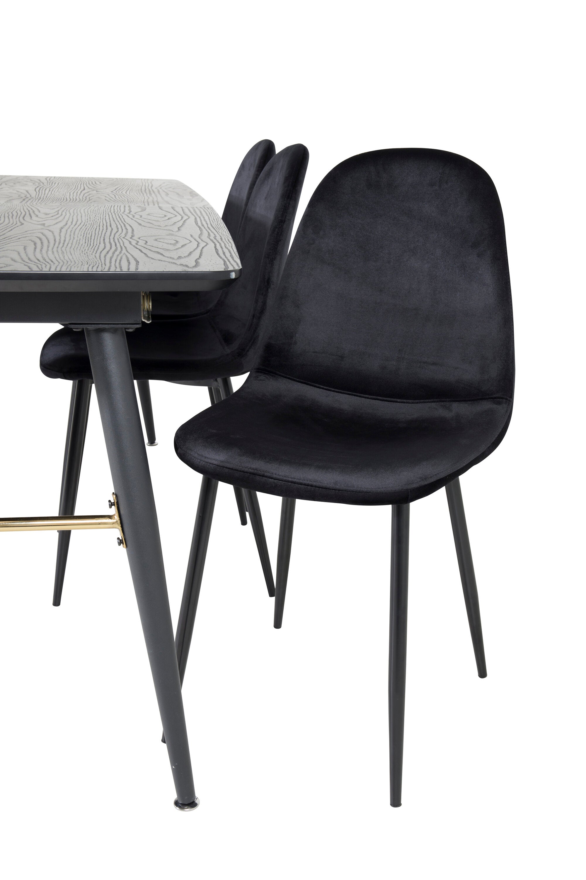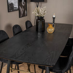 Zlatý rozkládací stůl - 180/220*85*H76 Černá dýha - Černé nohy - Mosazné detaily+Jídelní židle Polar - Černé nohy / Black Velvet (ersätter 19902-888)_6