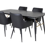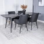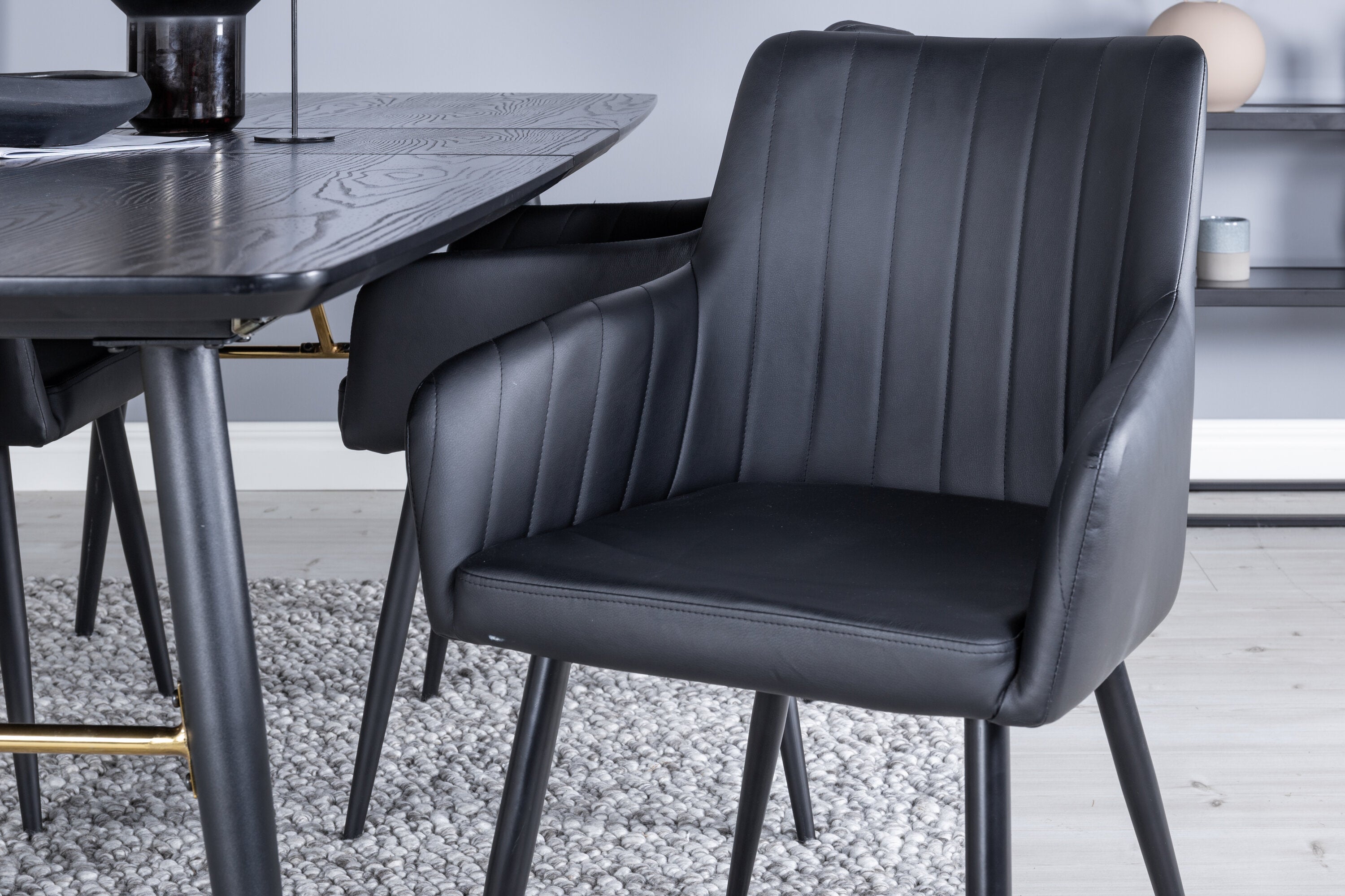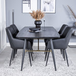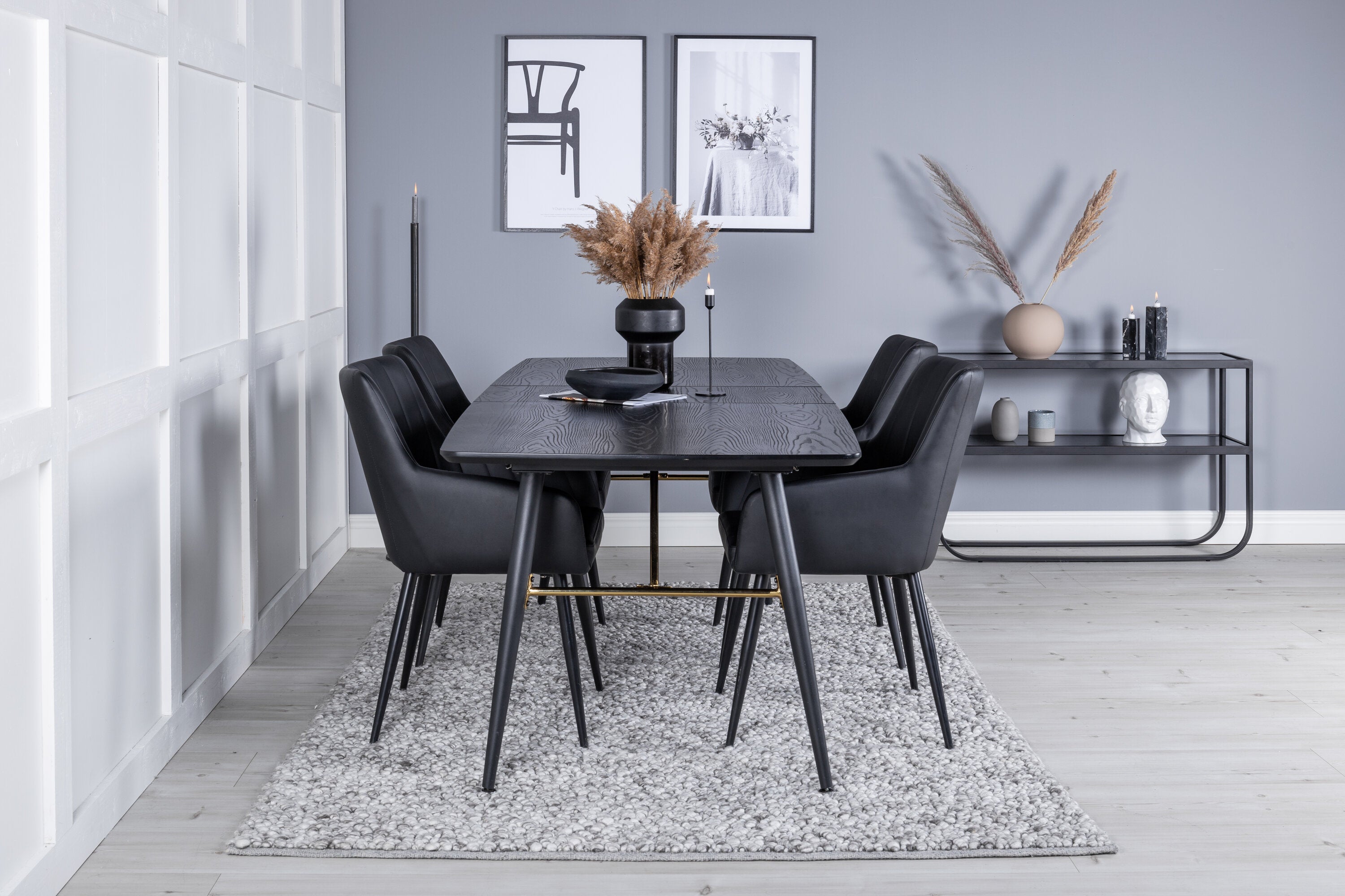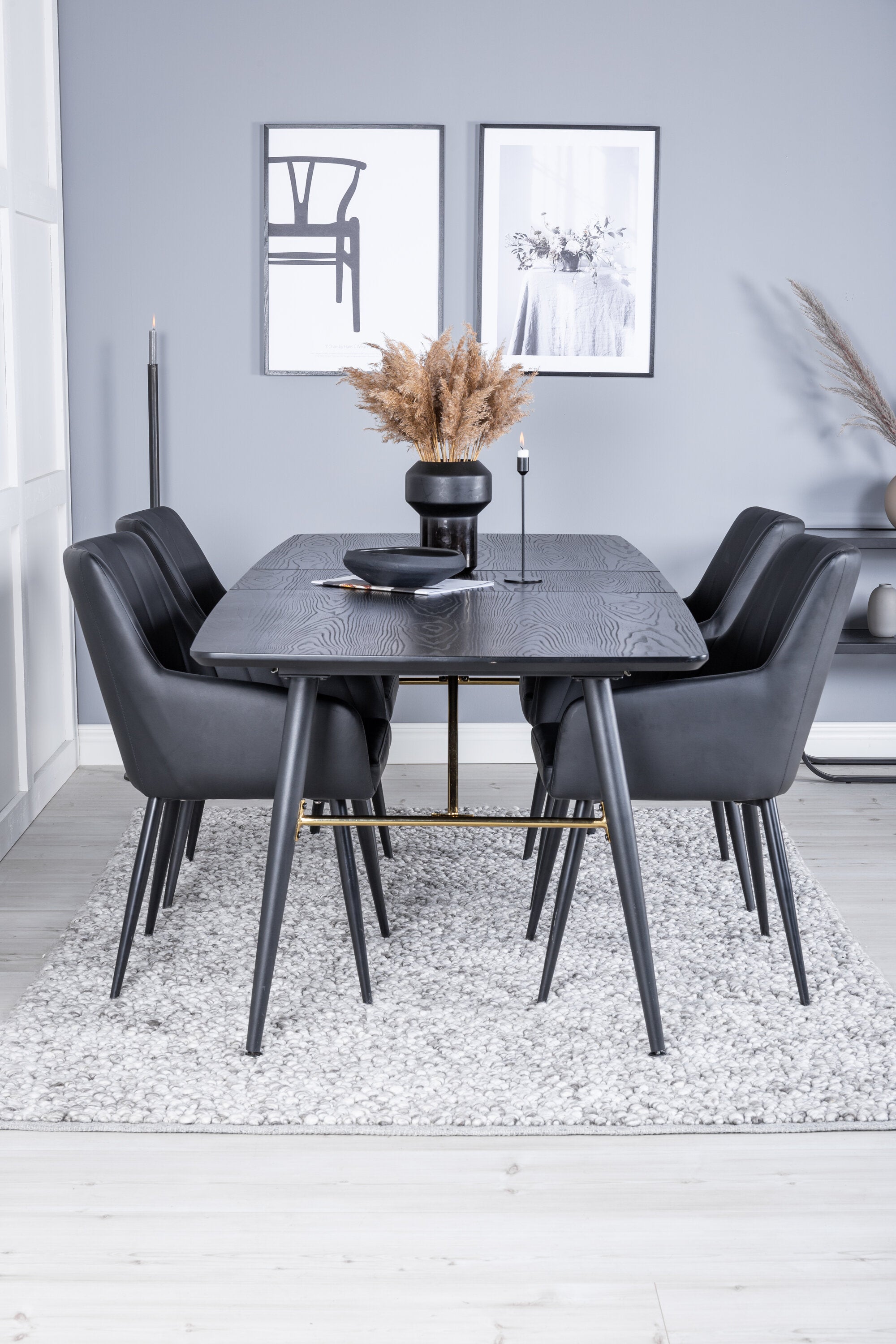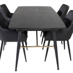 Zlatý rozkládací stůl - 180/220*85*H76 Černá dýha - Černé nohy - Mosazné detaily +Komfort - Jídelní židle 2-balení - černá/Černá _4