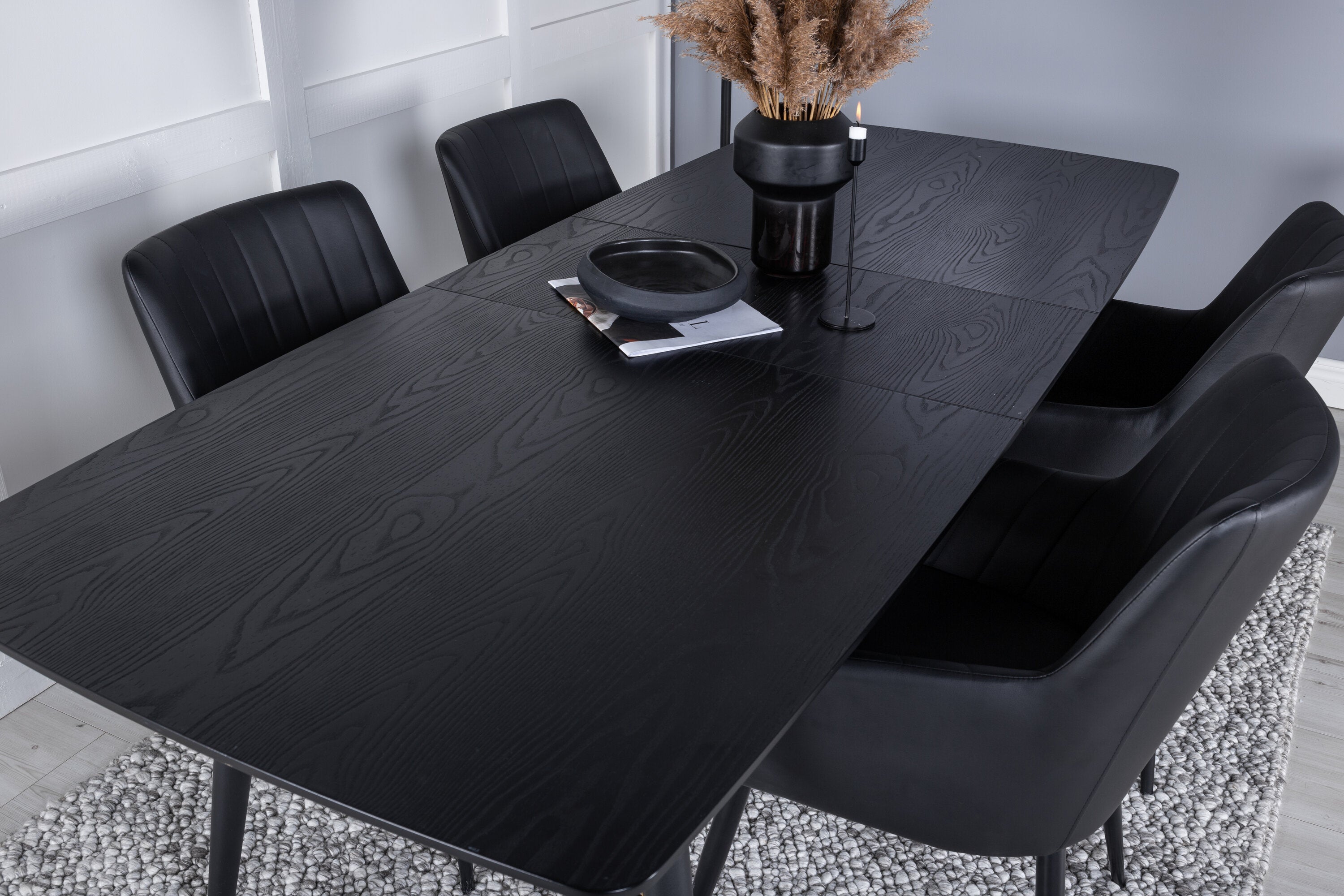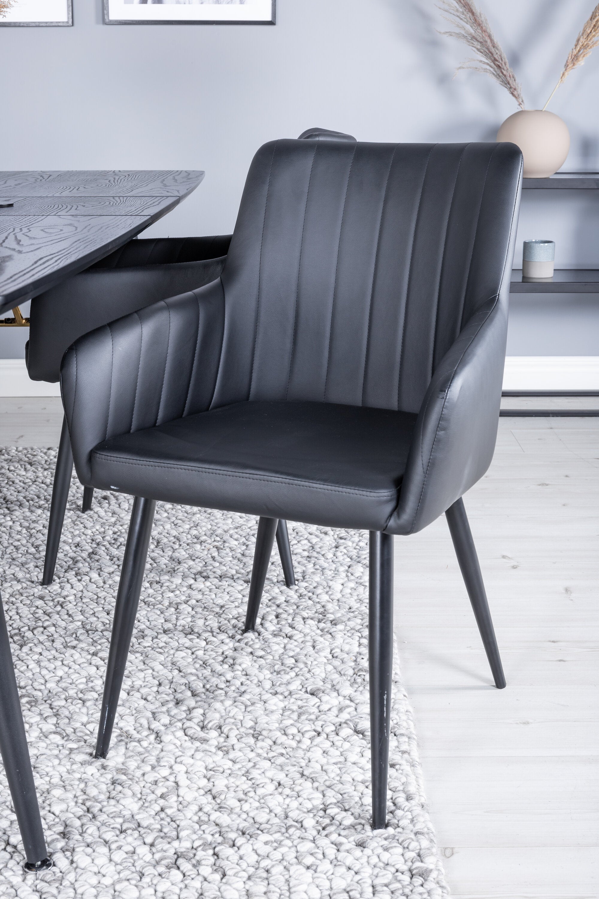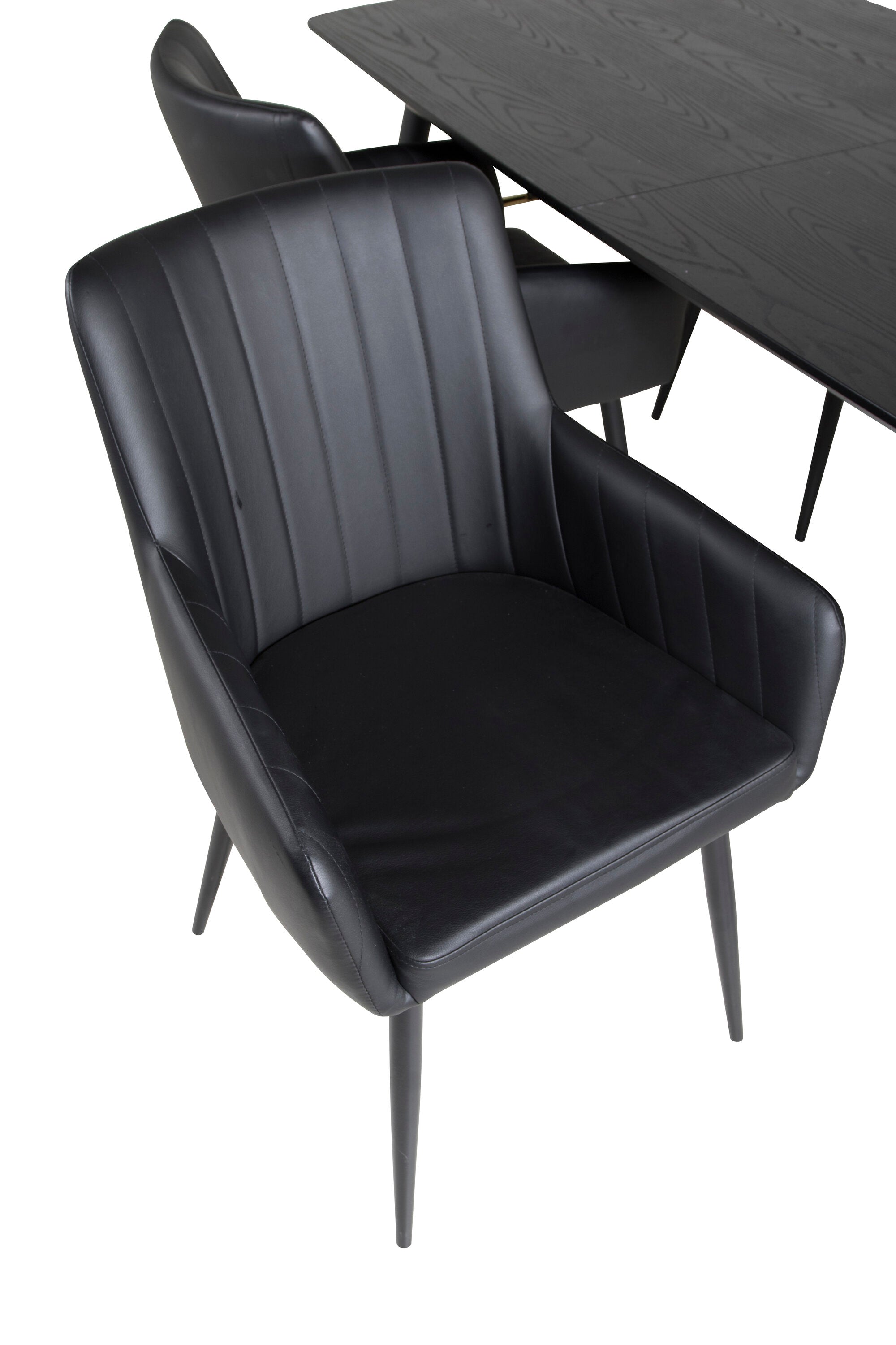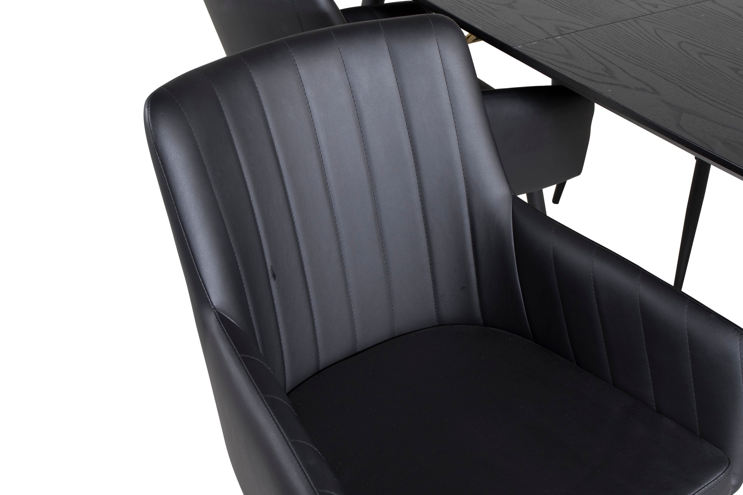 Zlatý rozkládací stůl - 180/220*85*H76 Černá dýha - Černé nohy - Mosazné detaily +Komfort - Jídelní židle 2-balení - černá/Černá _4