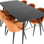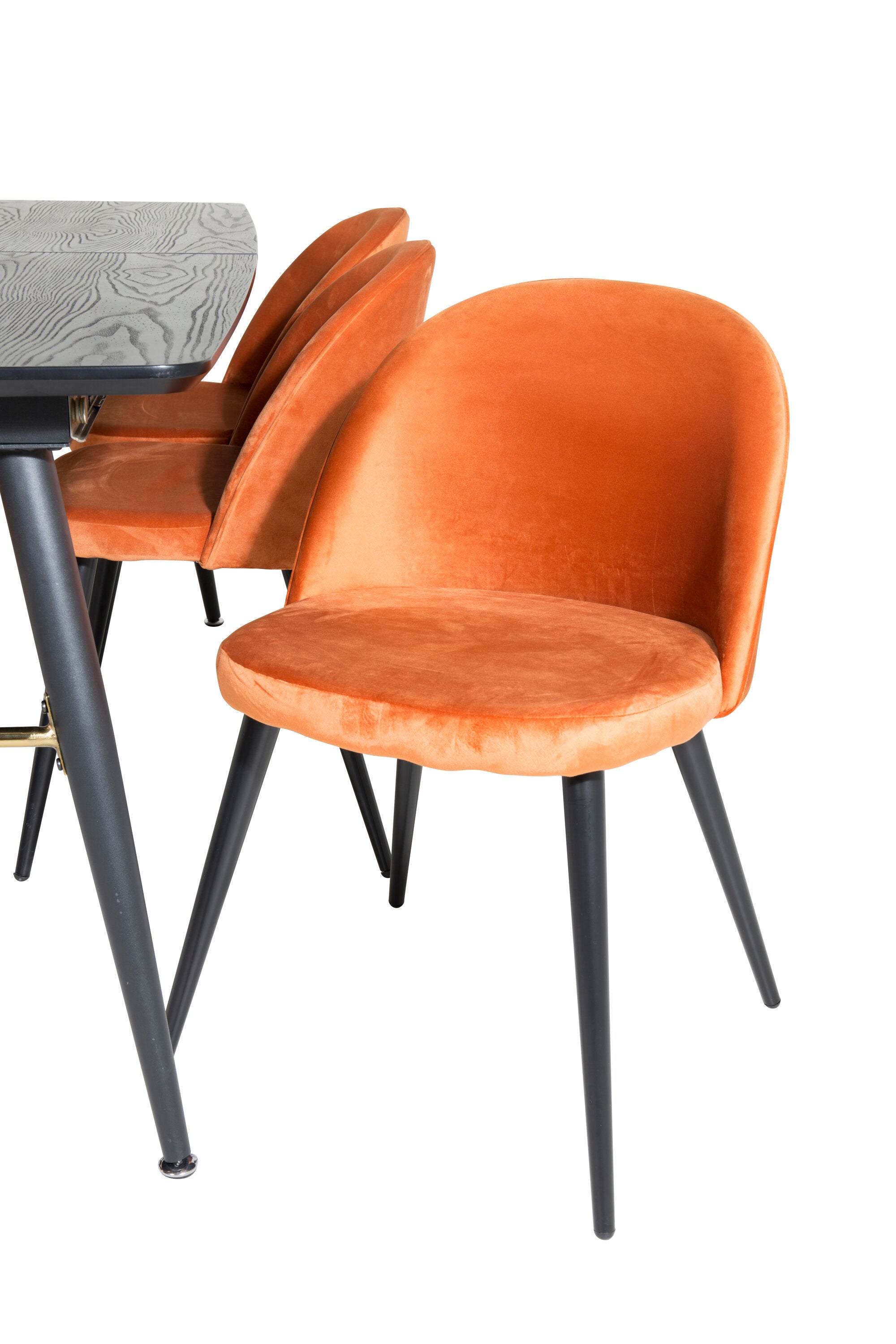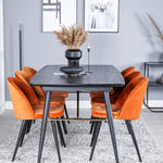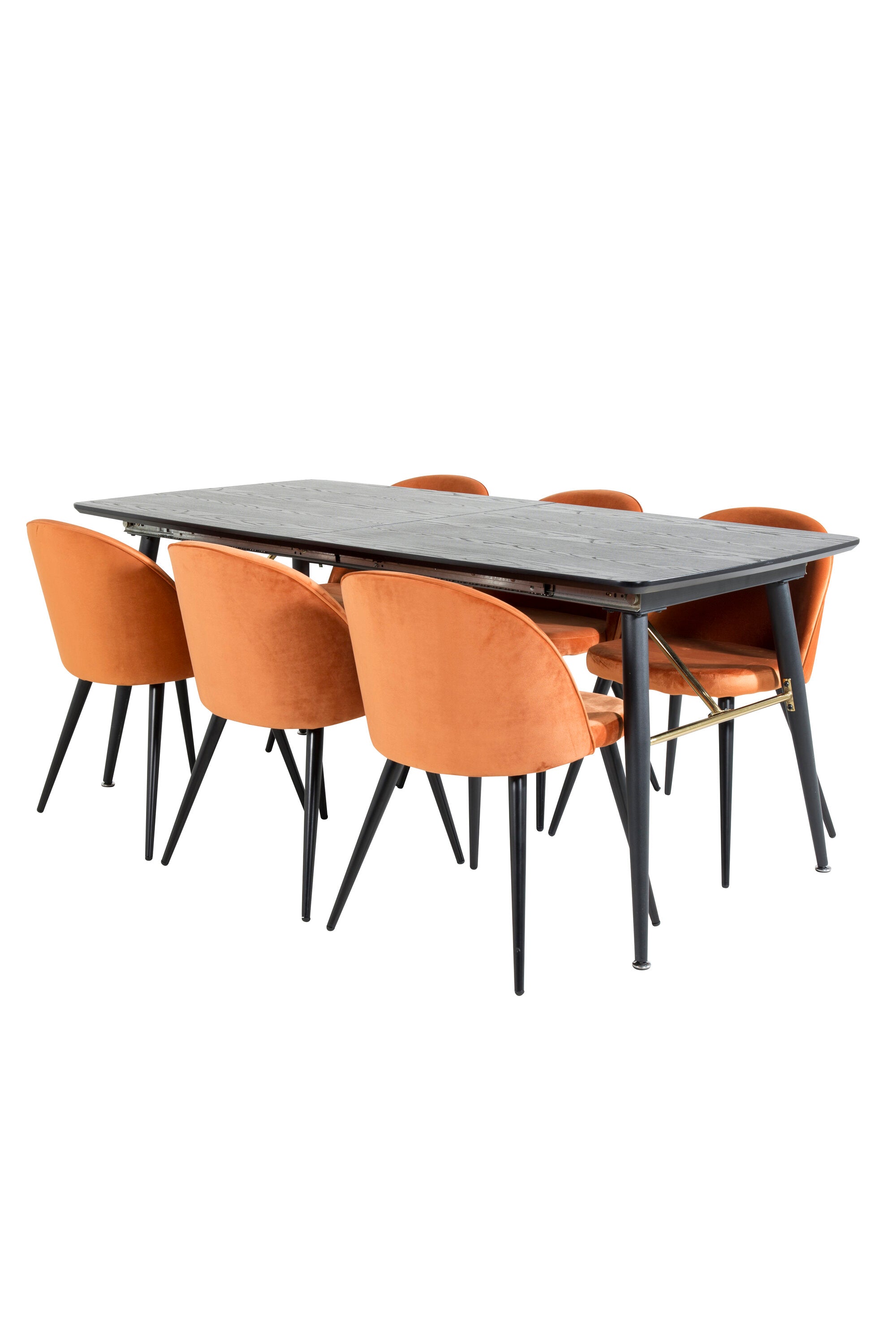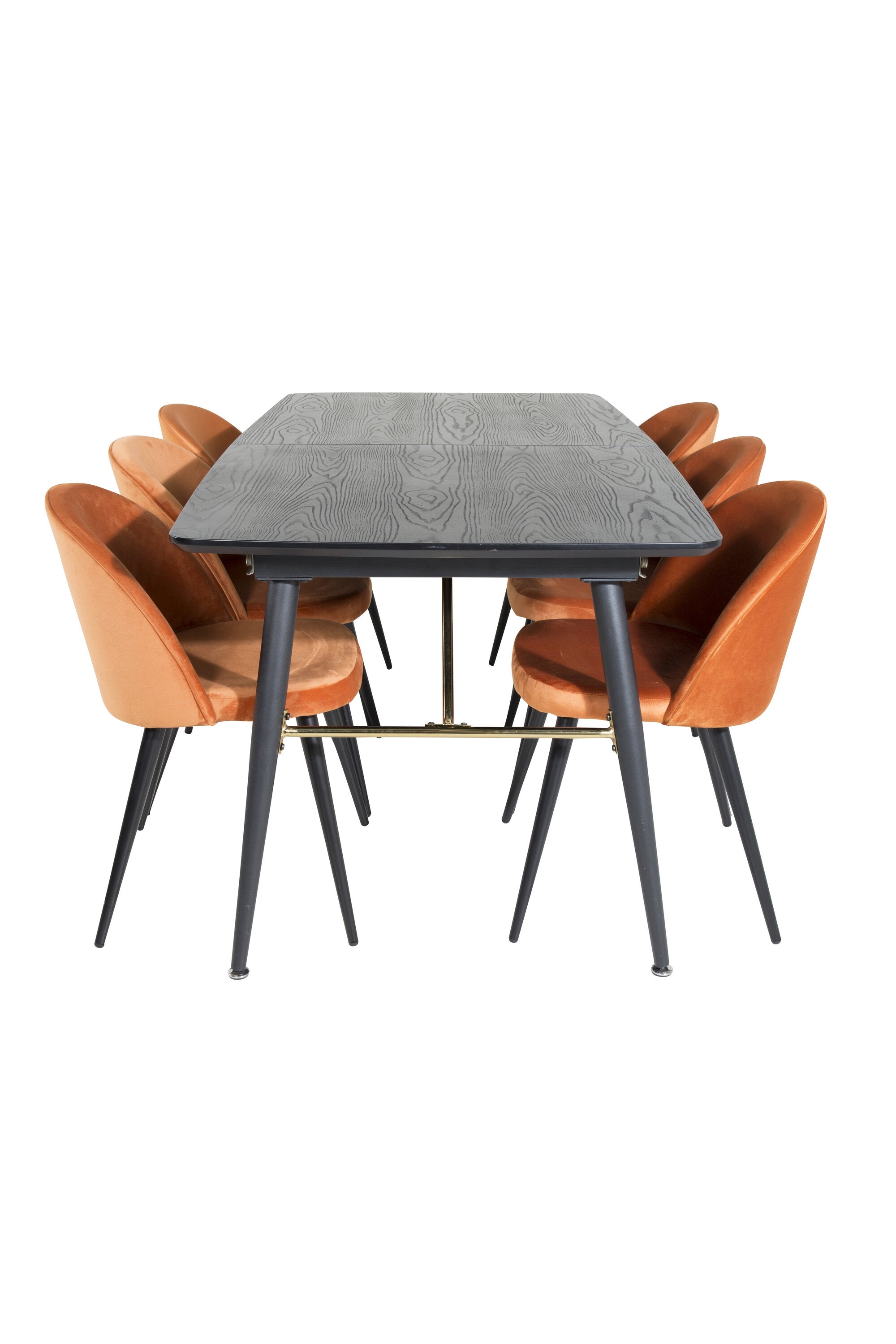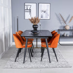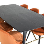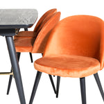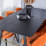 Zlatý rozkládací stůl - 180/220*85*H76 Černá dýha - Černé nohy - Mosazné detaily+Sametová jídelní židle - Oranžová / Černá_6