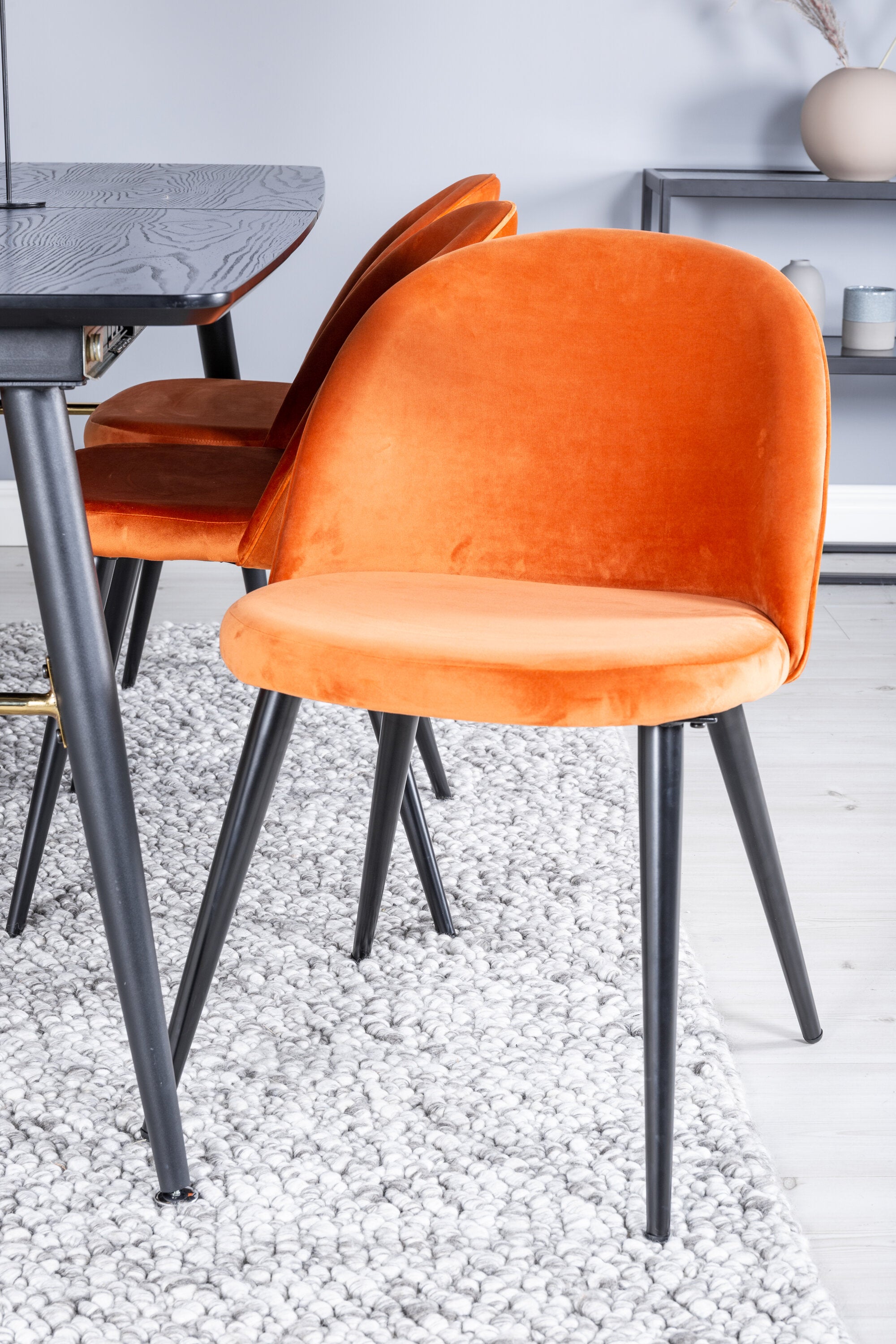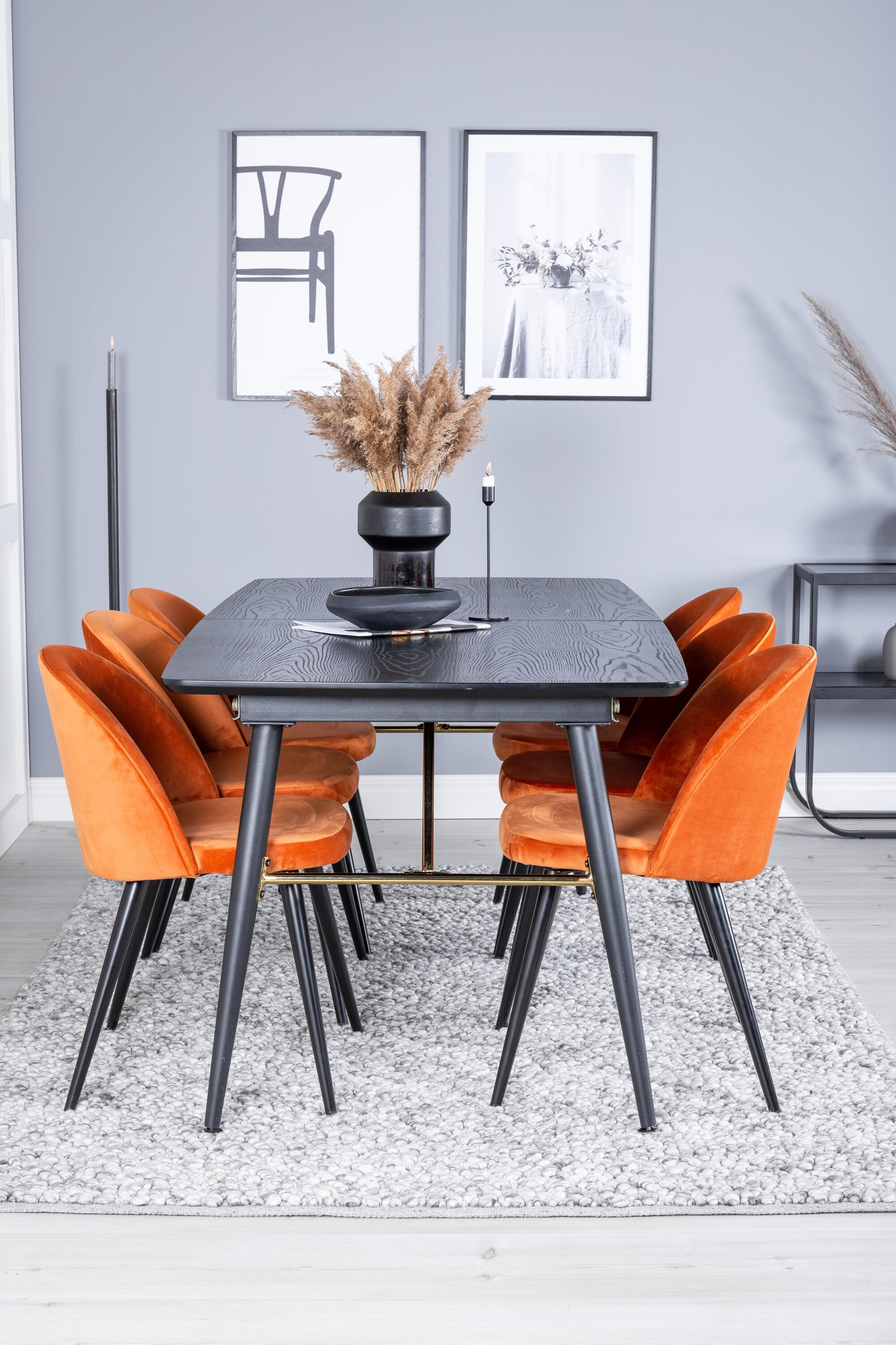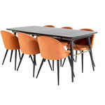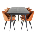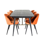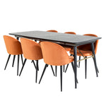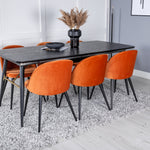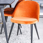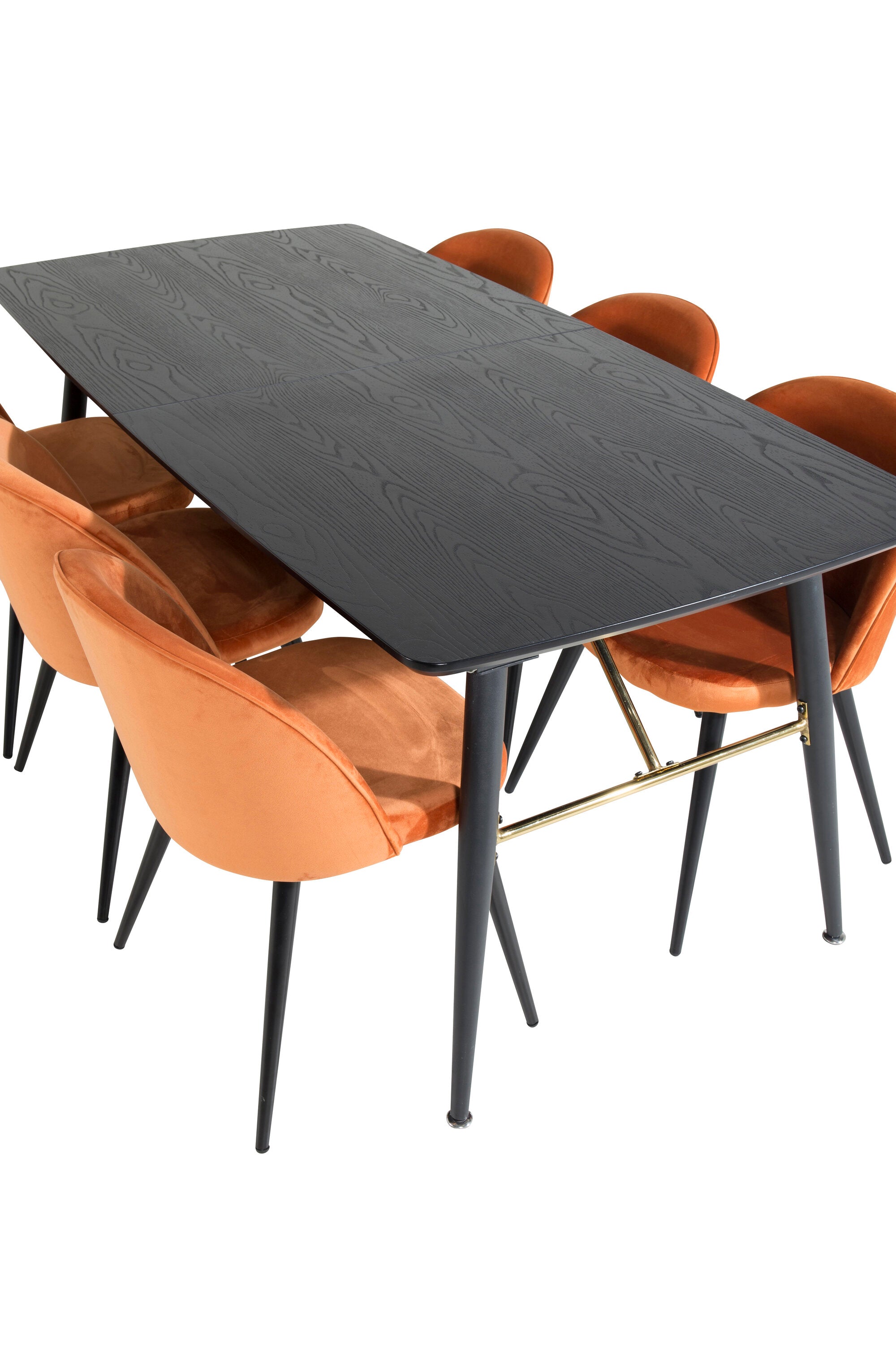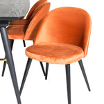 Zlatý rozkládací stůl - 180/220*85*H76 Černá dýha - Černé nohy - Mosazné detaily+Sametová jídelní židle - Oranžová / Černá_6