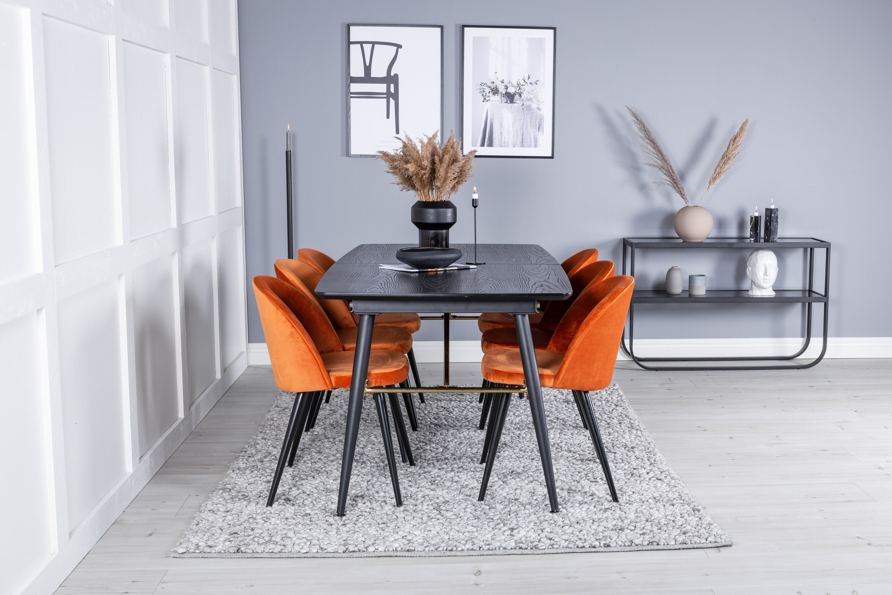 Barevná skupina jídla s uměleckým nádechem! Zde se náš krásný jídelní stůl Gold kombinuje s elegantními zlatými detaily spolu s lahodnými sametovými židlemi ze série Velvet. Vítejte doma v této radostné potravinové skupině.