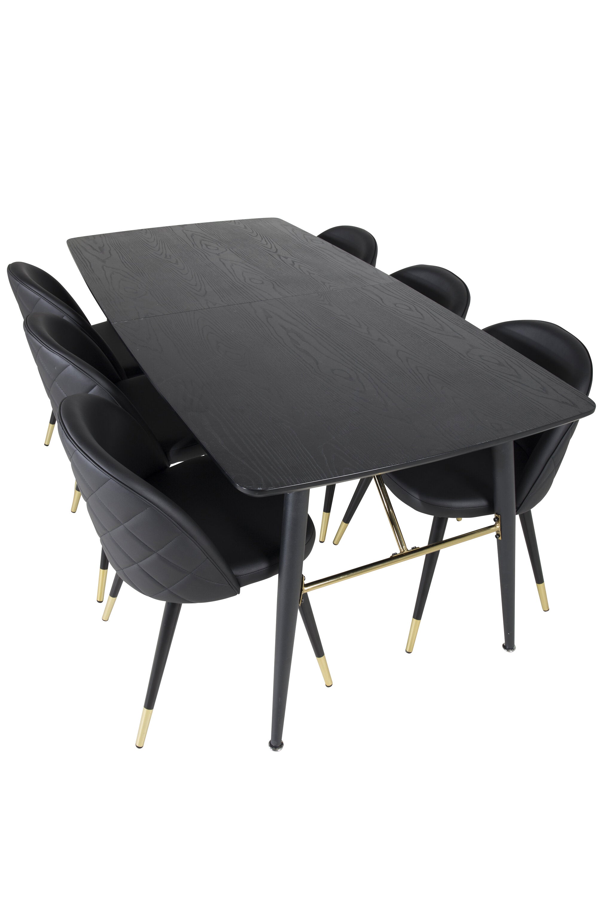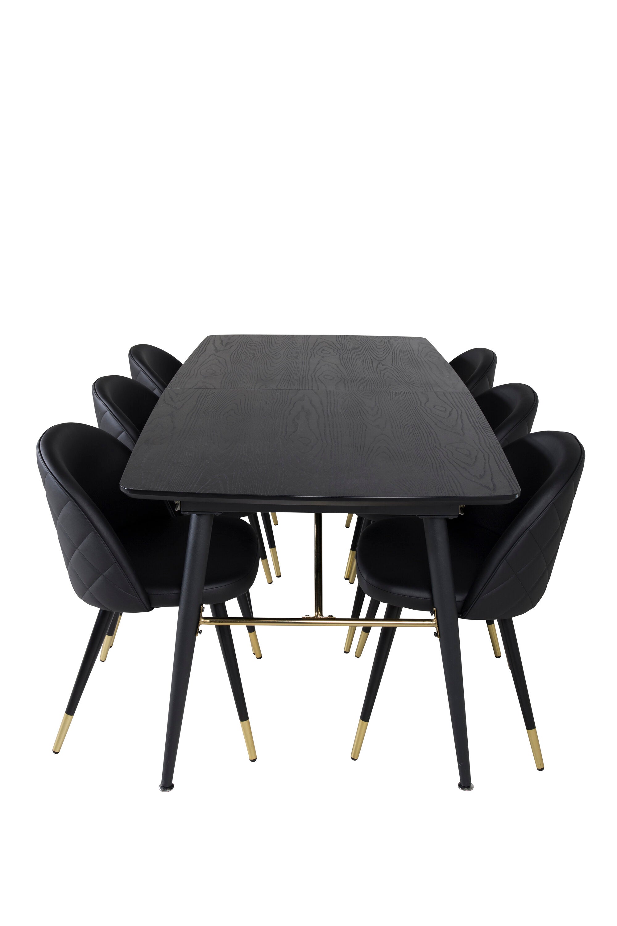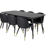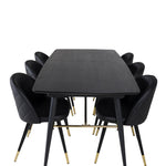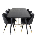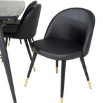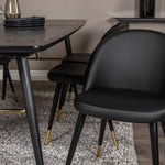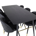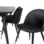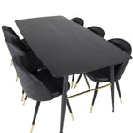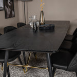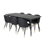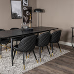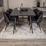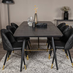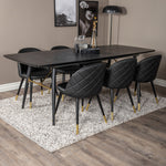 Zlatý Rozkládací stůl - 180/220*85*H76 Černá dýha - Černé nohy - Mosazné detaily+Sametová jídelní židle š. Stiches - PU - Black / Black_6