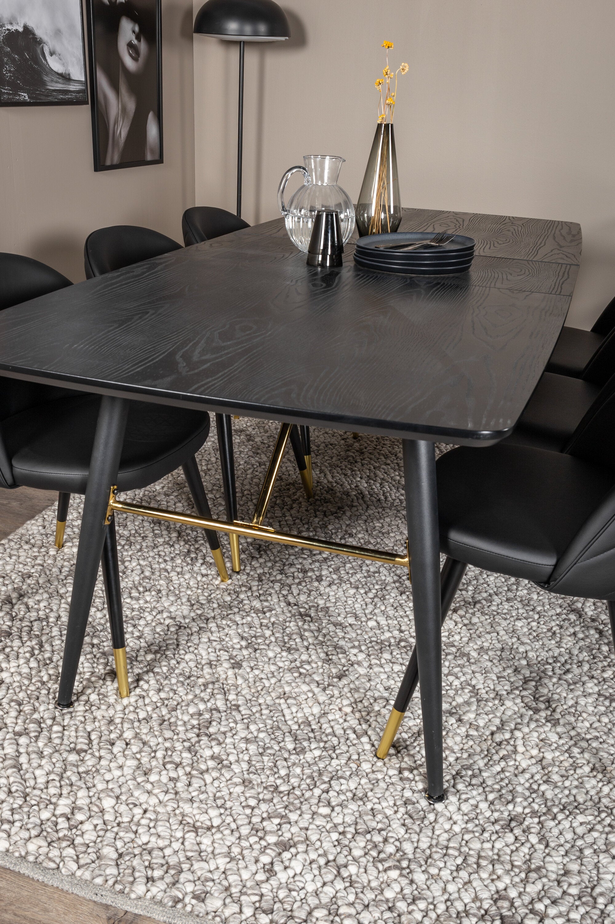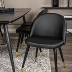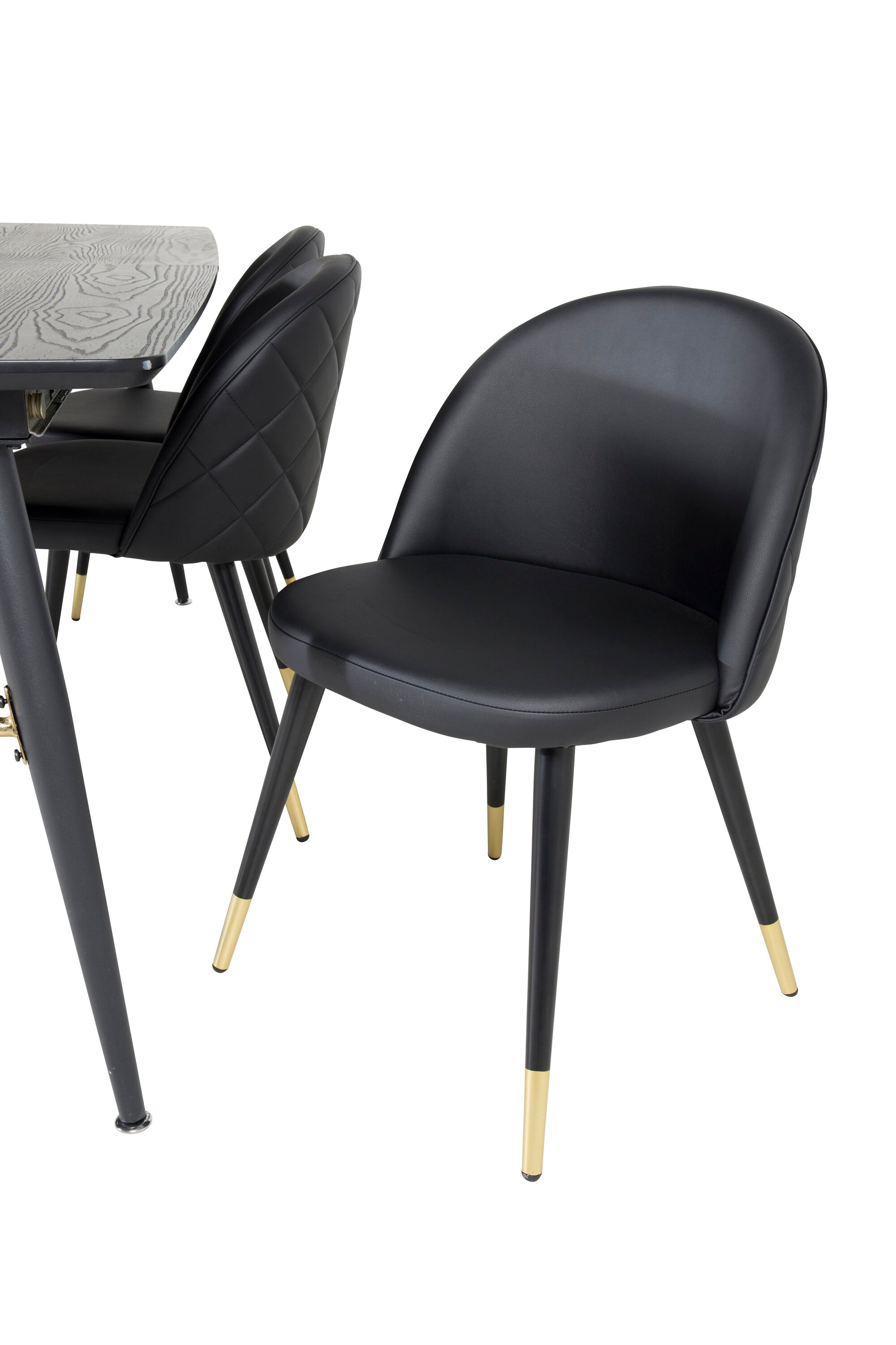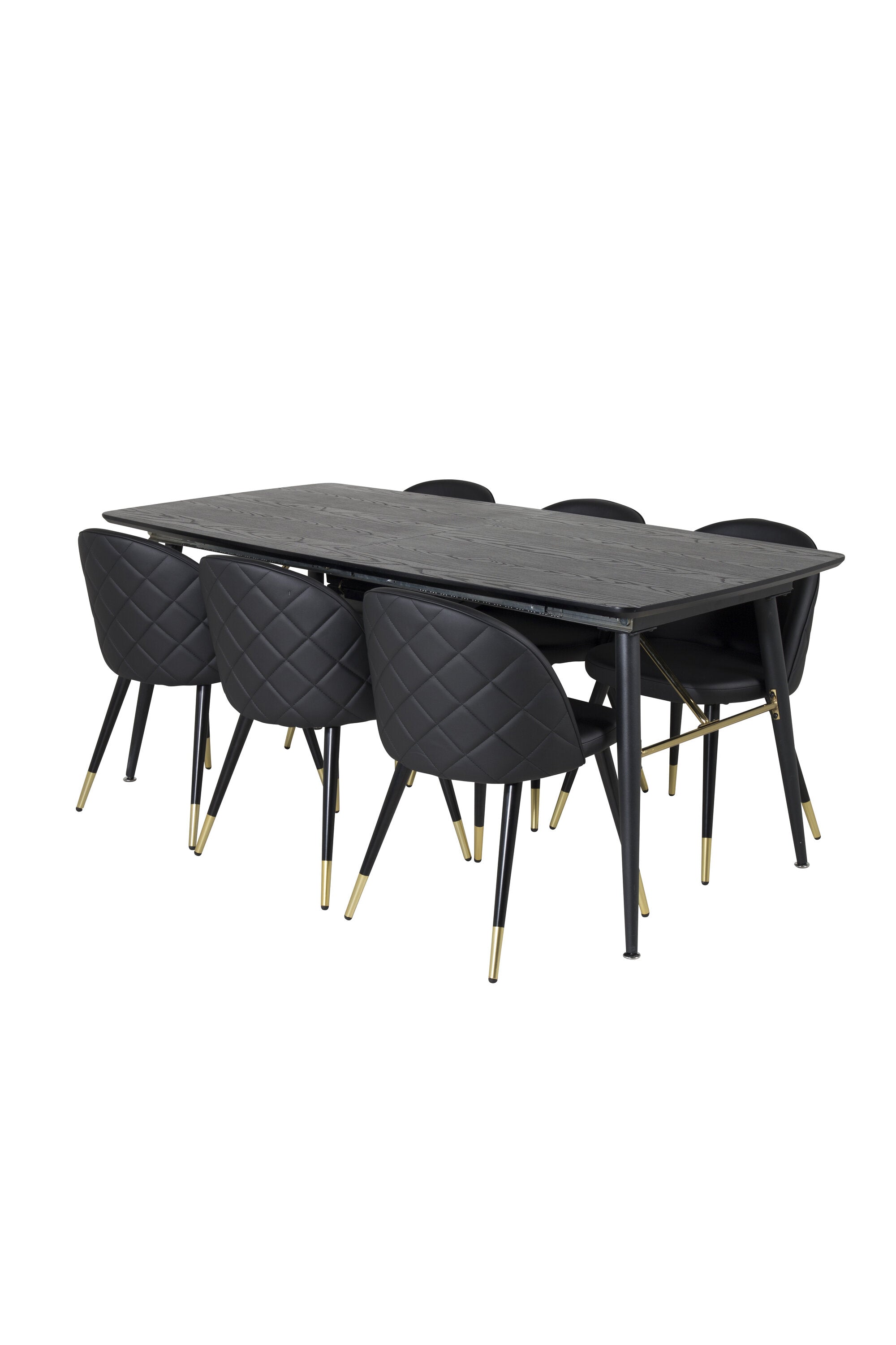 Zlatý Rozkládací stůl - 180/220*85*H76 Černá dýha - Černé nohy - Mosazné detaily+Sametová jídelní židle š. Stiches - PU - Black / Black_6