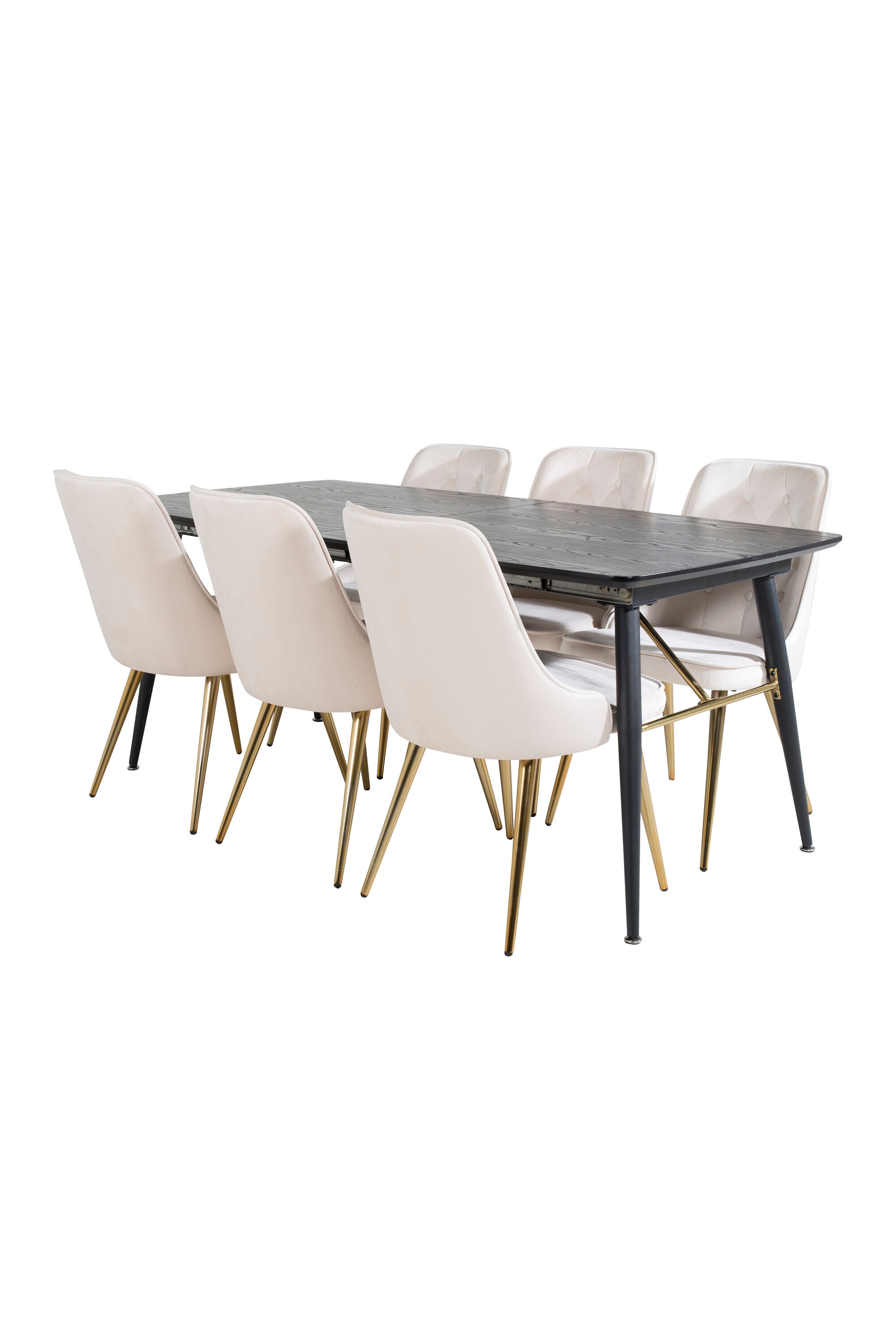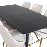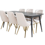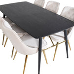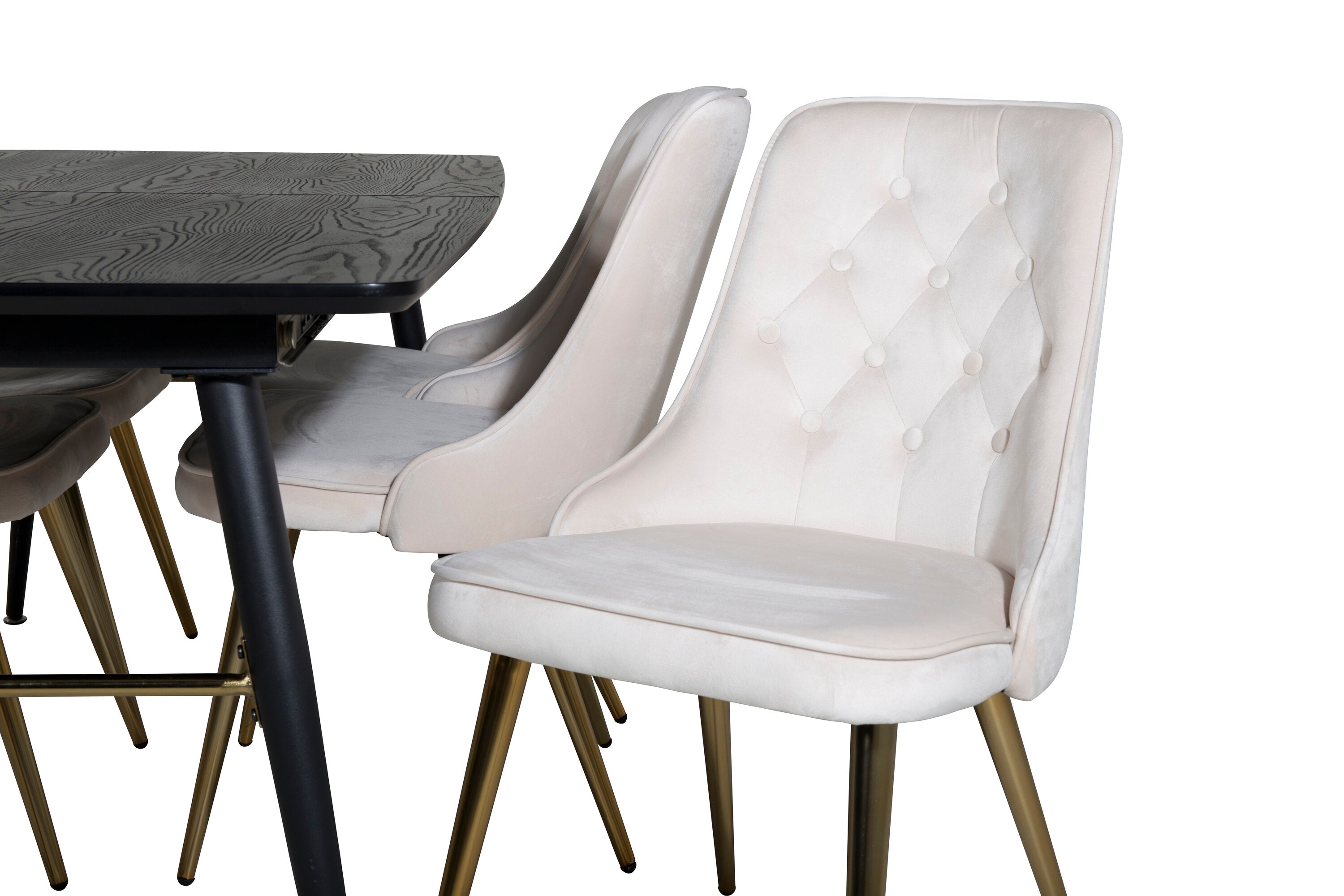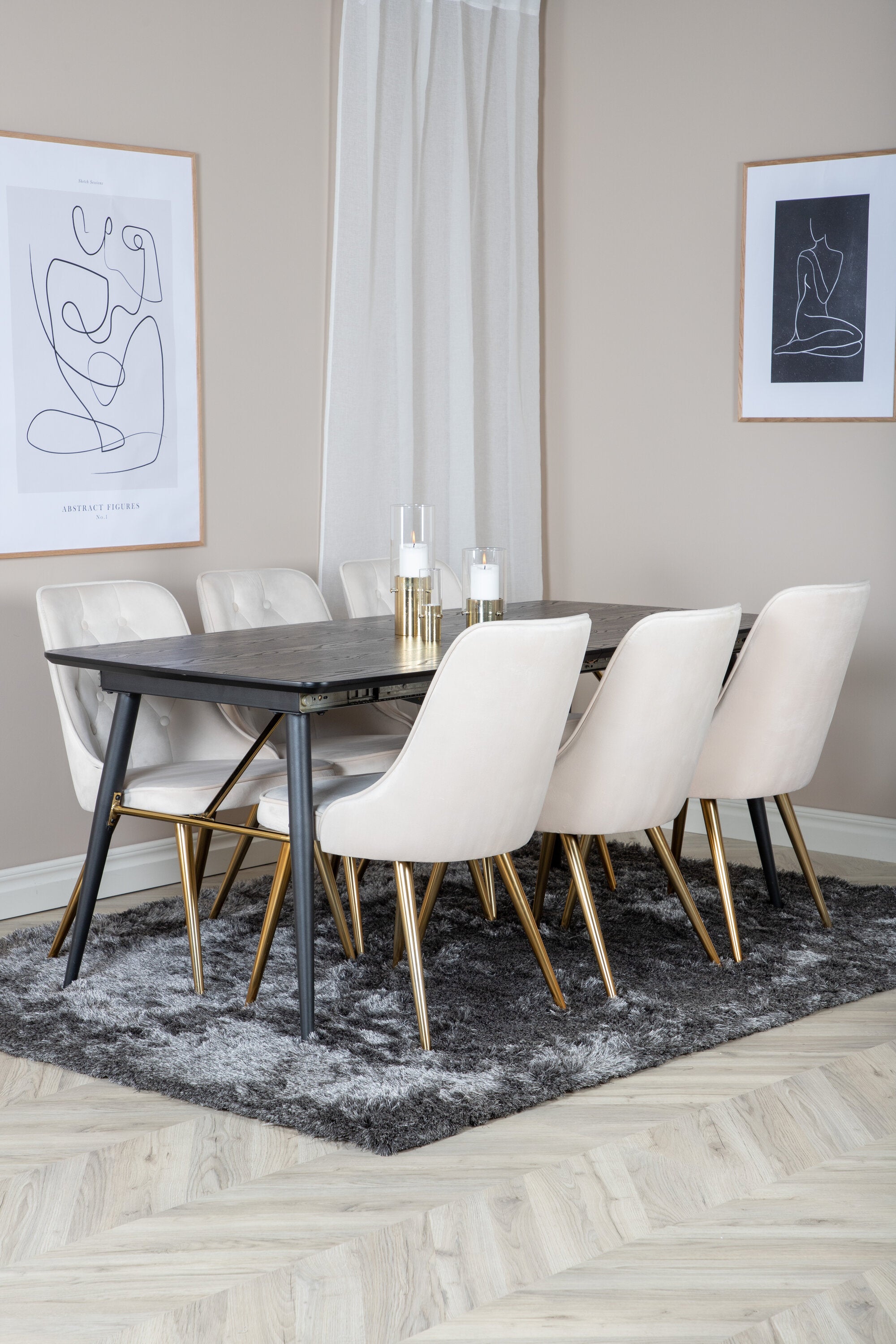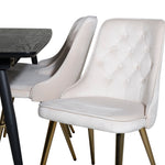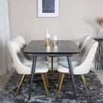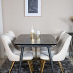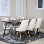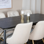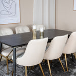 Zlatý rozkládací stůl - 180/220*85*H76 Černá dýha - Černé nohy - Mosazné detaily+Velvet Deluxe Jídelní židle - Béžová / Brass_6