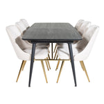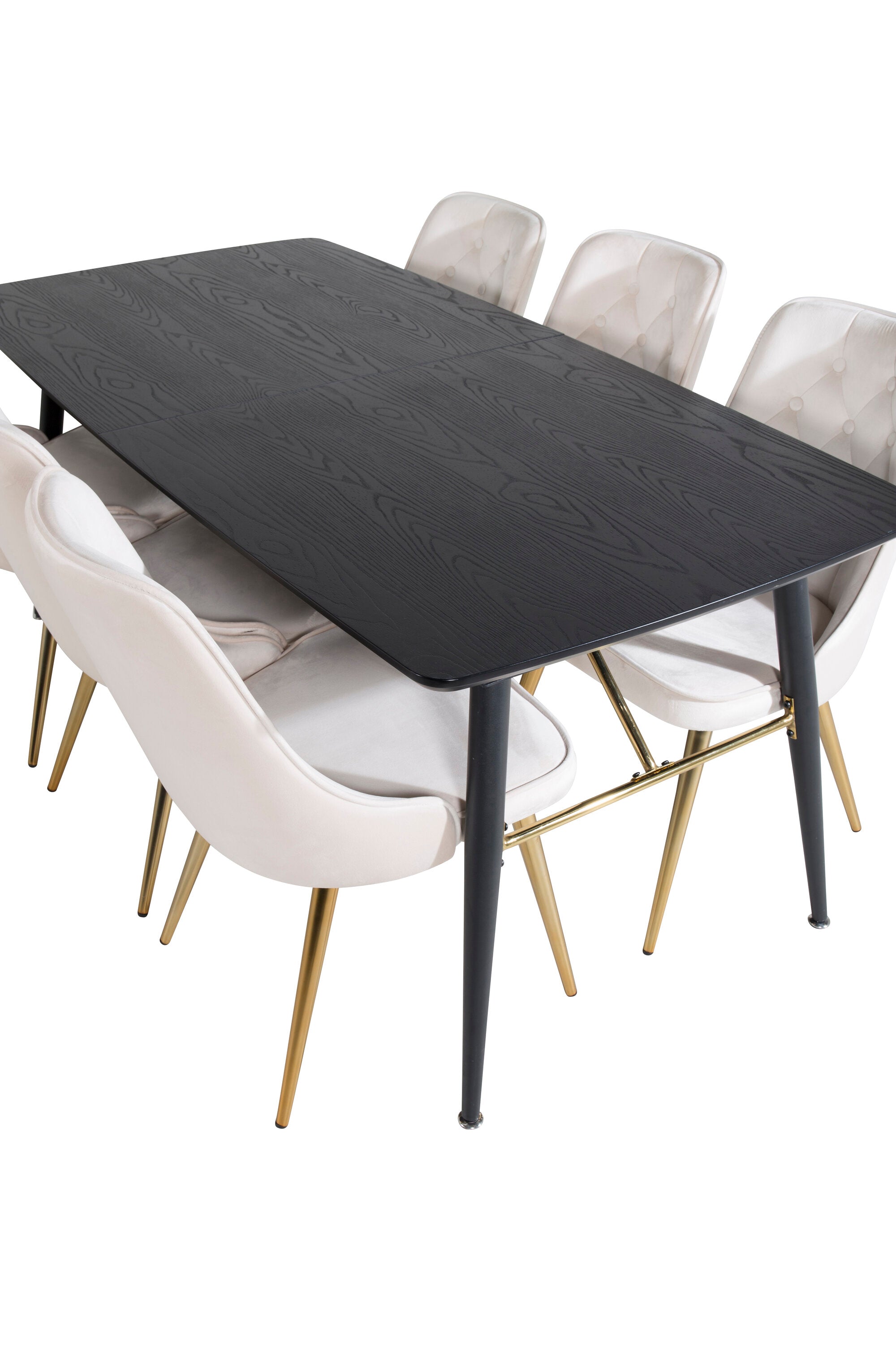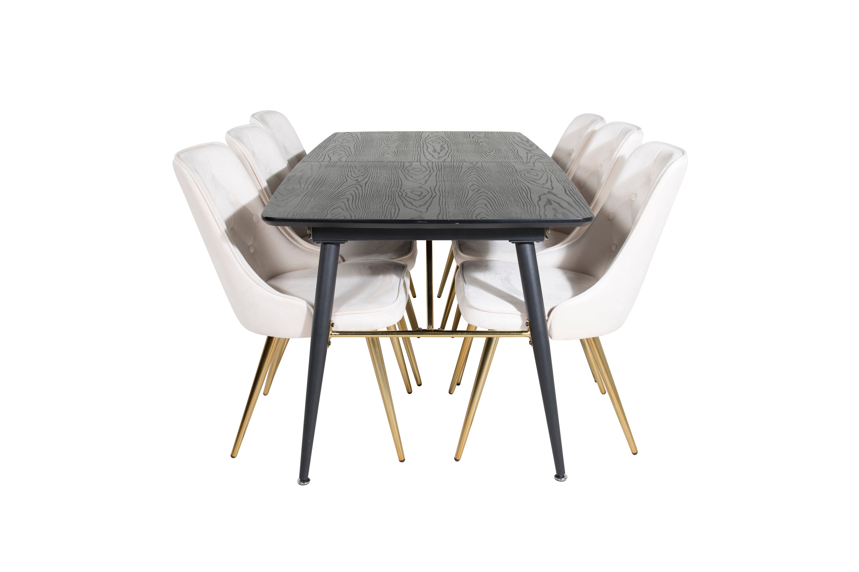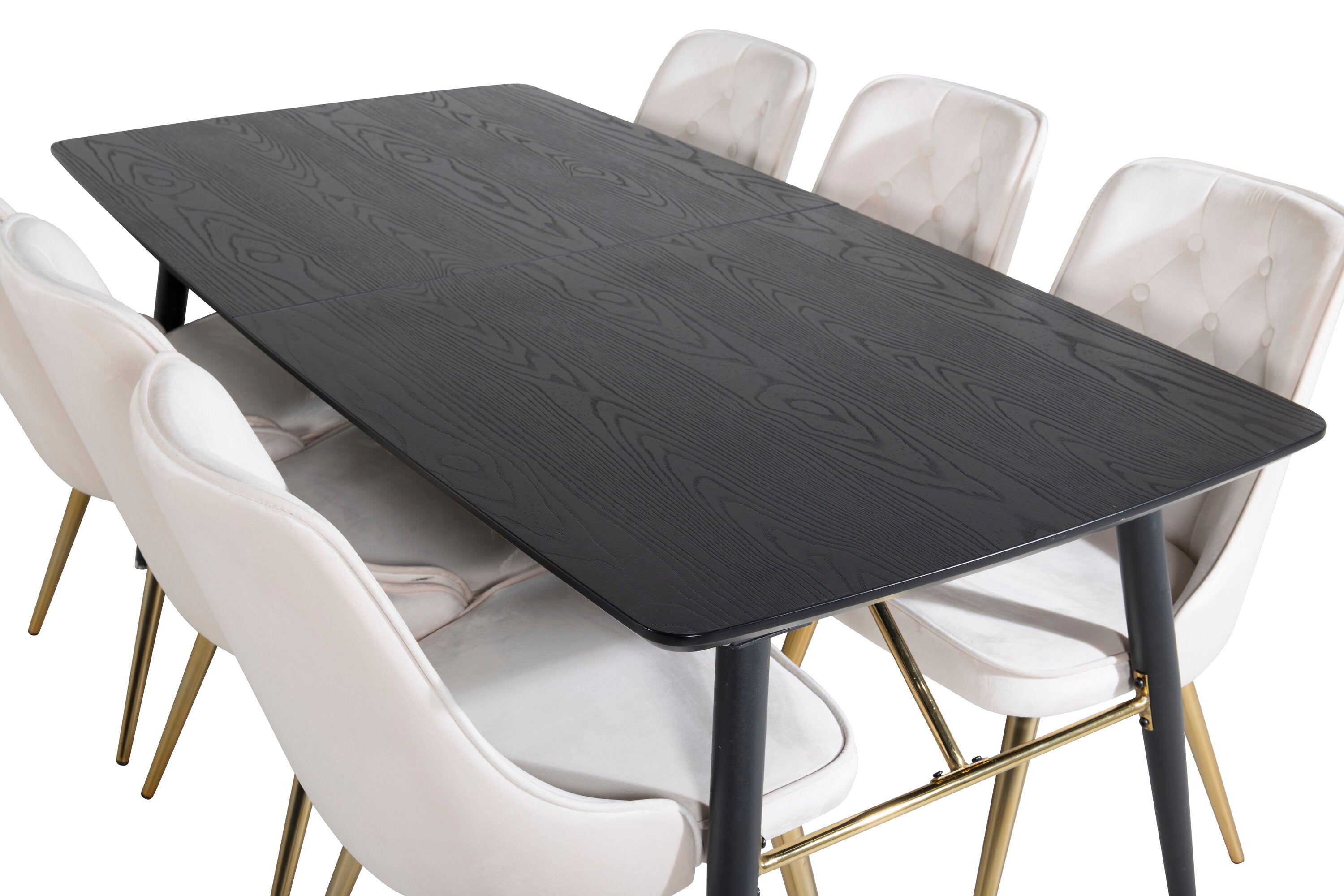 Zlatý rozkládací stůl - 180/220*85*H76 Černá dýha - Černé nohy - Mosazné detaily+Velvet Deluxe Jídelní židle - Béžová / Brass_6